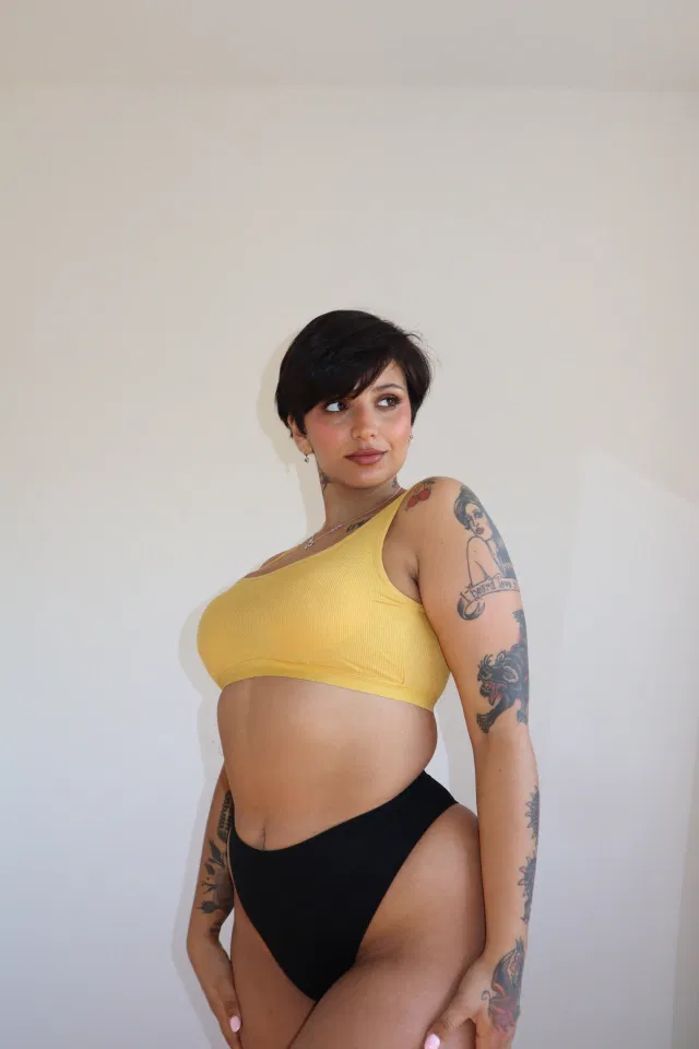 Top de morley con copa, se abrocha en espalda. Talle libre que abarca hasta un talle 95/100 de busto.