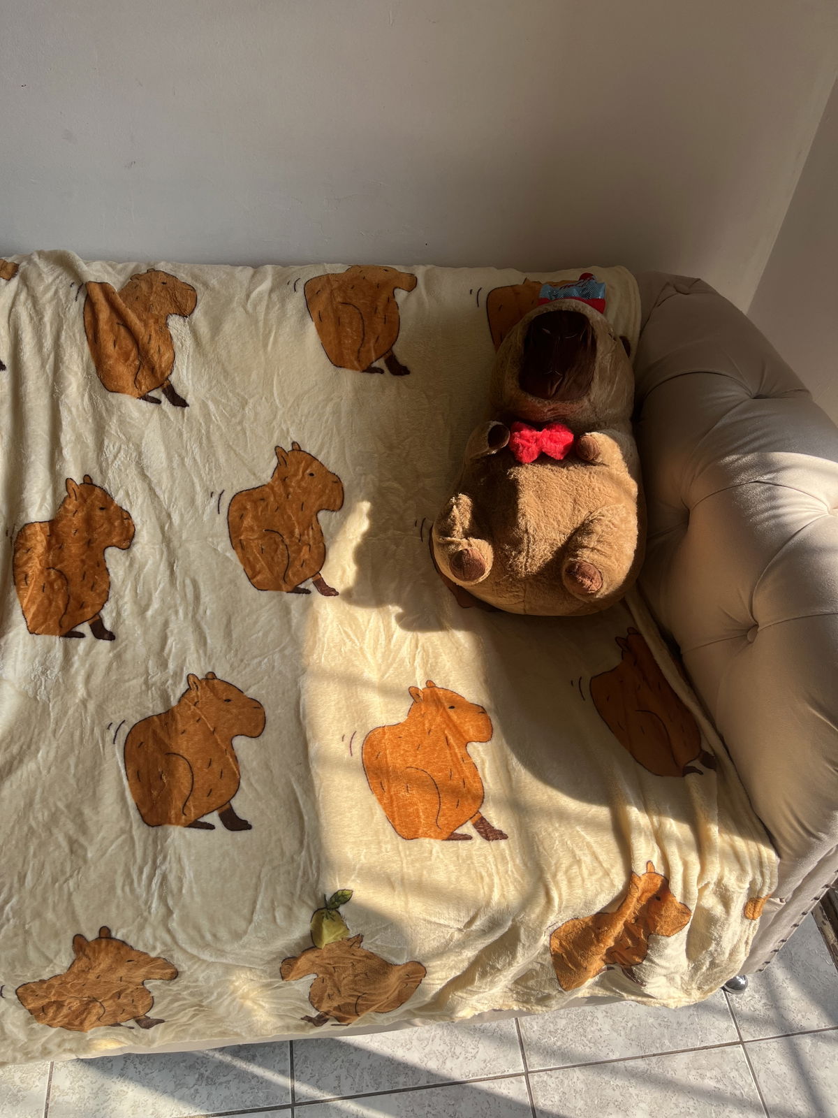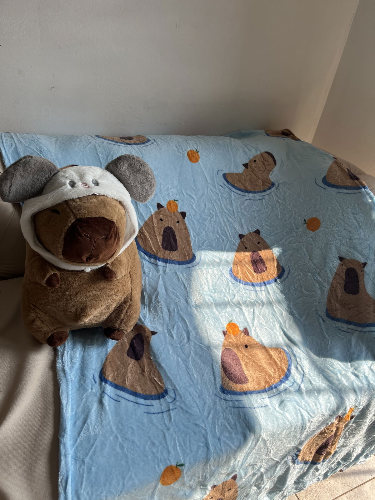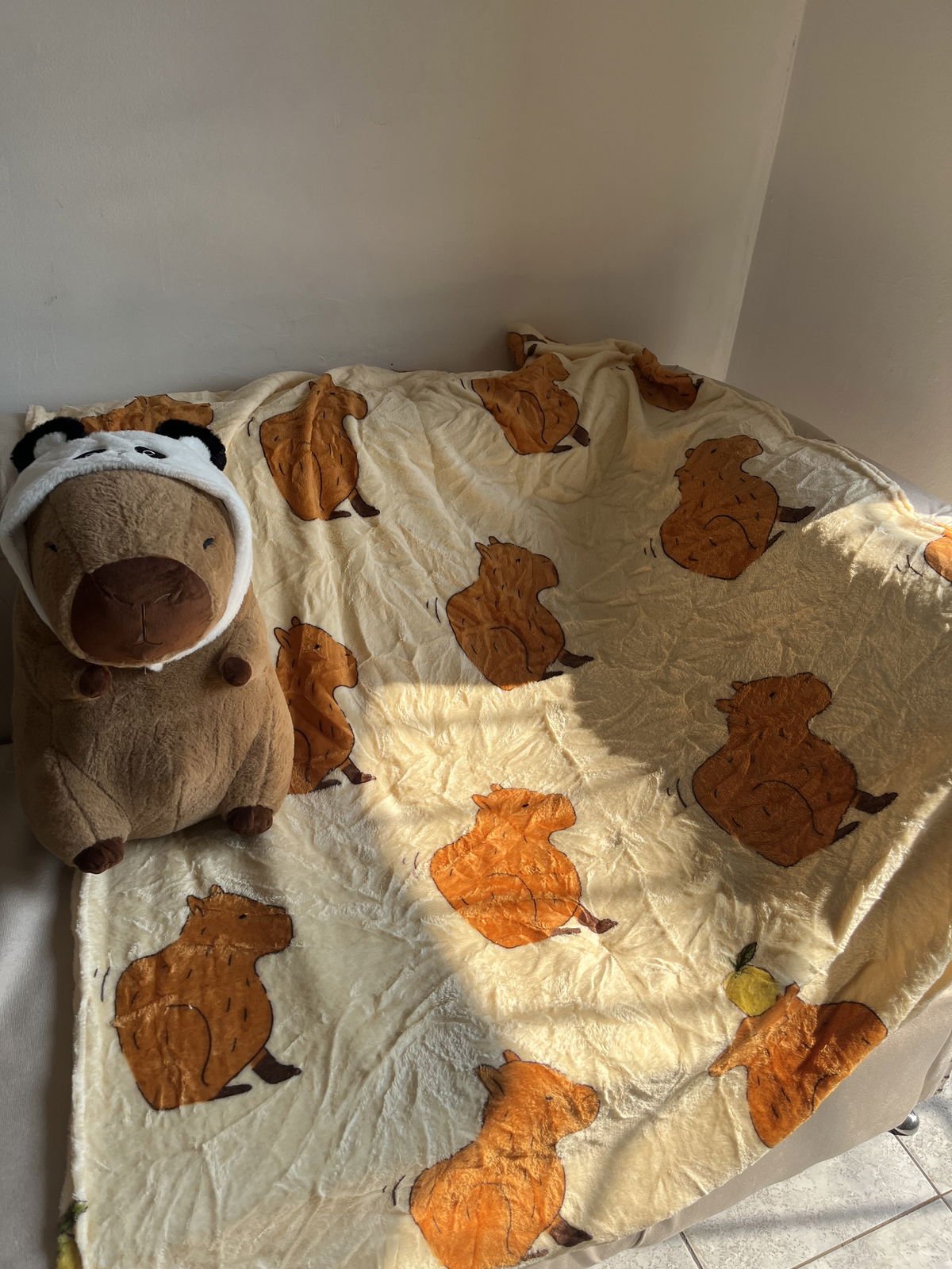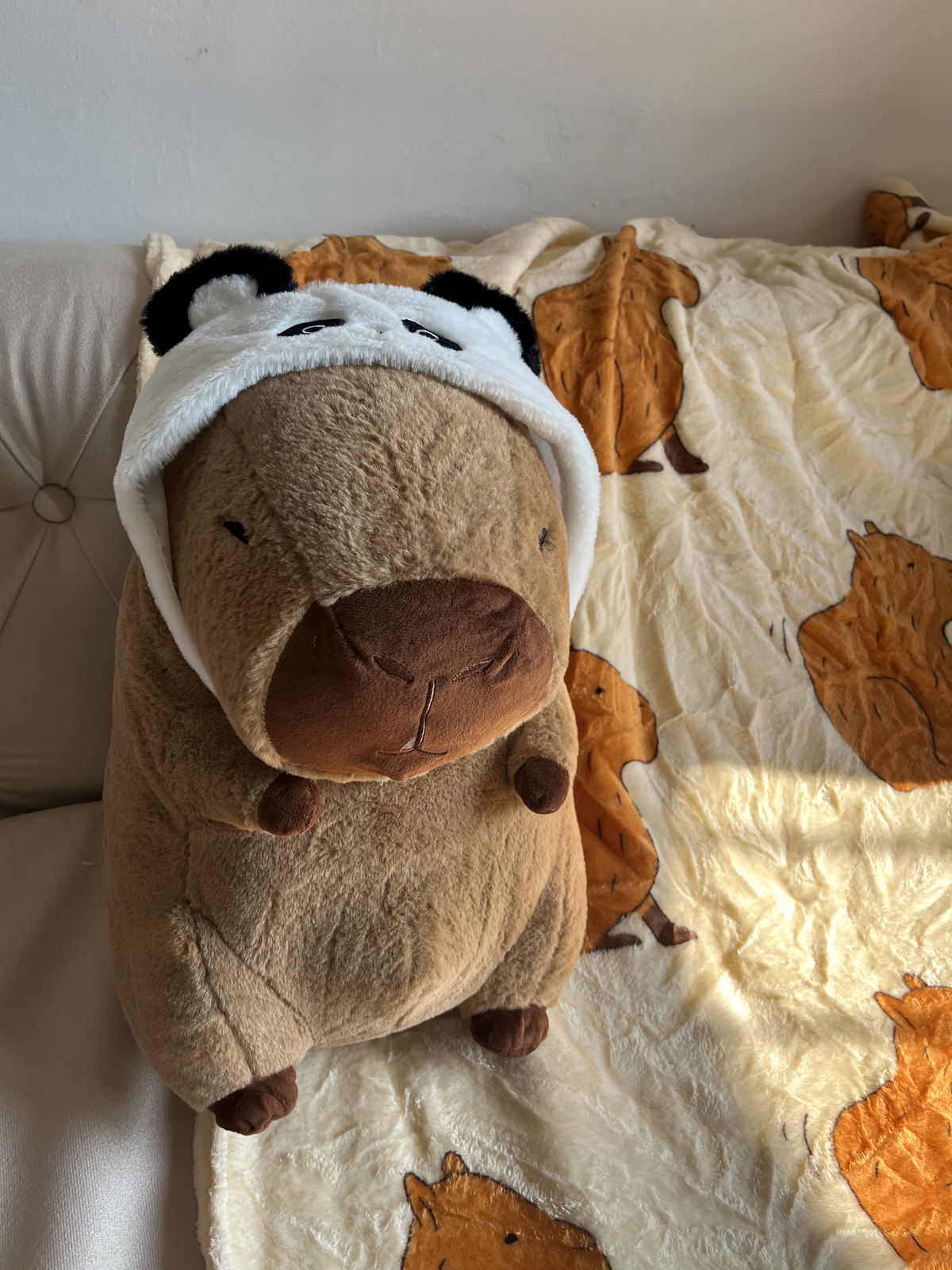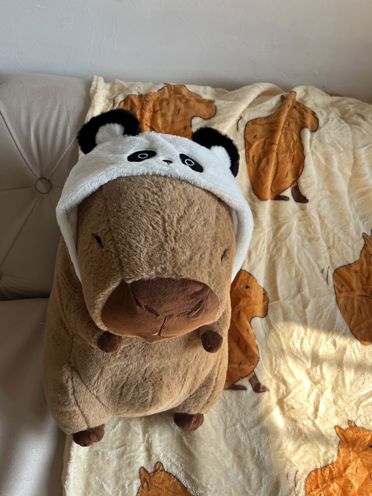 Peluche manta importado de capibara. La manta es súper grande y viene embutida en el peluche.