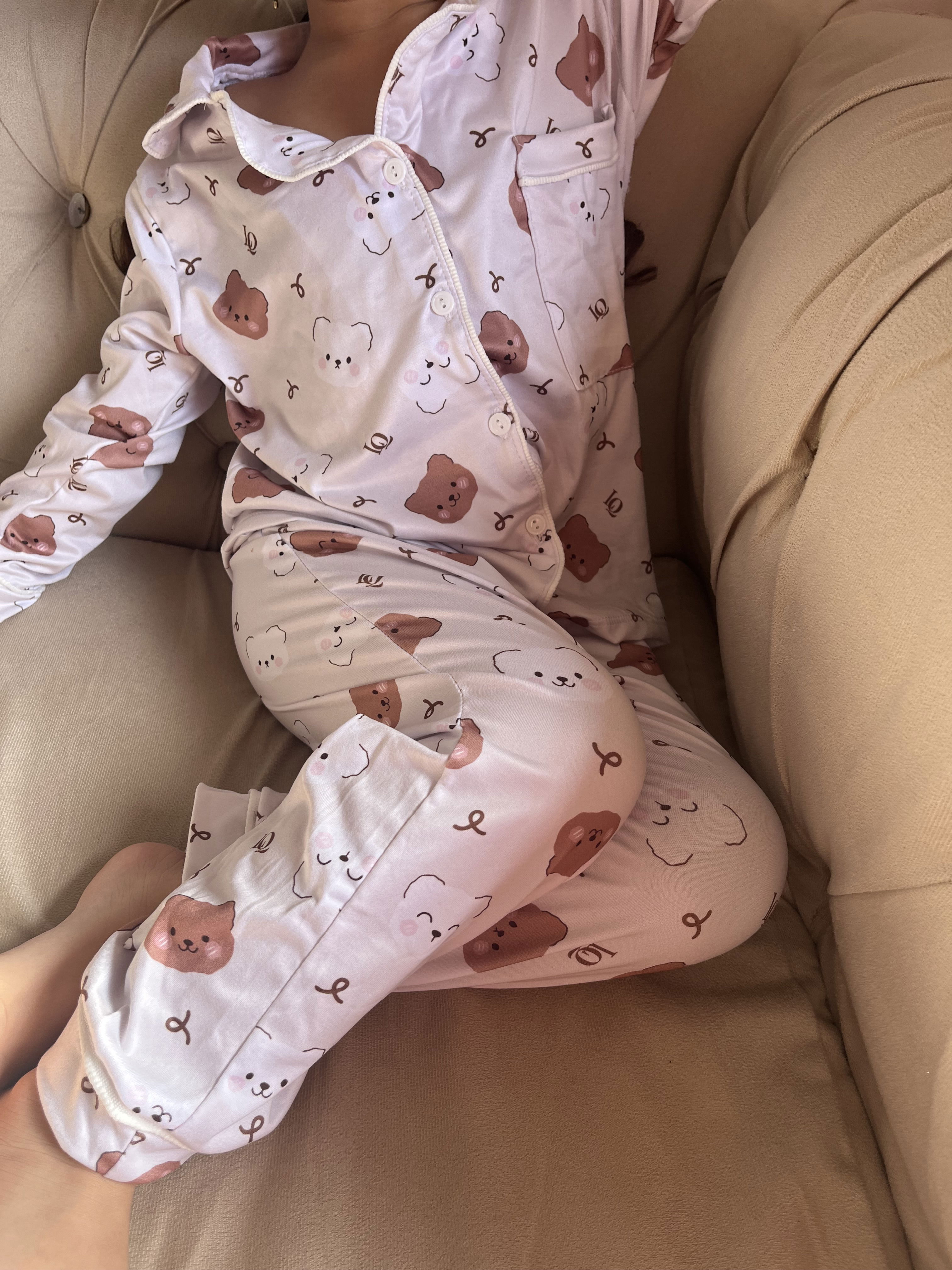 Pijama camisero de modal soft , con vivo y botones blancos.