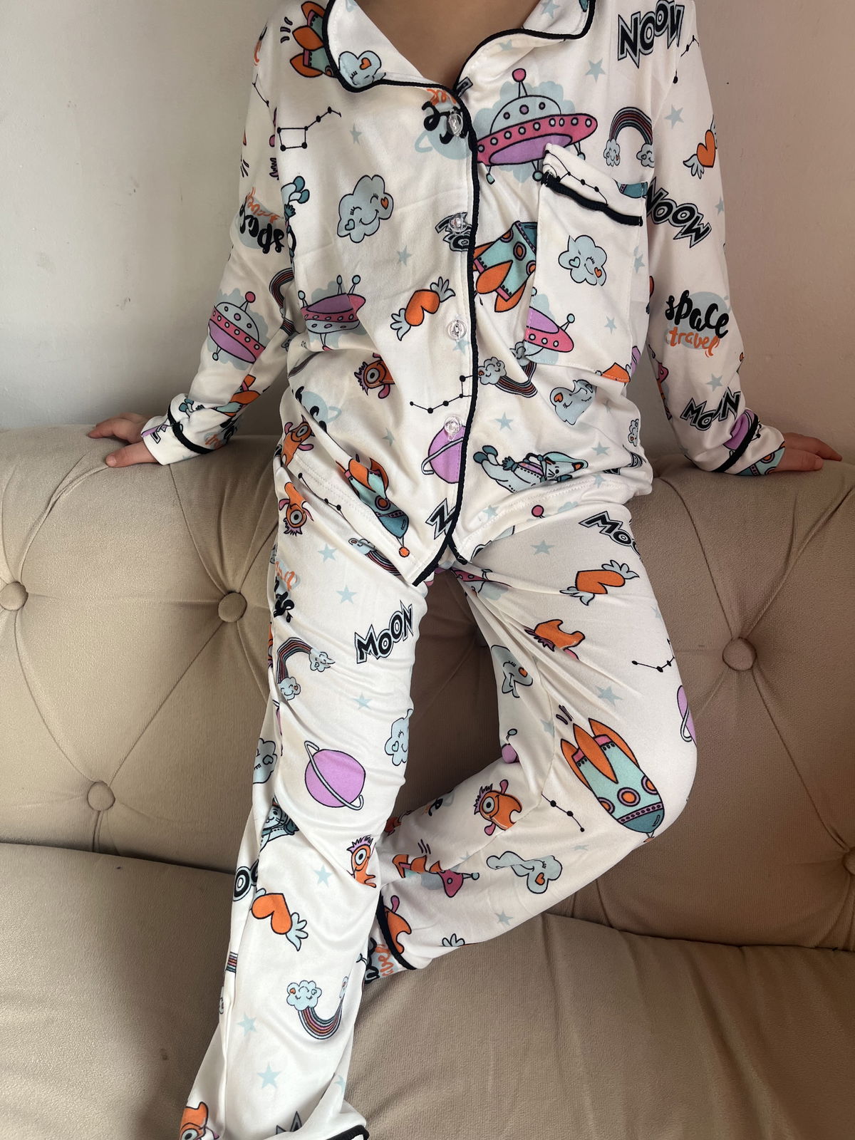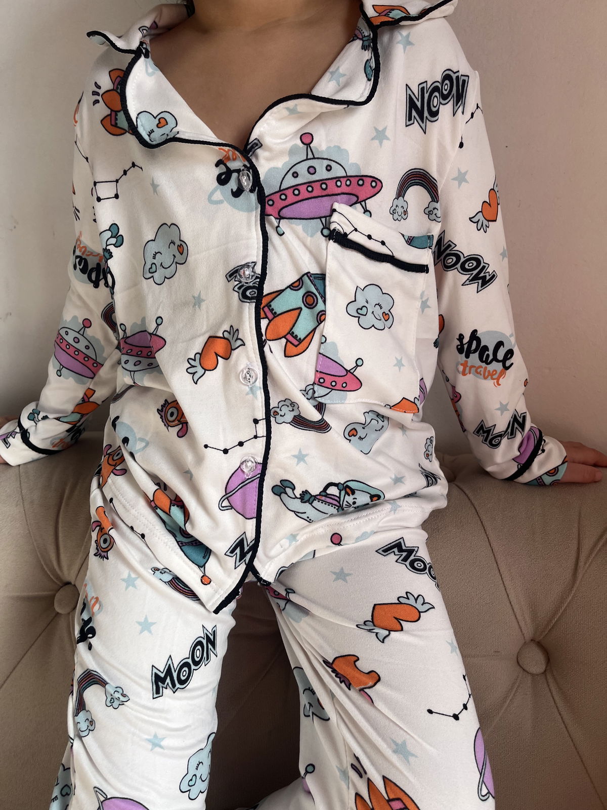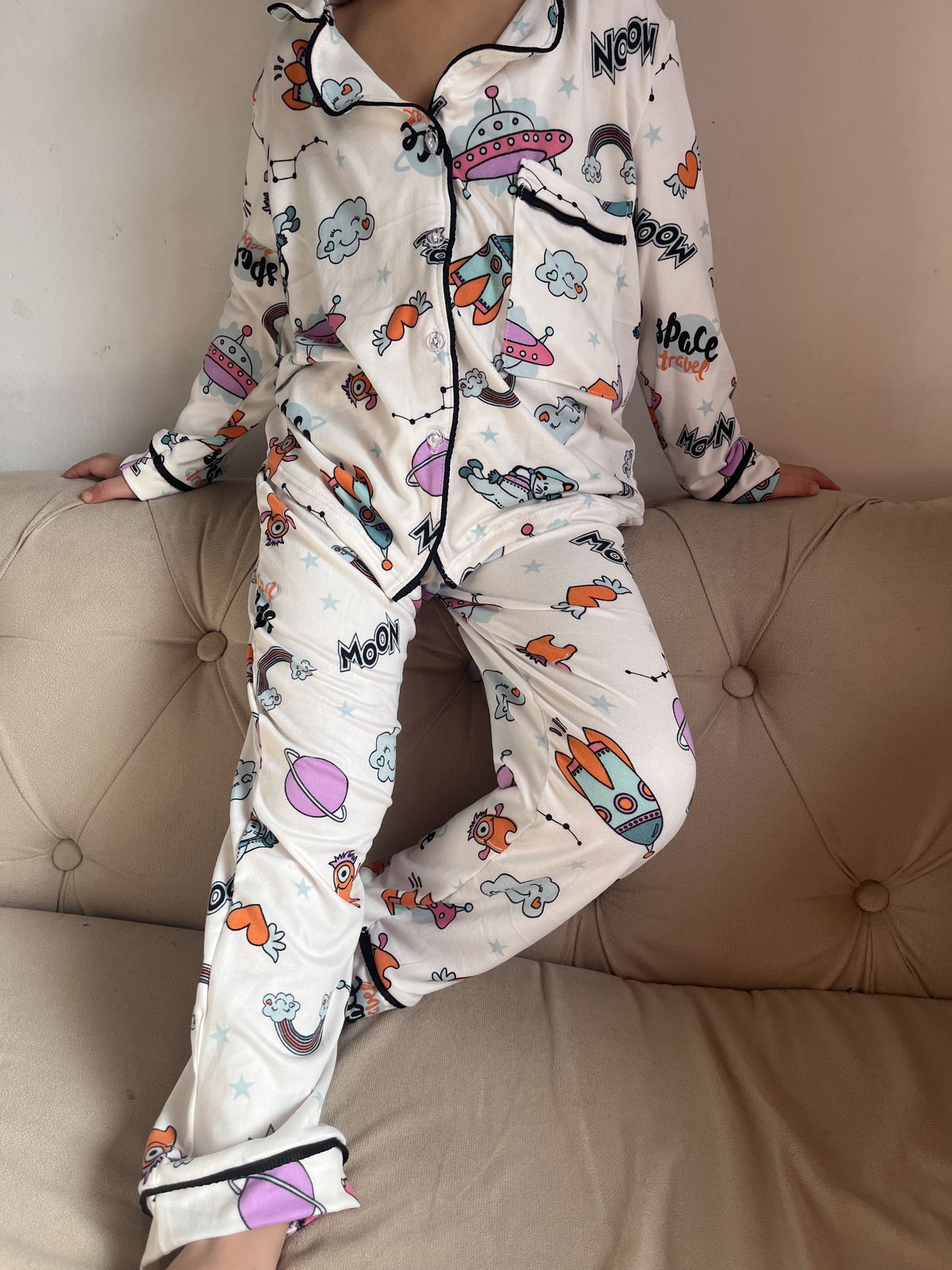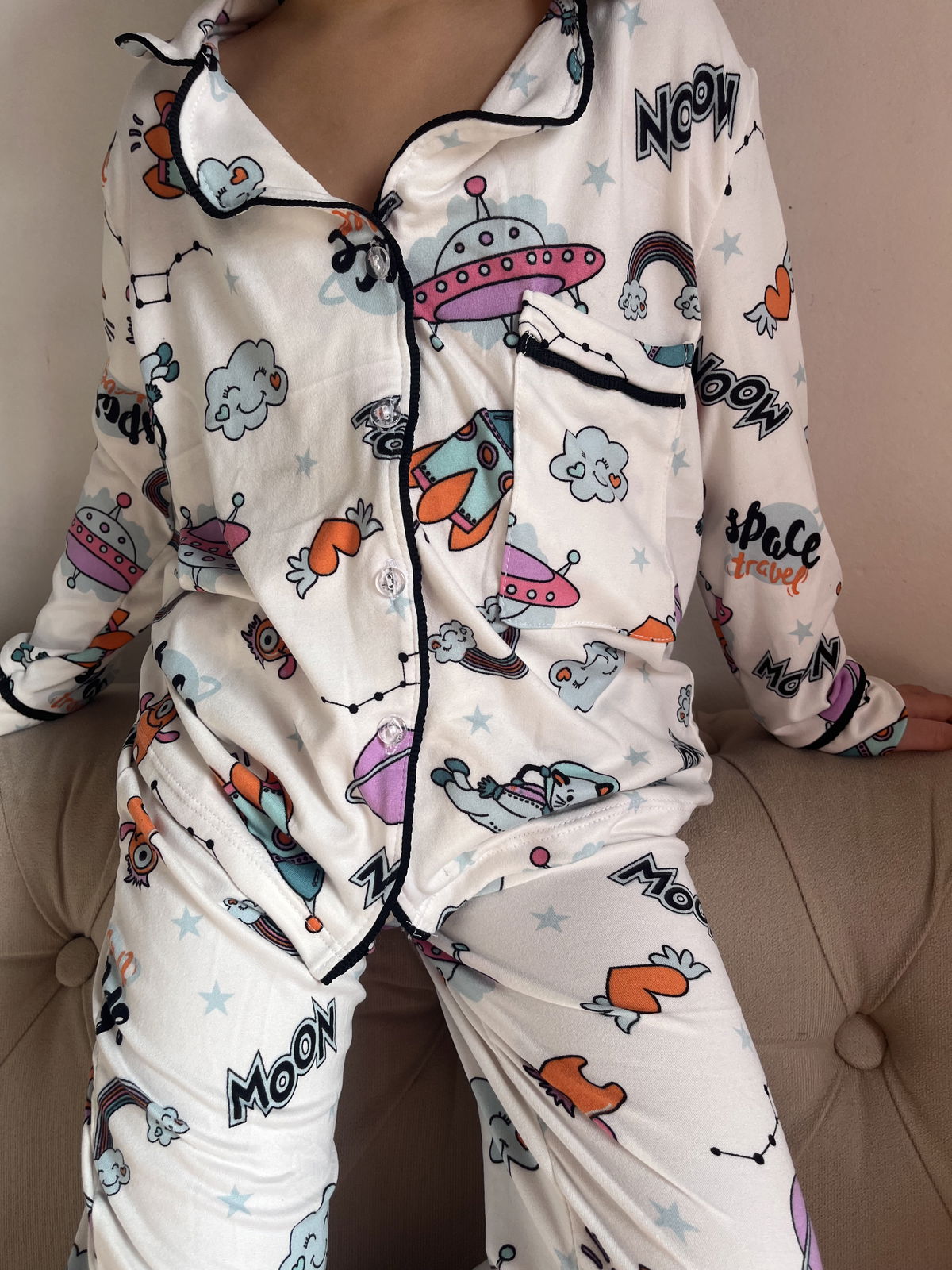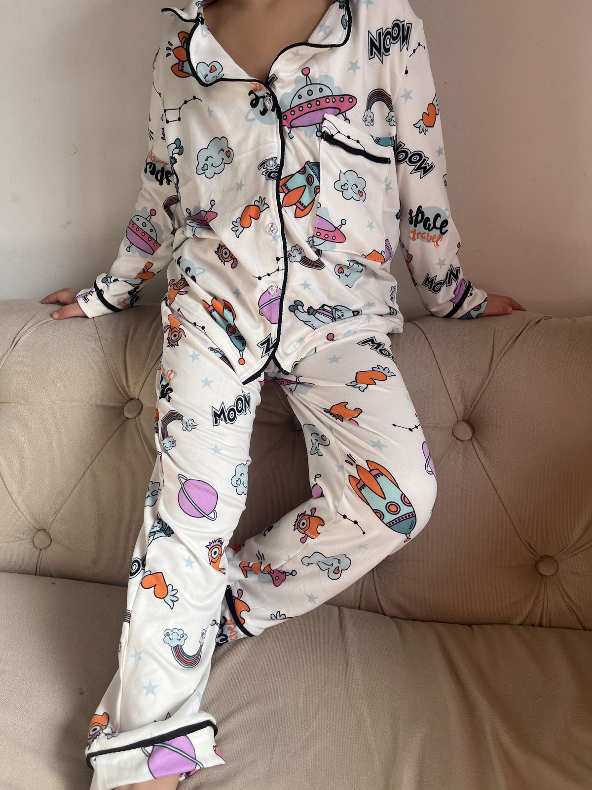 Pijama camisero de modal soft , con vivo negro y botones transparentes