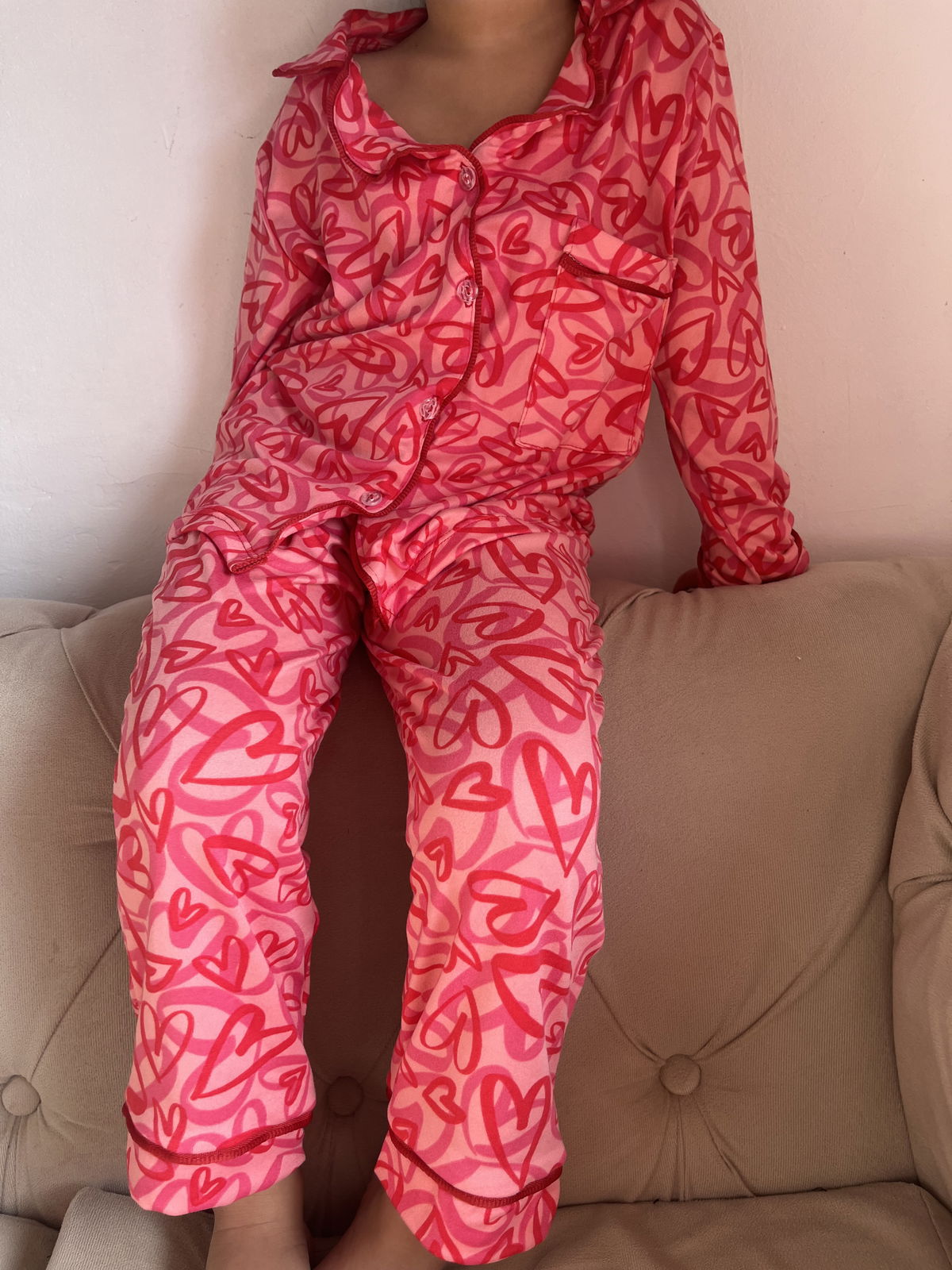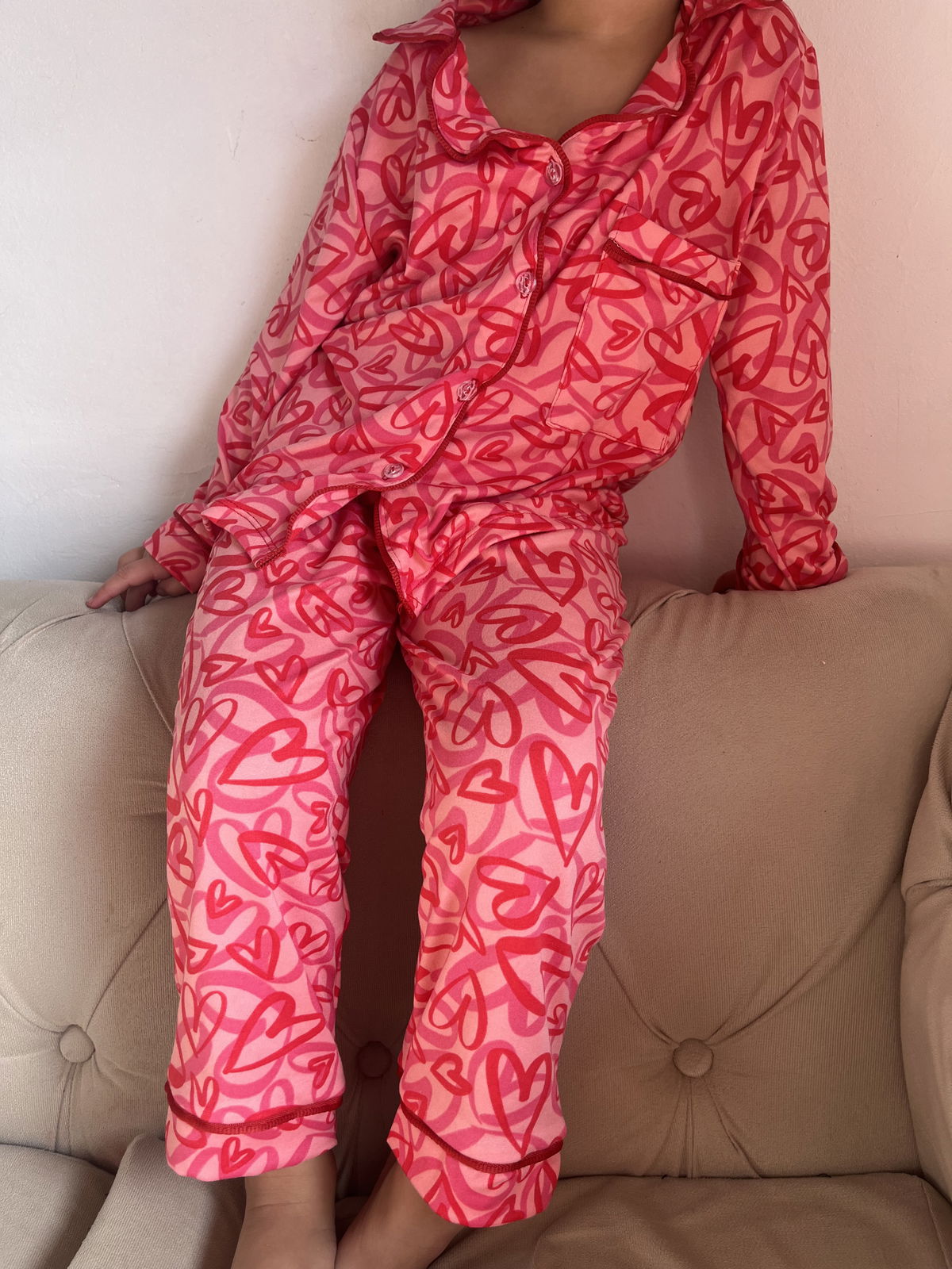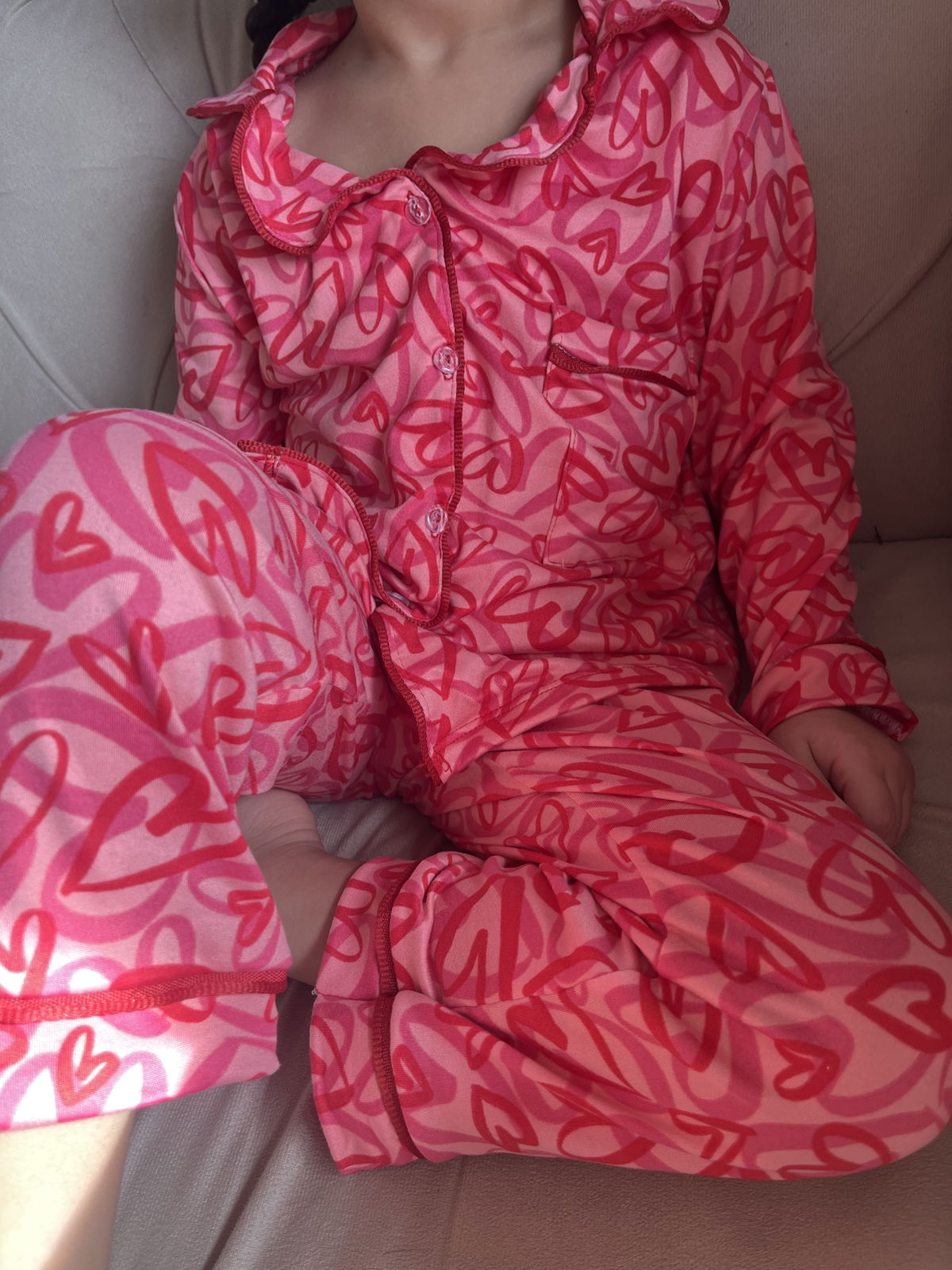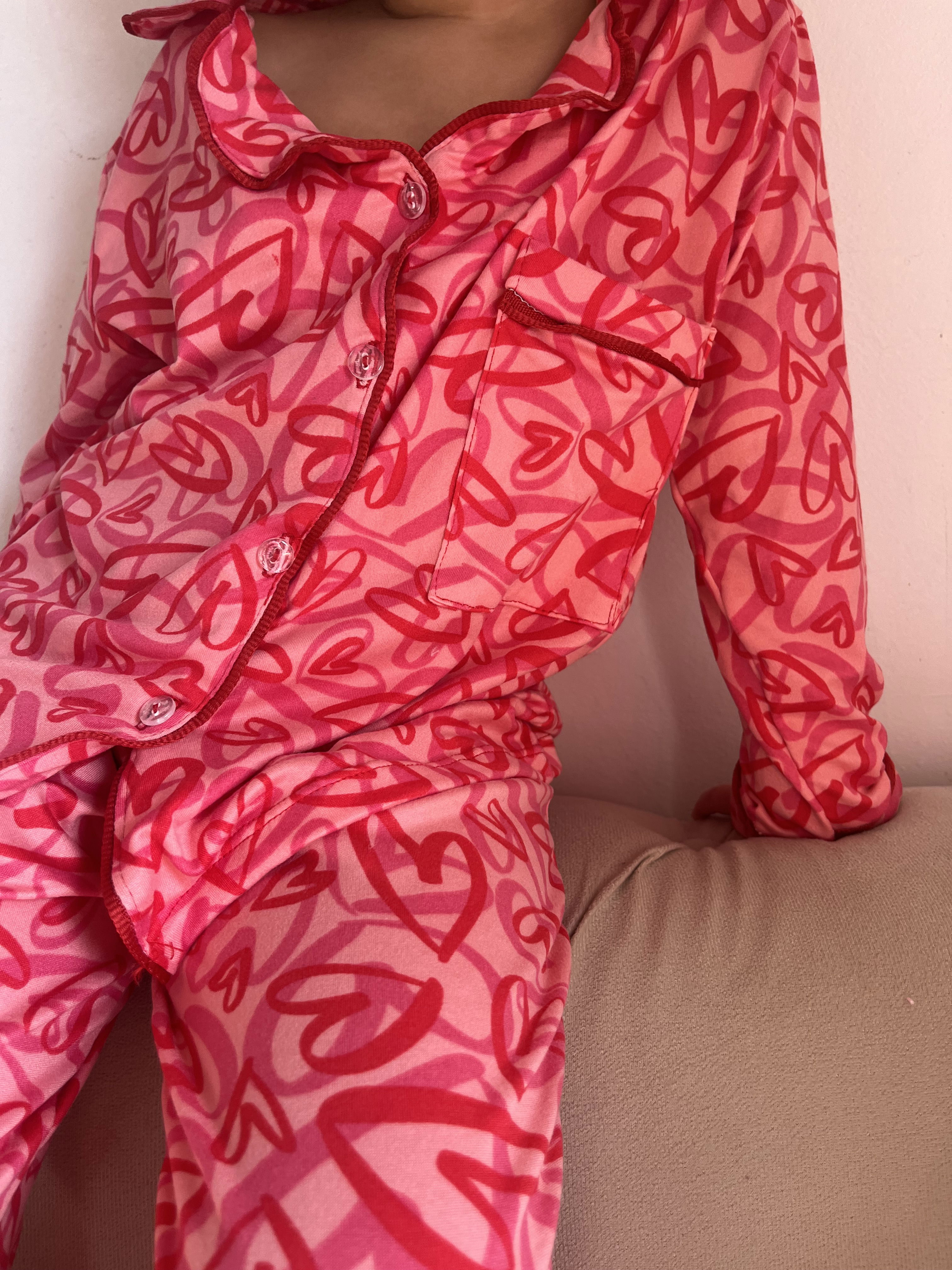 Pijama camisero de modal soft , con vivo rojo y botones transparentes