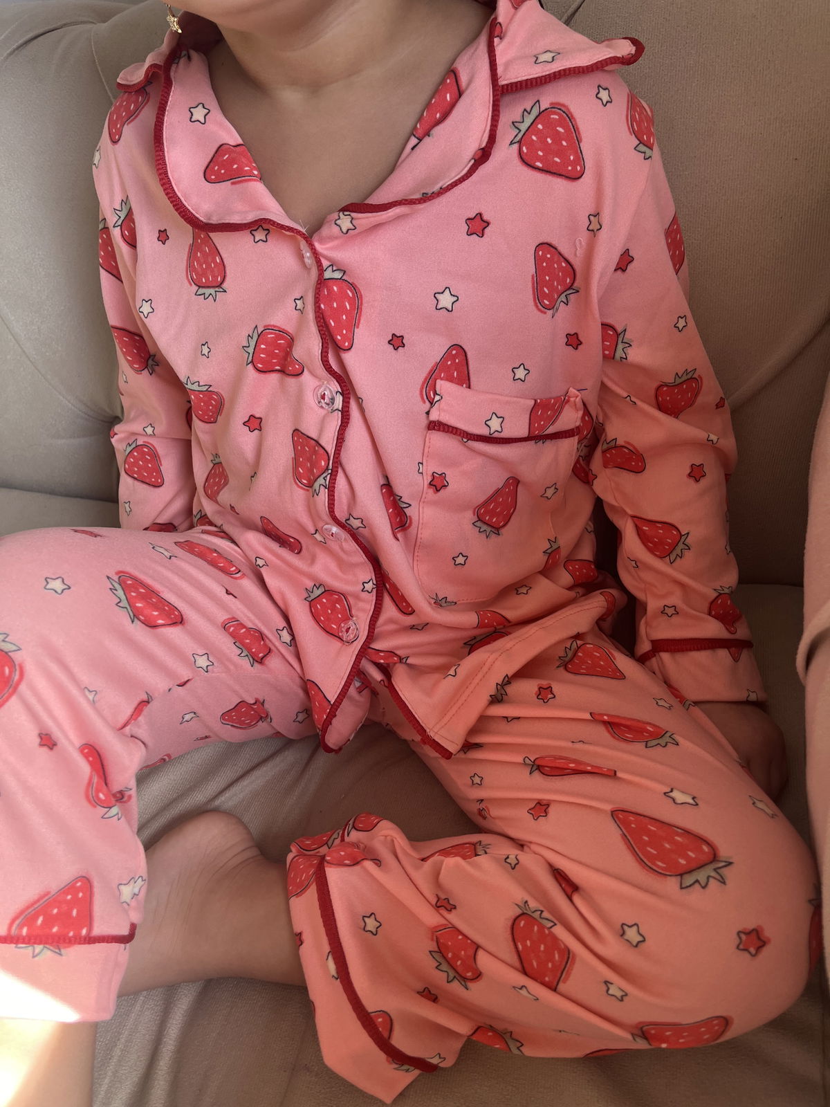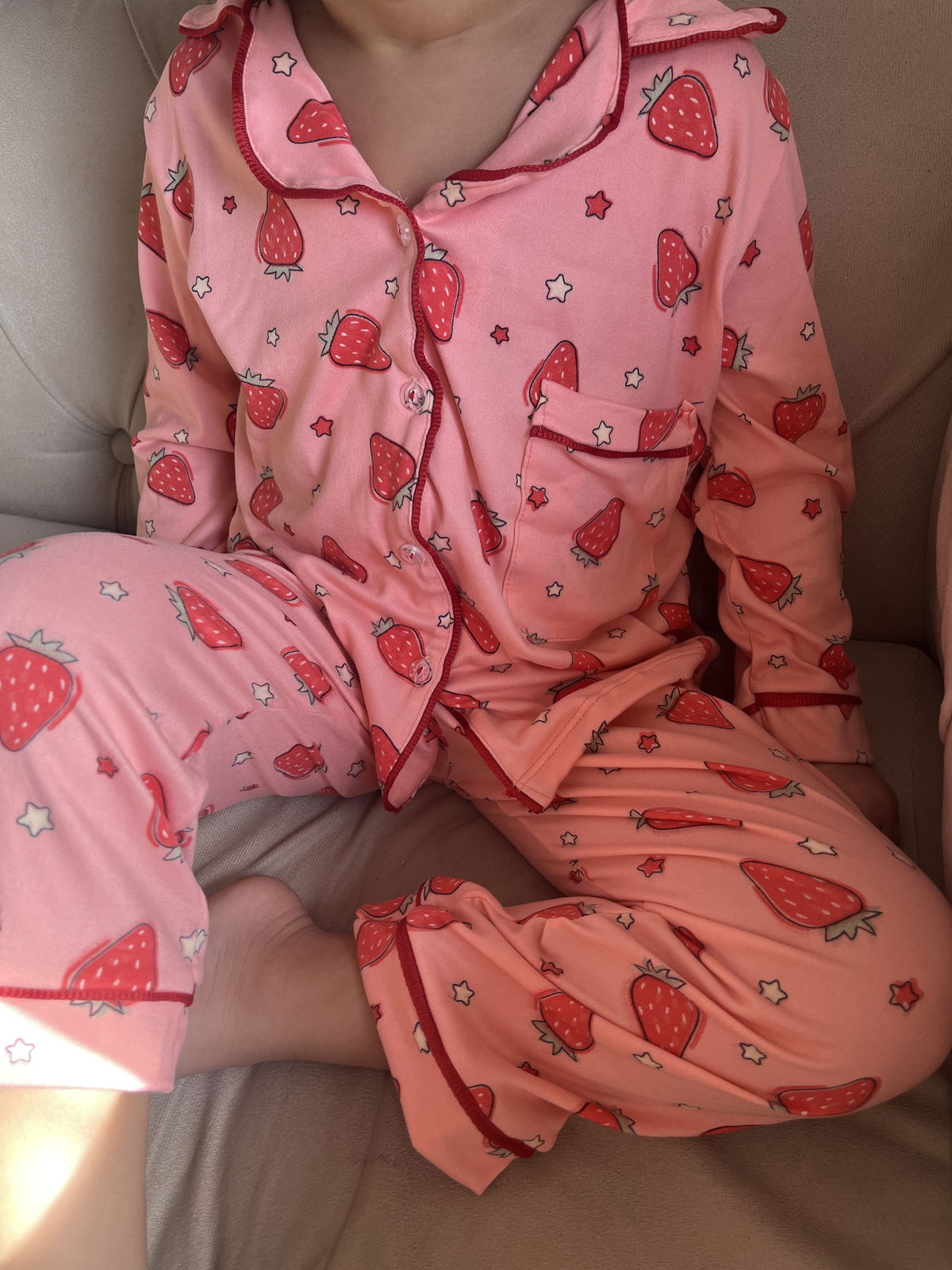 Pijama camisero de modal soft , con vivo rojo y botones transparentes