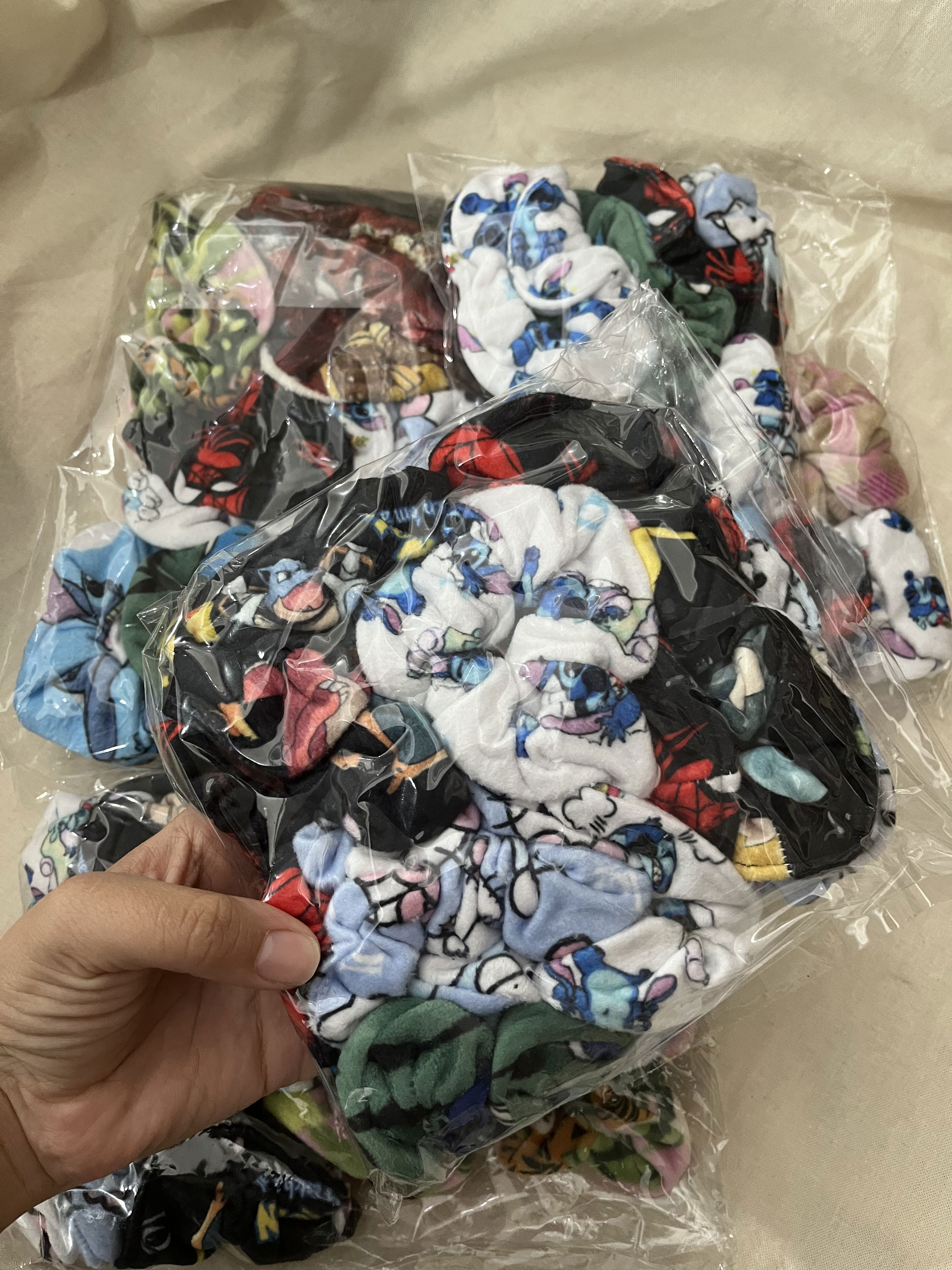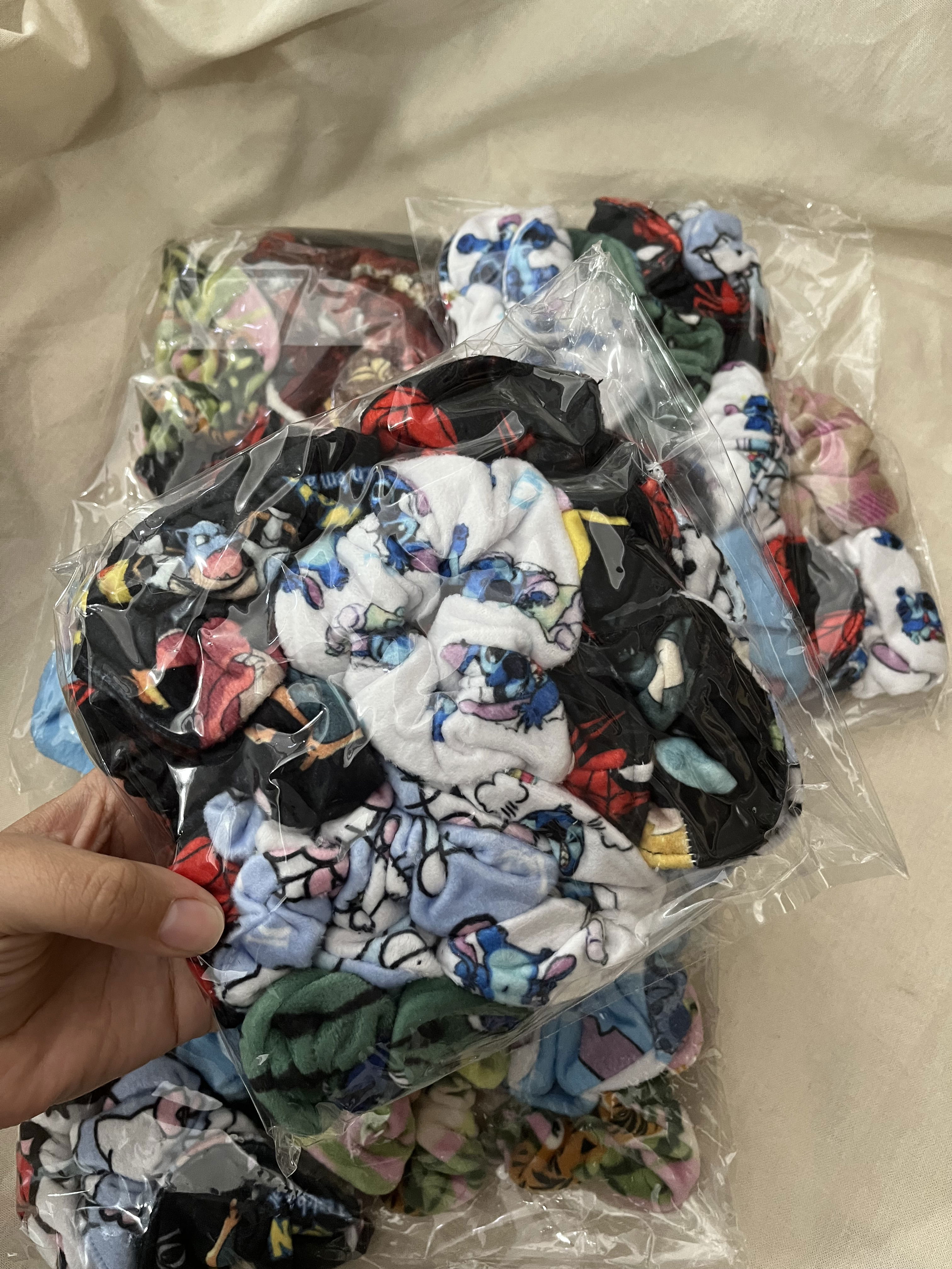 Scrunchies surtidas en diferentes colores , estampas y telas. Ideal para hacer match con tus pijamas