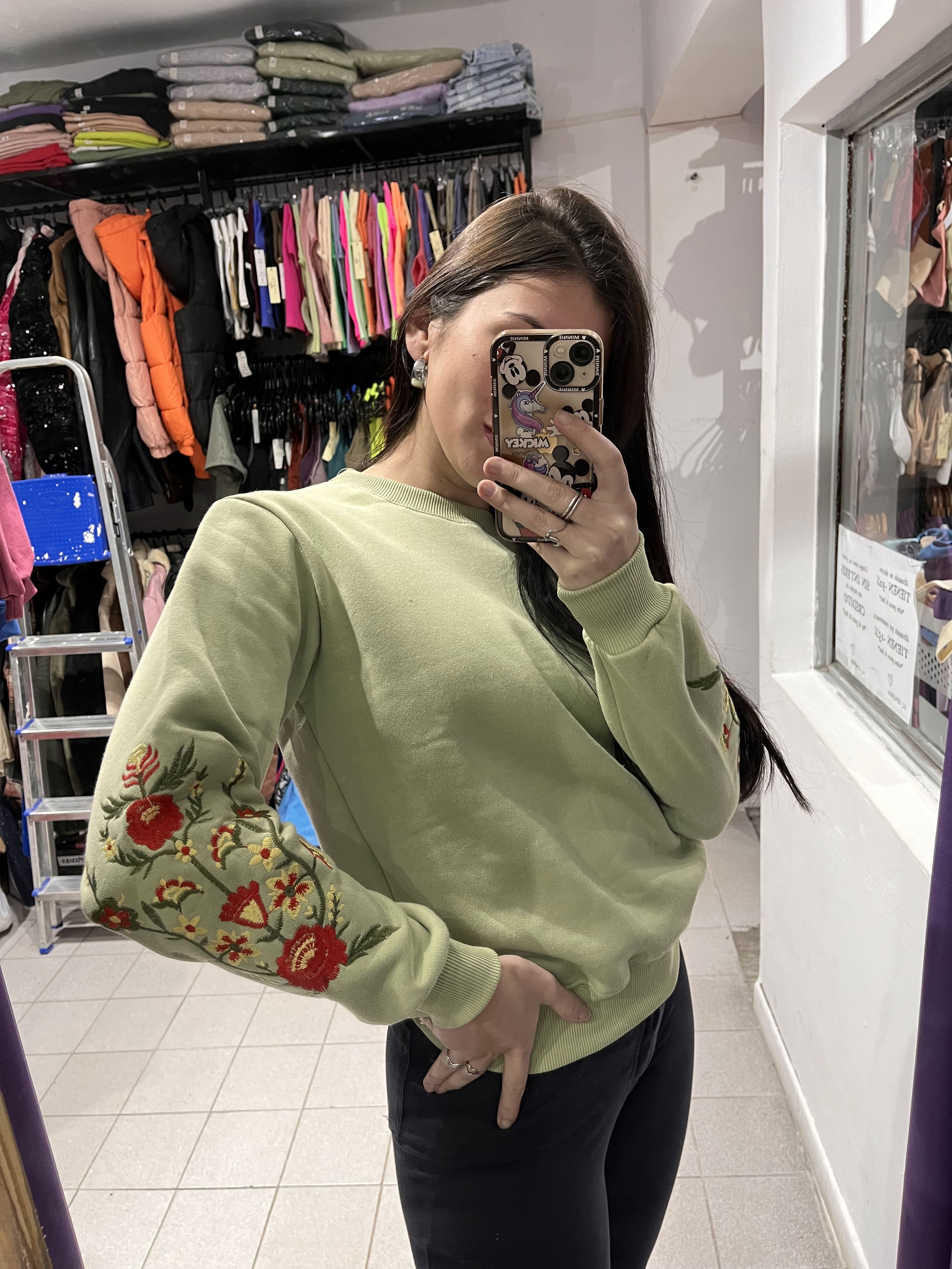 Buzo frizado bordado flores