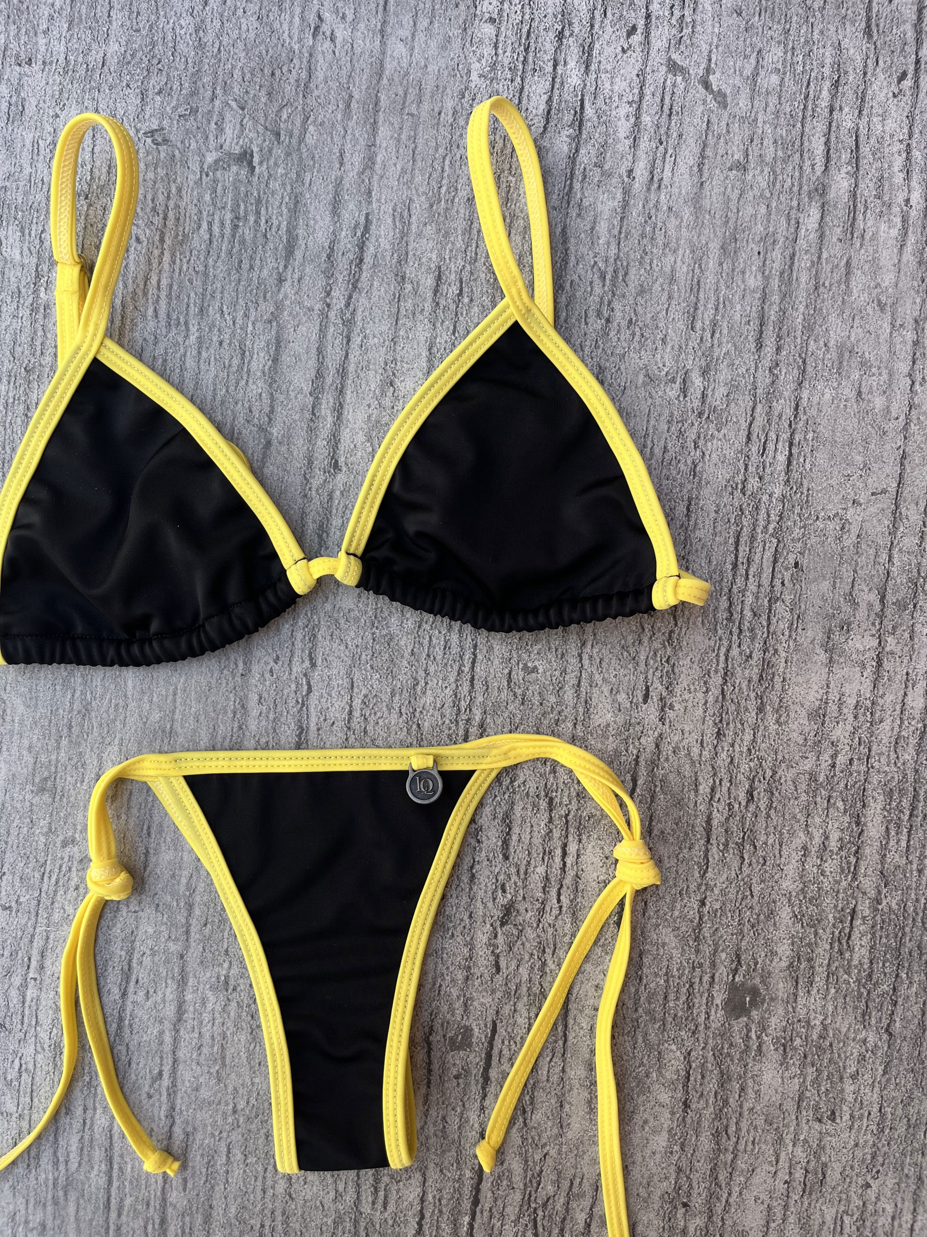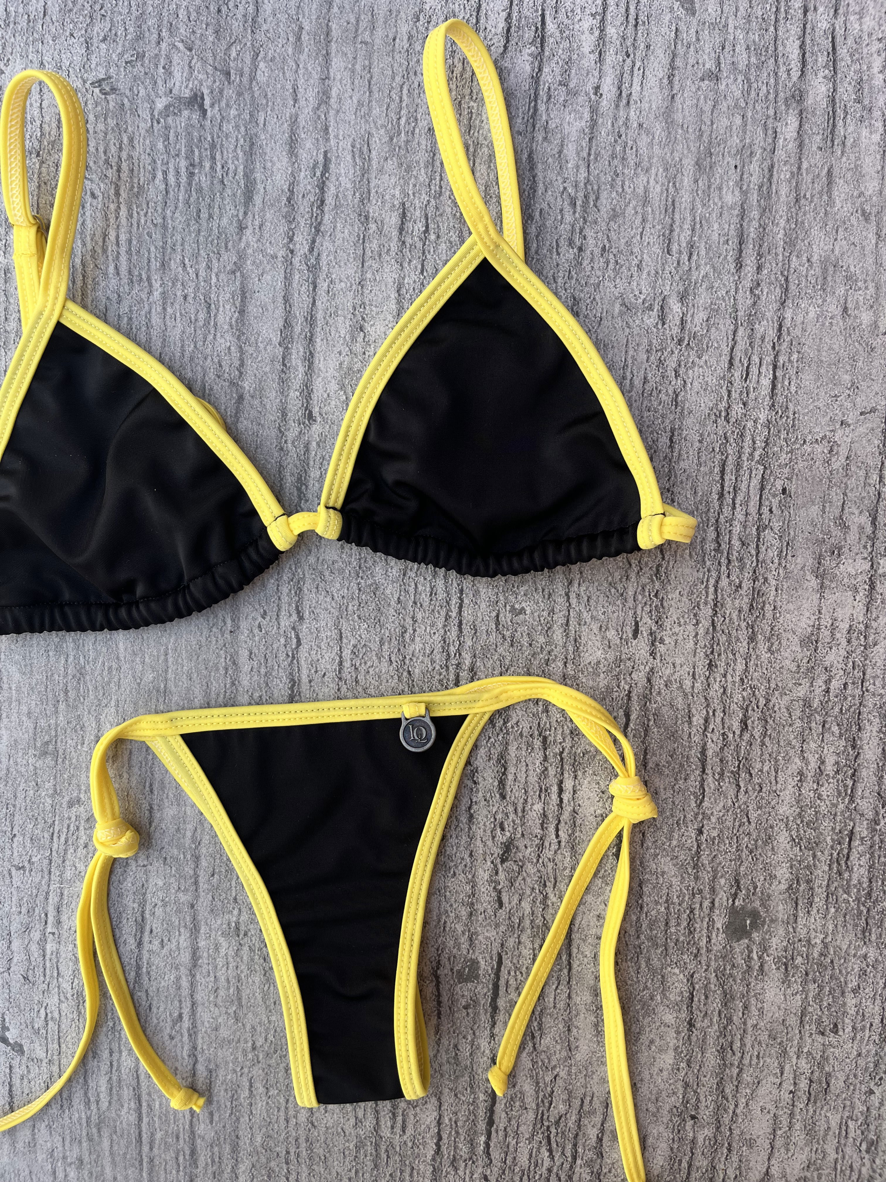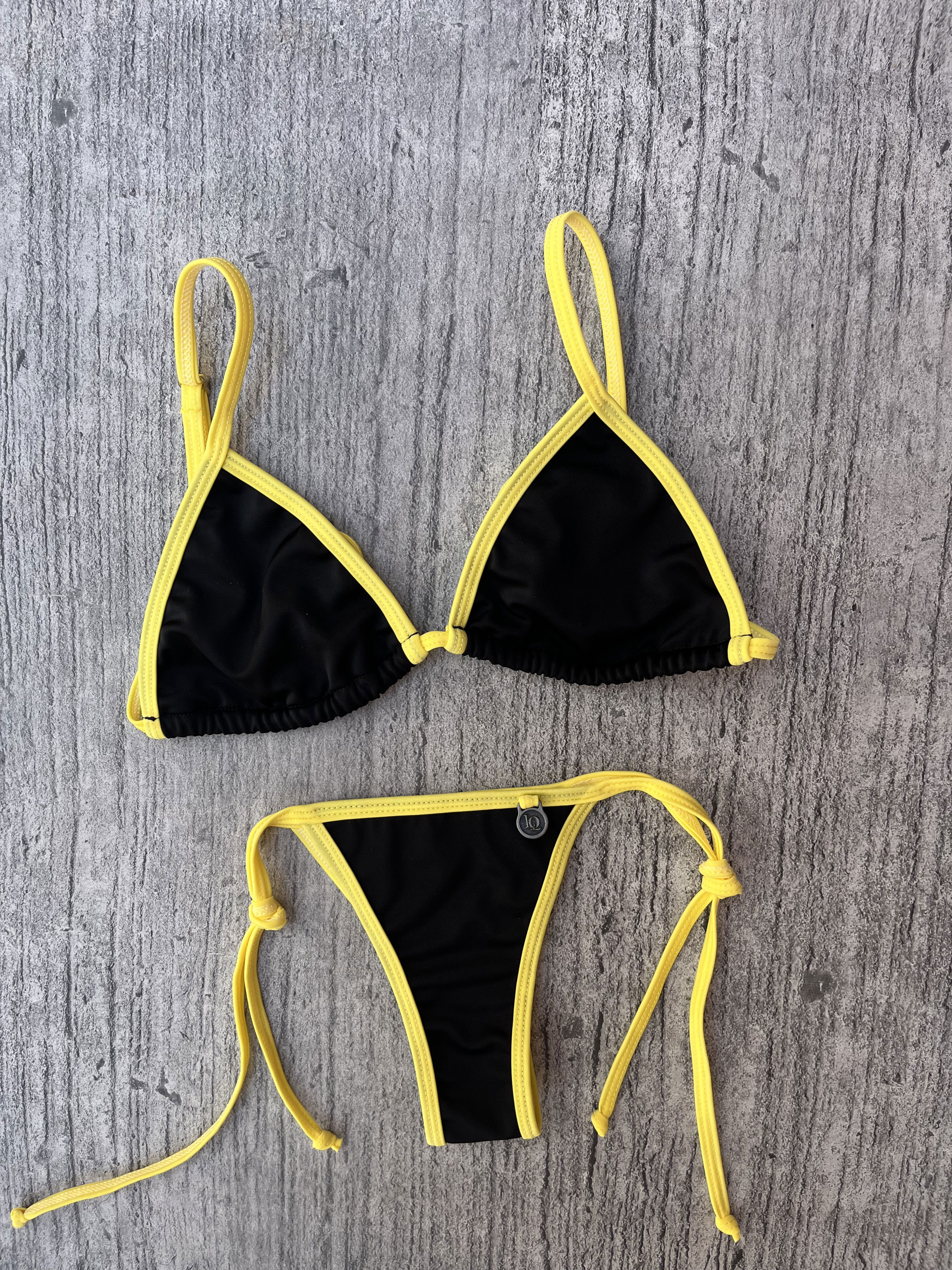 Triángulito con espalda para atar y breteles regulables. Bombi colaless para atar.