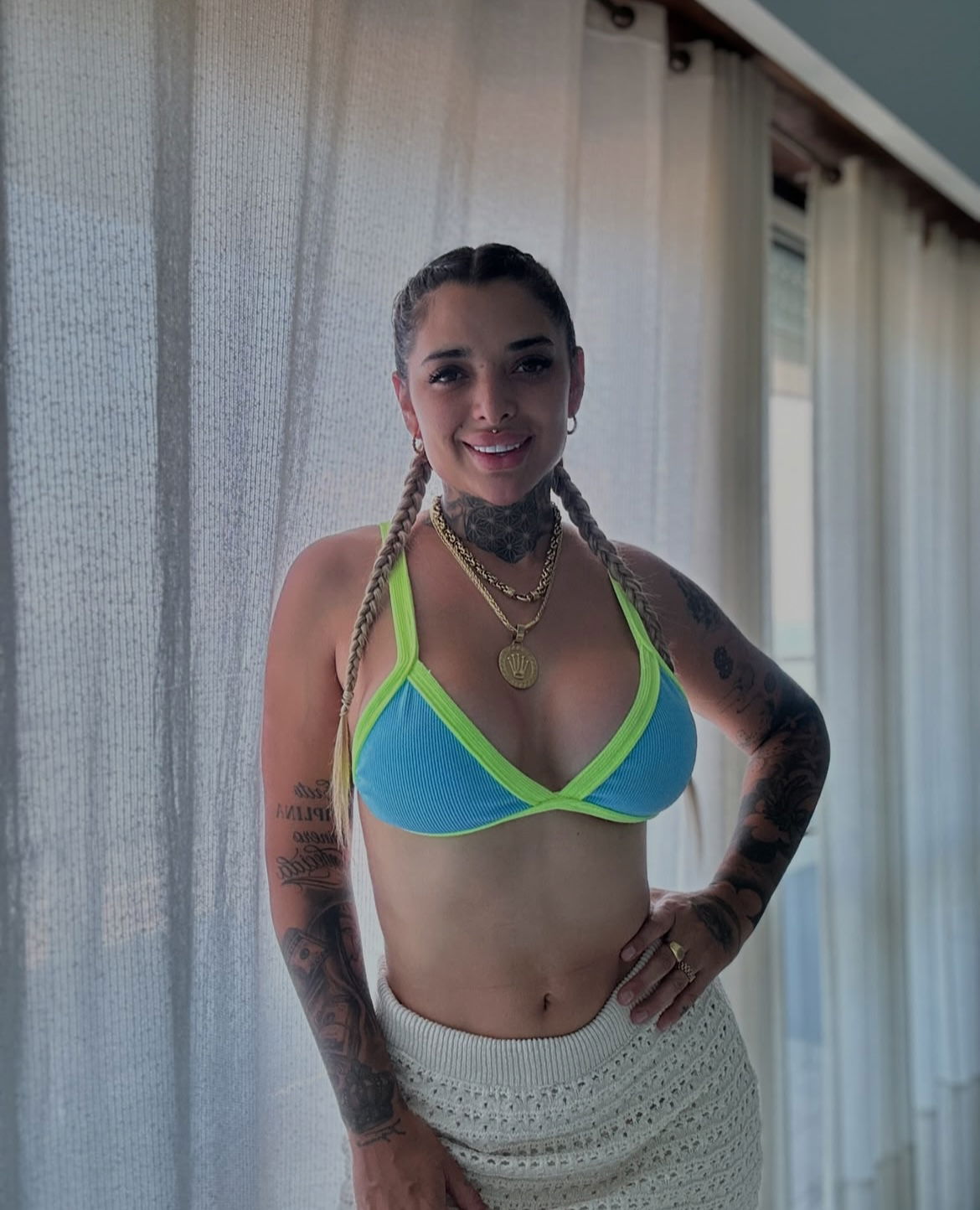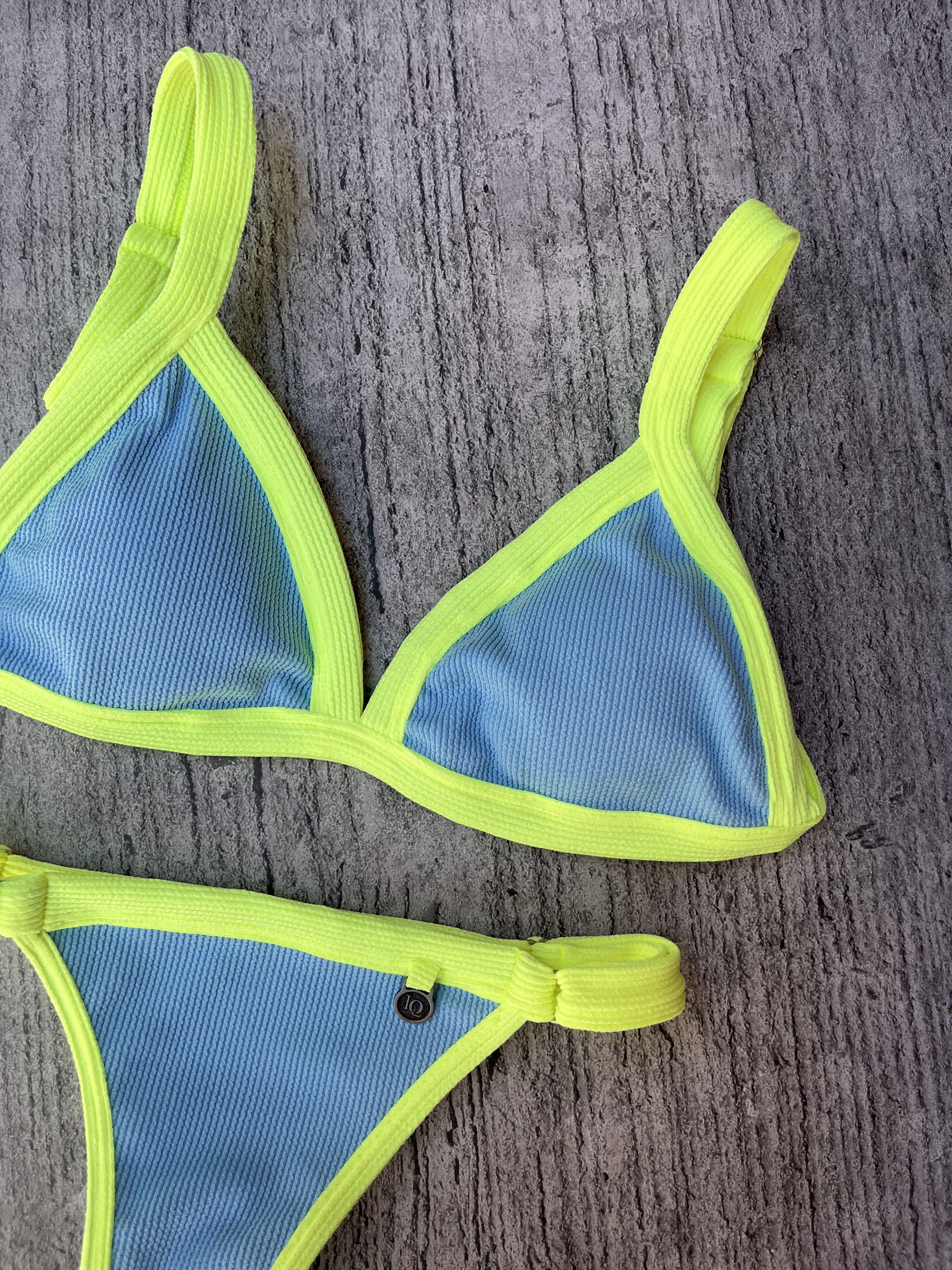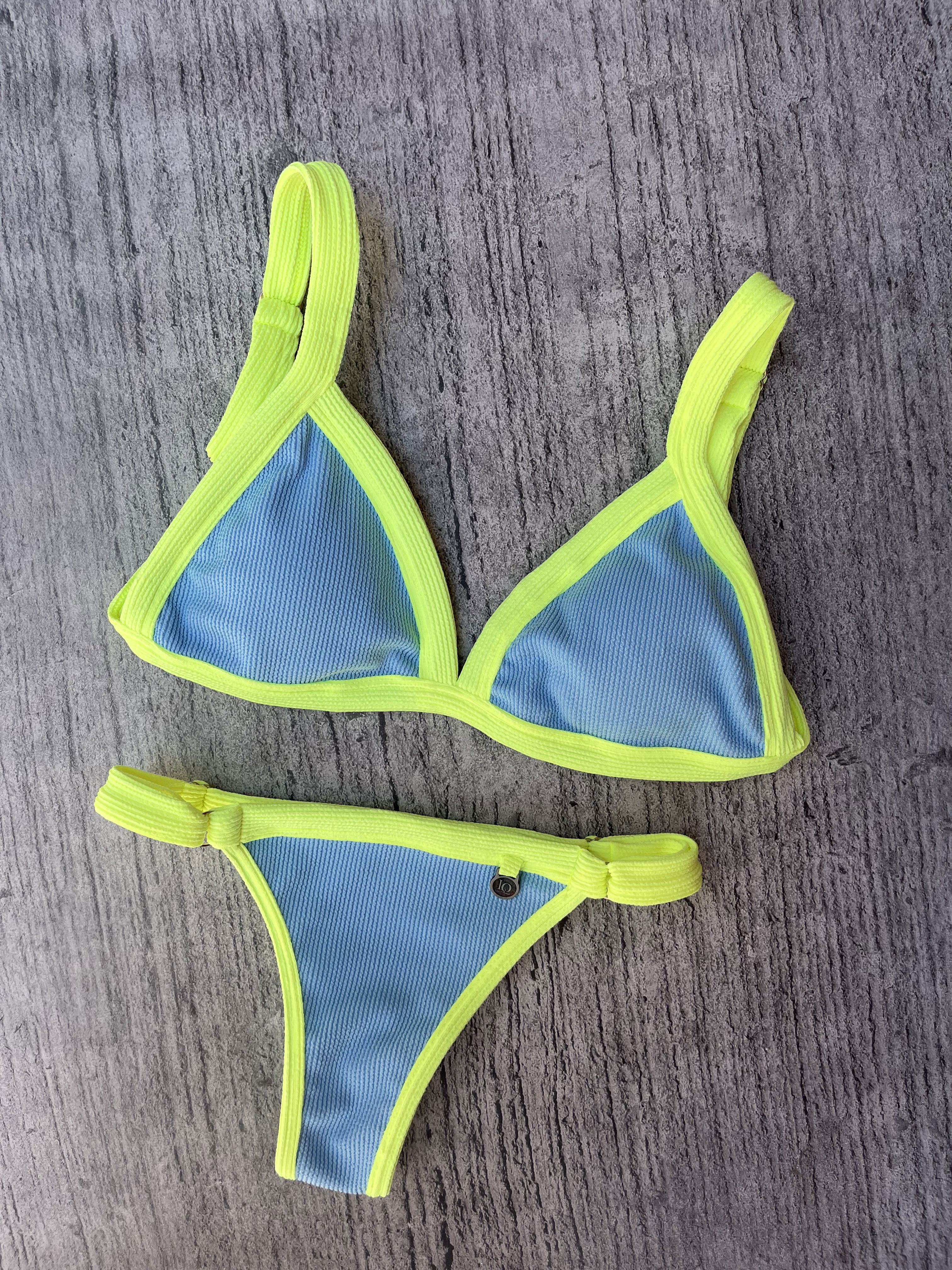 Triángulo texturado con breteles regulables y espalda para atar. Colaless regulable