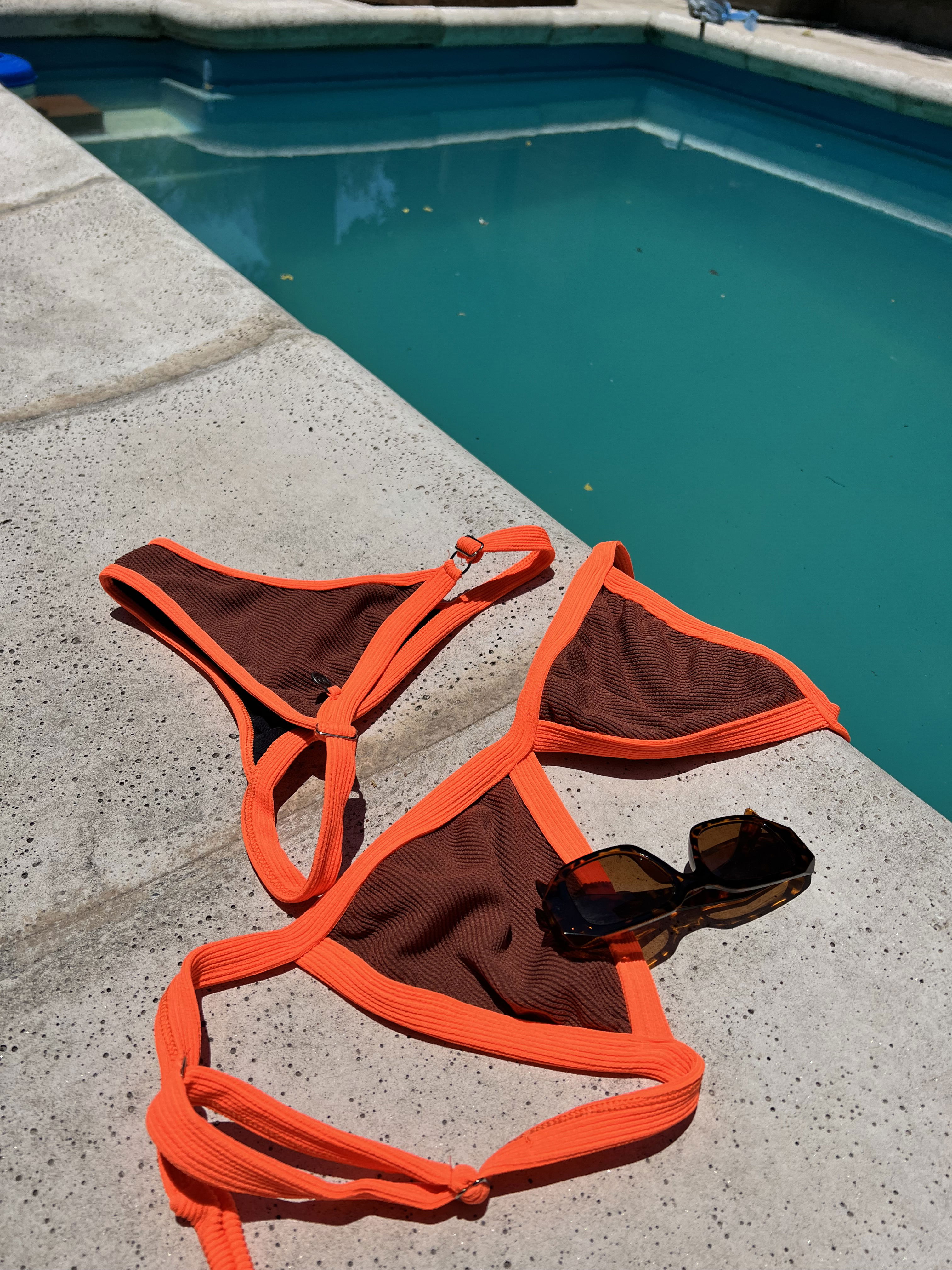 Triángulo texturado con breteles regulables y espalda para atar. Colaless regulable