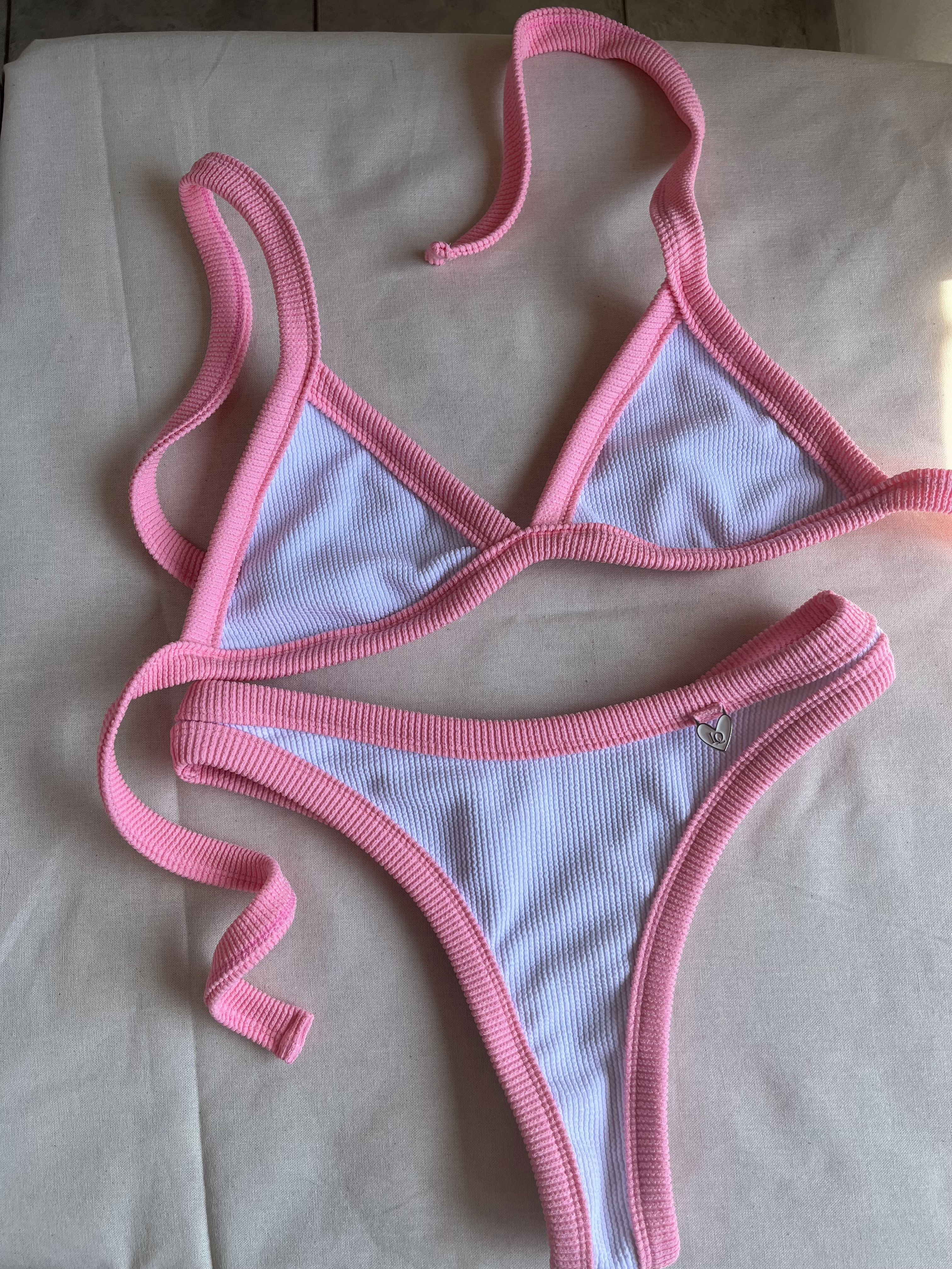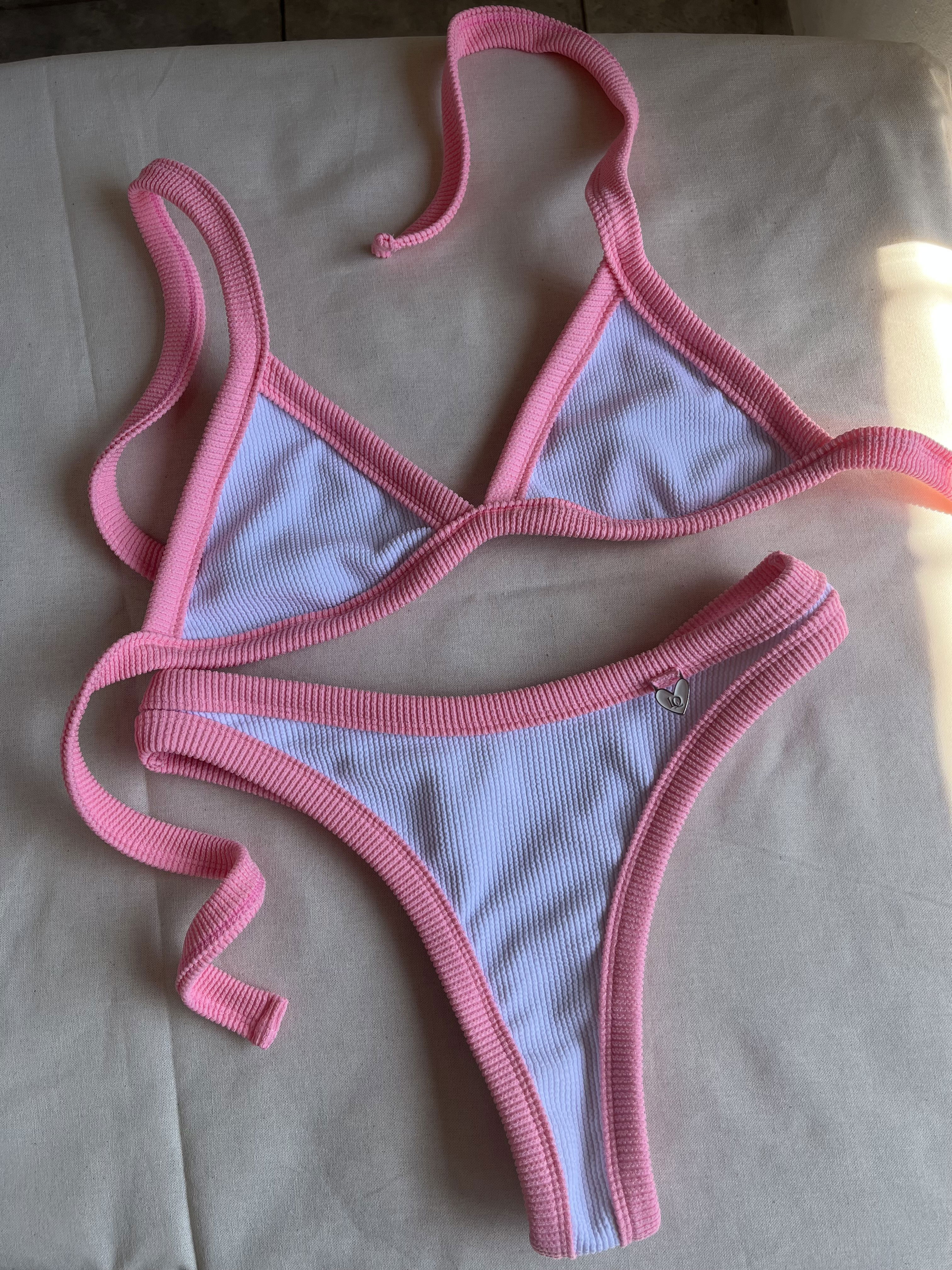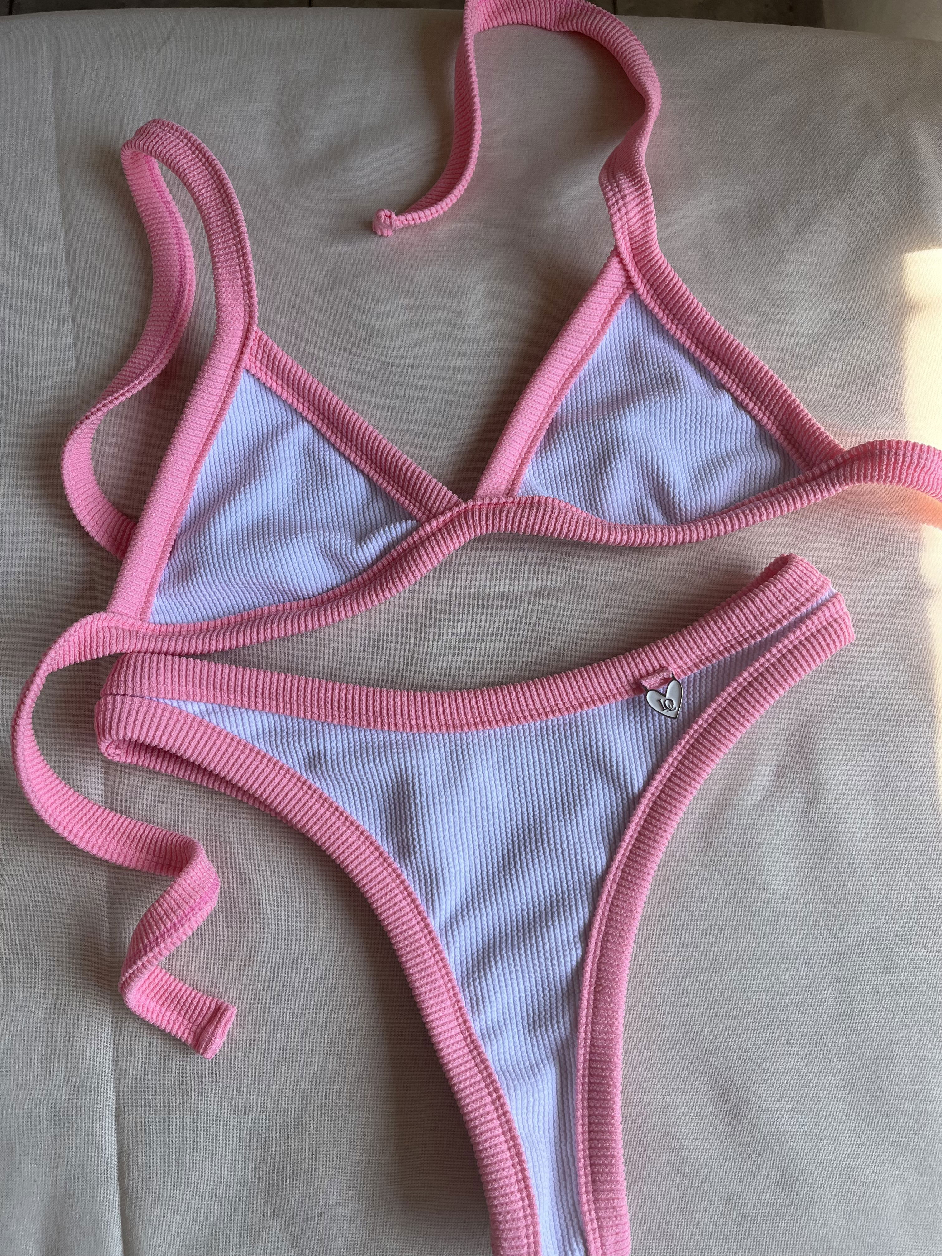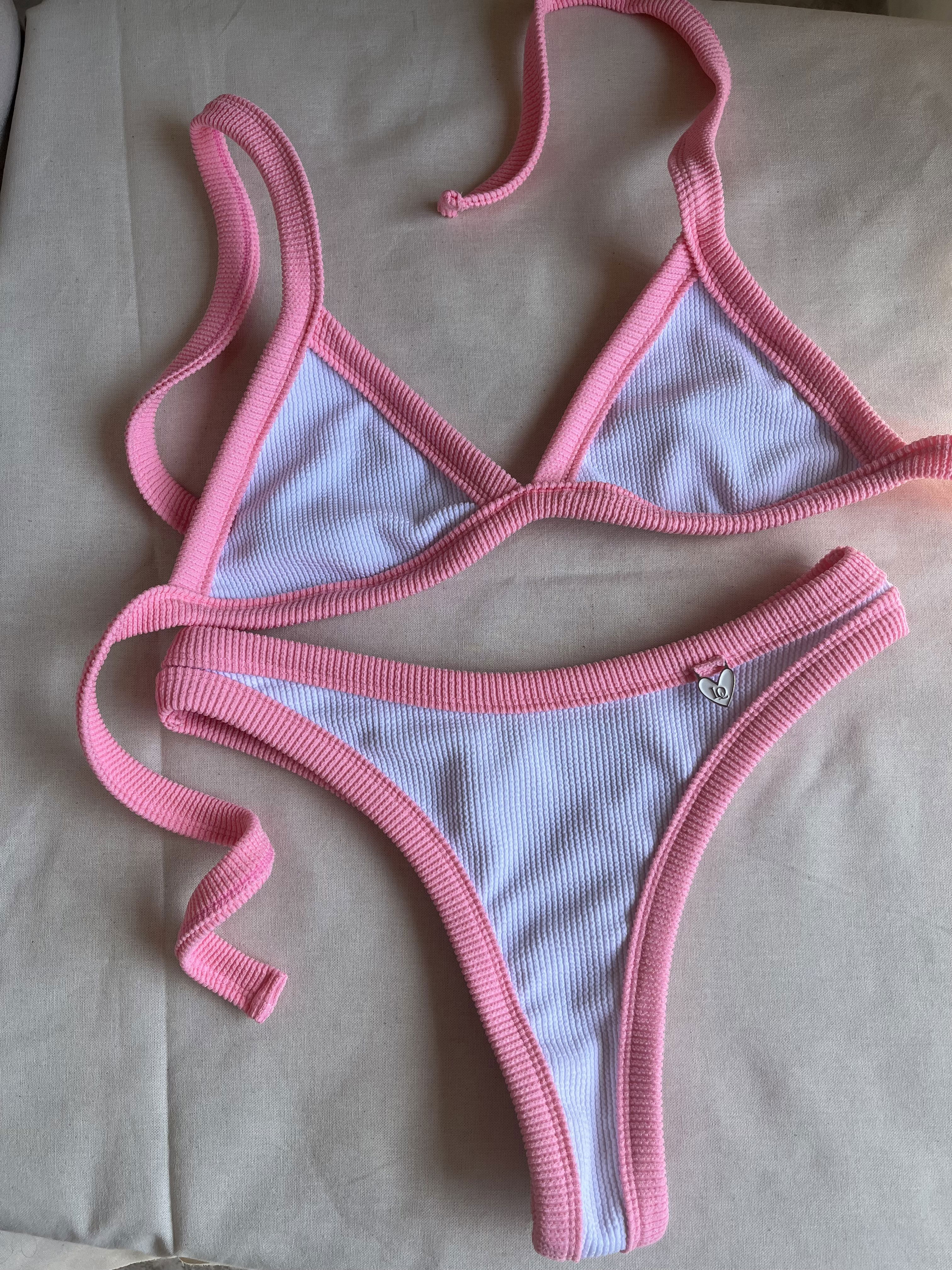 Triángulo con tiras para atar y colaless entera. El corpiño NO TRAE tazas desmontables pero TIENE ABERTURA PARA AGREGARLE. es una de las bikinis más elegidas por su comodidad y sostén !