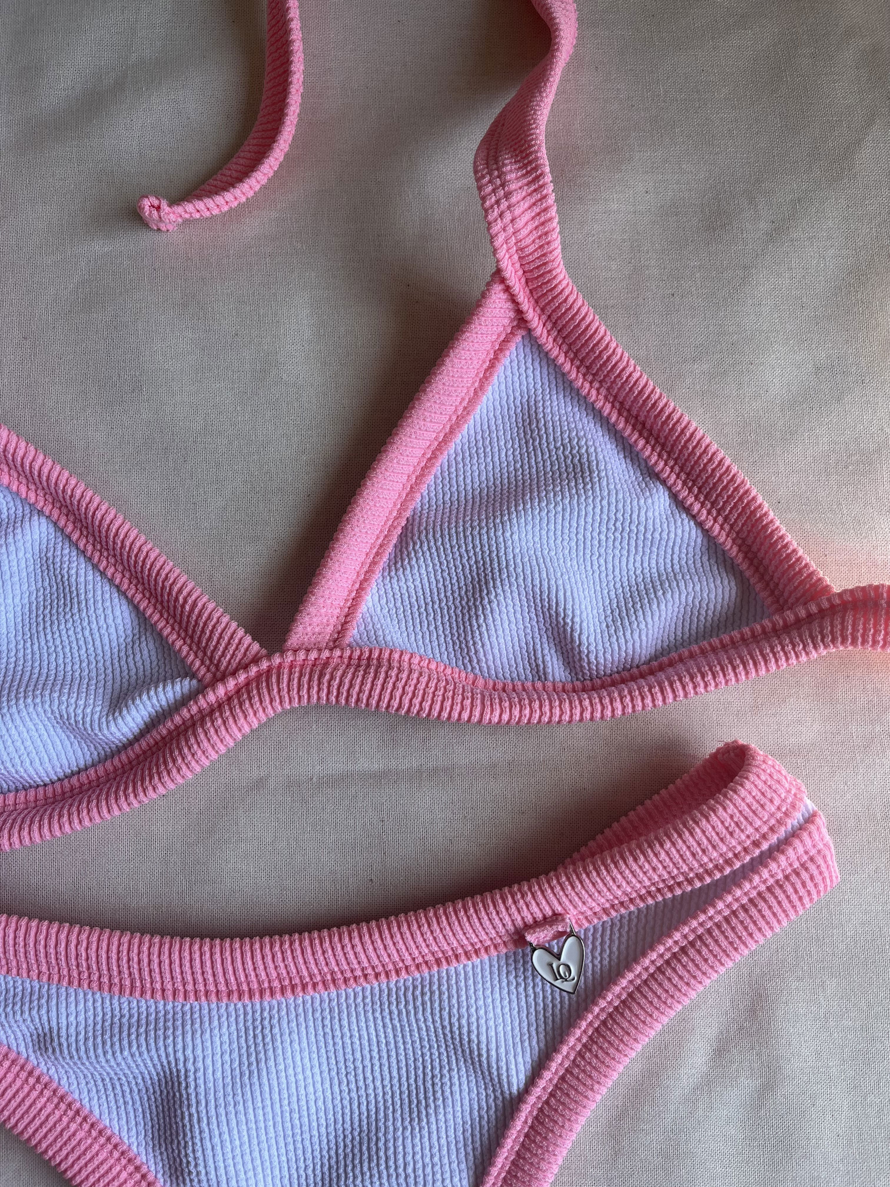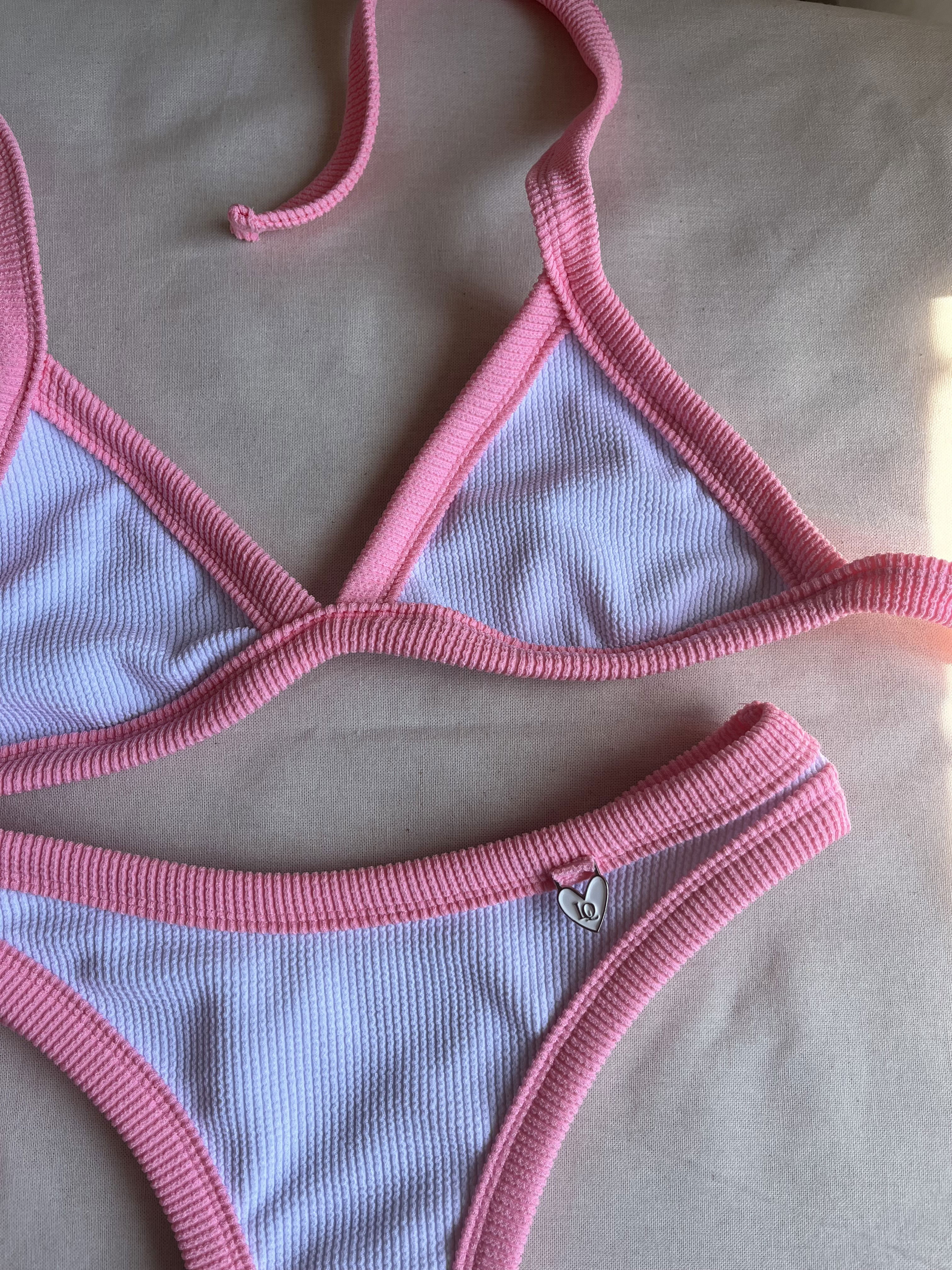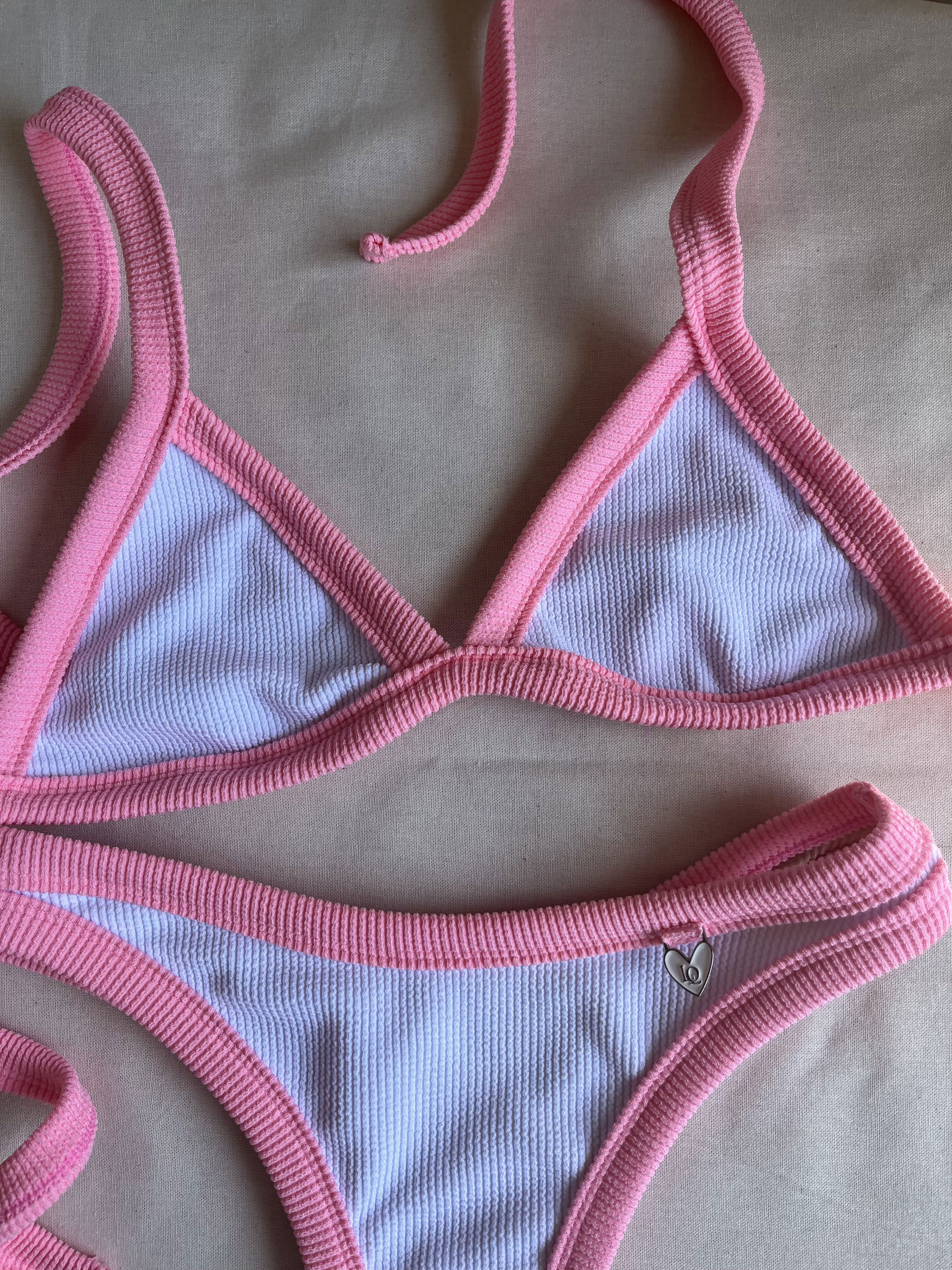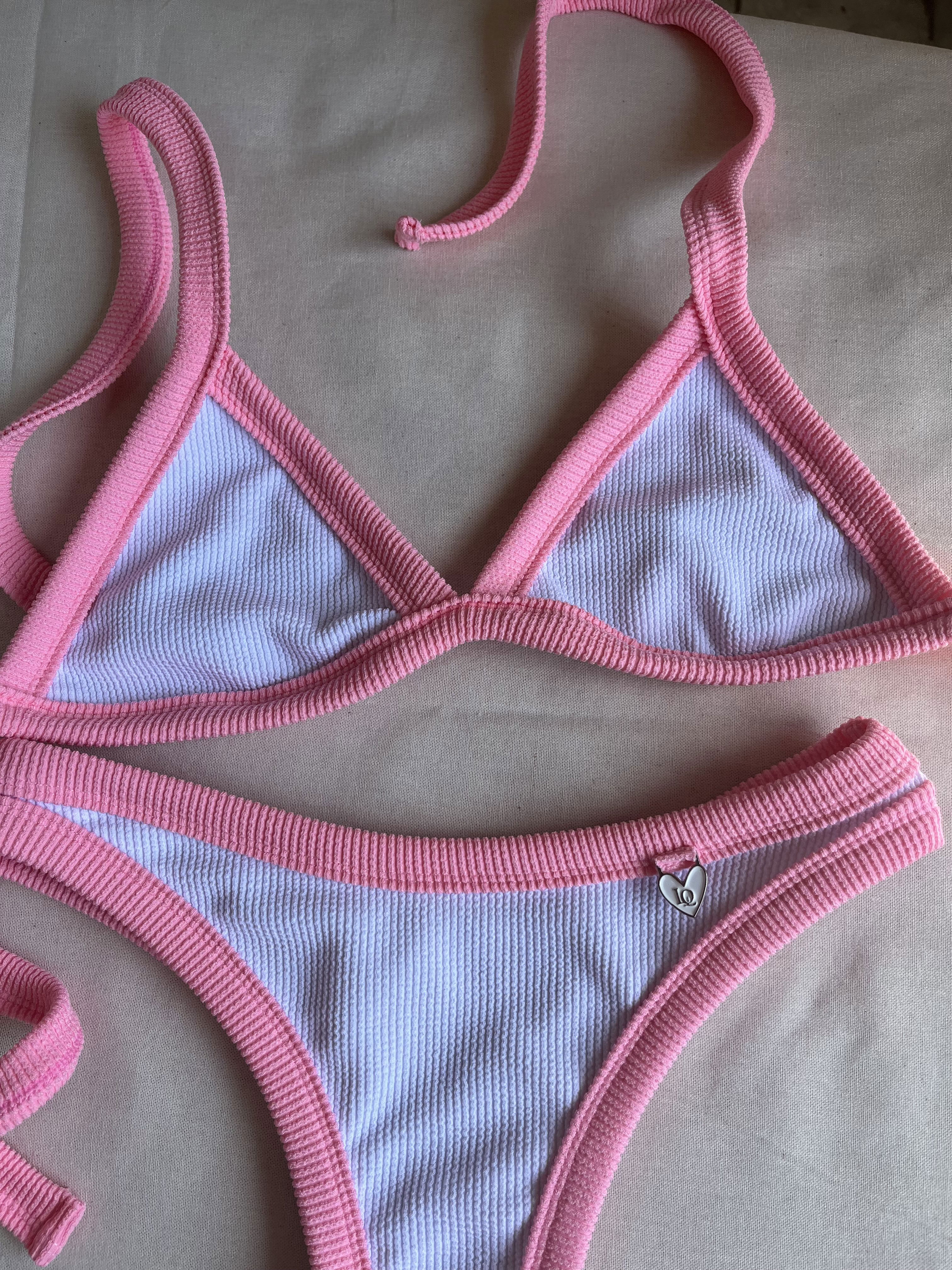 Triángulo con tiras para atar y colaless entera. El corpiño NO TRAE tazas desmontables pero TIENE ABERTURA PARA AGREGARLE. es una de las bikinis más elegidas por su comodidad y sostén !