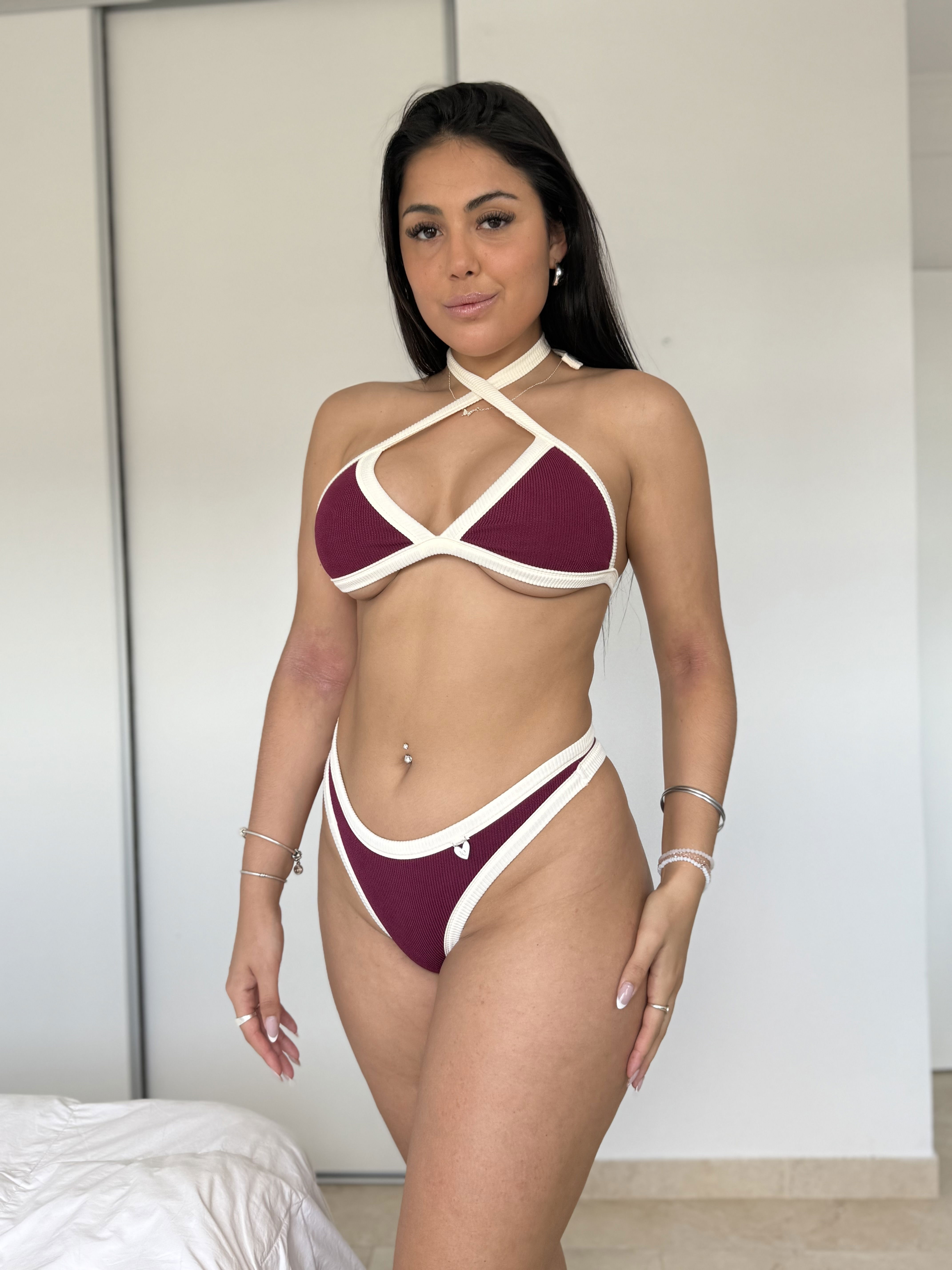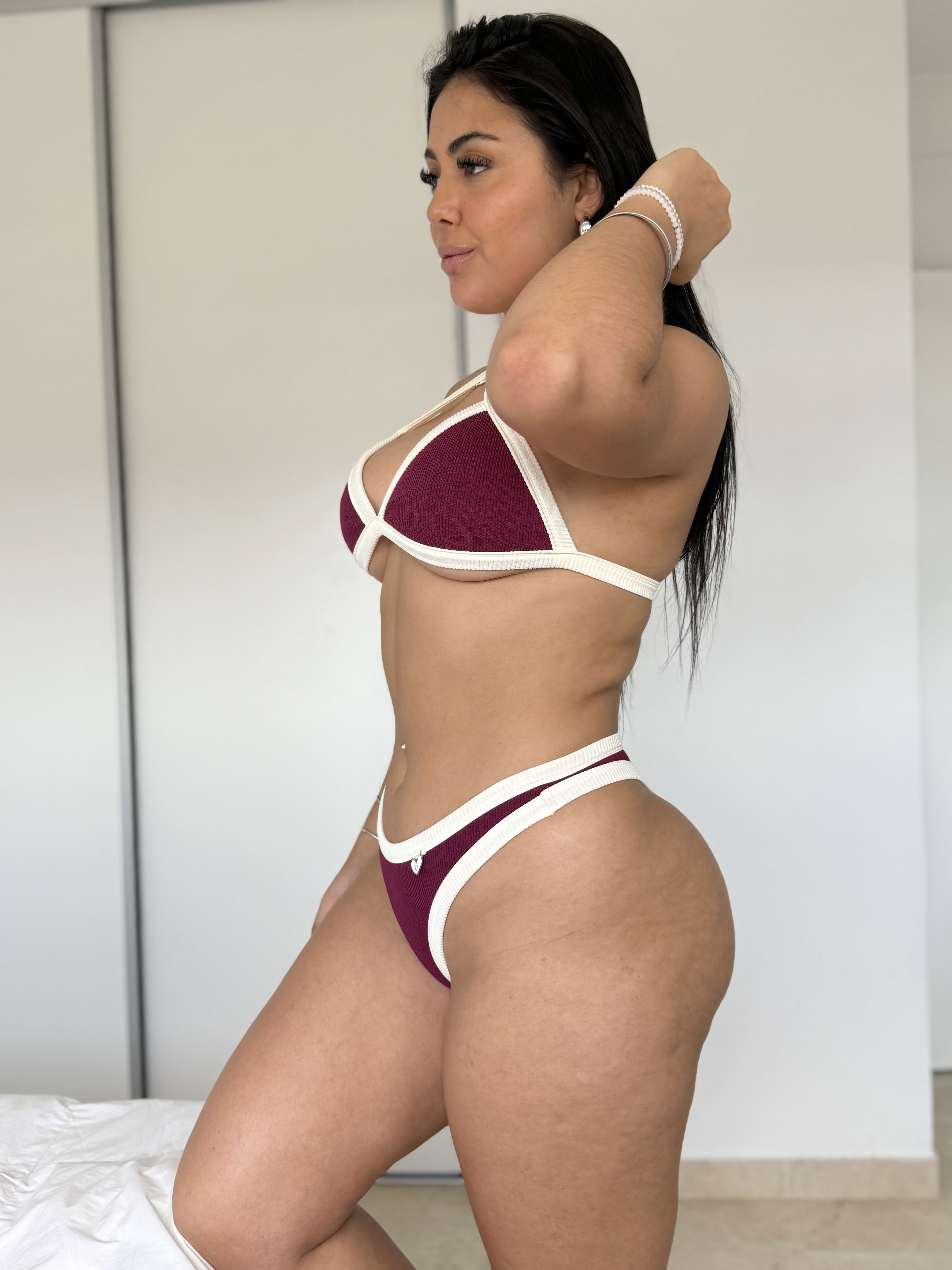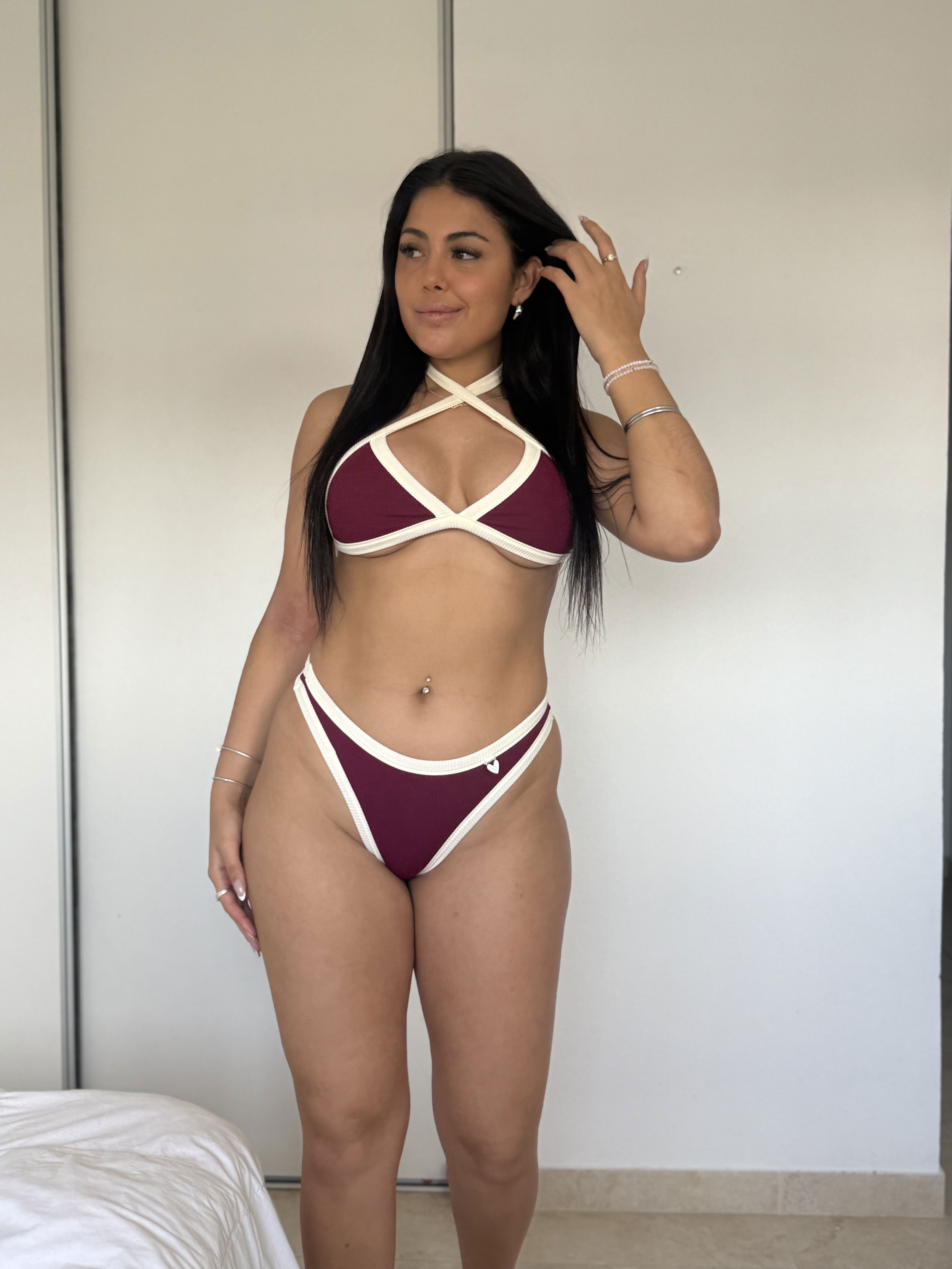 Triángulo con tiras para atar y colaless entera. El corpiño NO TRAE tazas desmontables pero TIENE ABERTURA PARA AGREGARLE. es una de las bikinis más elegidas por su comodidad y sostén !