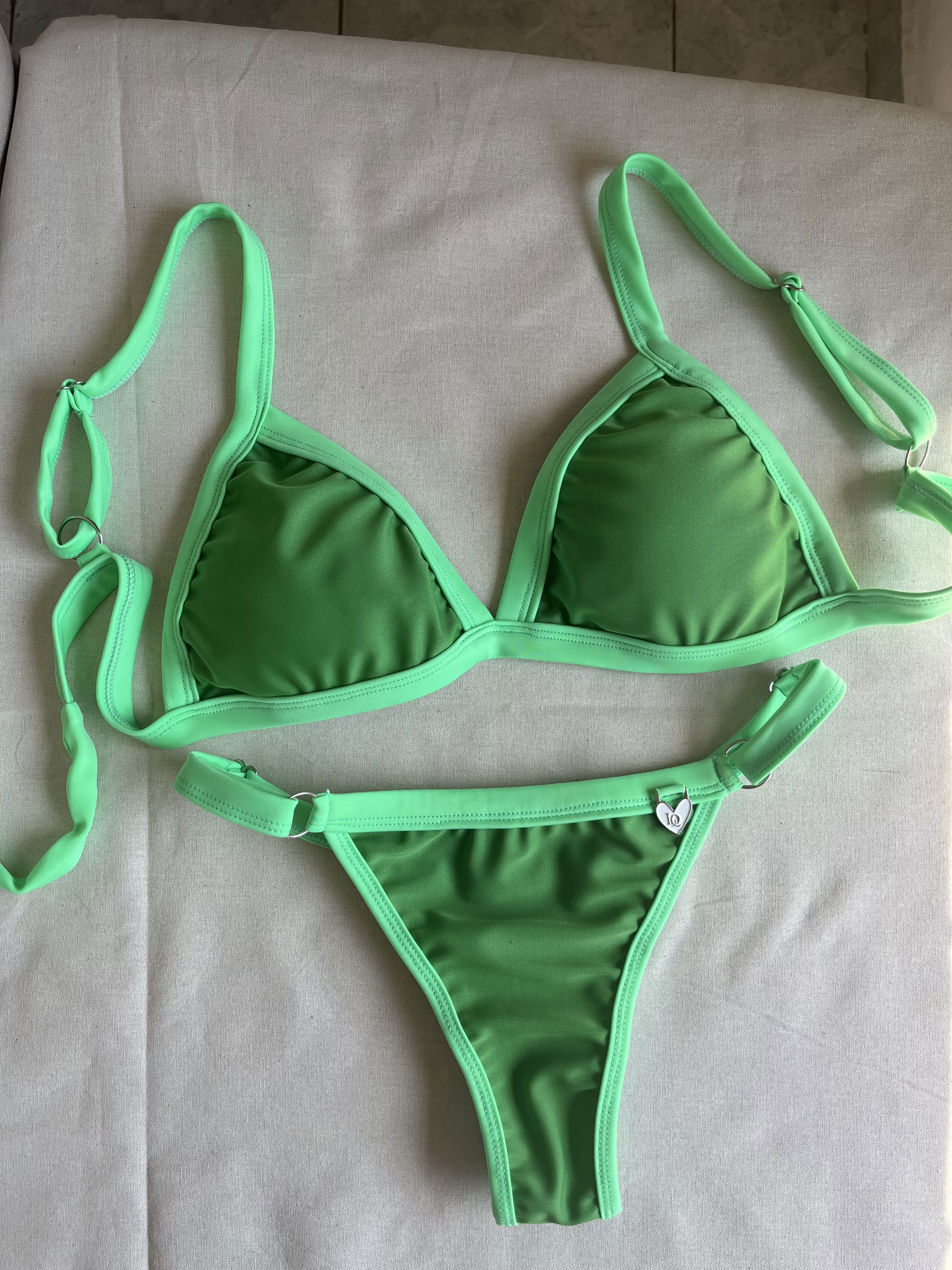 Triángulo de lycra tricot con breteles regulables y espalda para atar. Colaless regulable