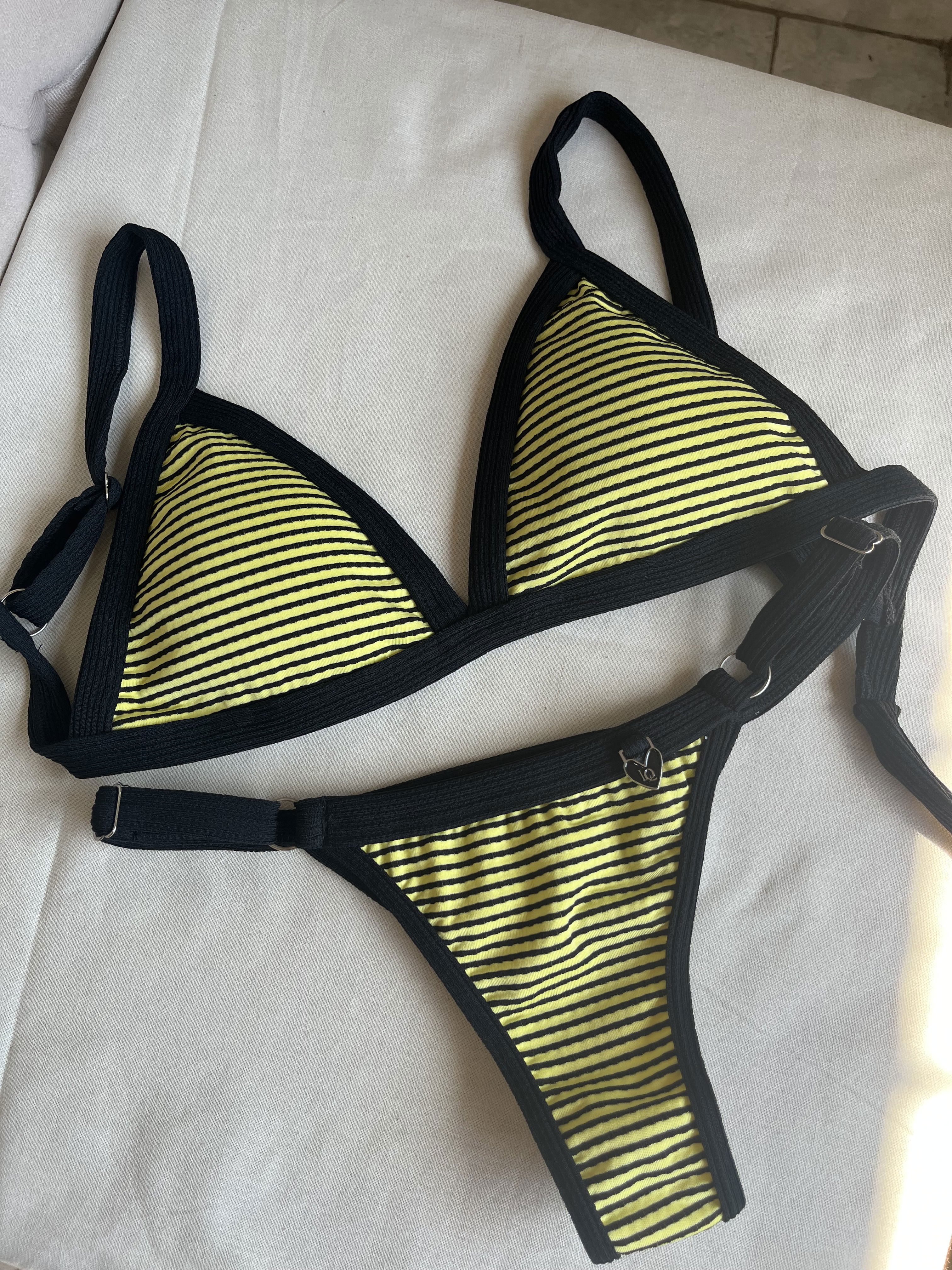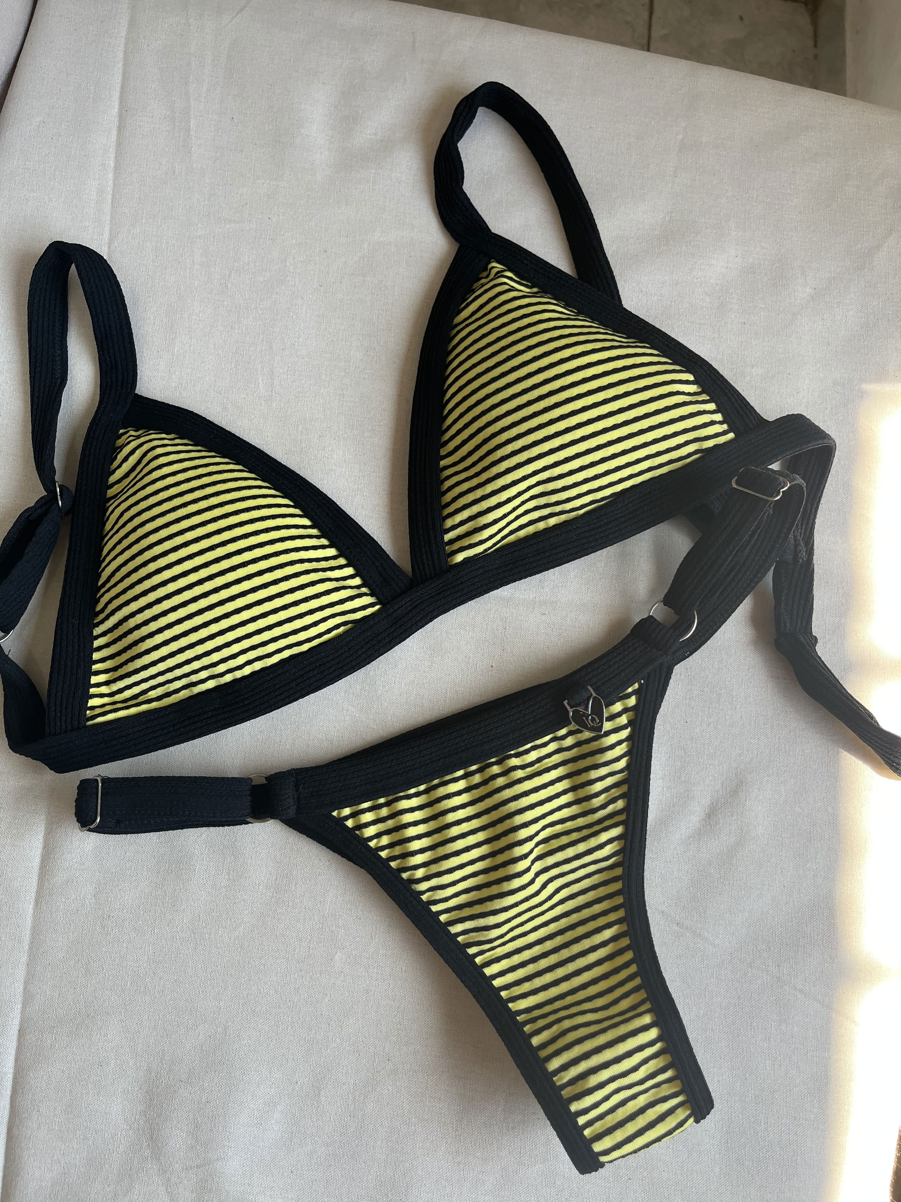 Triángulo texturado con breteles regulables y espalda para atar. Colaless regulable