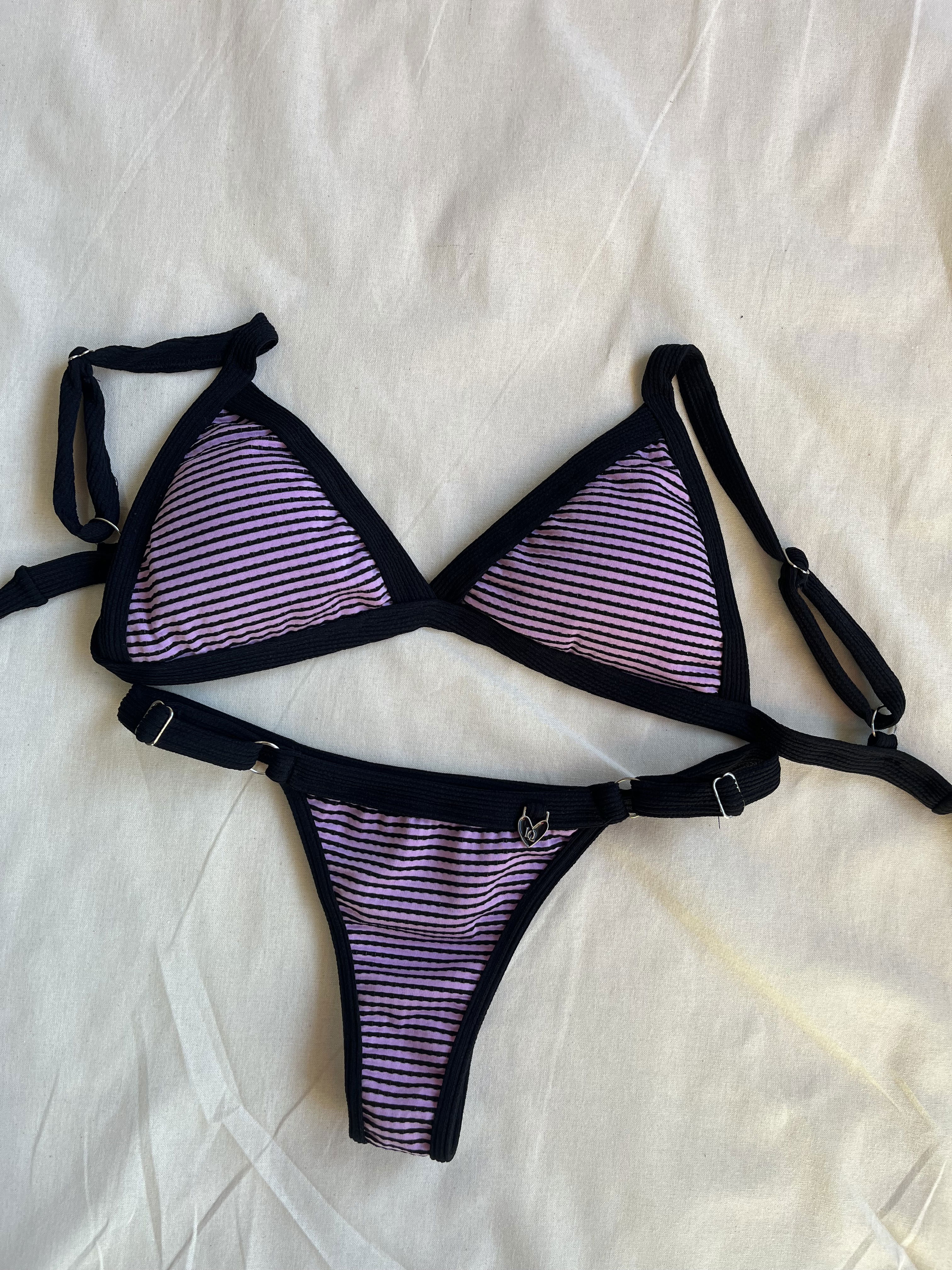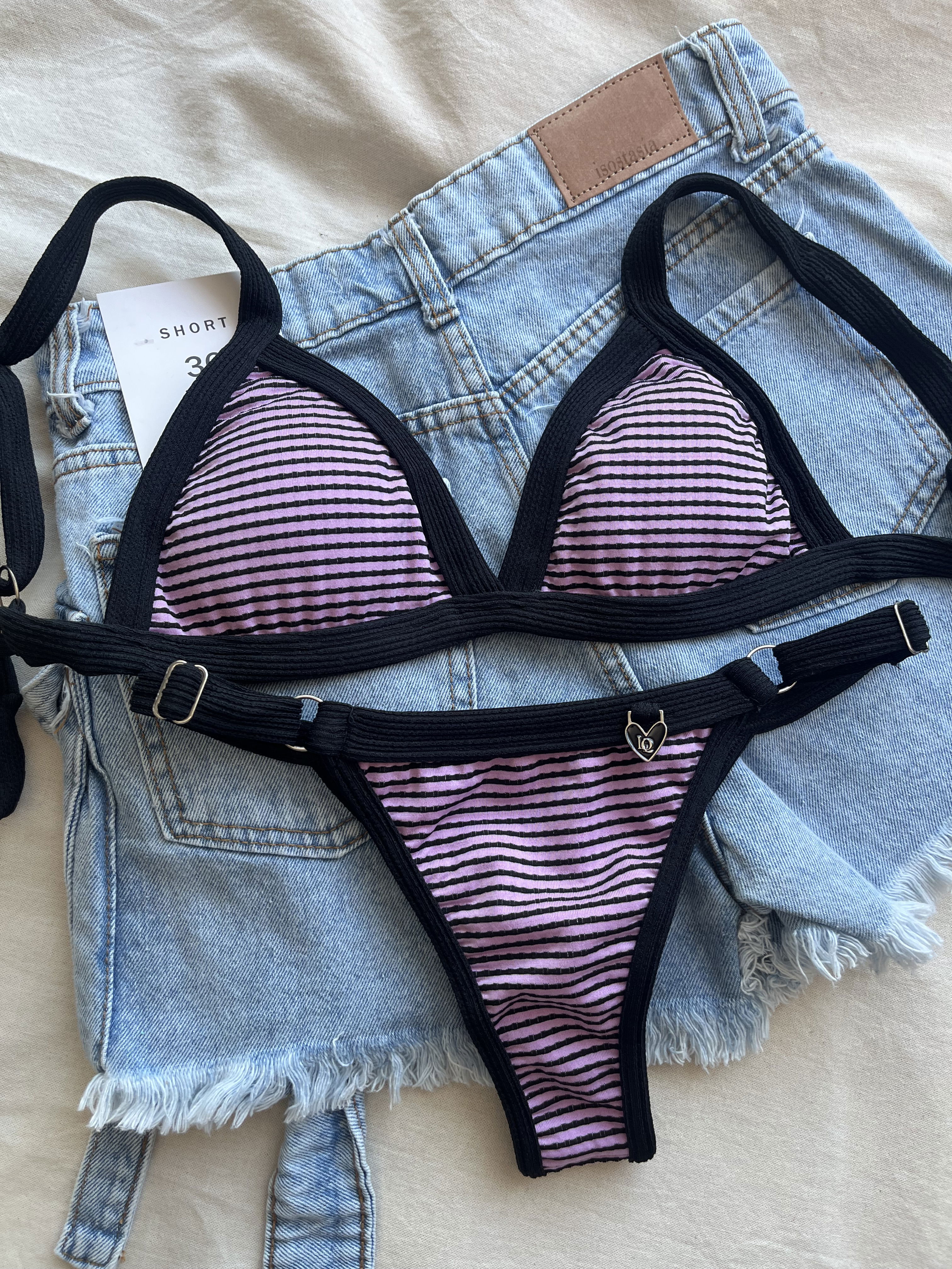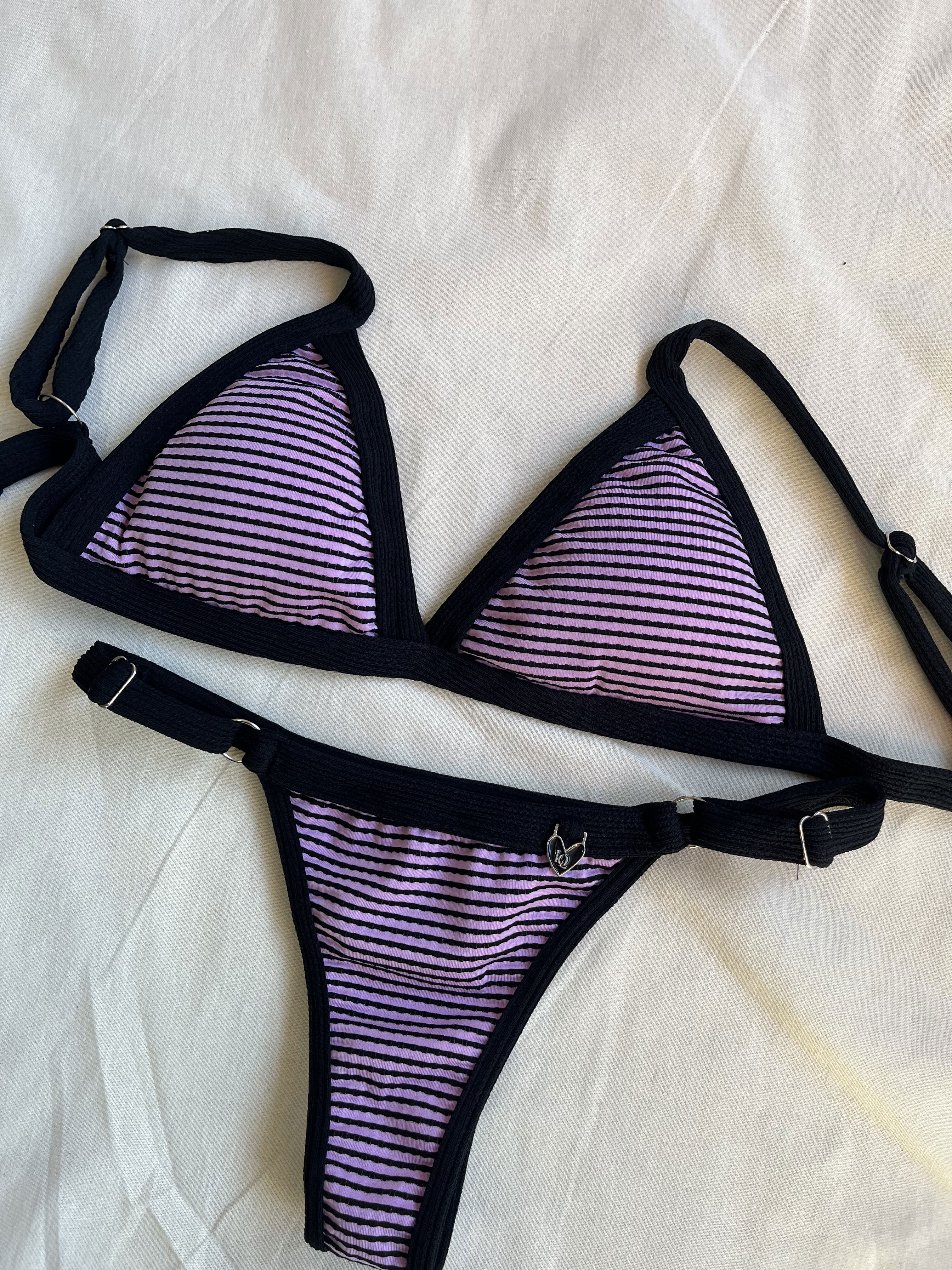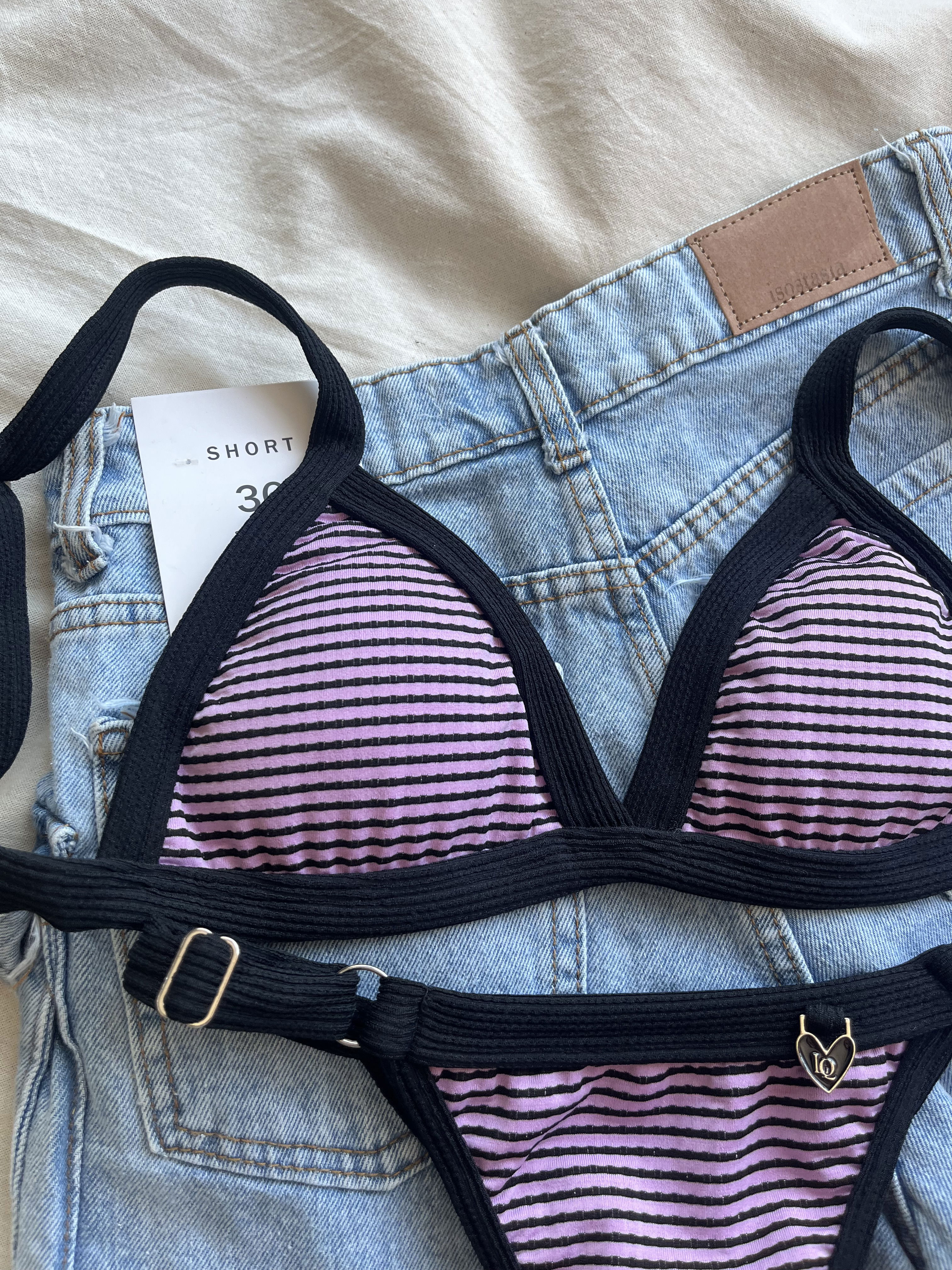 Triángulo texturado con breteles regulables y espalda para atar. Colaless regulable