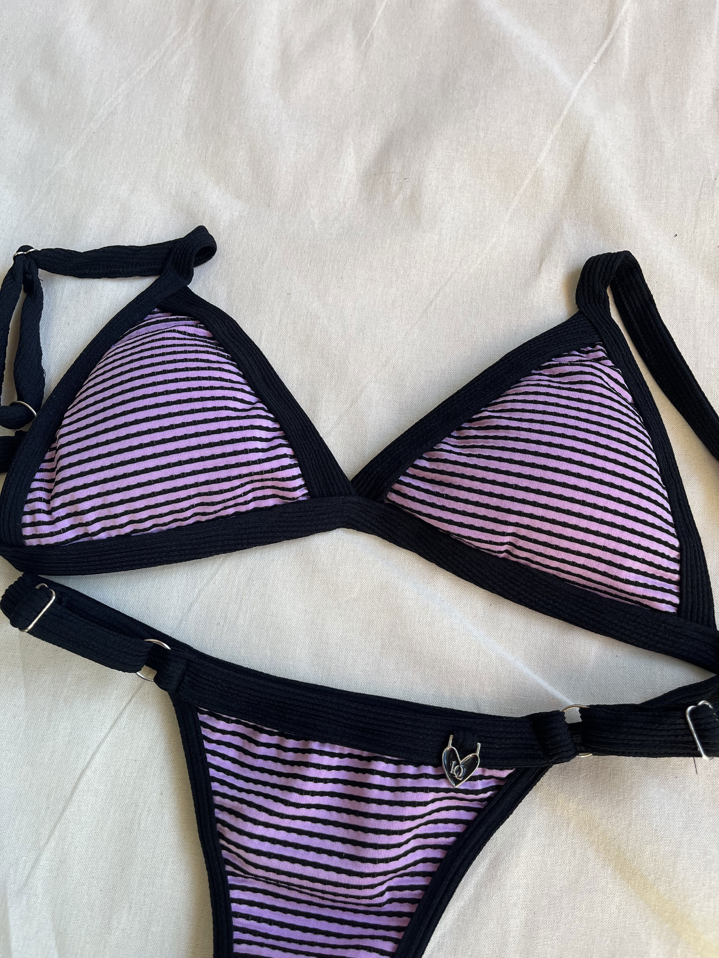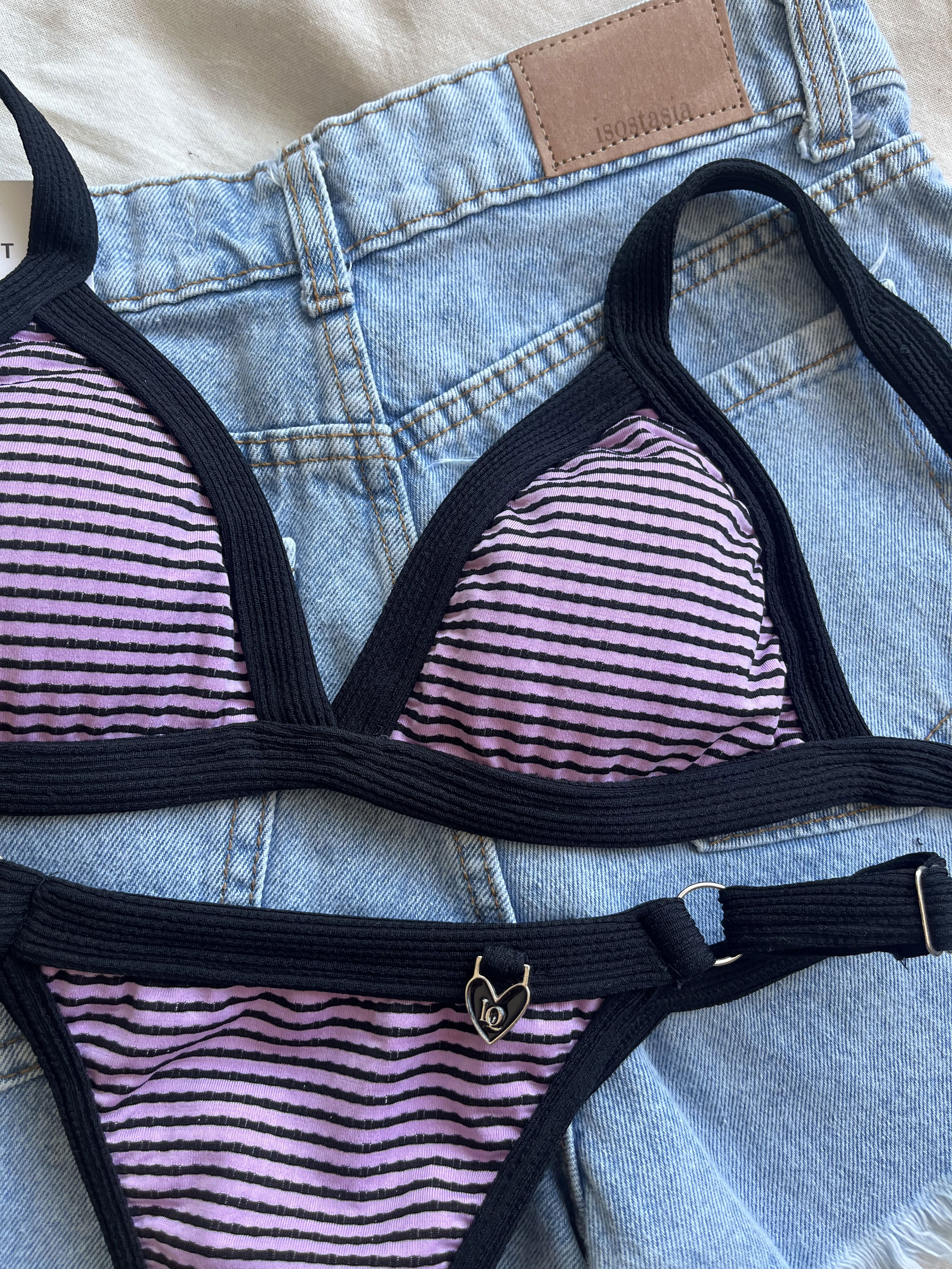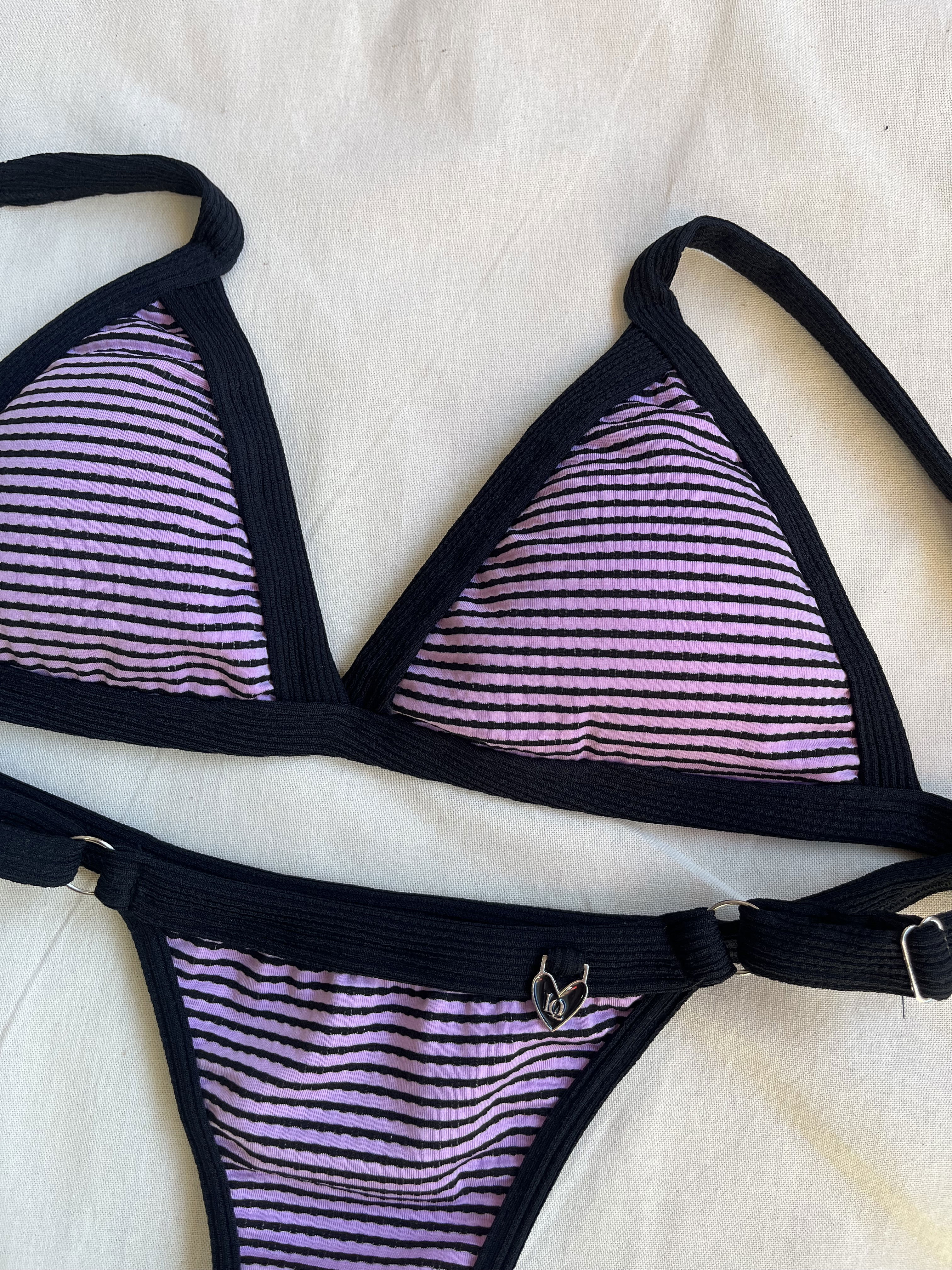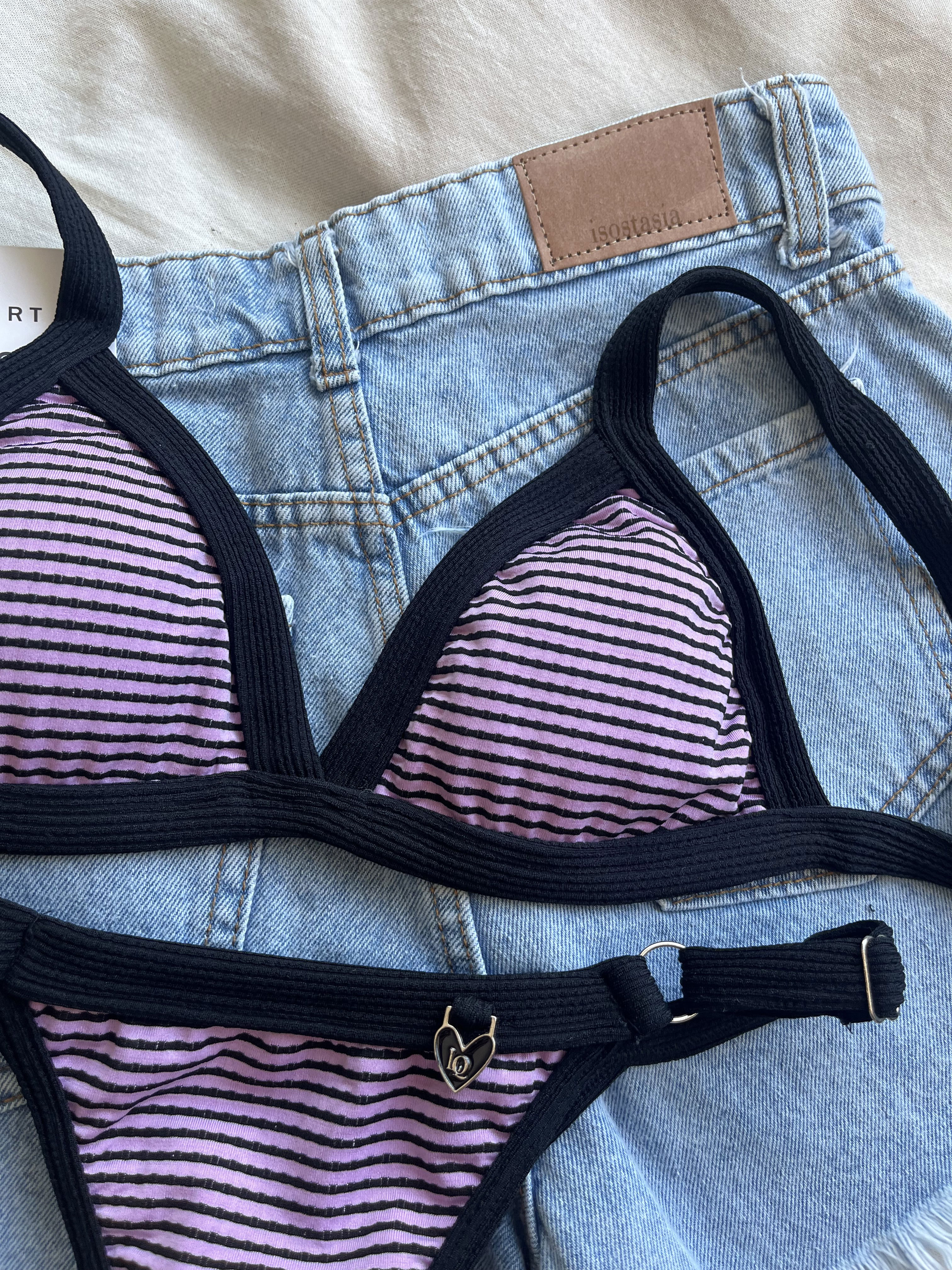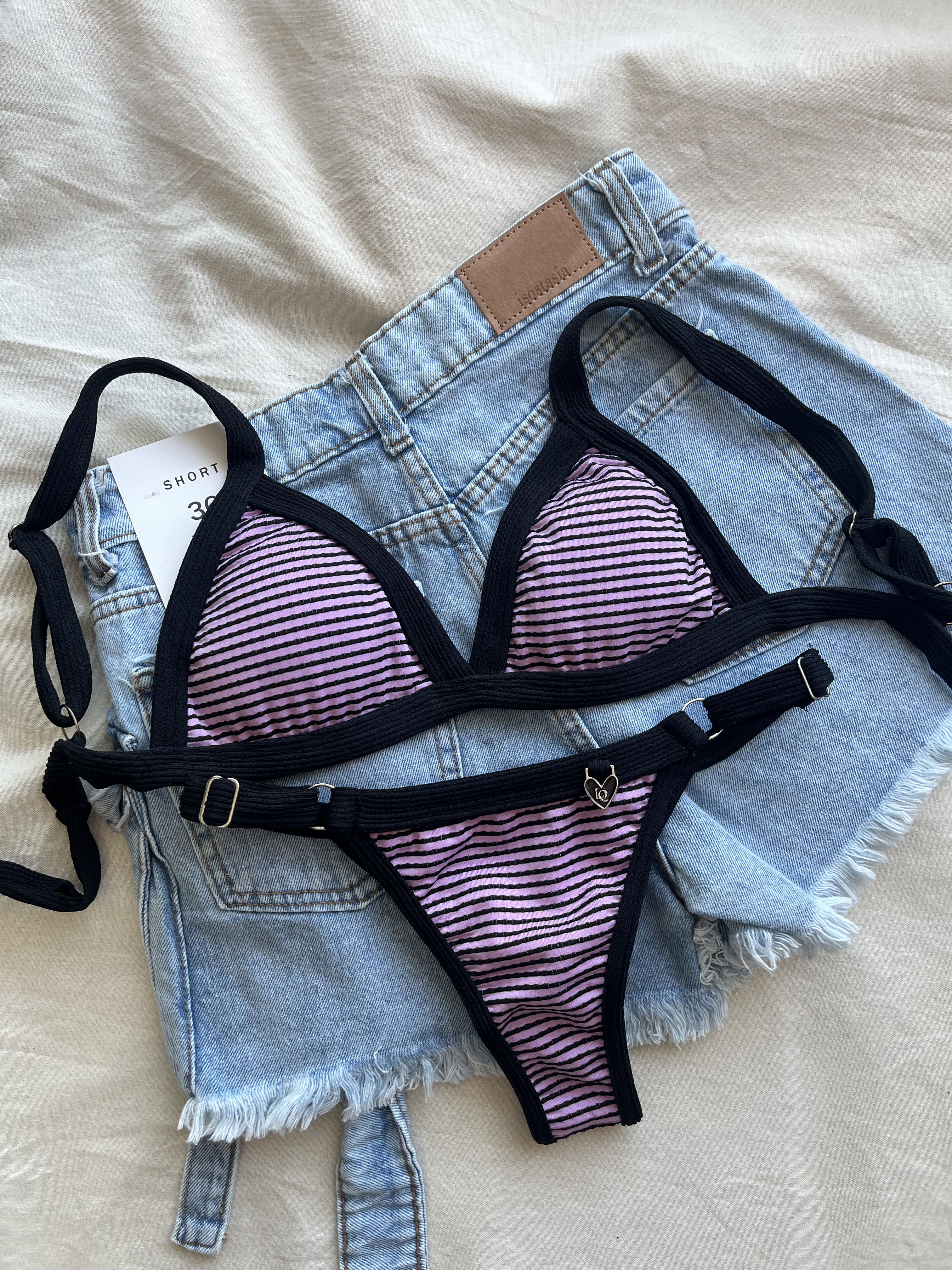 Triángulo texturado con breteles regulables y espalda para atar. Colaless regulable
