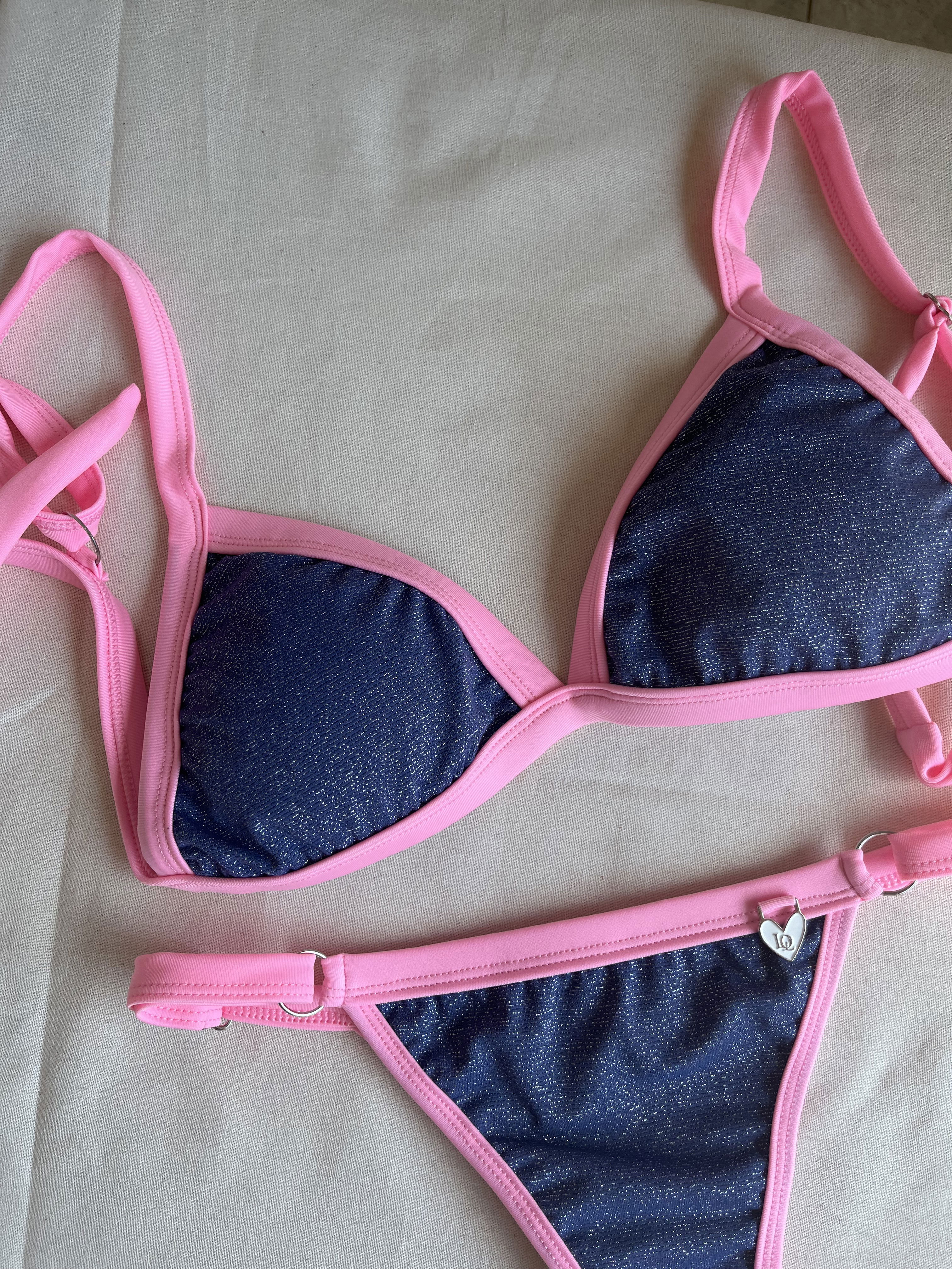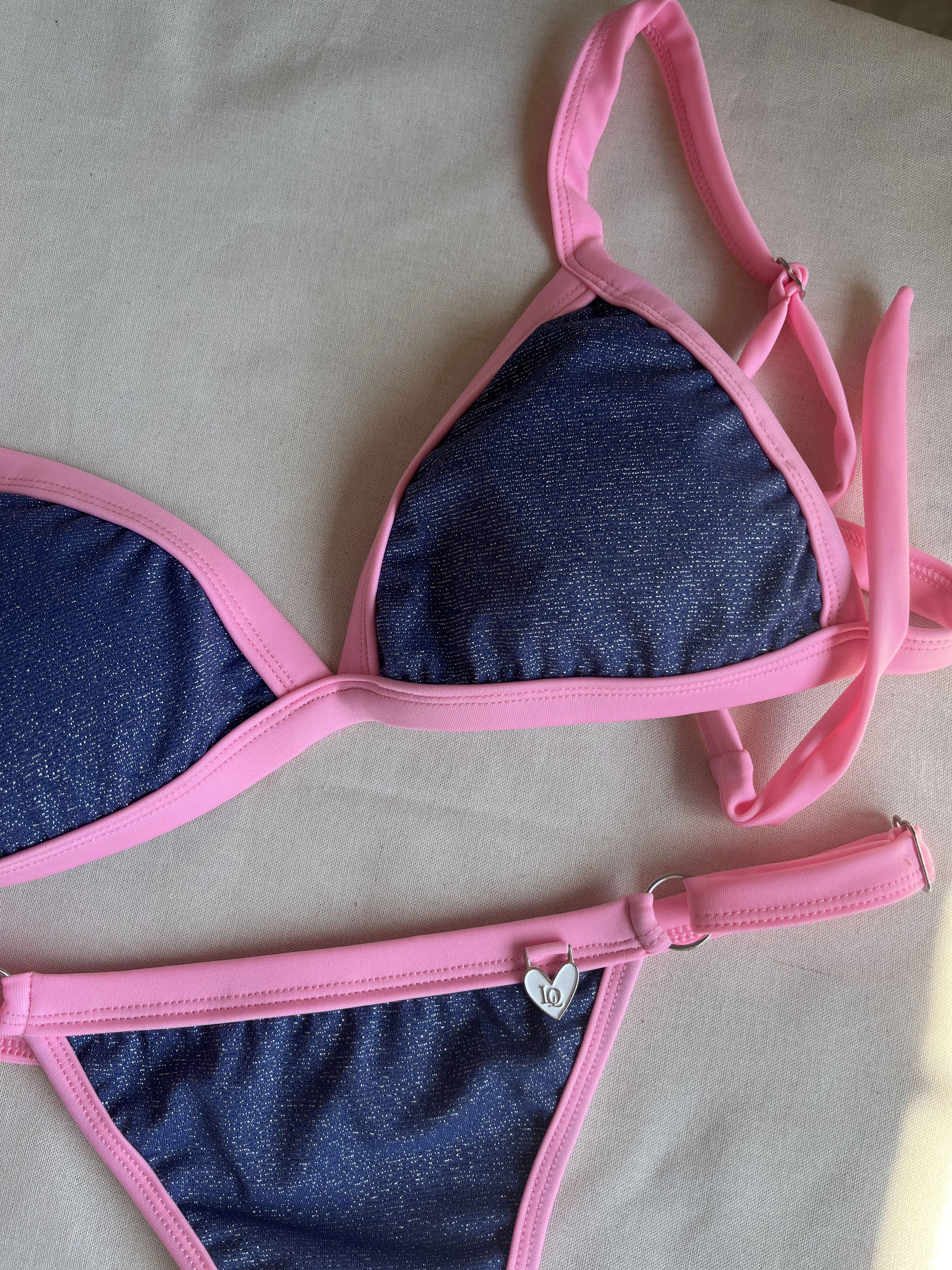 Triángulo lycra tricot glitter. Corpiño con breteles regulables y espalda para atar. Colaless regulable