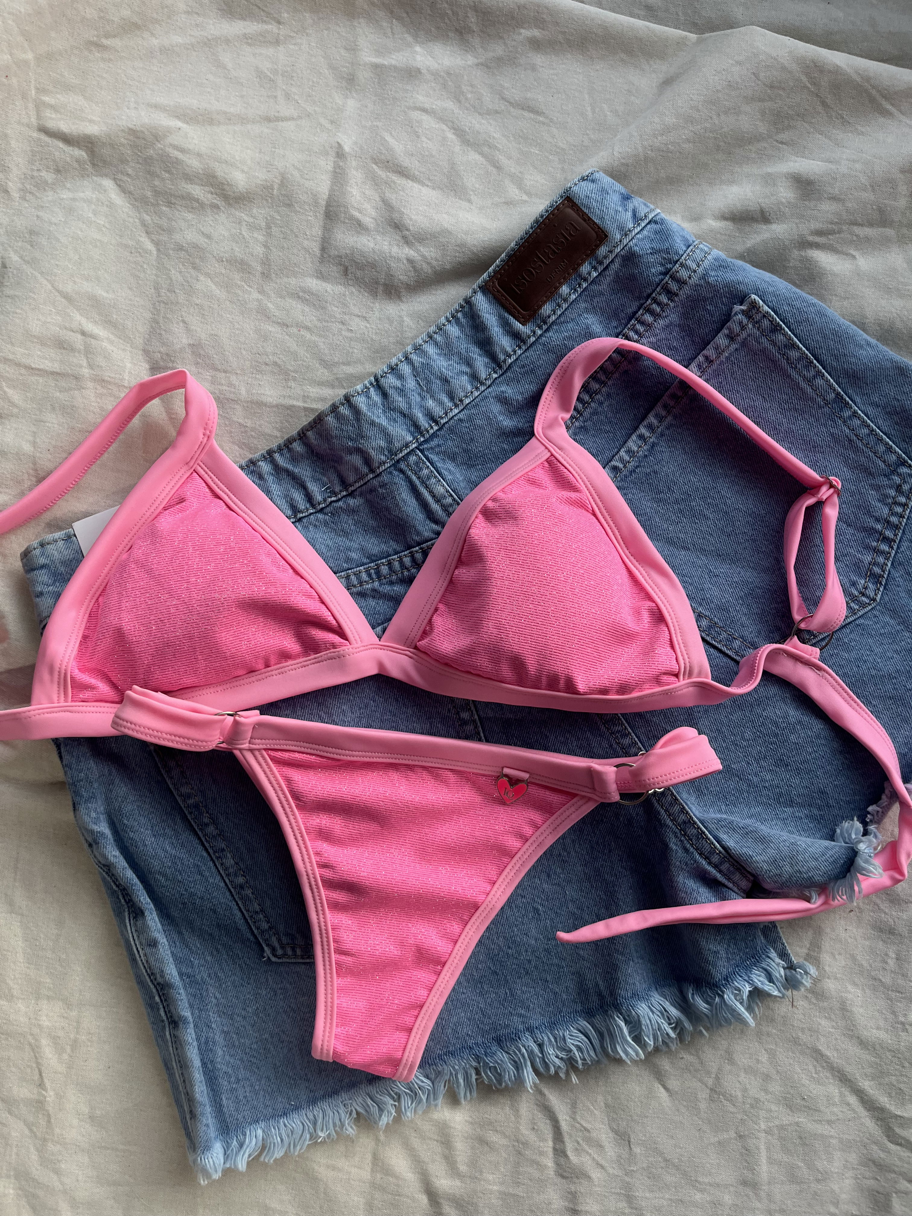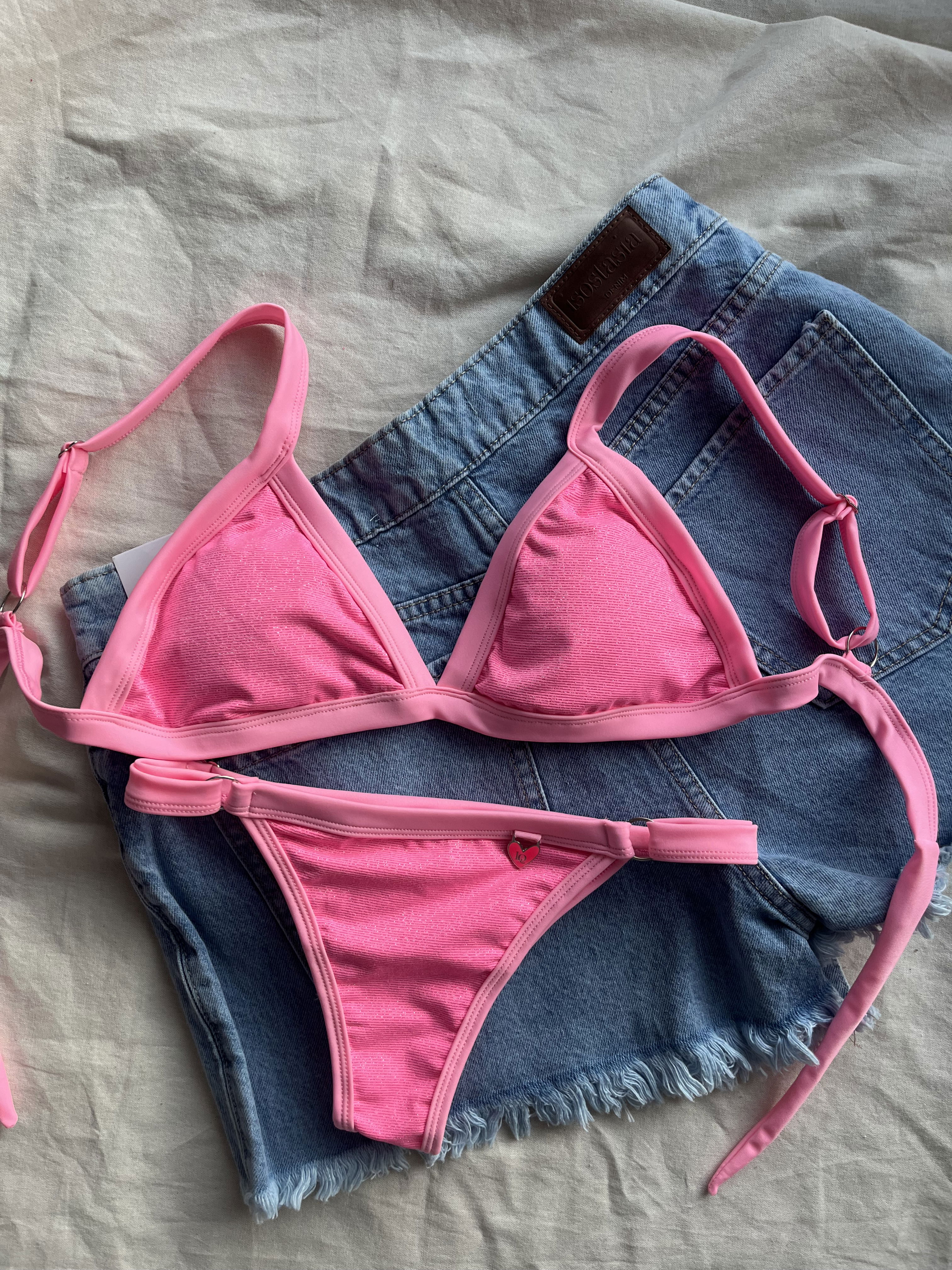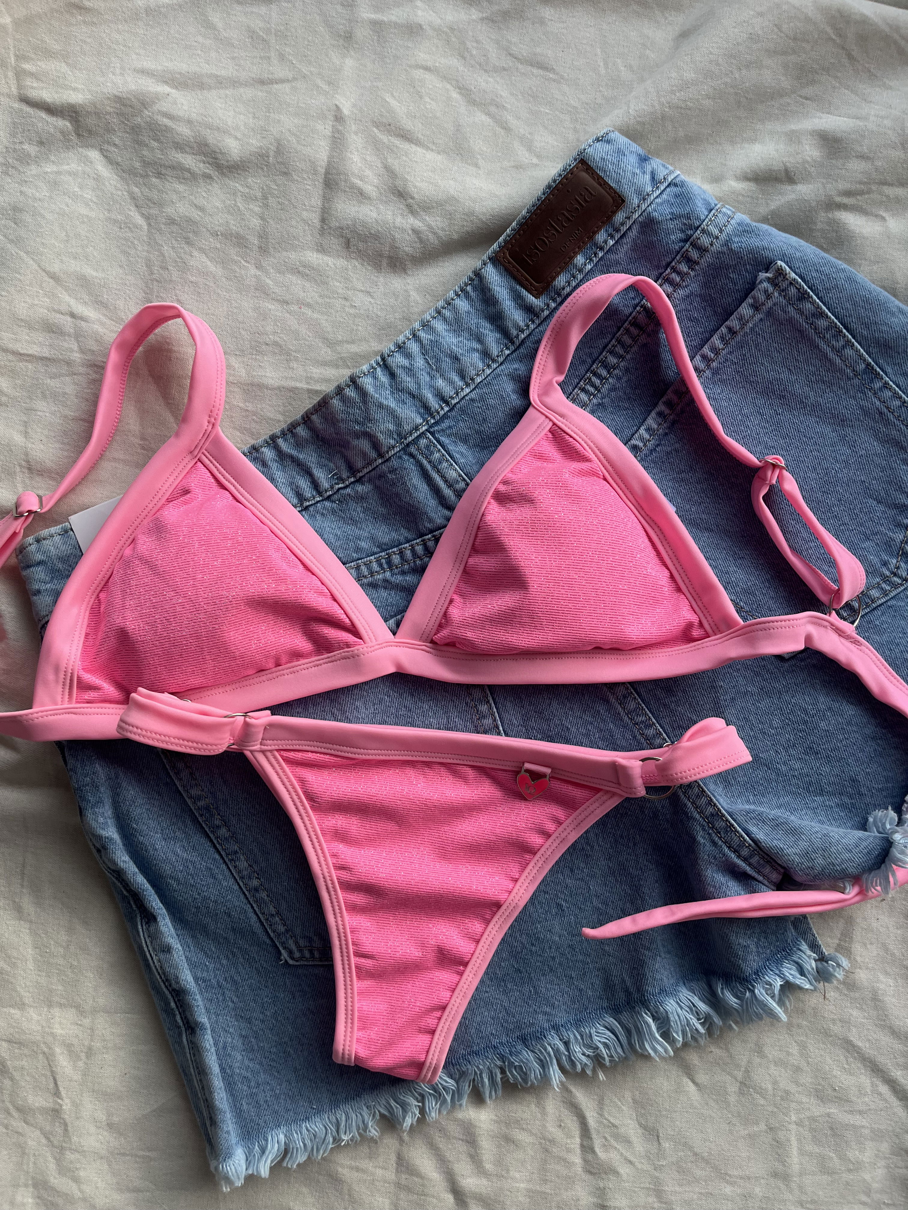 Triángulo lycra tricot glitter. Corpiño con breteles regulables y espalda para atar. Colaless regulable