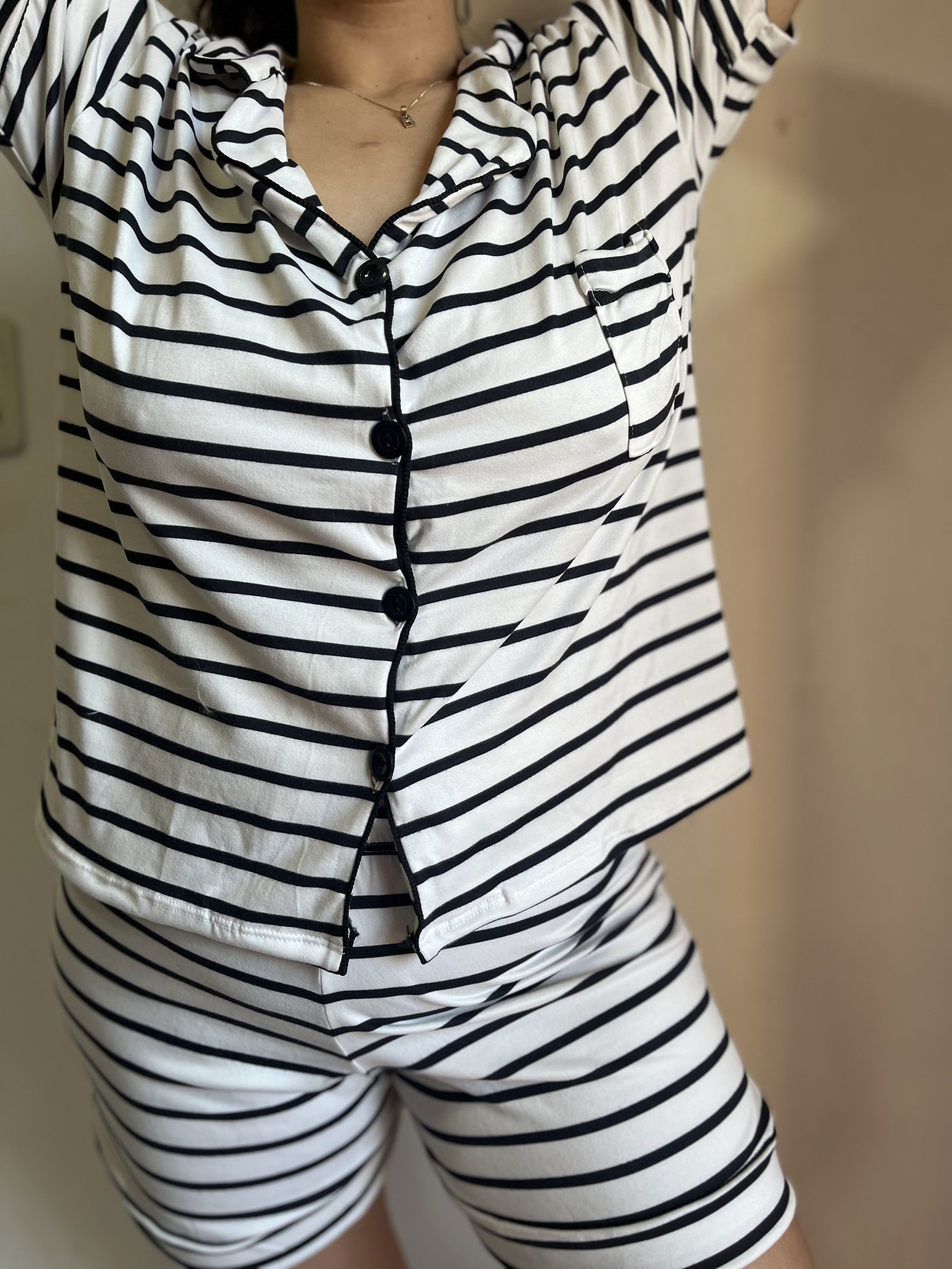 Pijama camisero rayado blanco