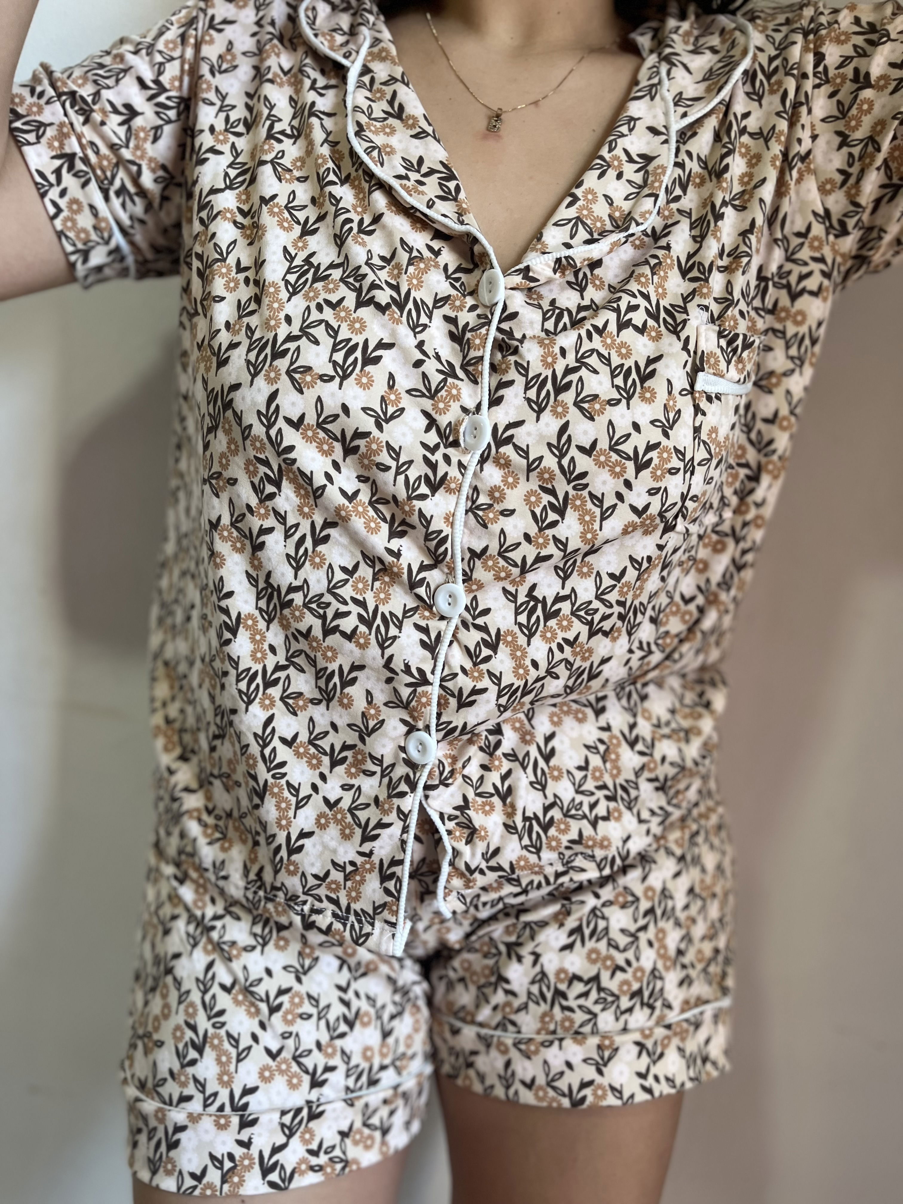 Pijama camisero nude florcitas