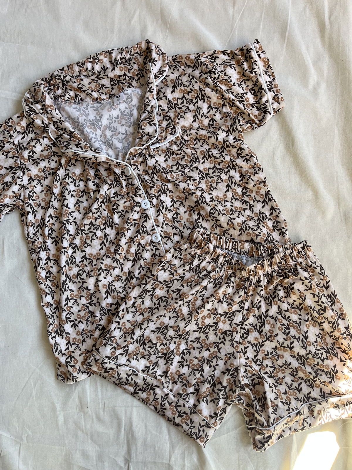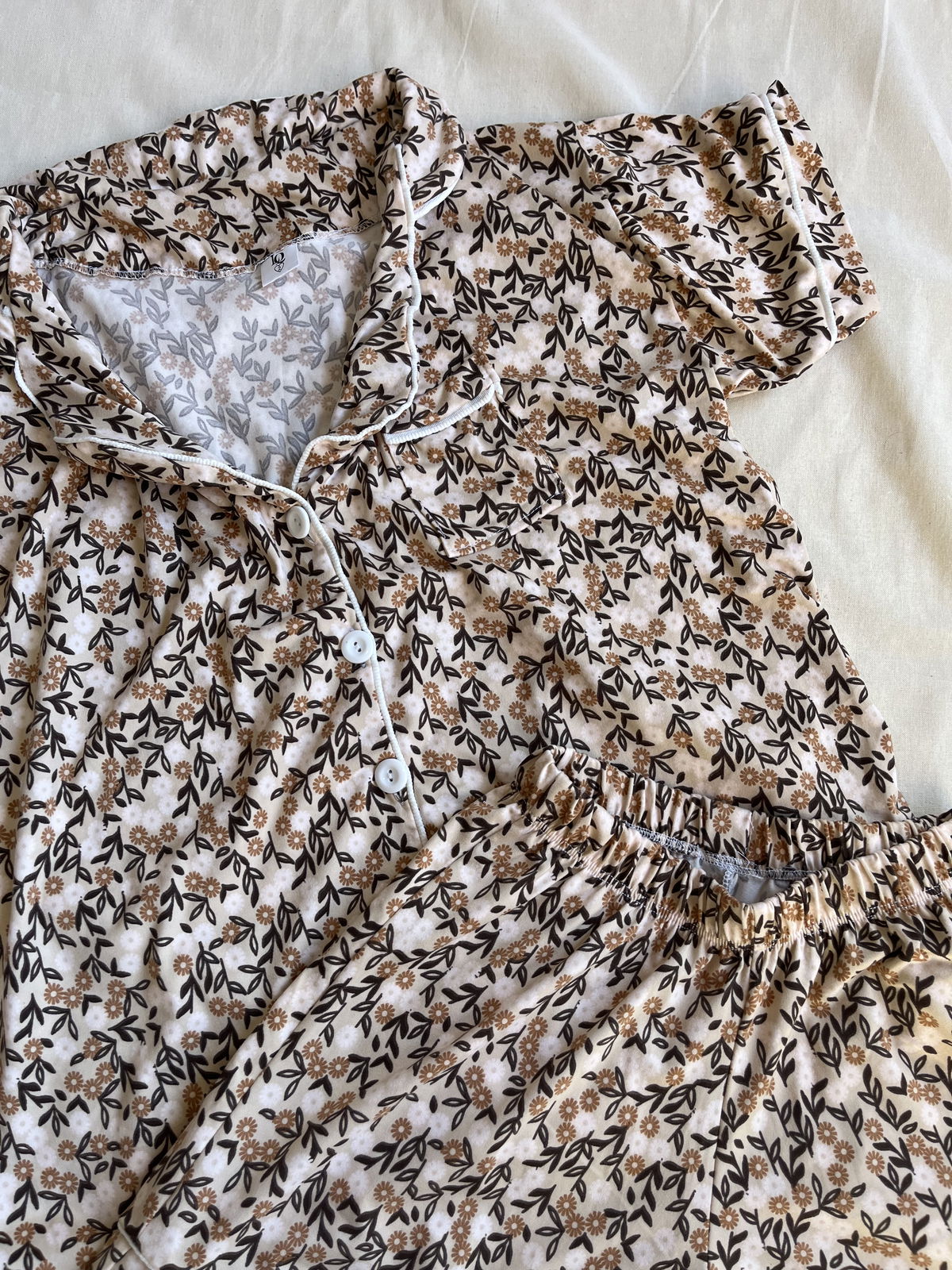Pijama camisero de modal soft , con vivo y botones blanco .