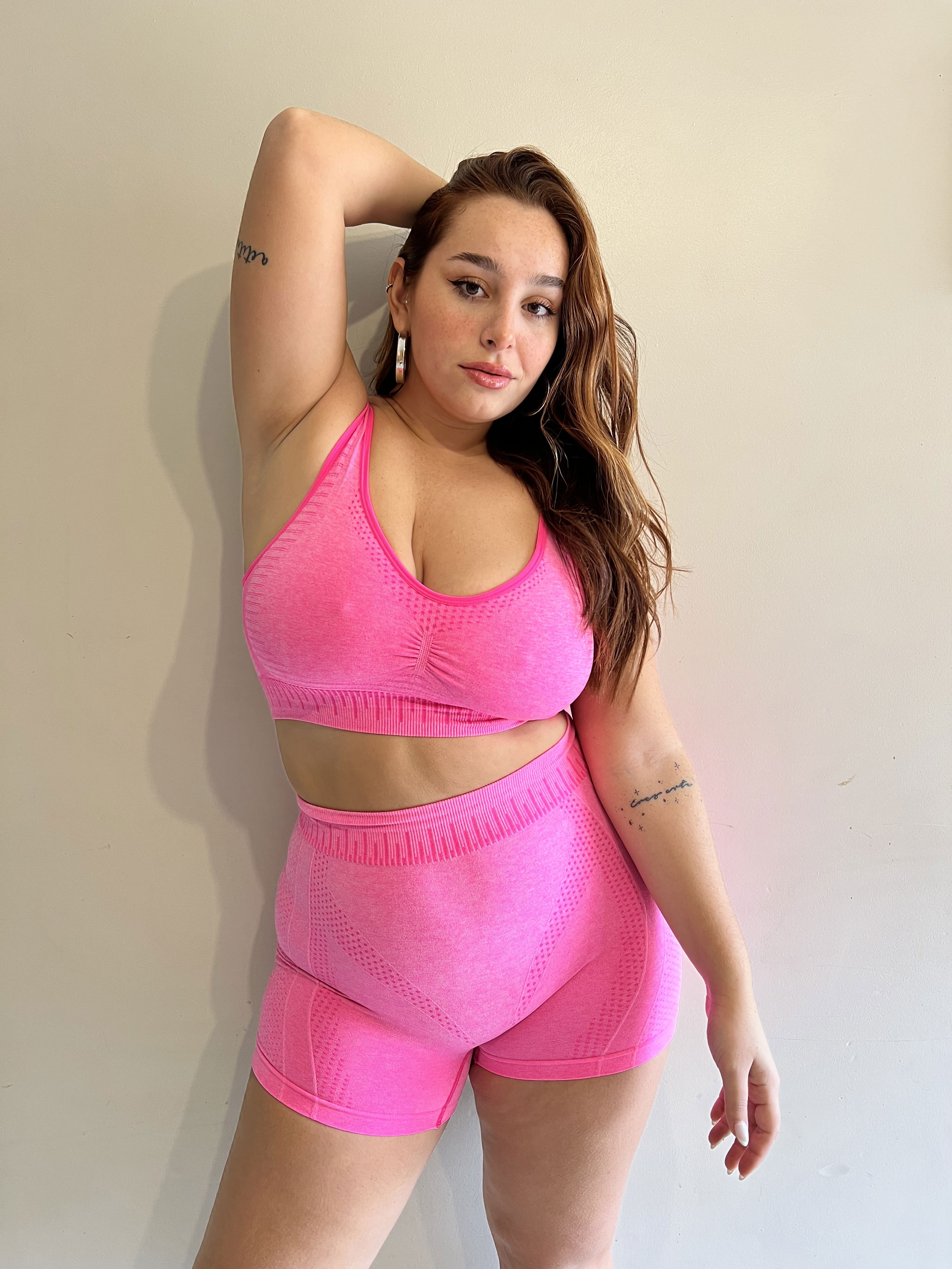 Top con tacitas desmontables. Short, con un poquito de frunce en la cola.
