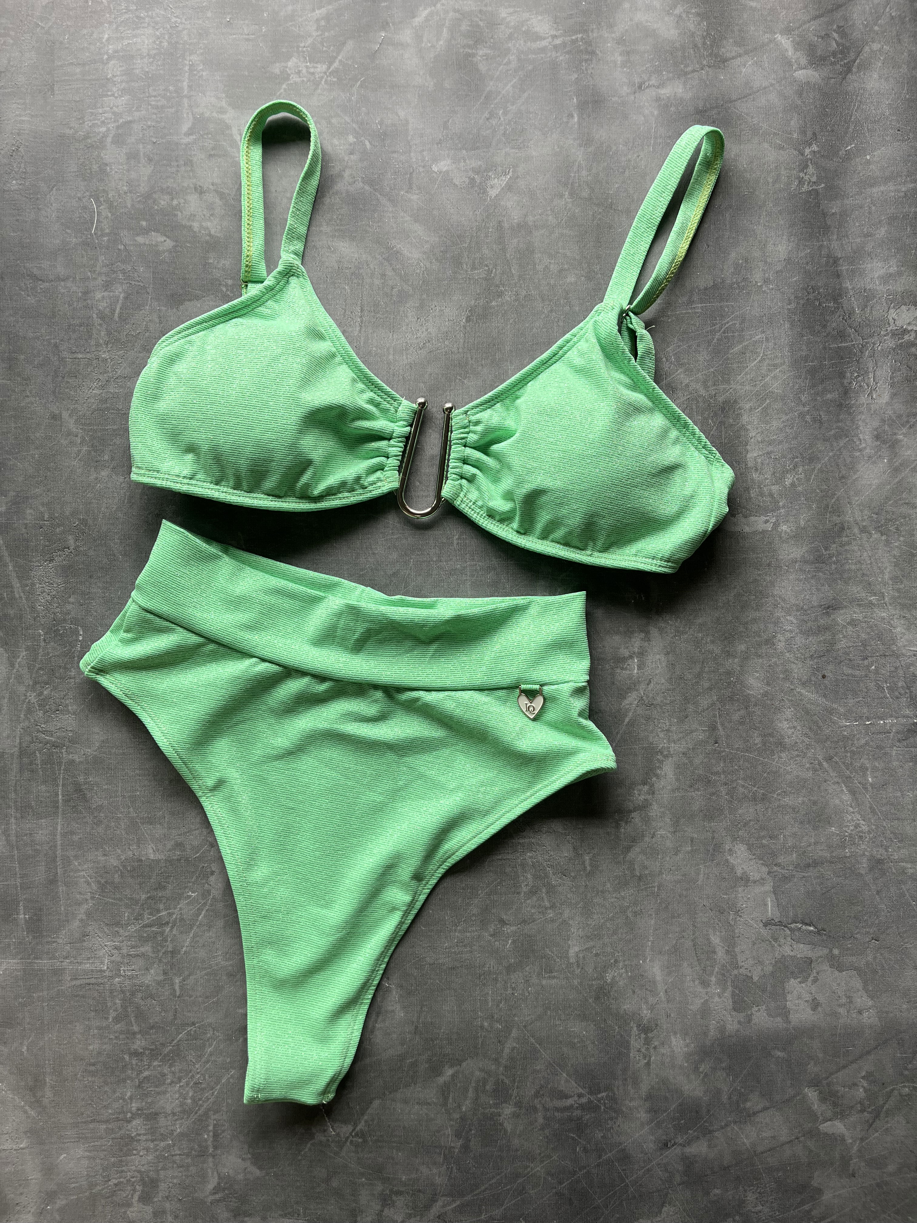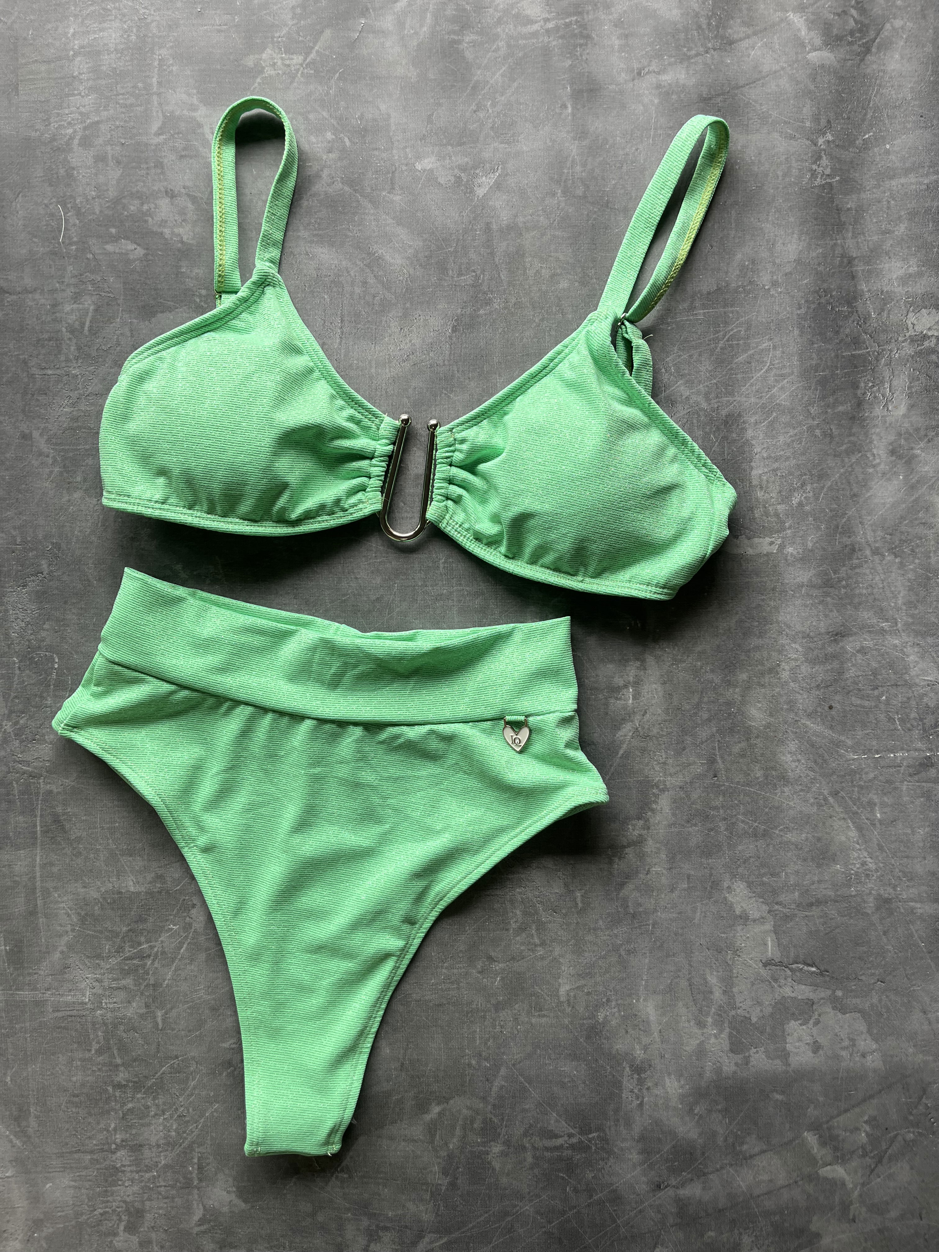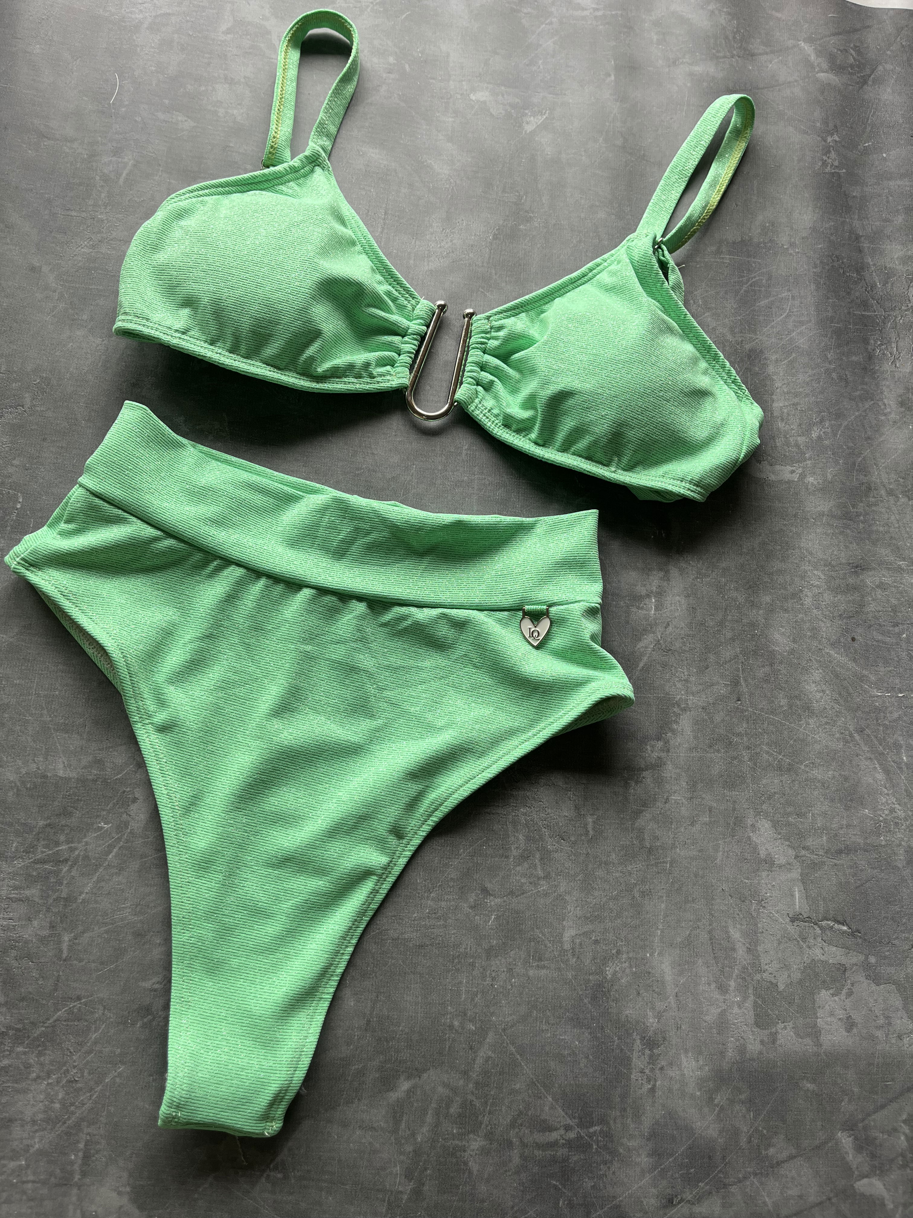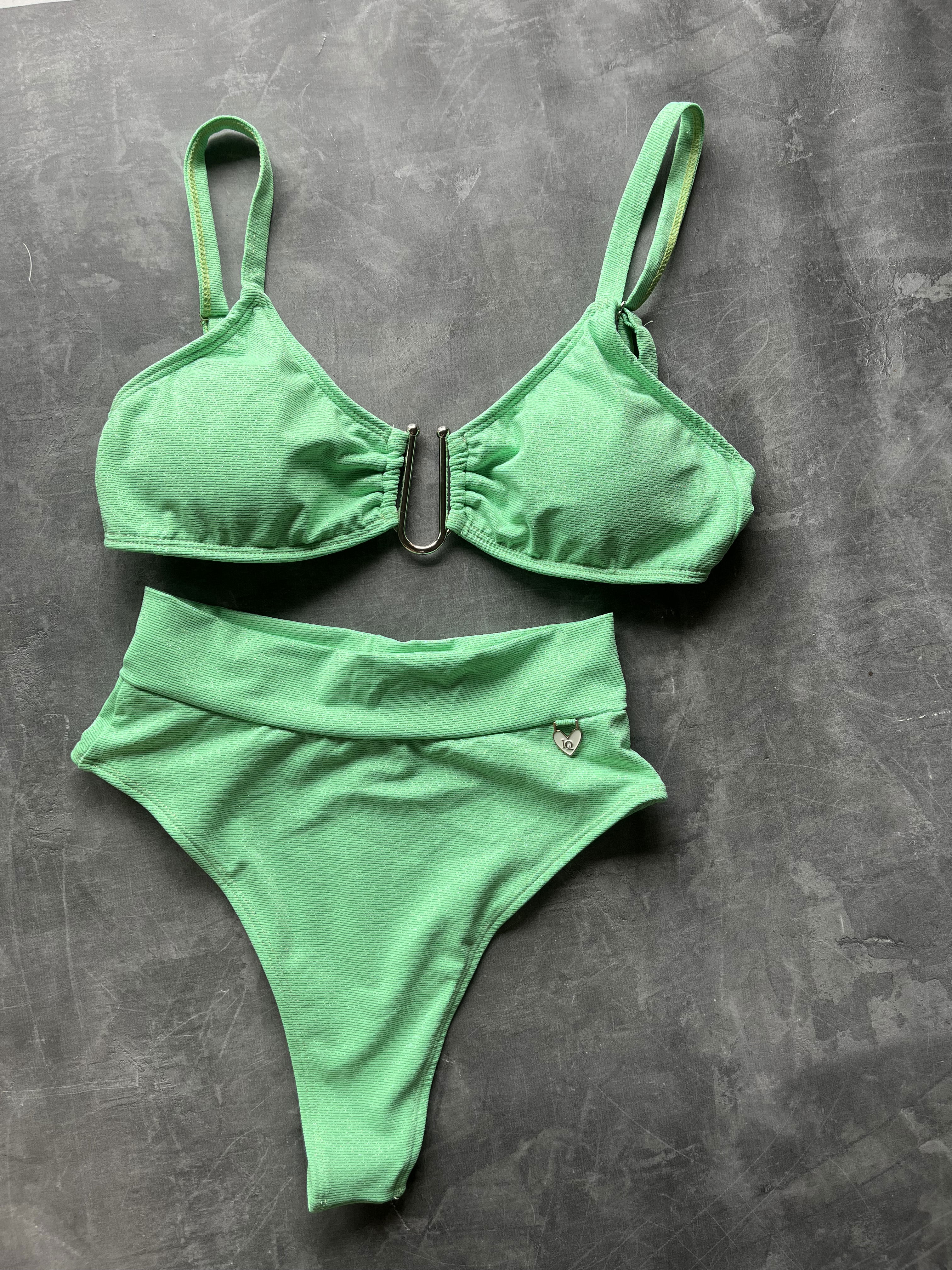 Top glitter con herraje, breteles regulables y espalda para atar. Colaless tiro alto con fajita, súper cómoda ! No aprieta ni marca la panza