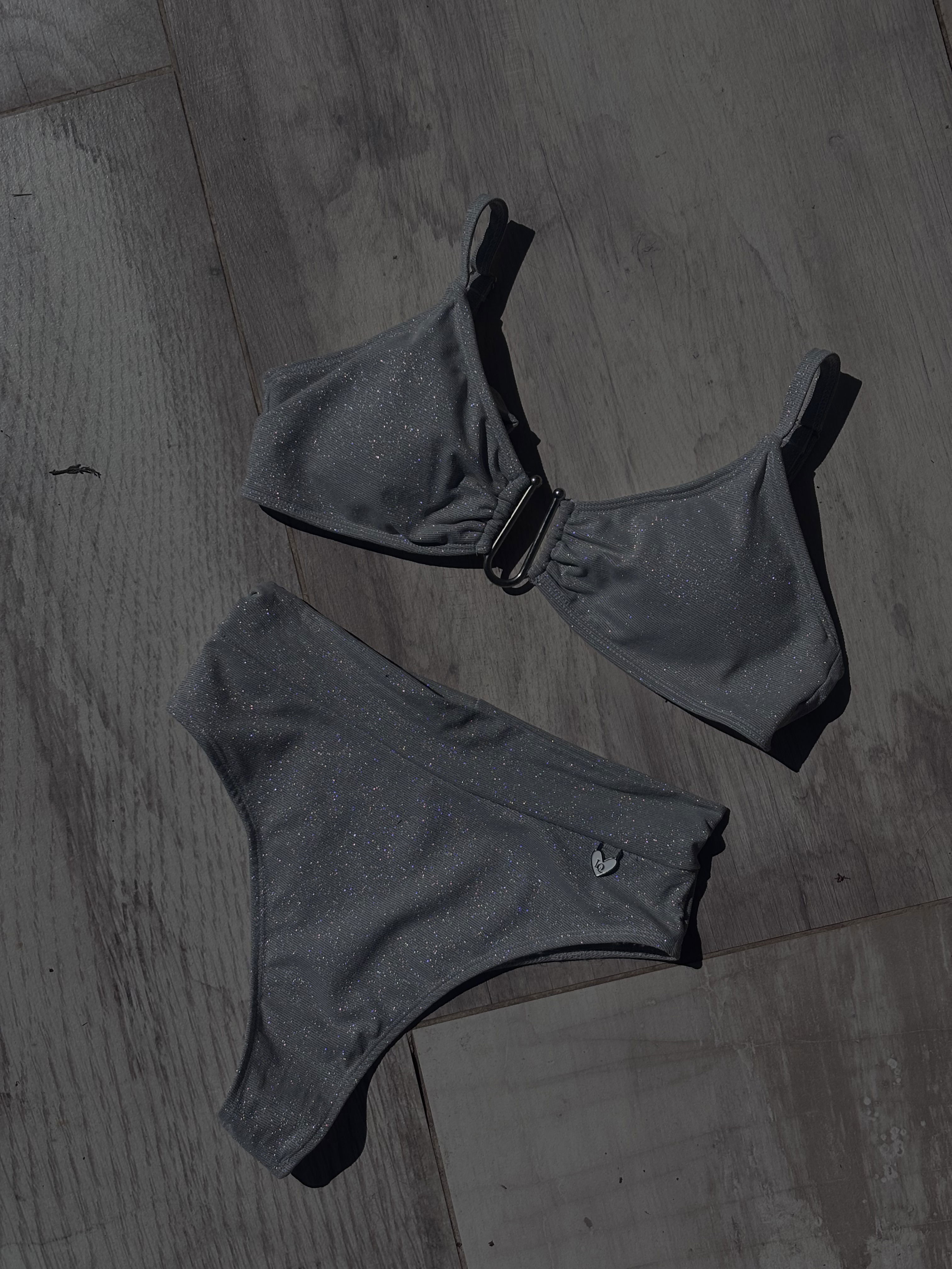 Top glitter con herraje, breteles regulables y espalda para atar. Colaless tiro alto con fajita, súper cómoda ! No aprieta ni marca la panza