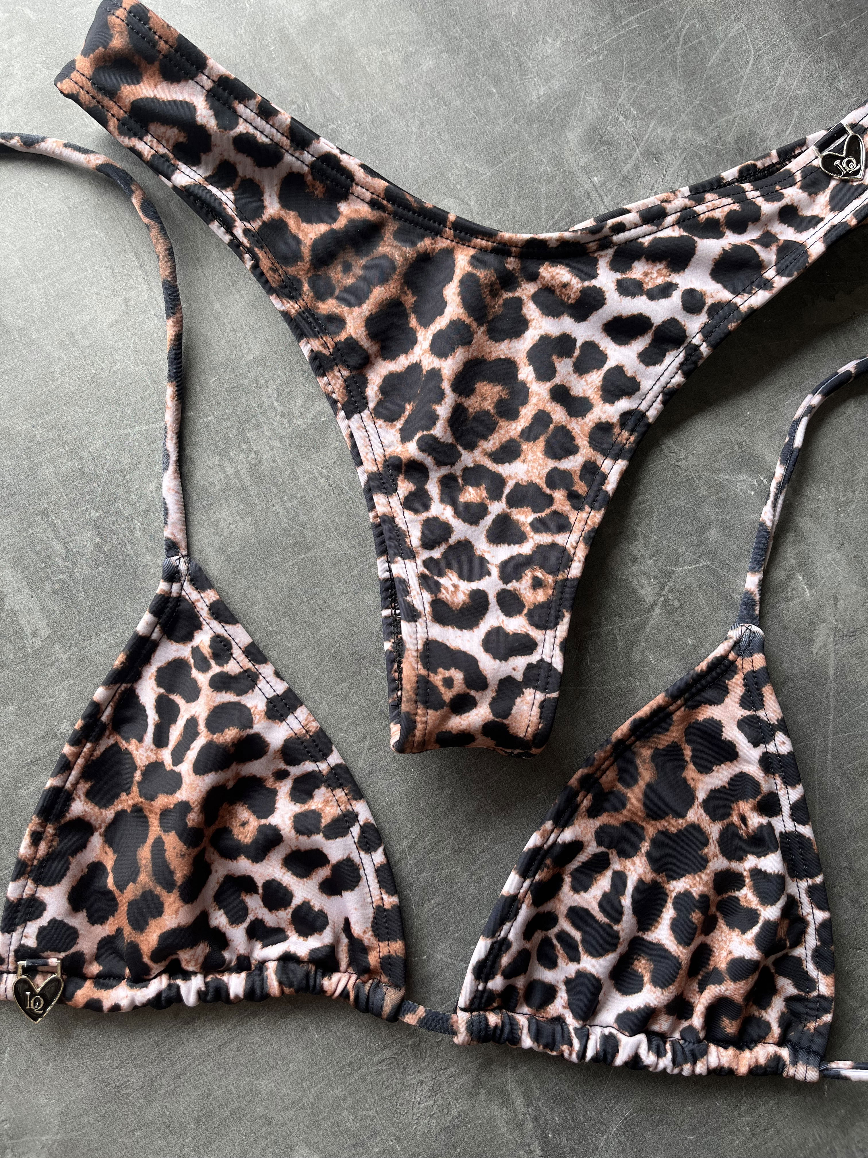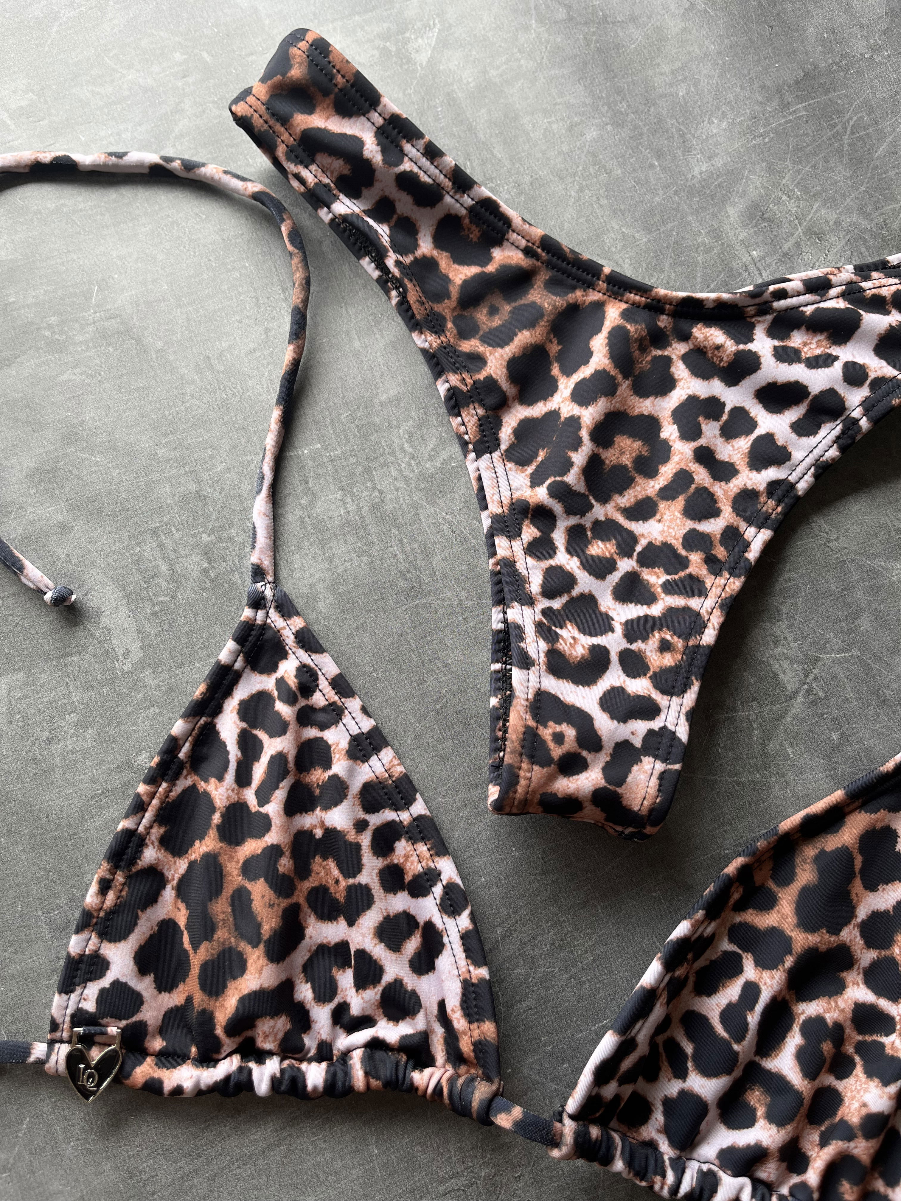 Triángulo con tiras para atar y colaless entera. Este modelo no incluye tazas desmontables pero si tiene la abertura para agregarle . Las estampas son exclusivas