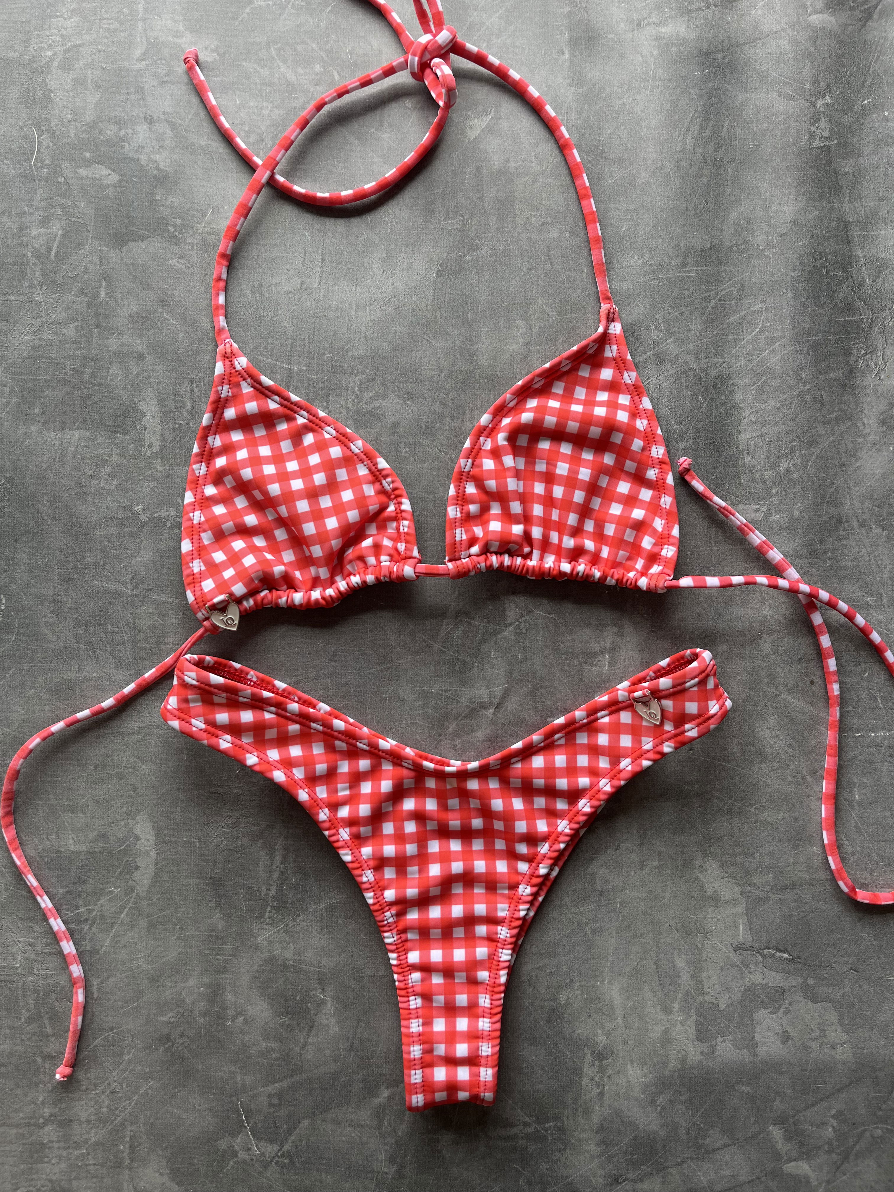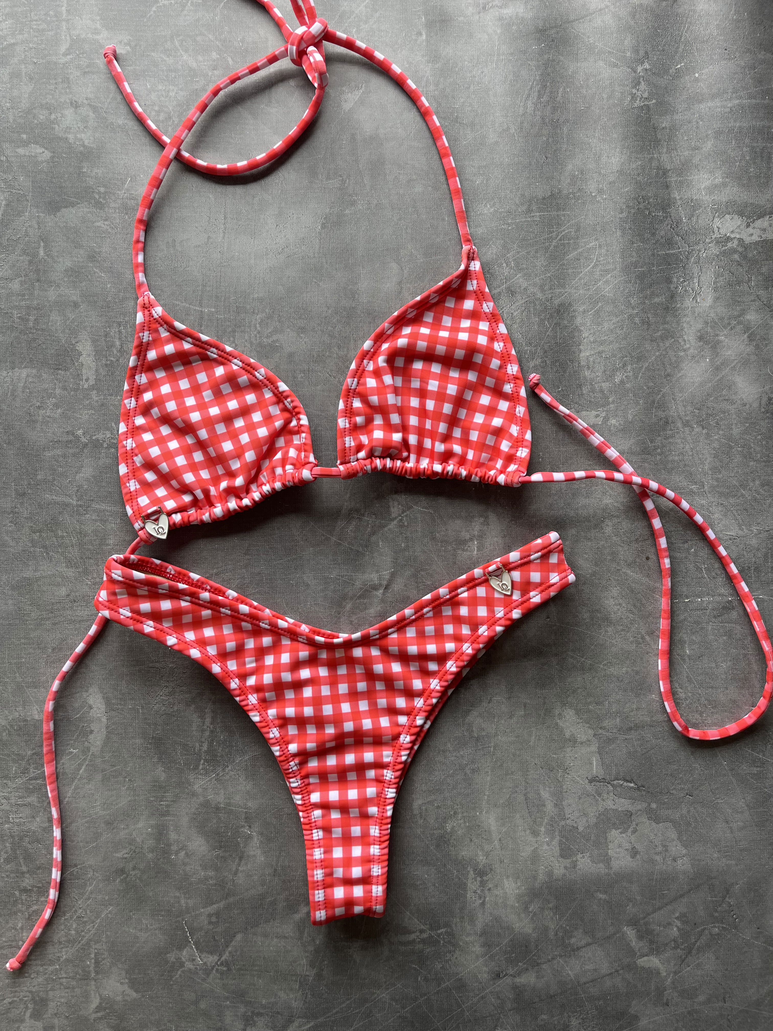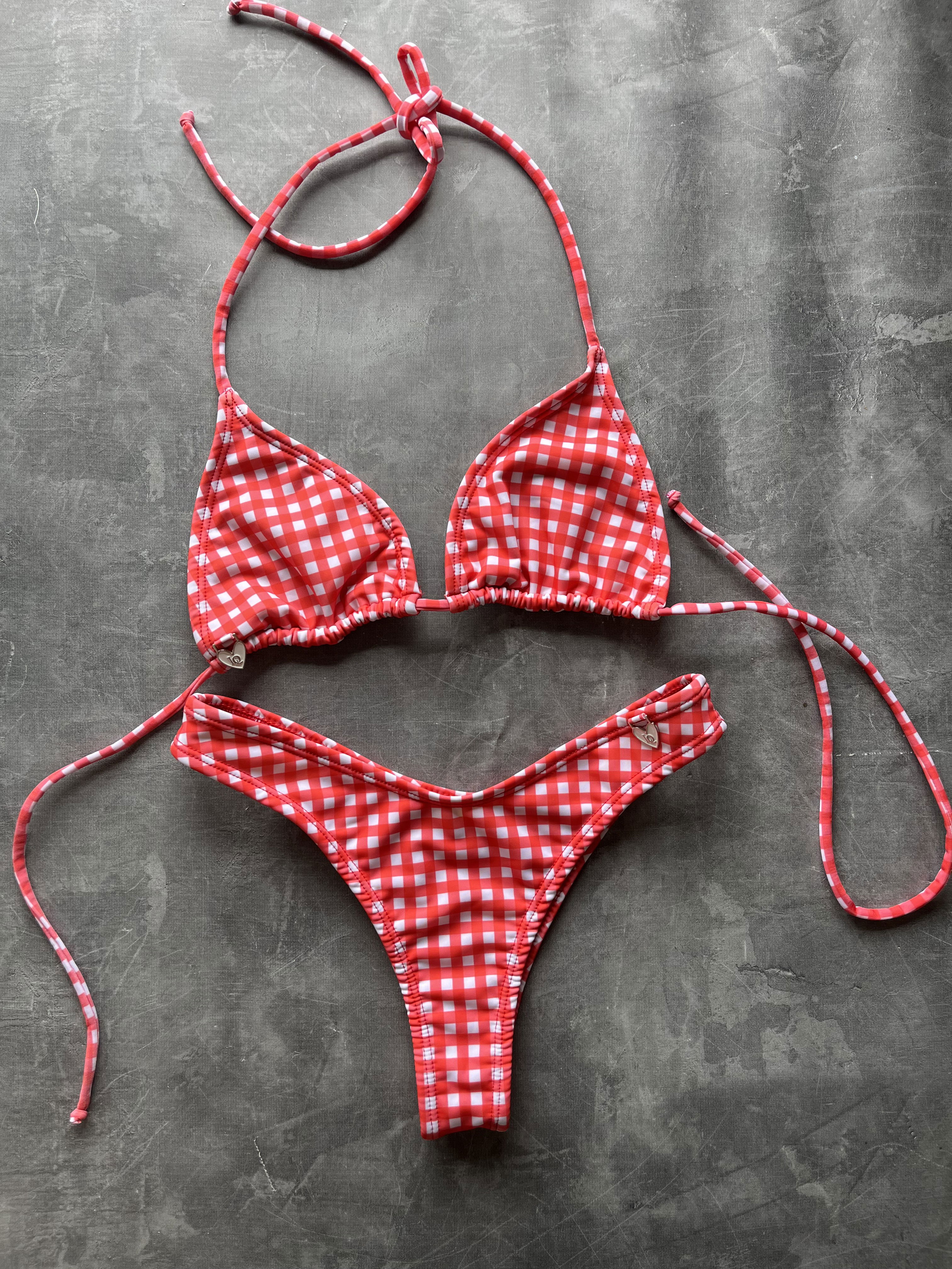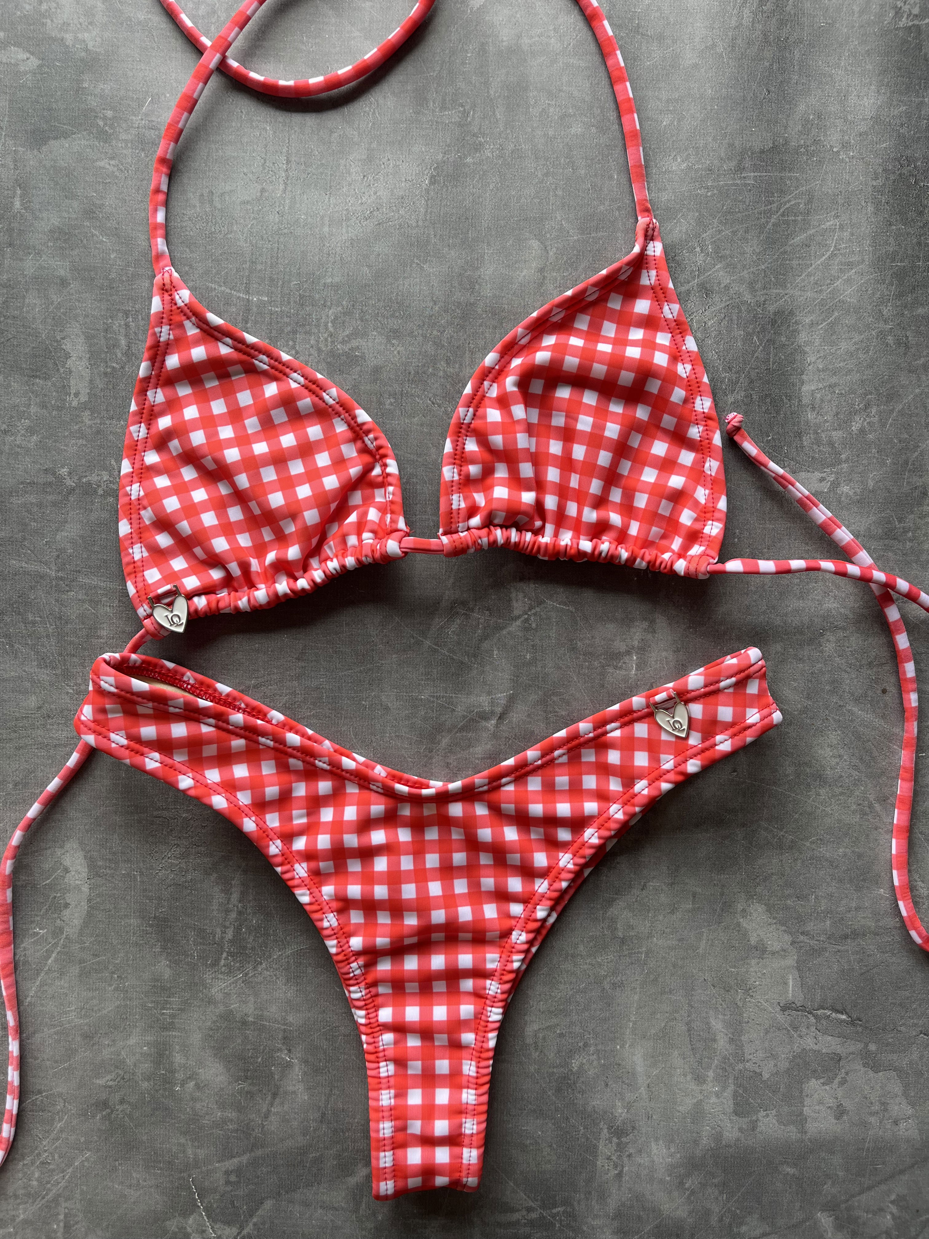 Triángulo con tiras para atar y colaless entera. Este modelo no incluye tazas desmontables pero si tiene la abertura para agregarle . Las estampas son exclusivas