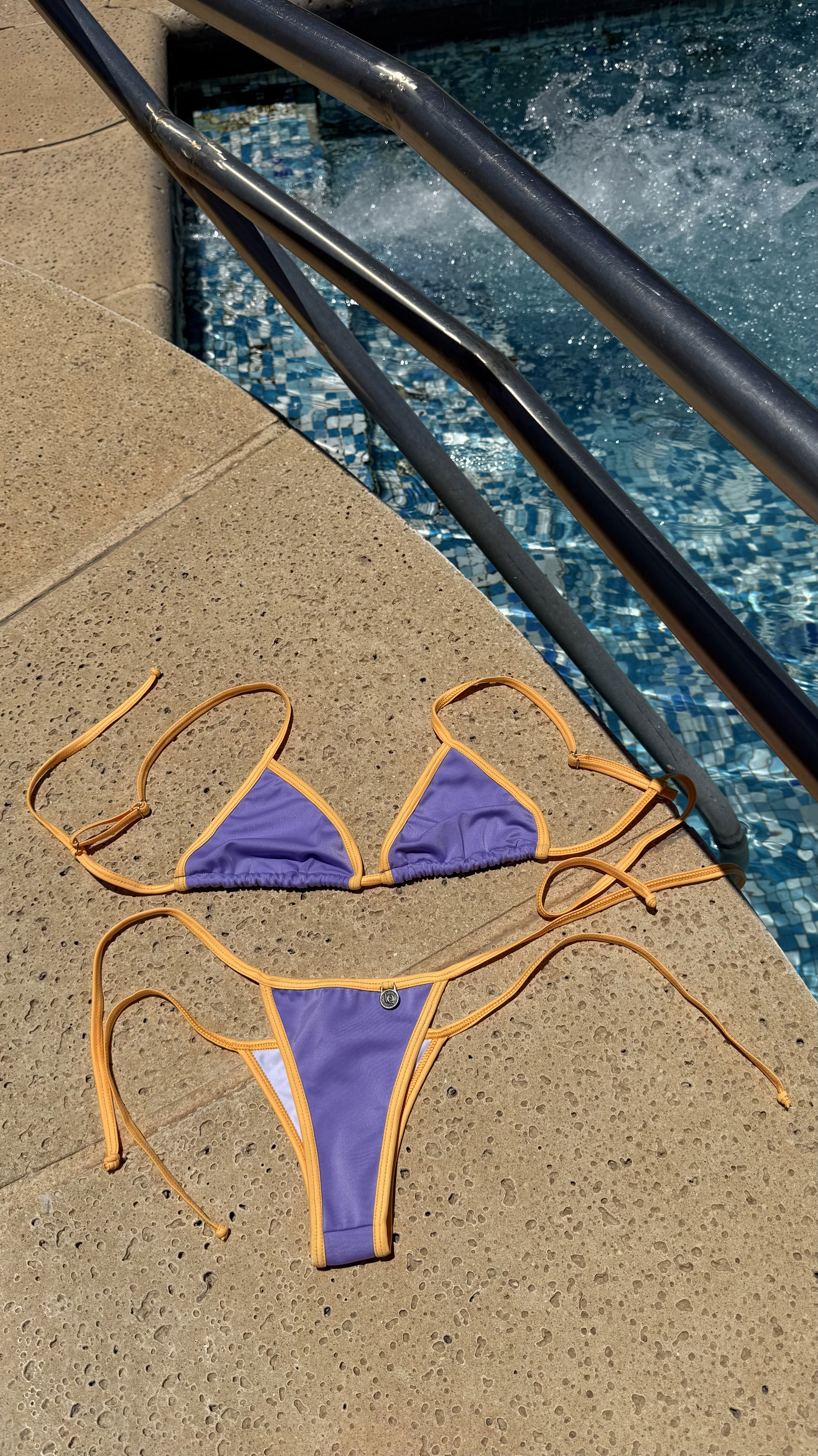 Triángulito con espalda para atar y breteles regulables. Bombi colaless para atar.
