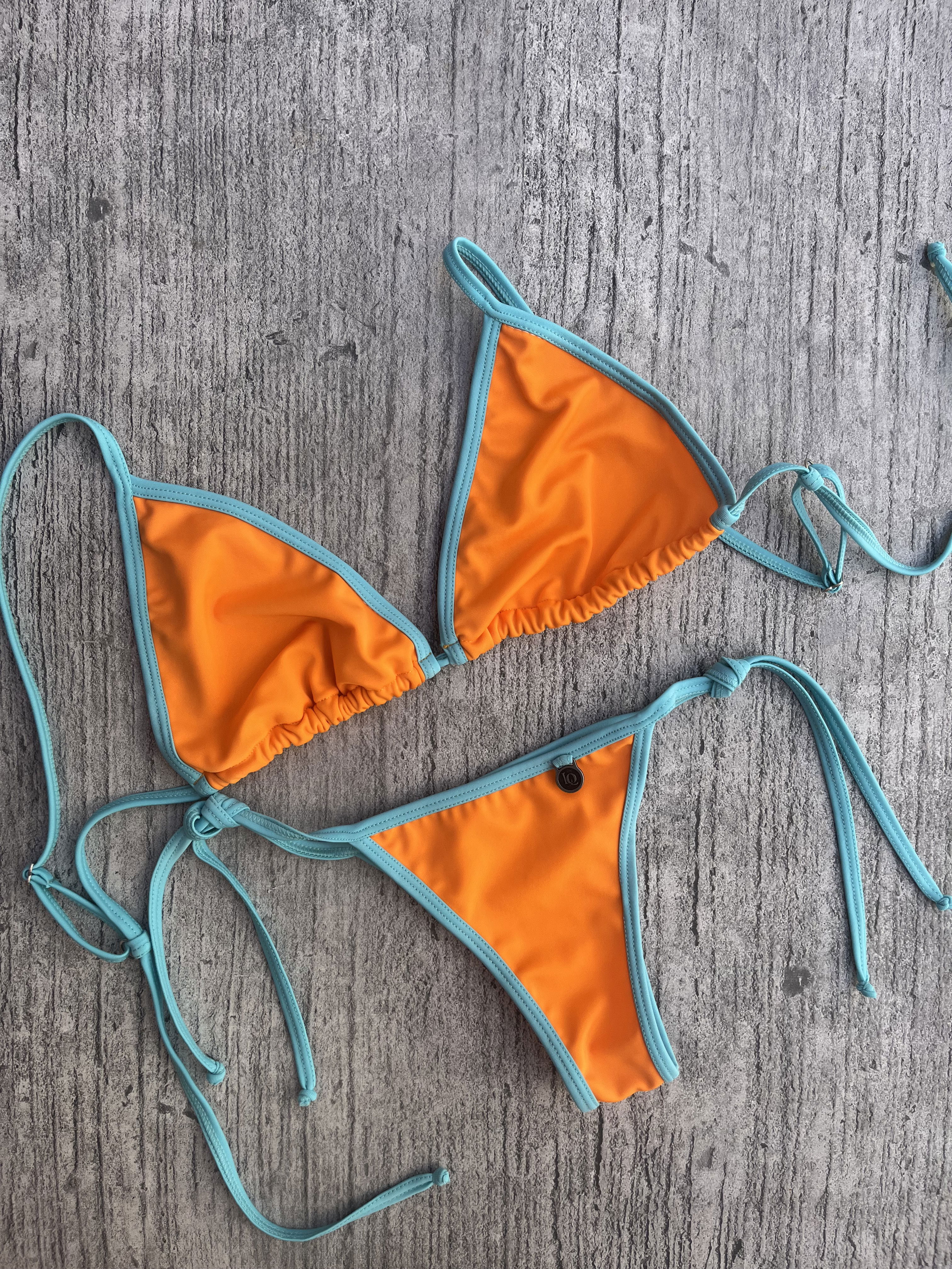 Triángulito con espalda para atar y breteles regulables. Bombi colaless para atar.
