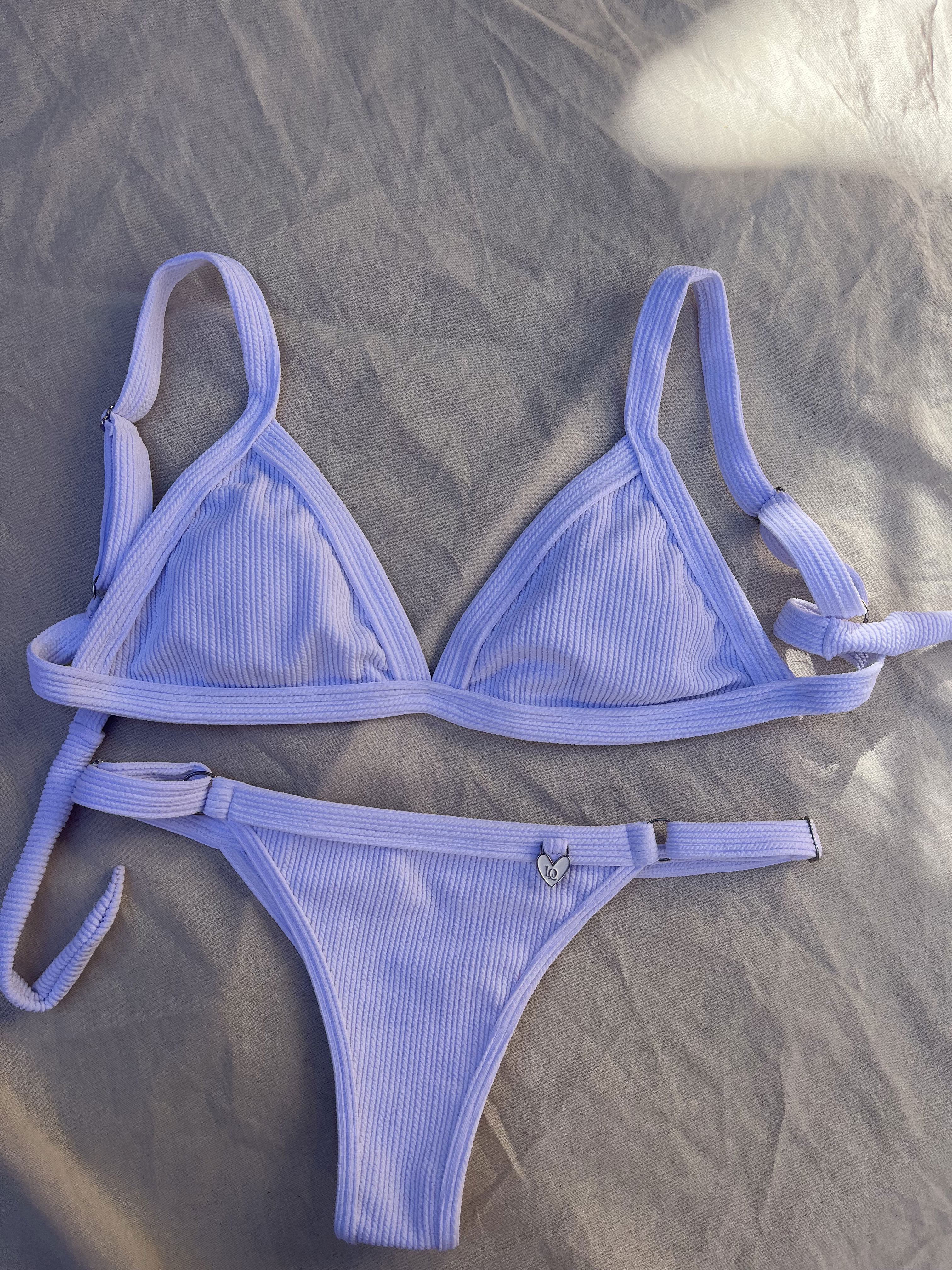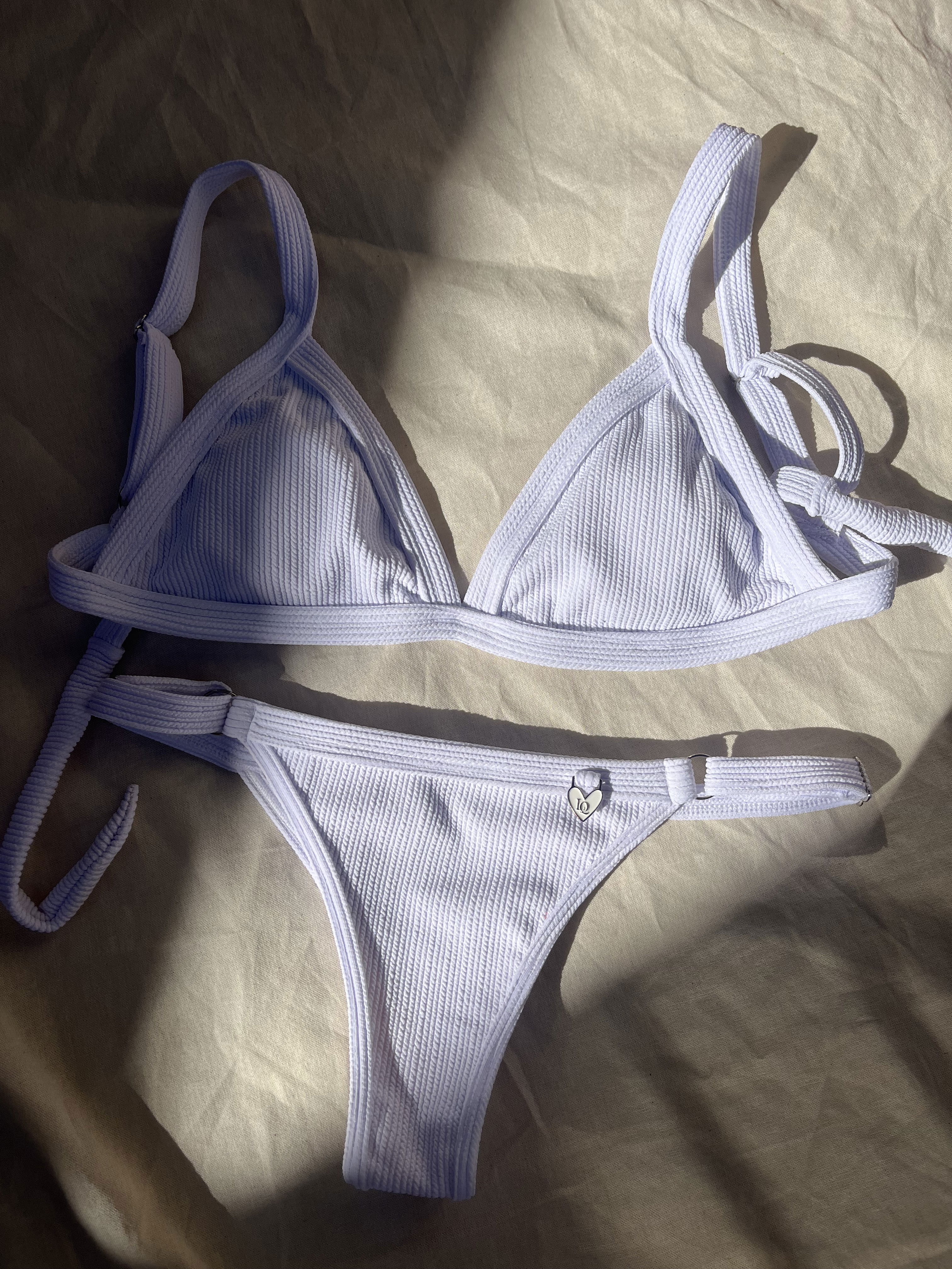 Triángulo texturado. Corpiño con breteles regulables y espalda para atar. Colaless regulable