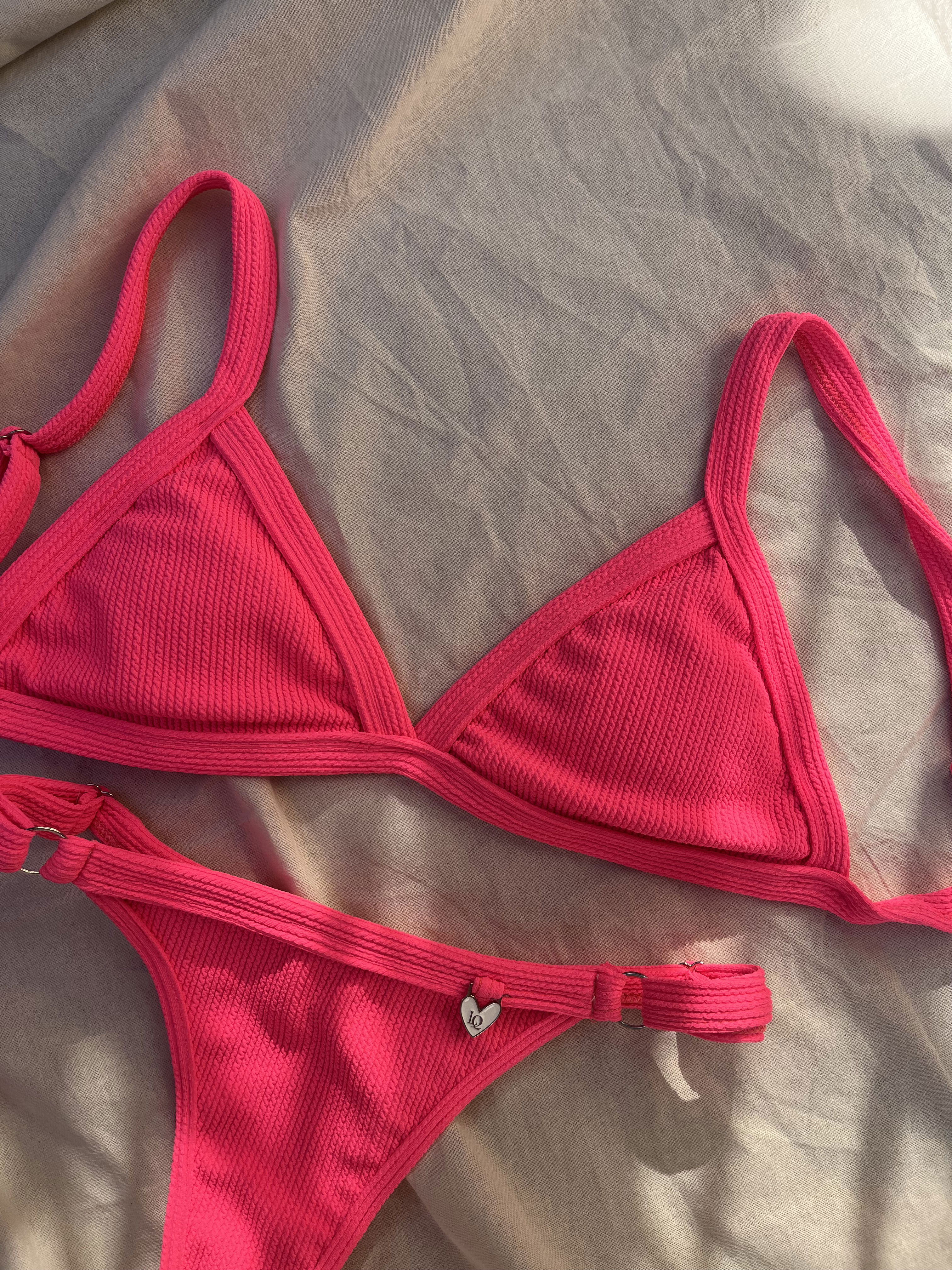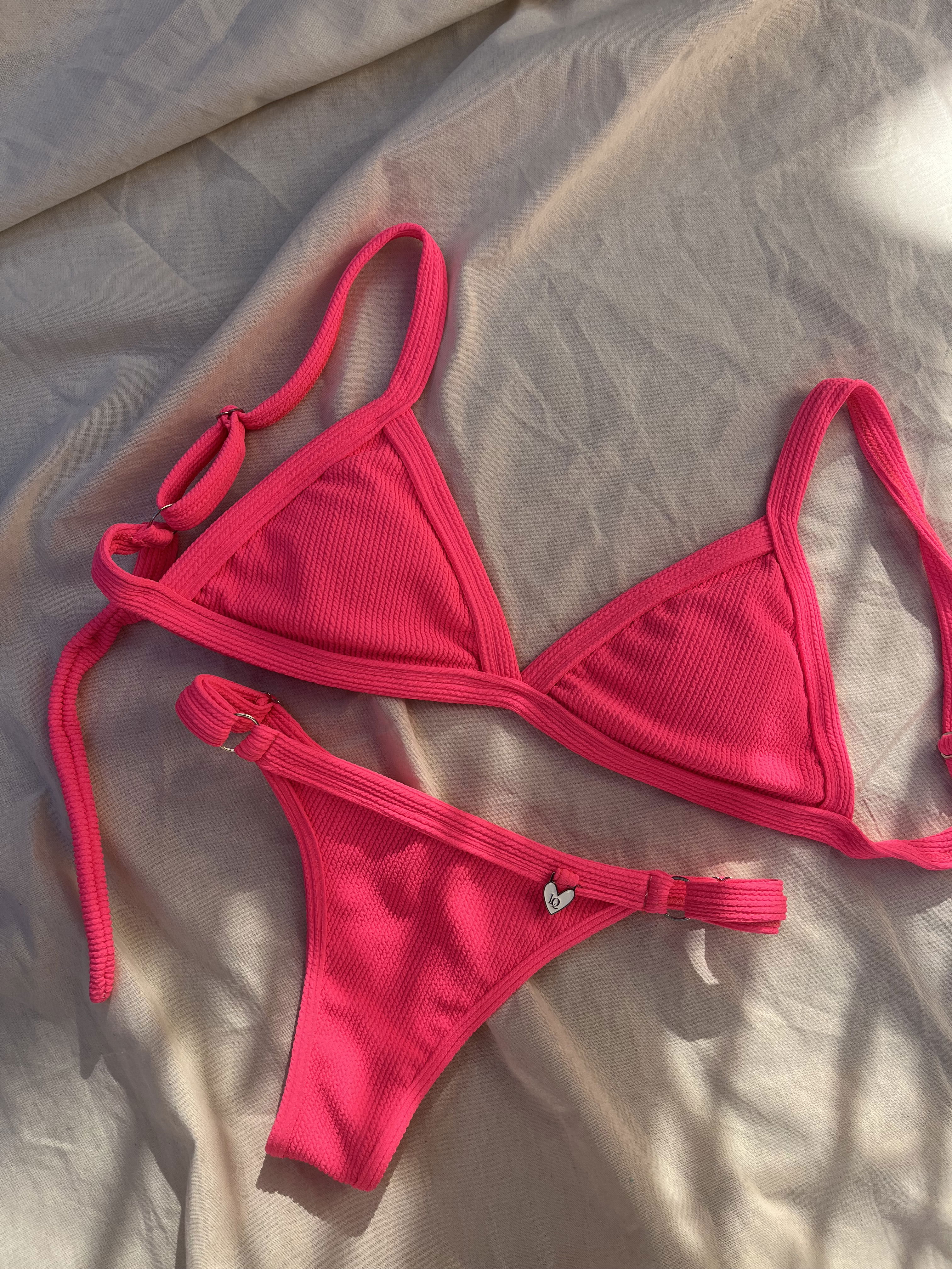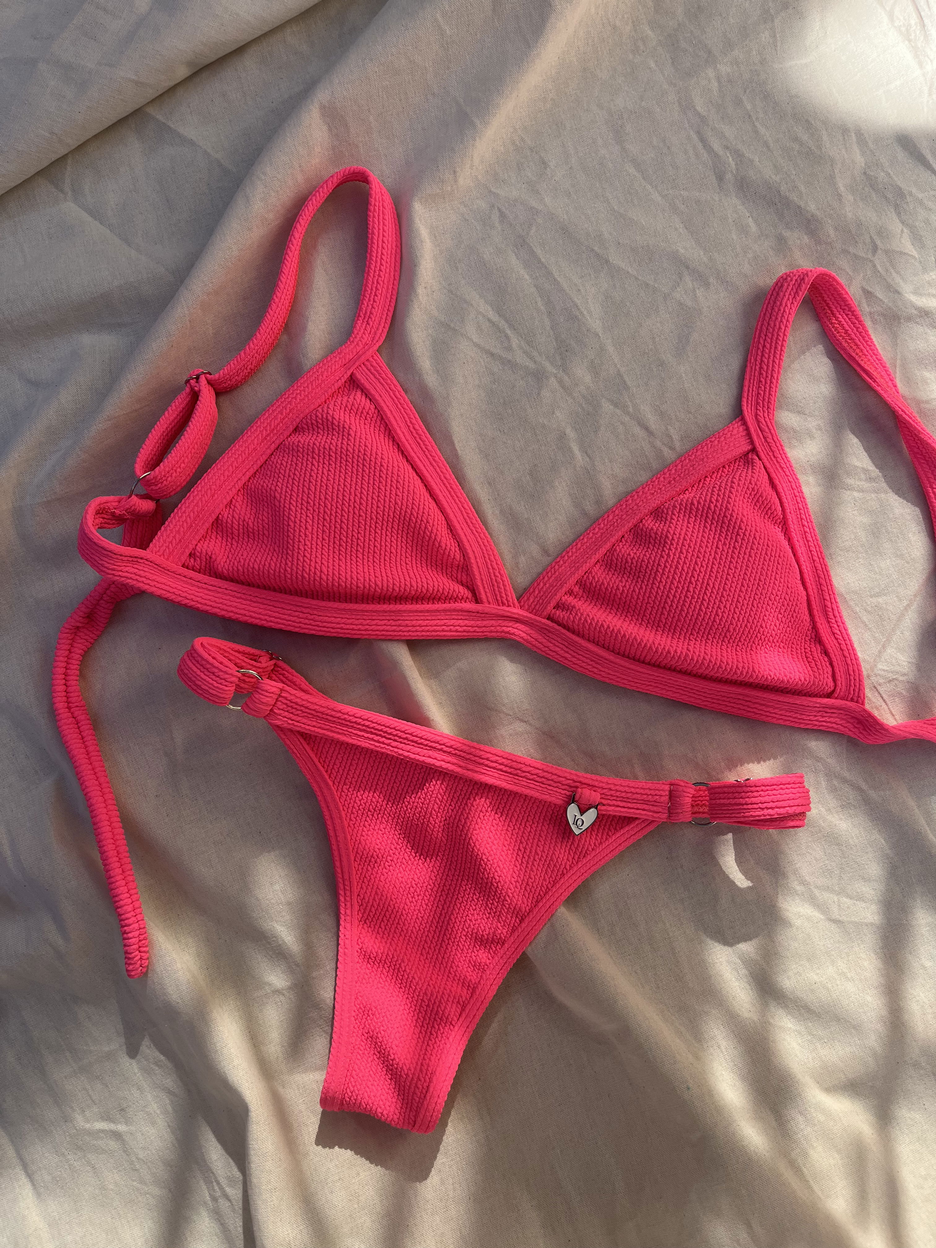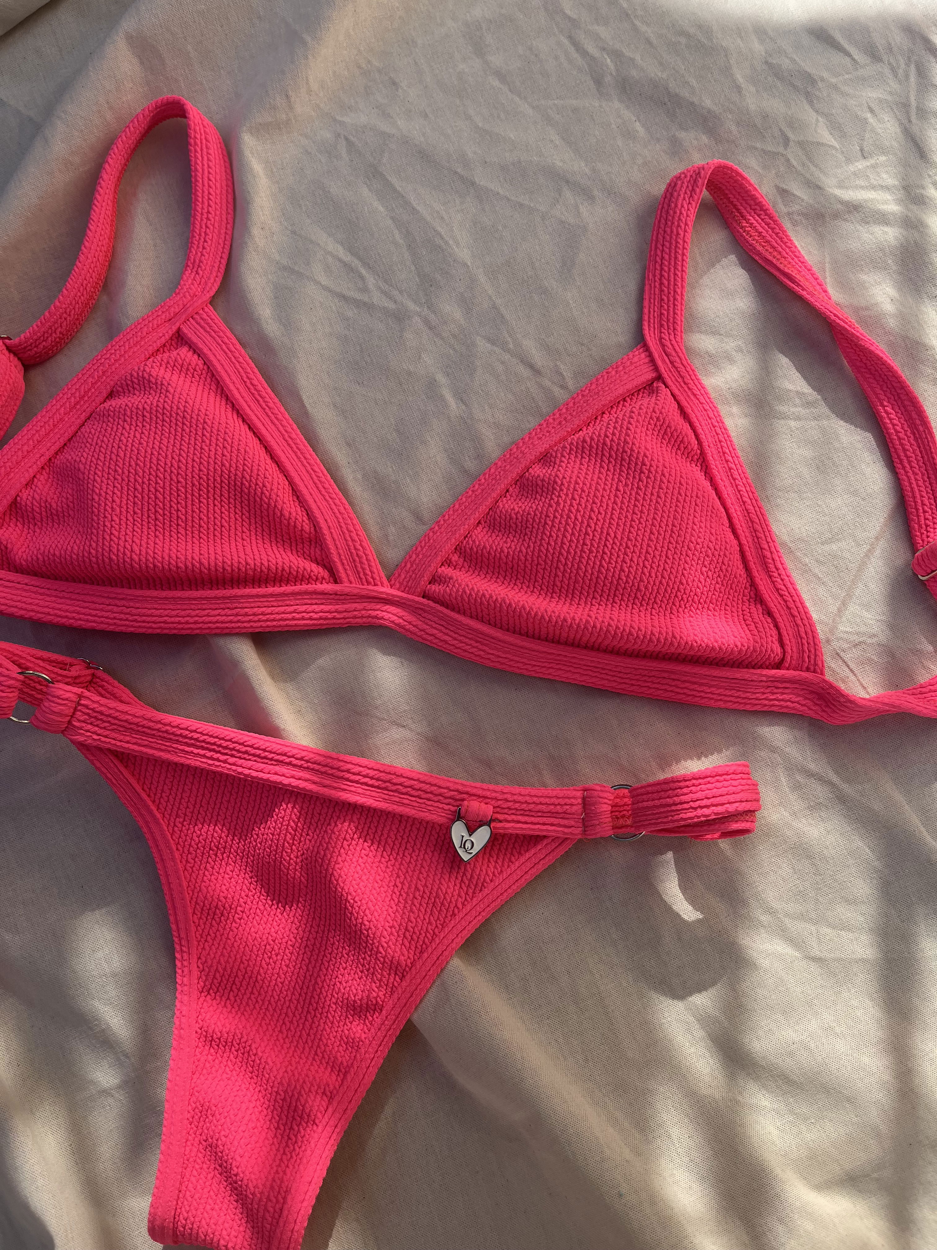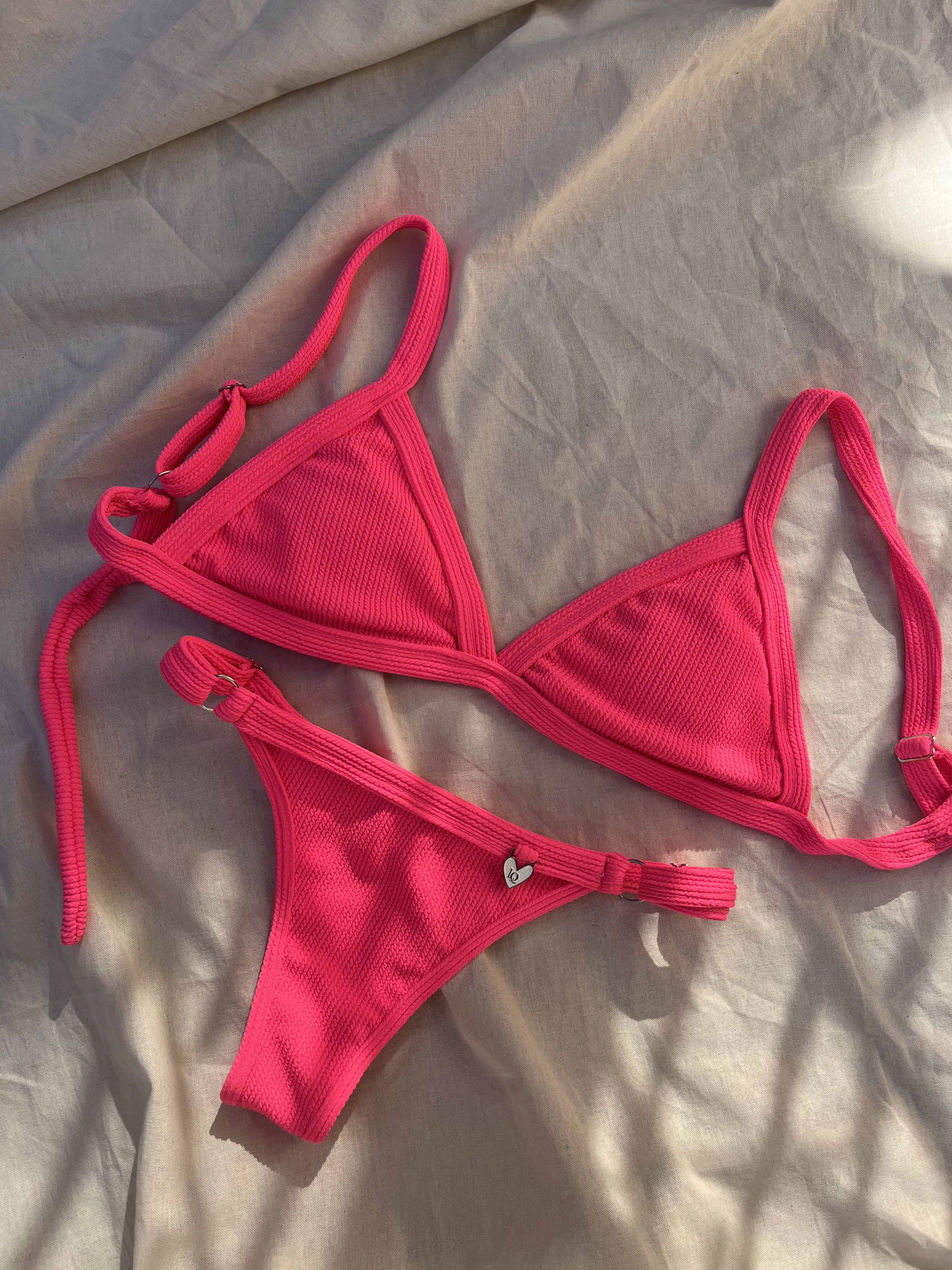 Triángulo texturado. Corpiño con breteles regulables y espalda para atar. Colaless regulable
