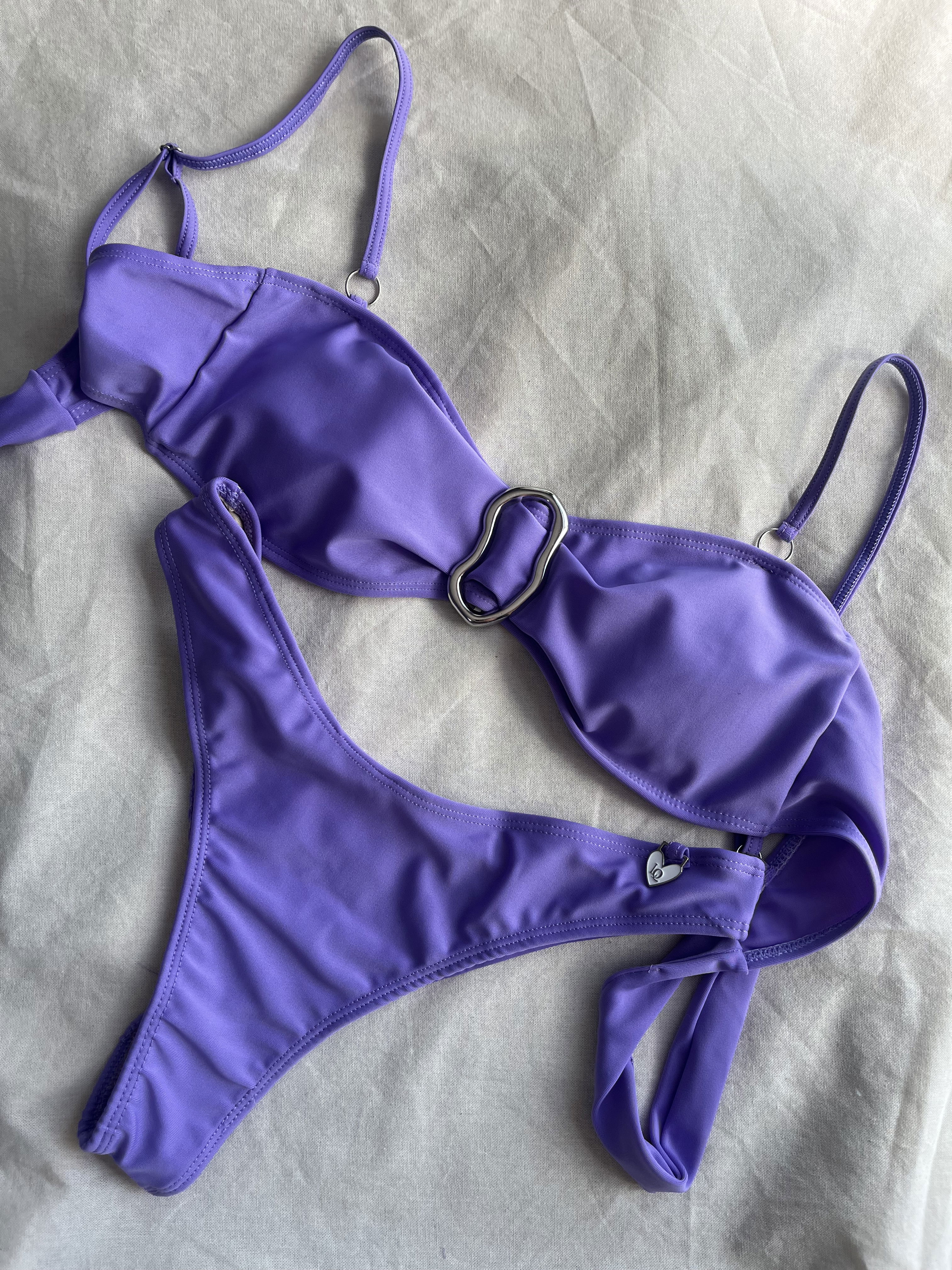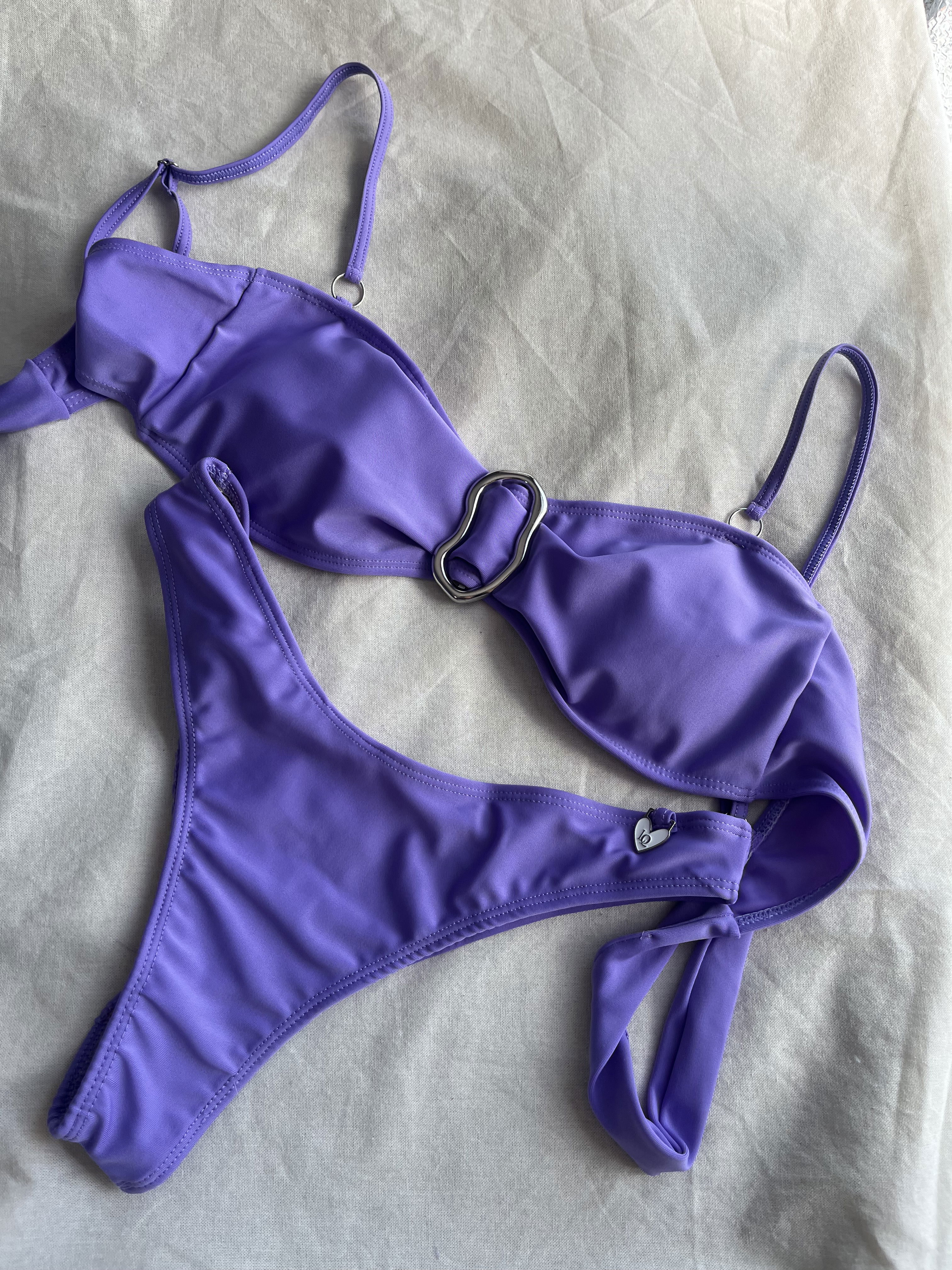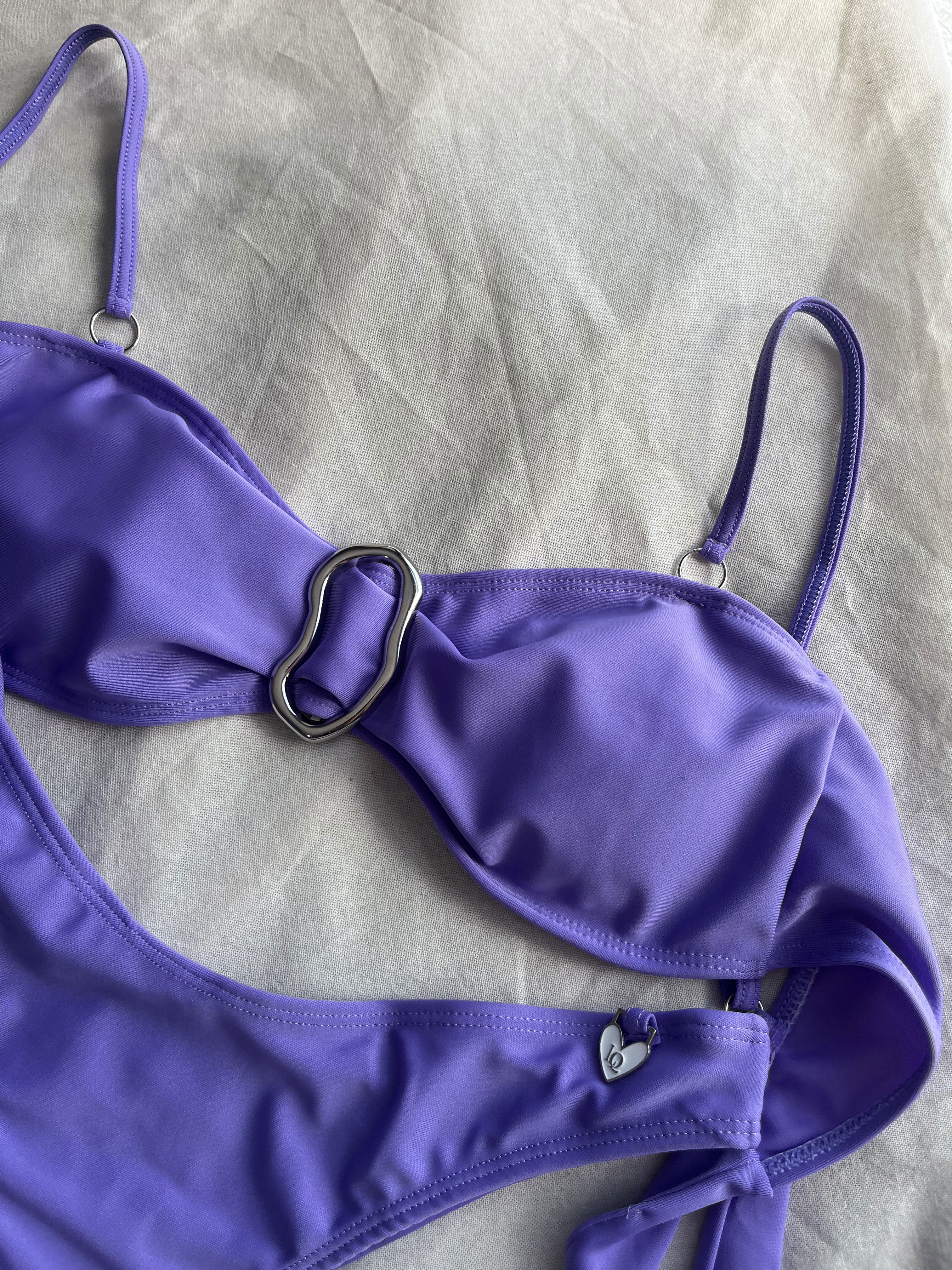 Top con detalle de avío irregular , breteles regulables fijos y espalda para atar. Incluye rellenitos desmontables