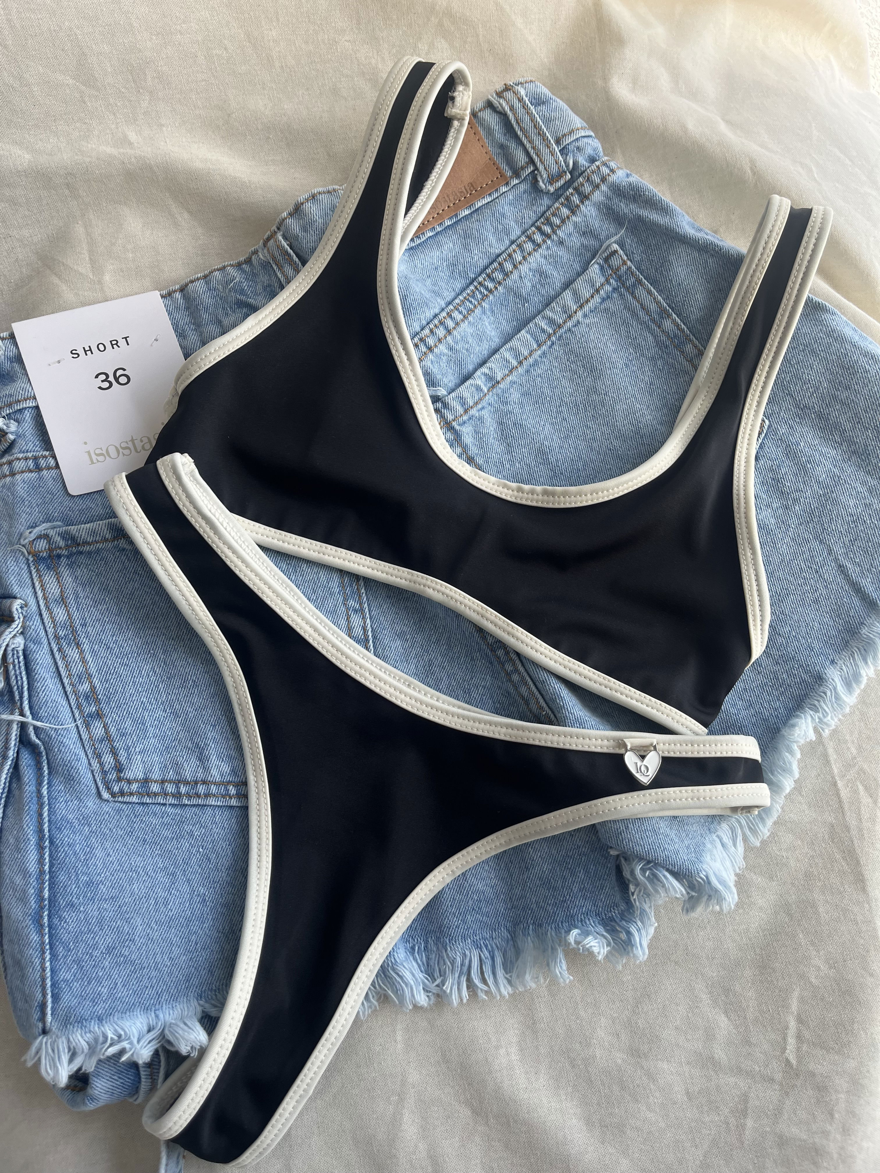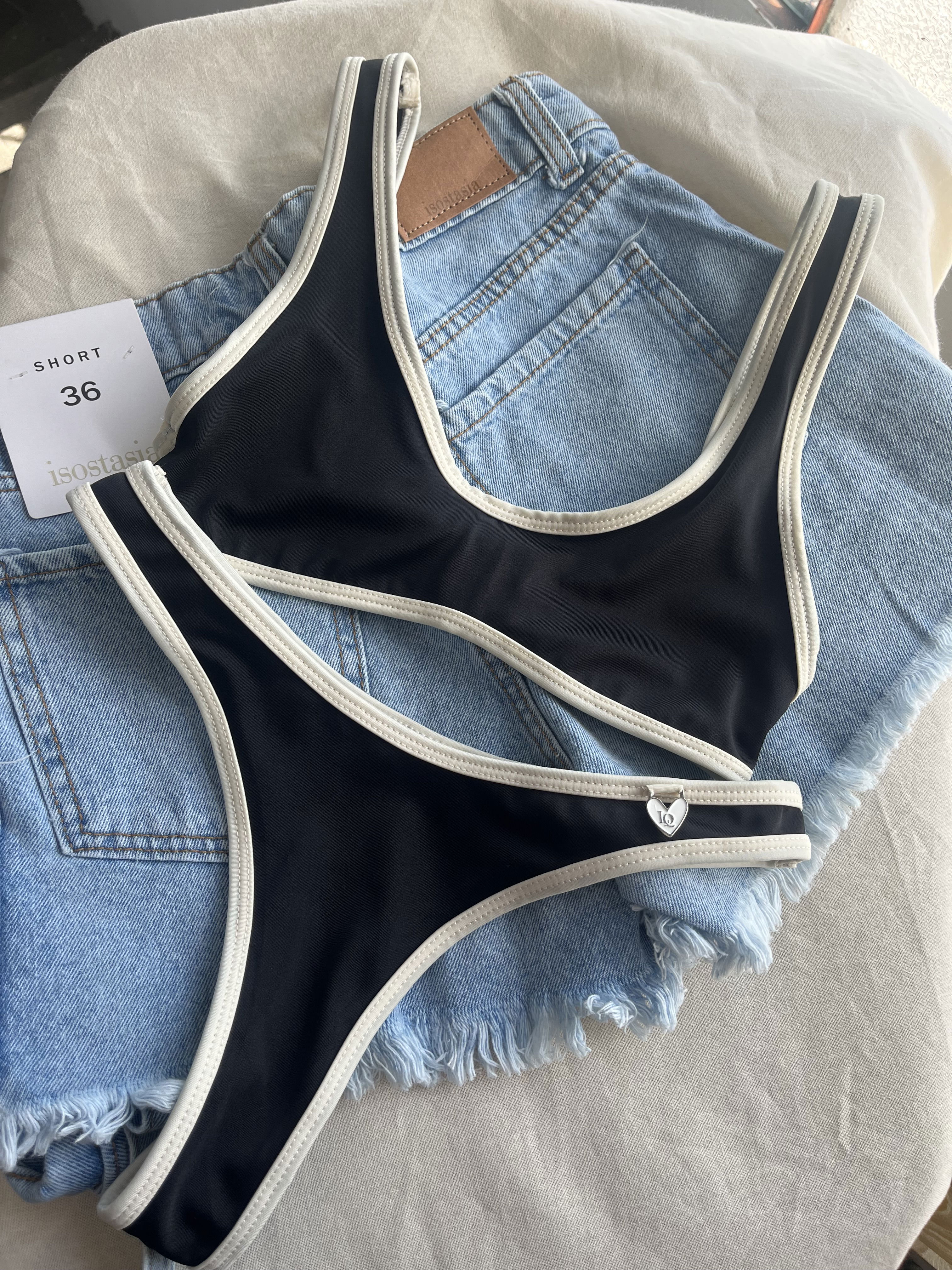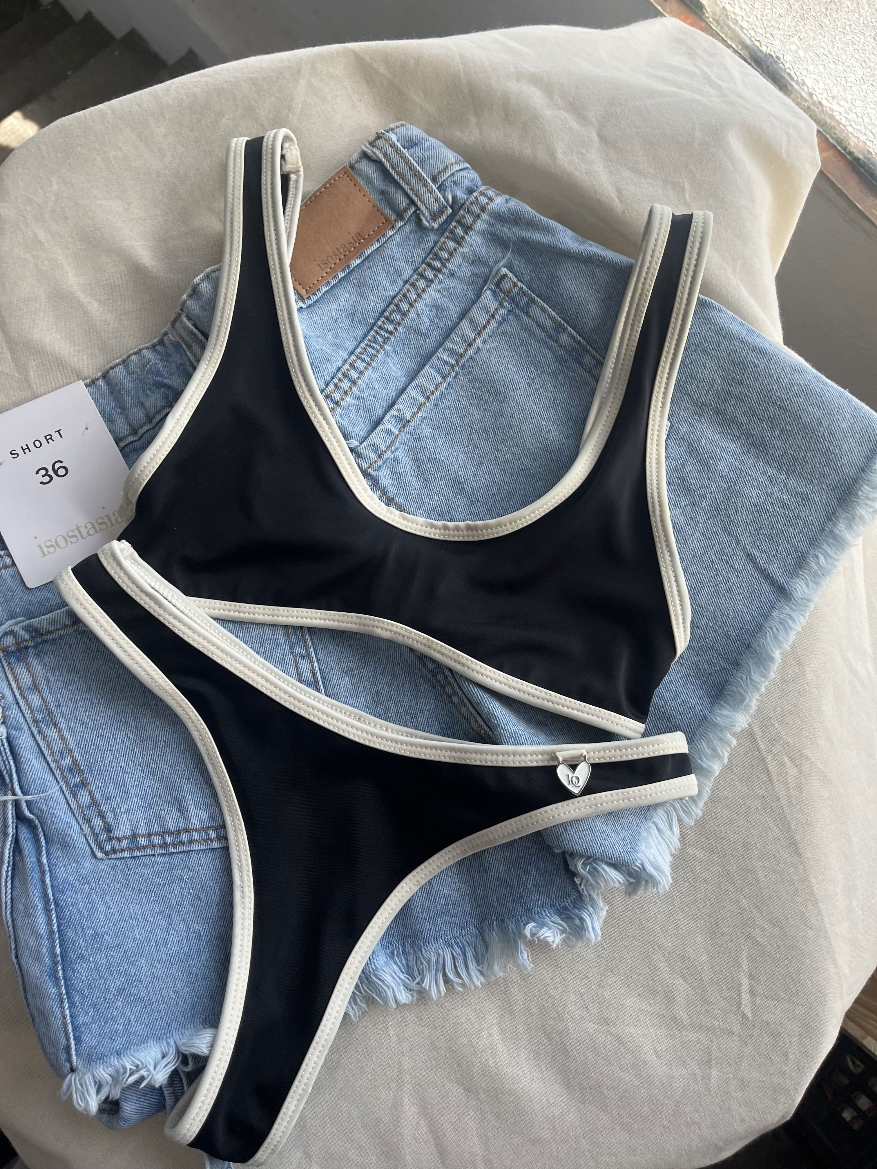 Top entero y bombacha colaless con vivo crema. Corpiño con doble forreria y abertura para poner rellenitos