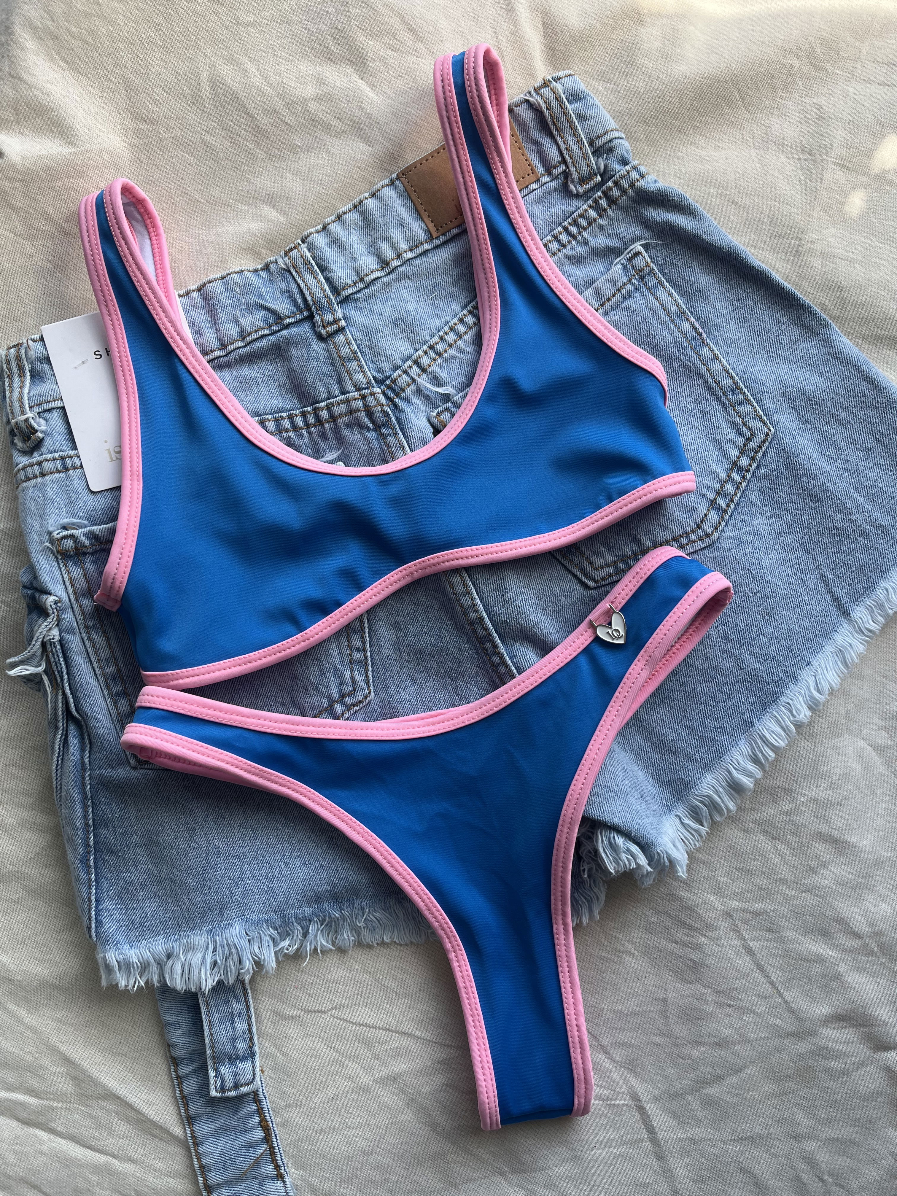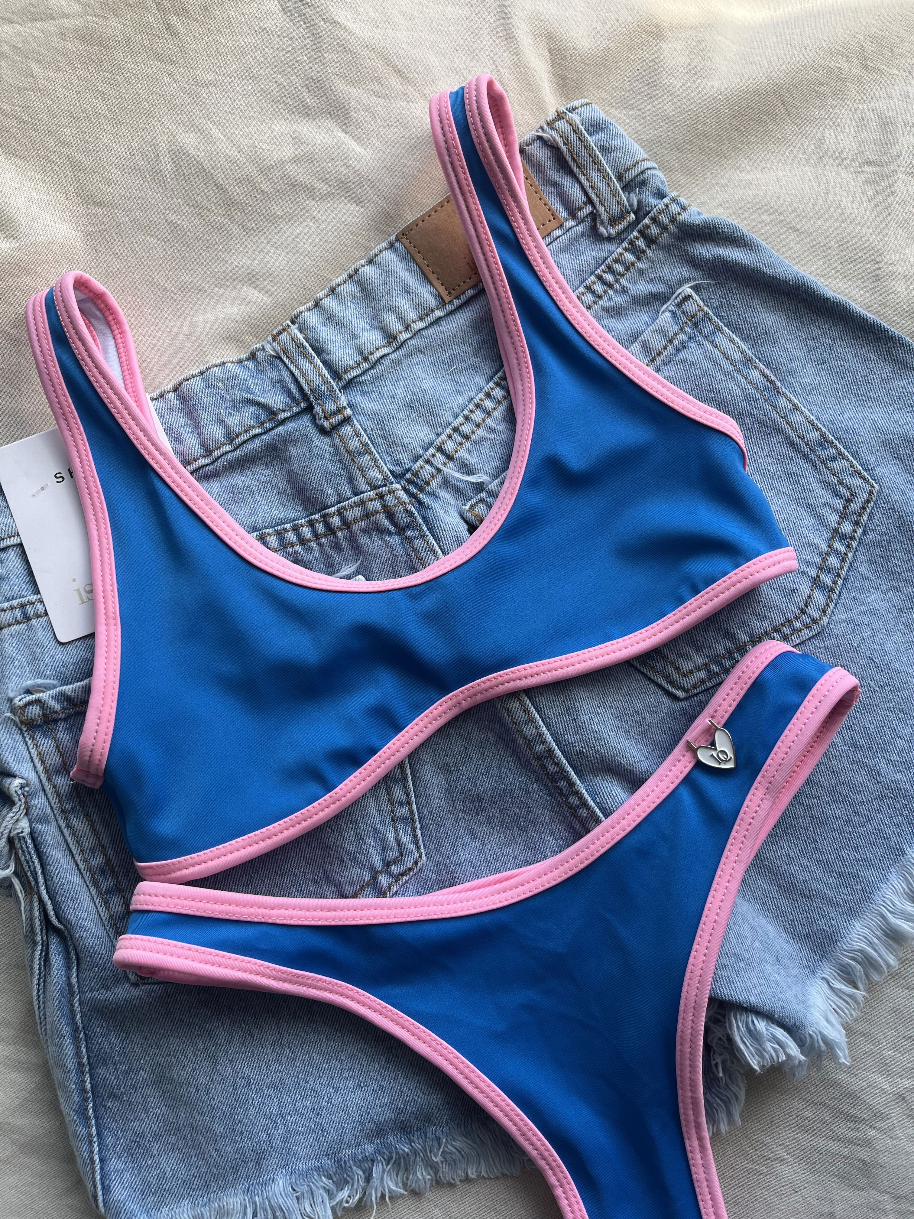 Top entero y bombacha colaless con vivo crema. Corpiño con doble forreria y abertura para poner rellenitos