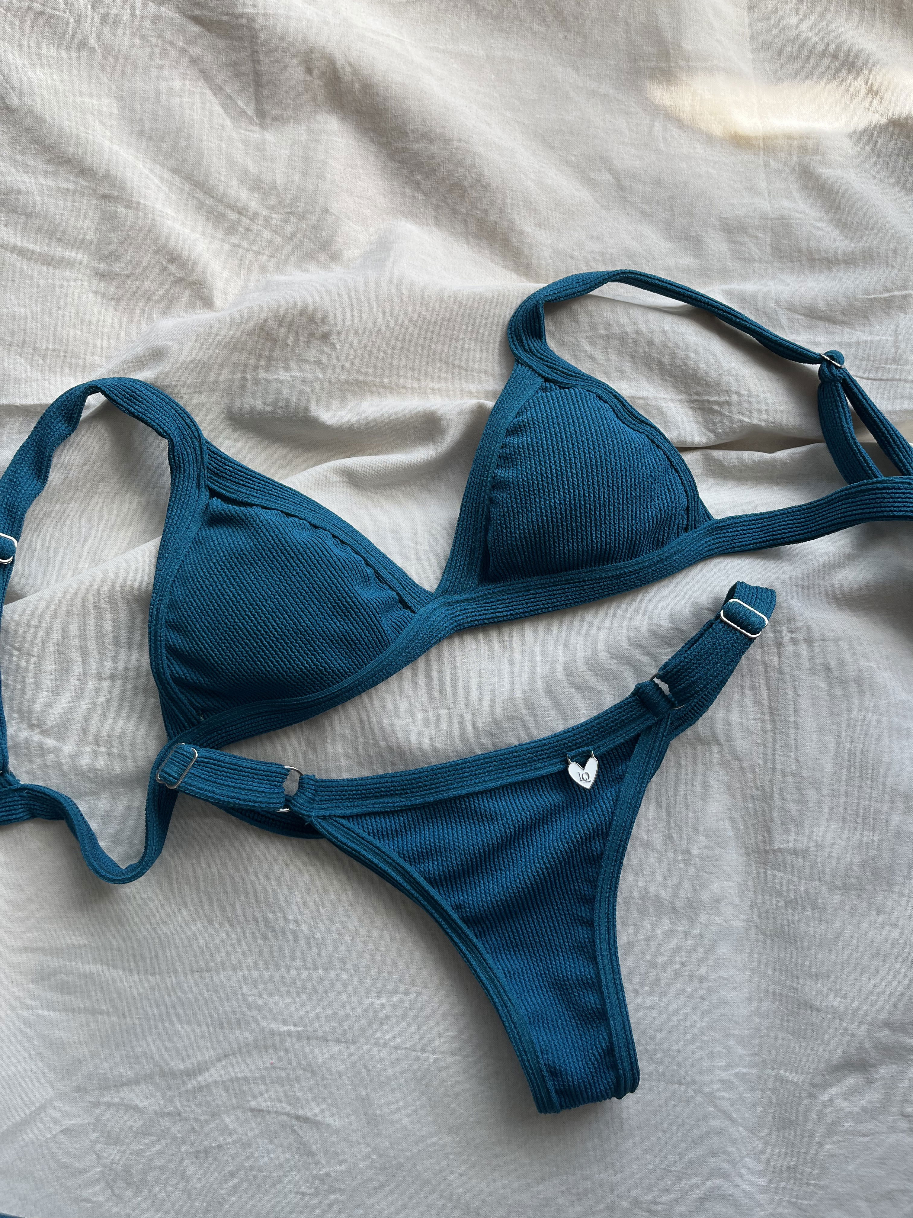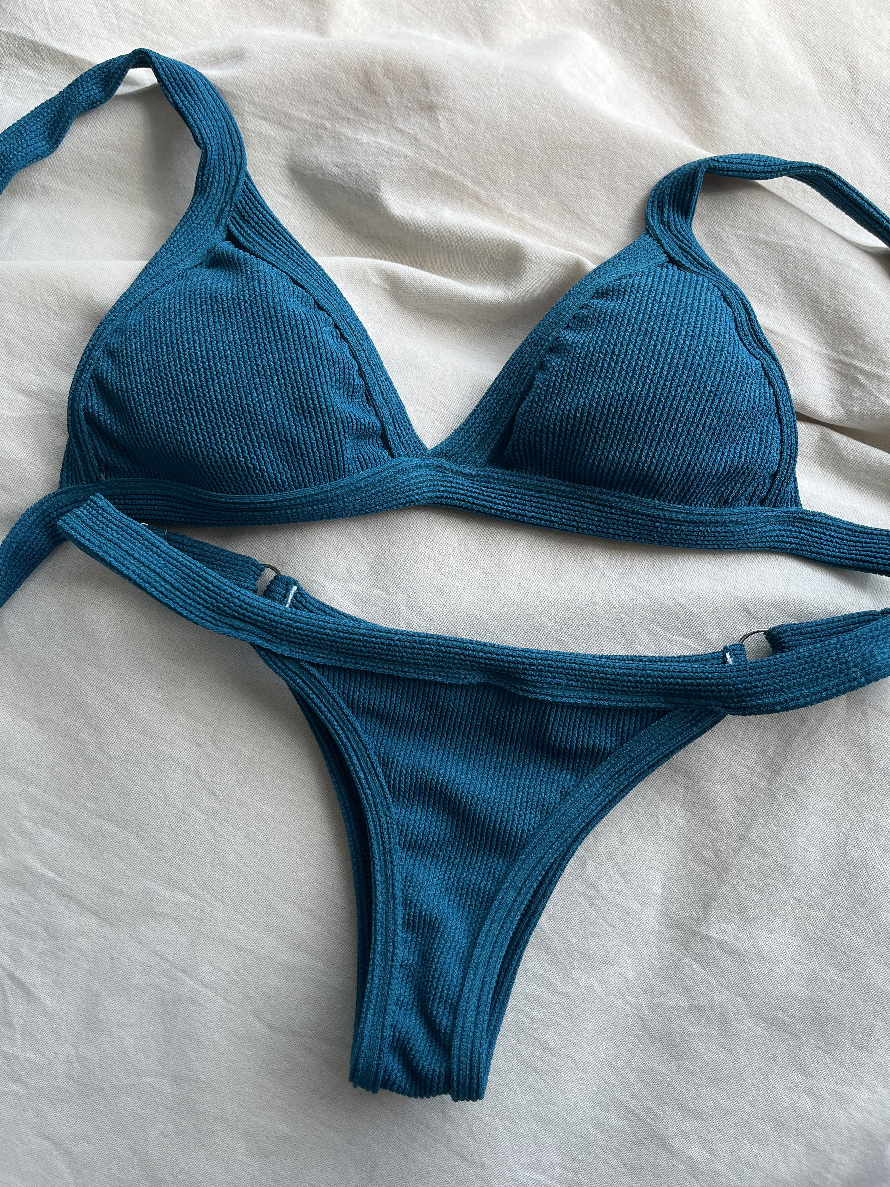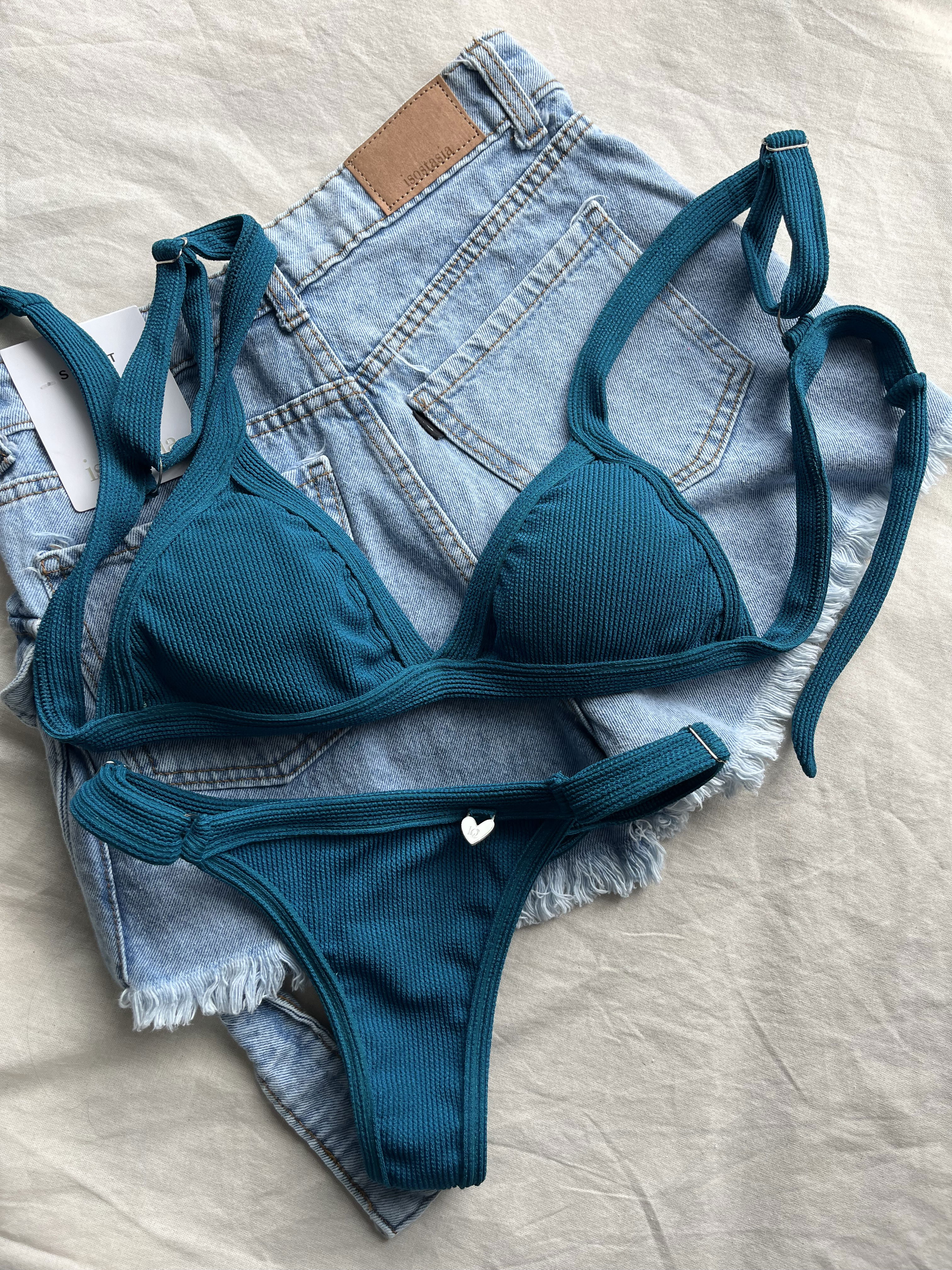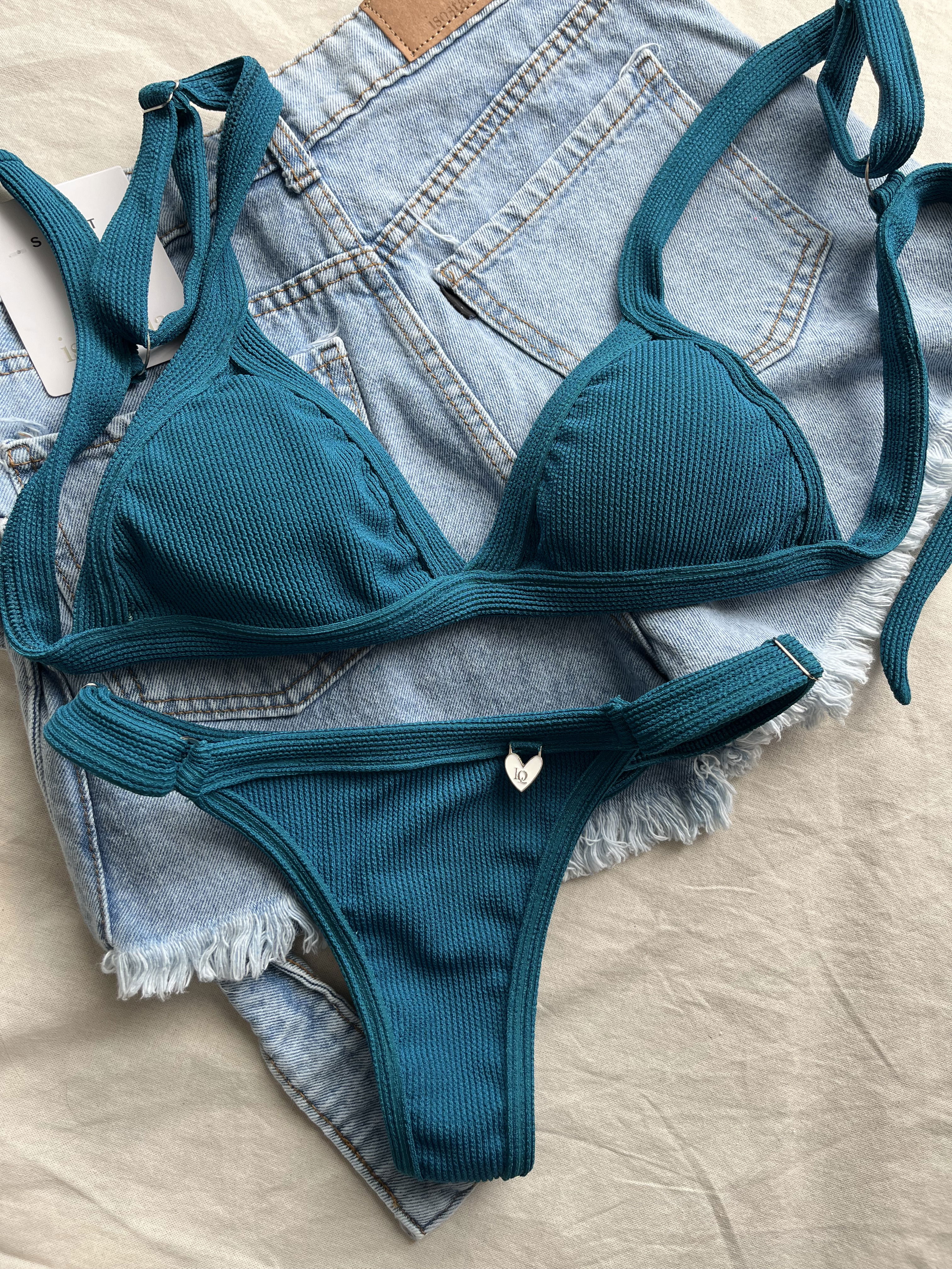 Triángulo texturado. Corpiño con breteles regulables y espalda para atar. Colaless regulable
