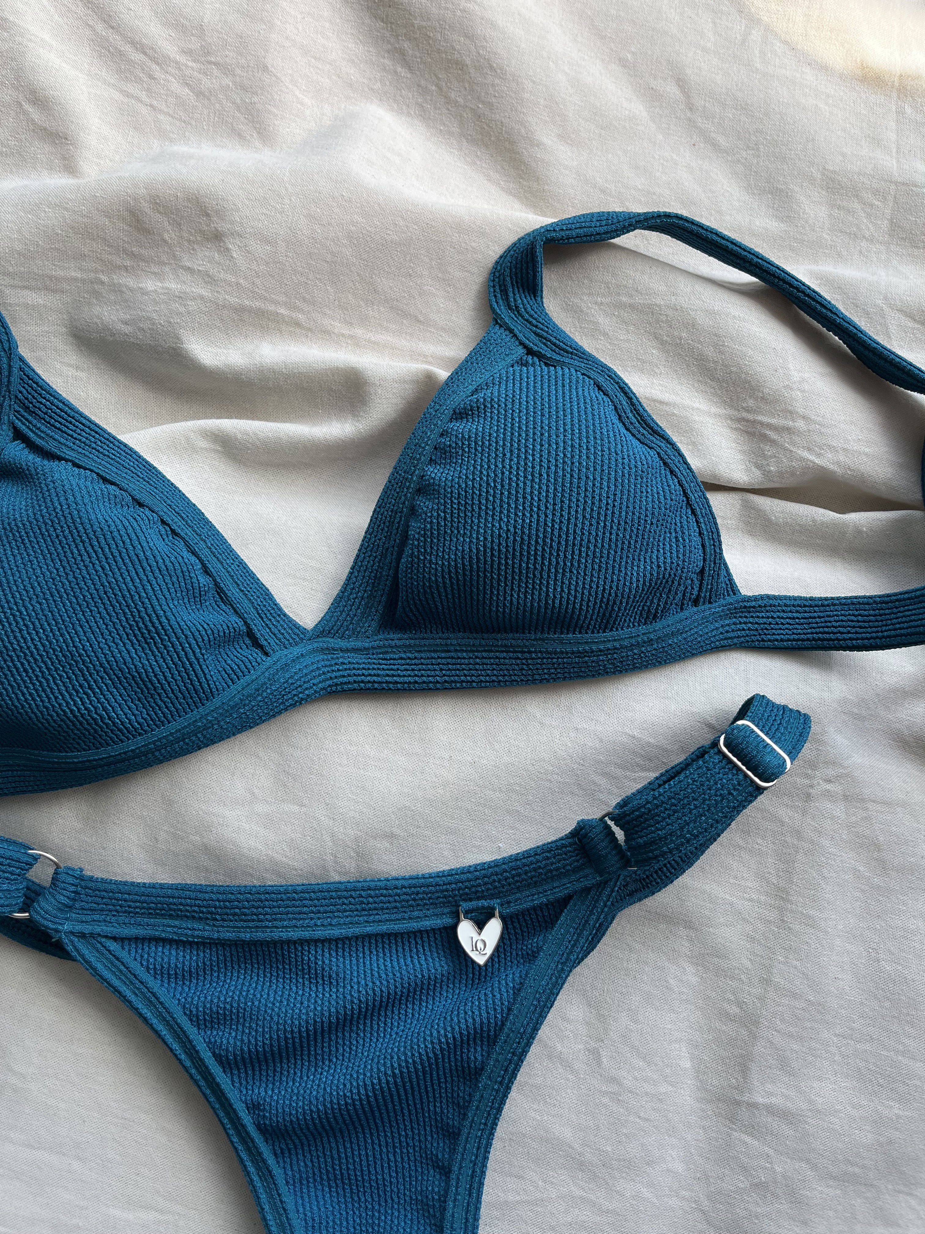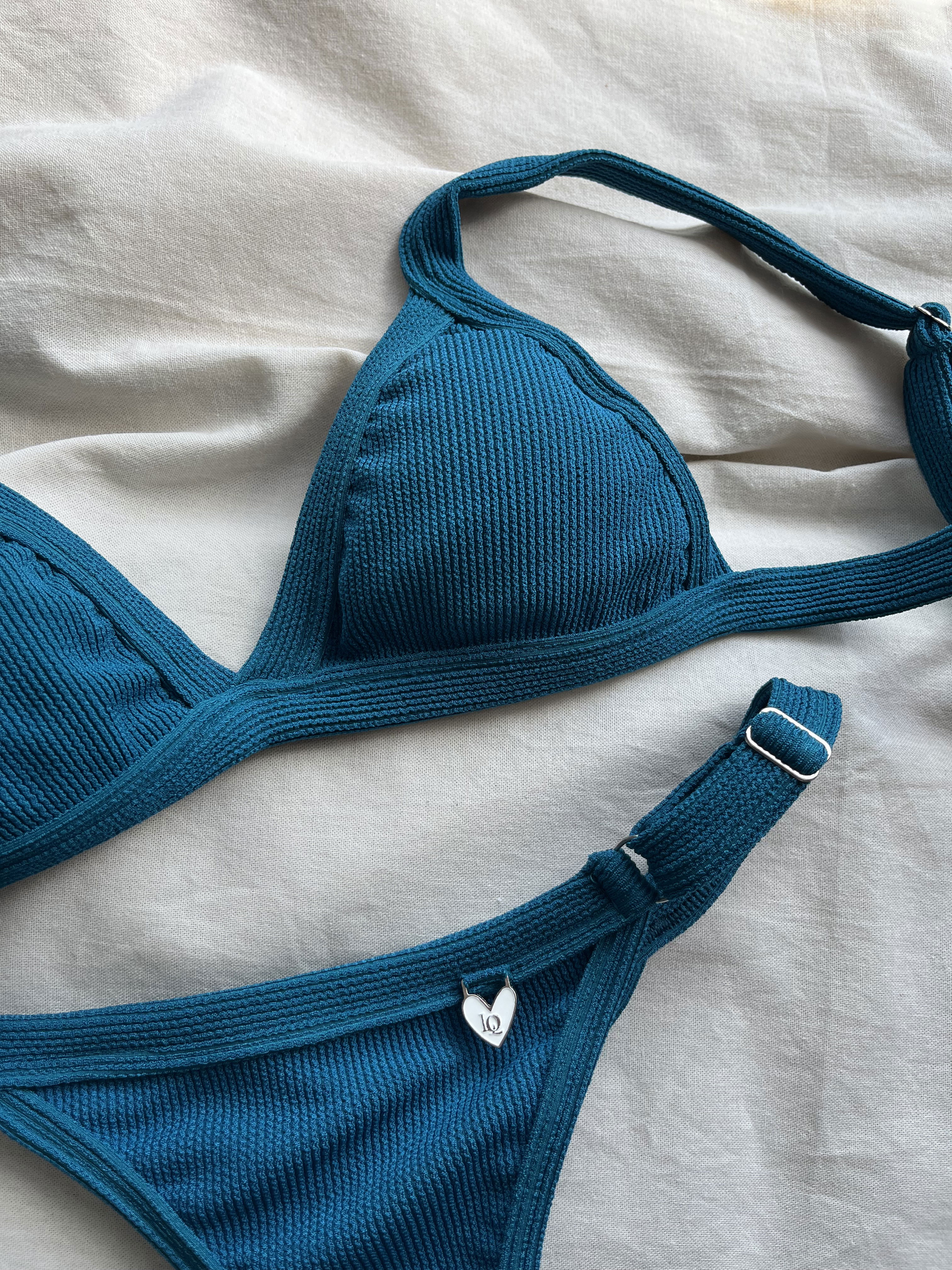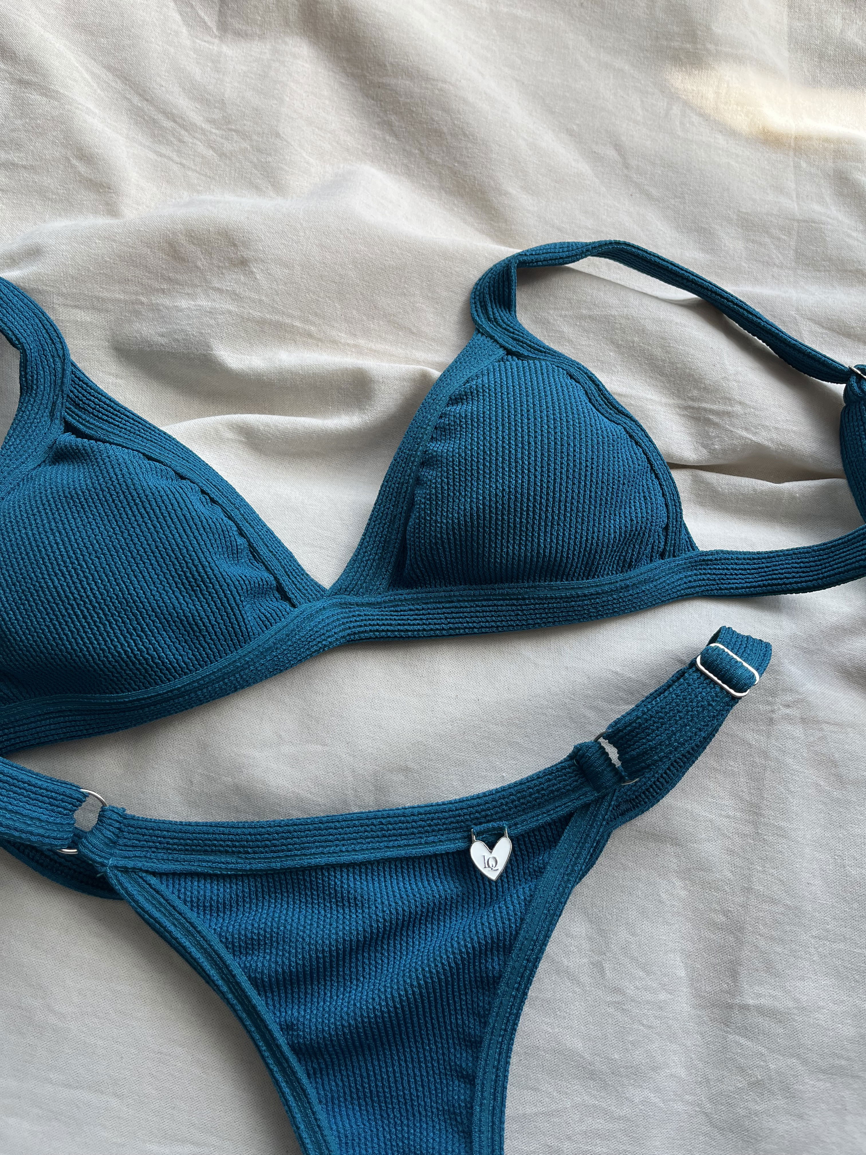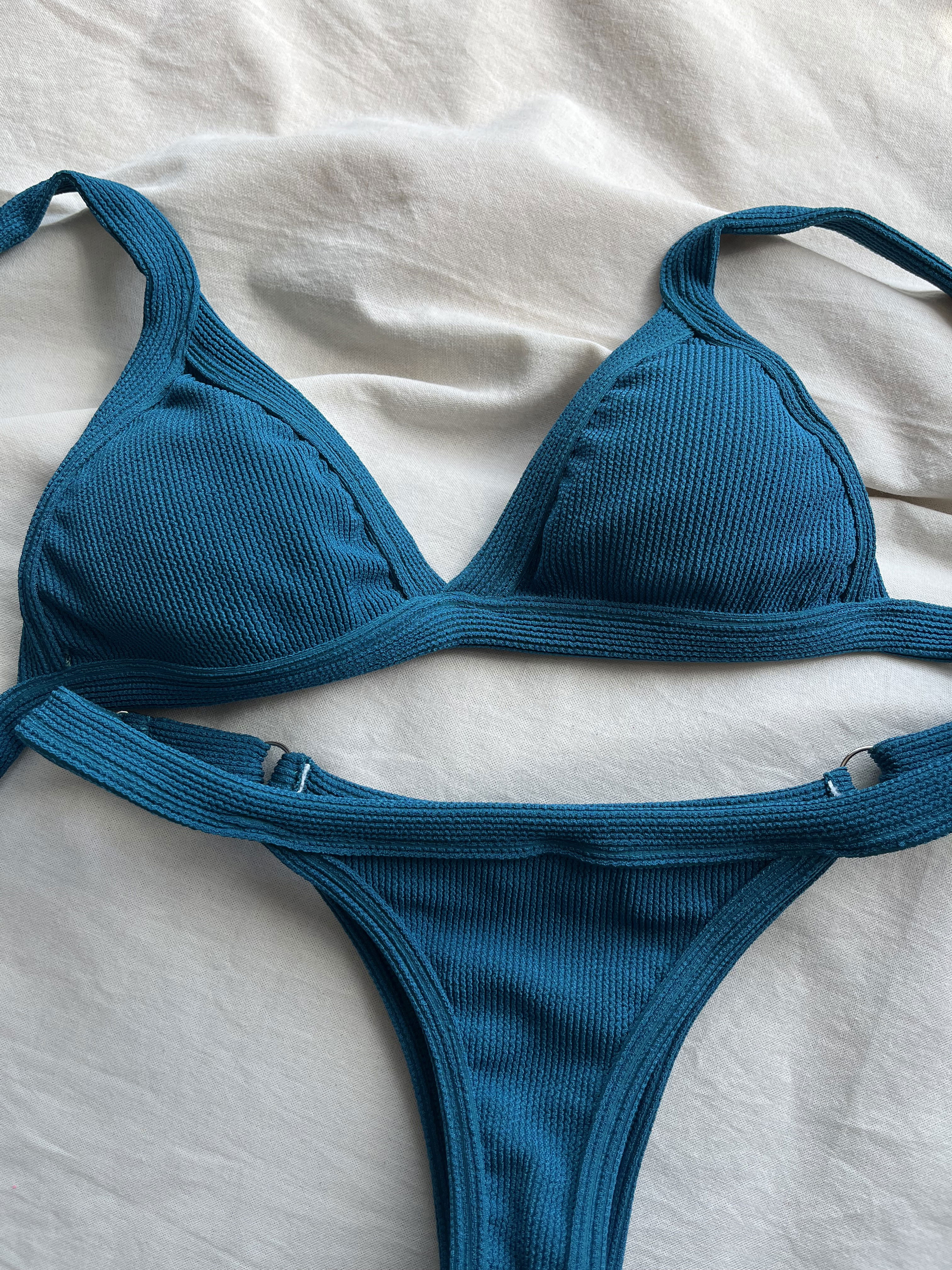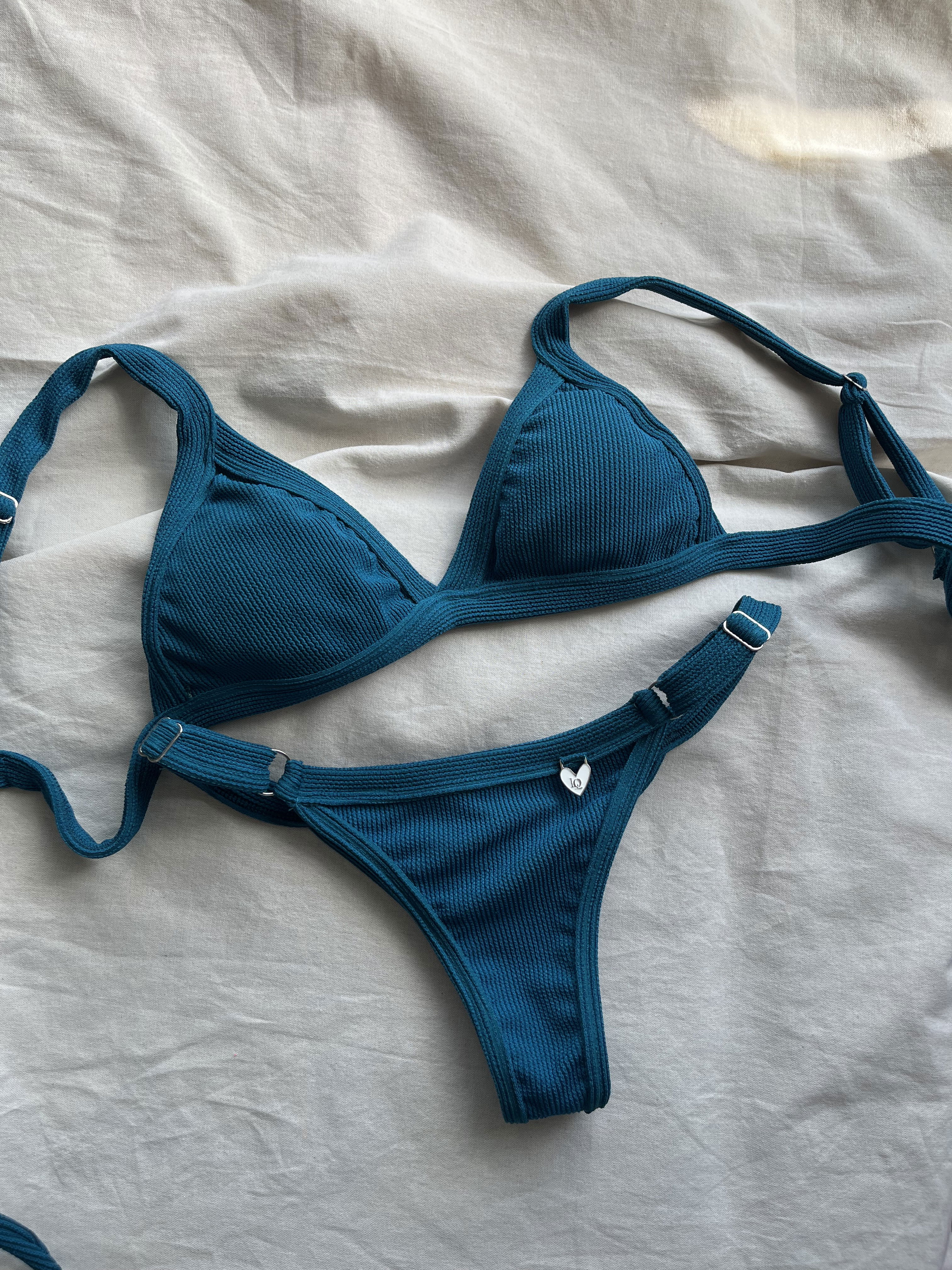 Triángulo texturado. Corpiño con breteles regulables y espalda para atar. Colaless regulable