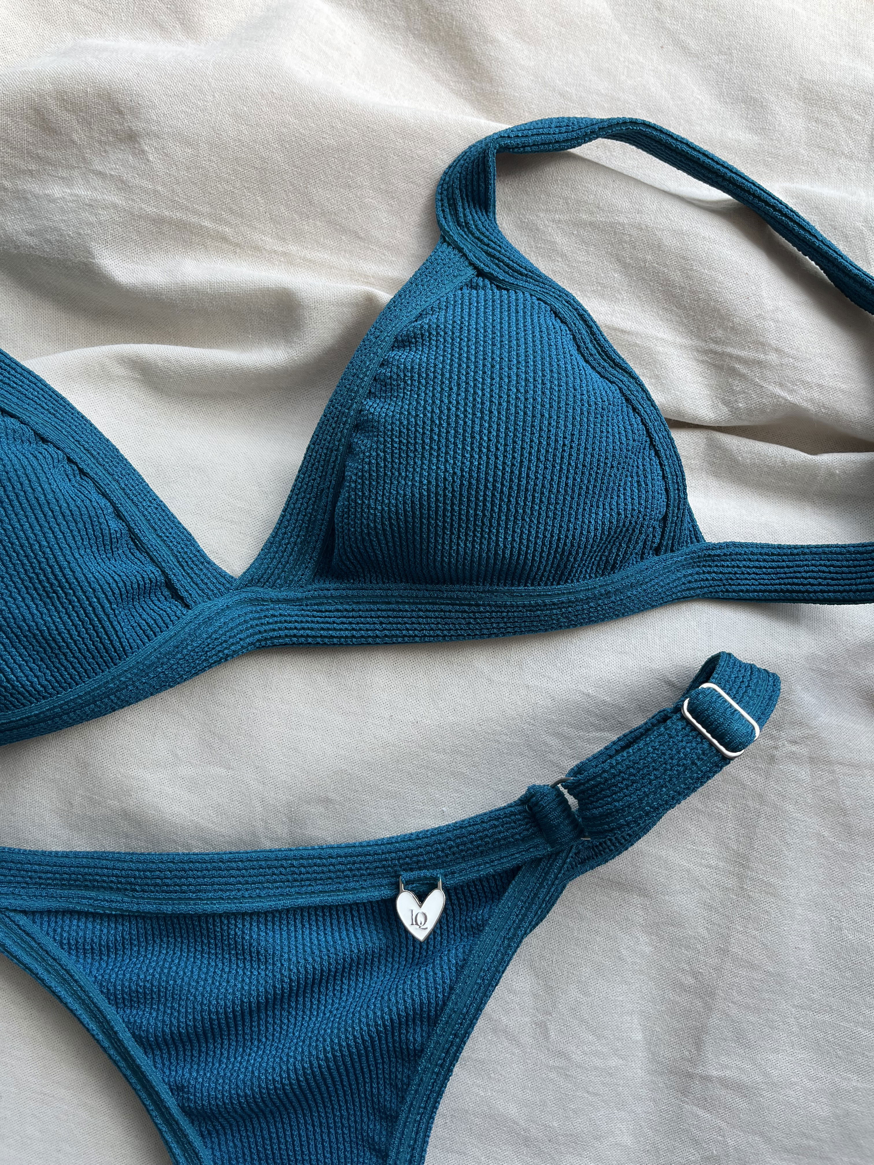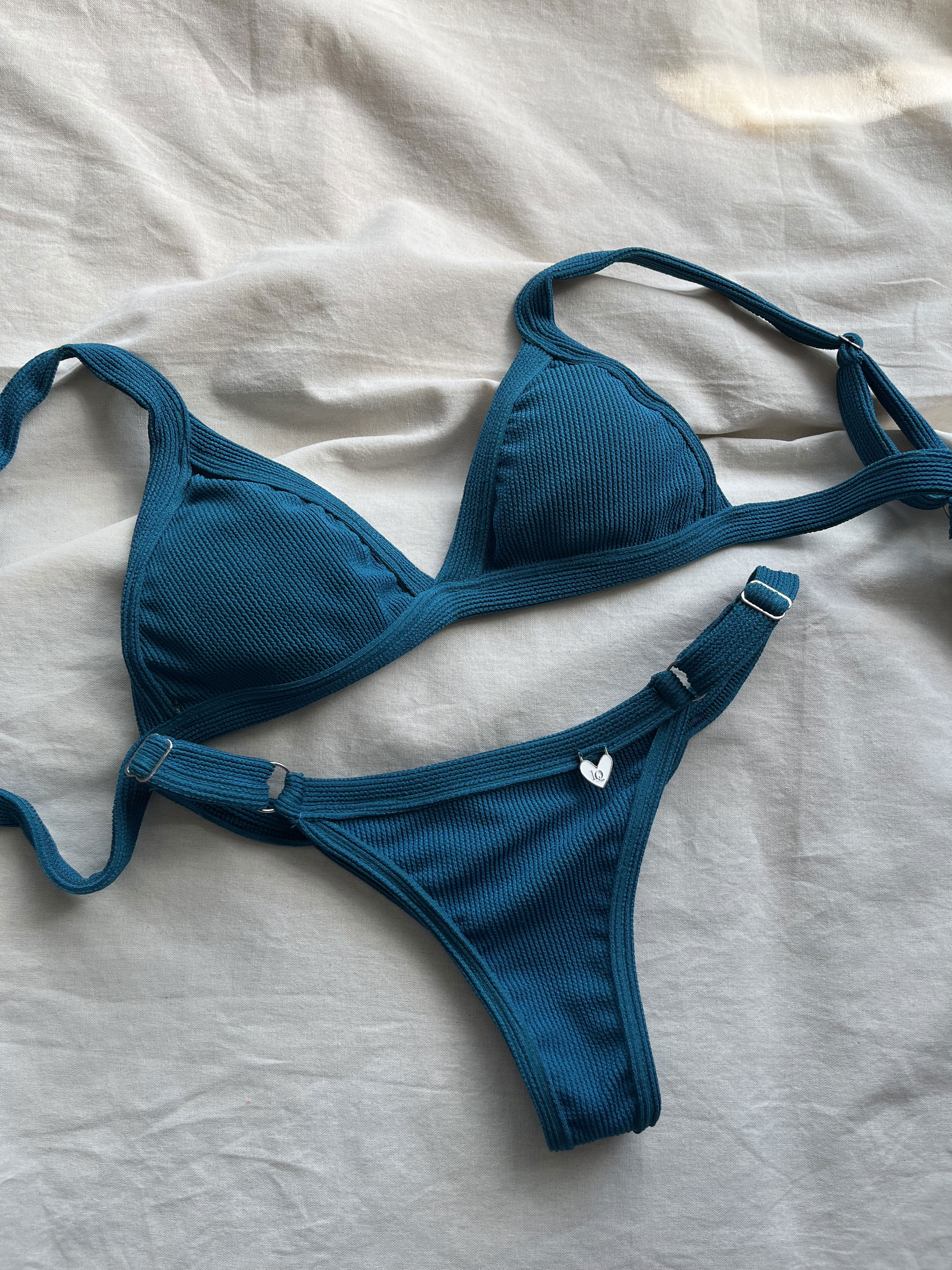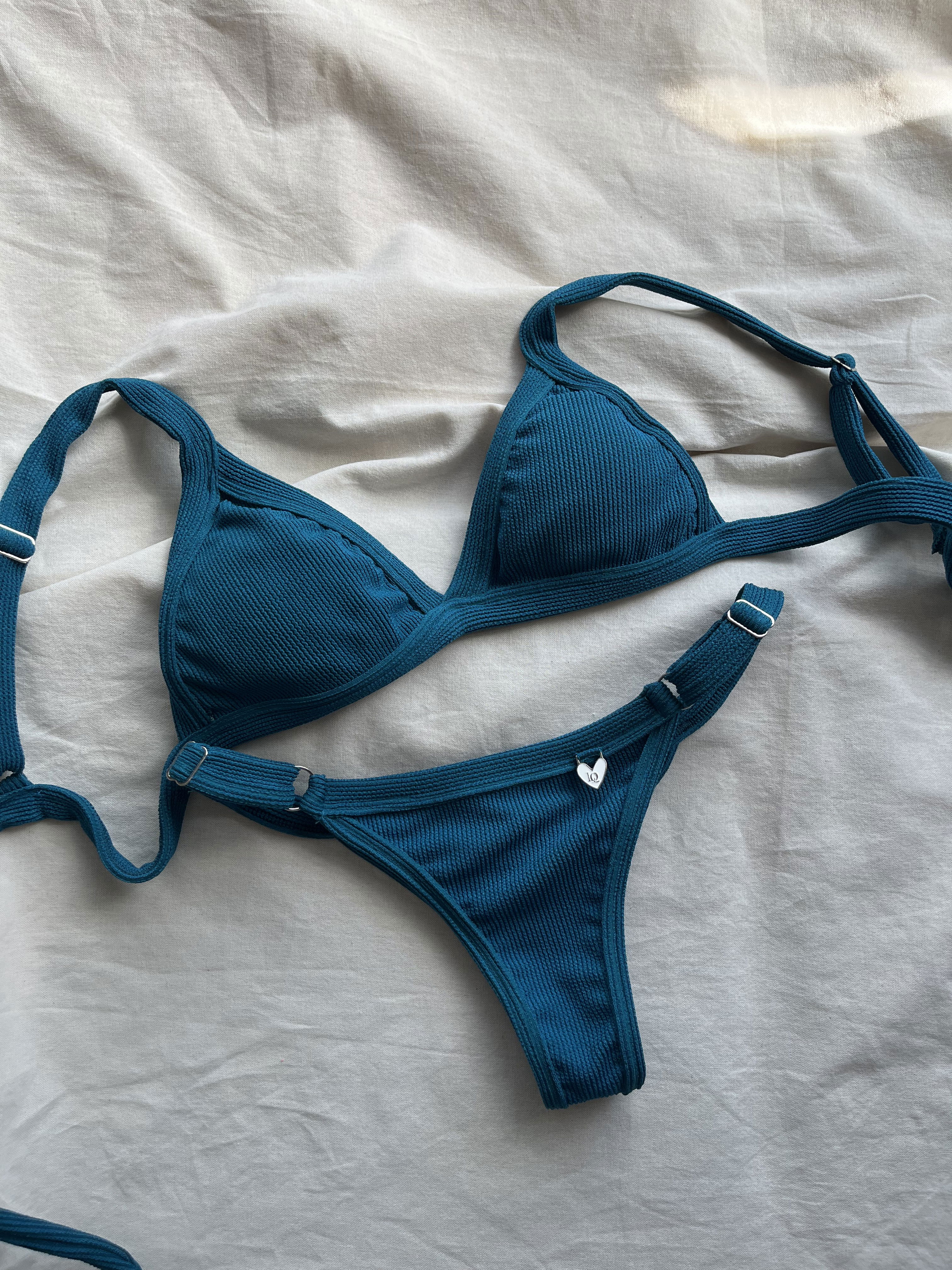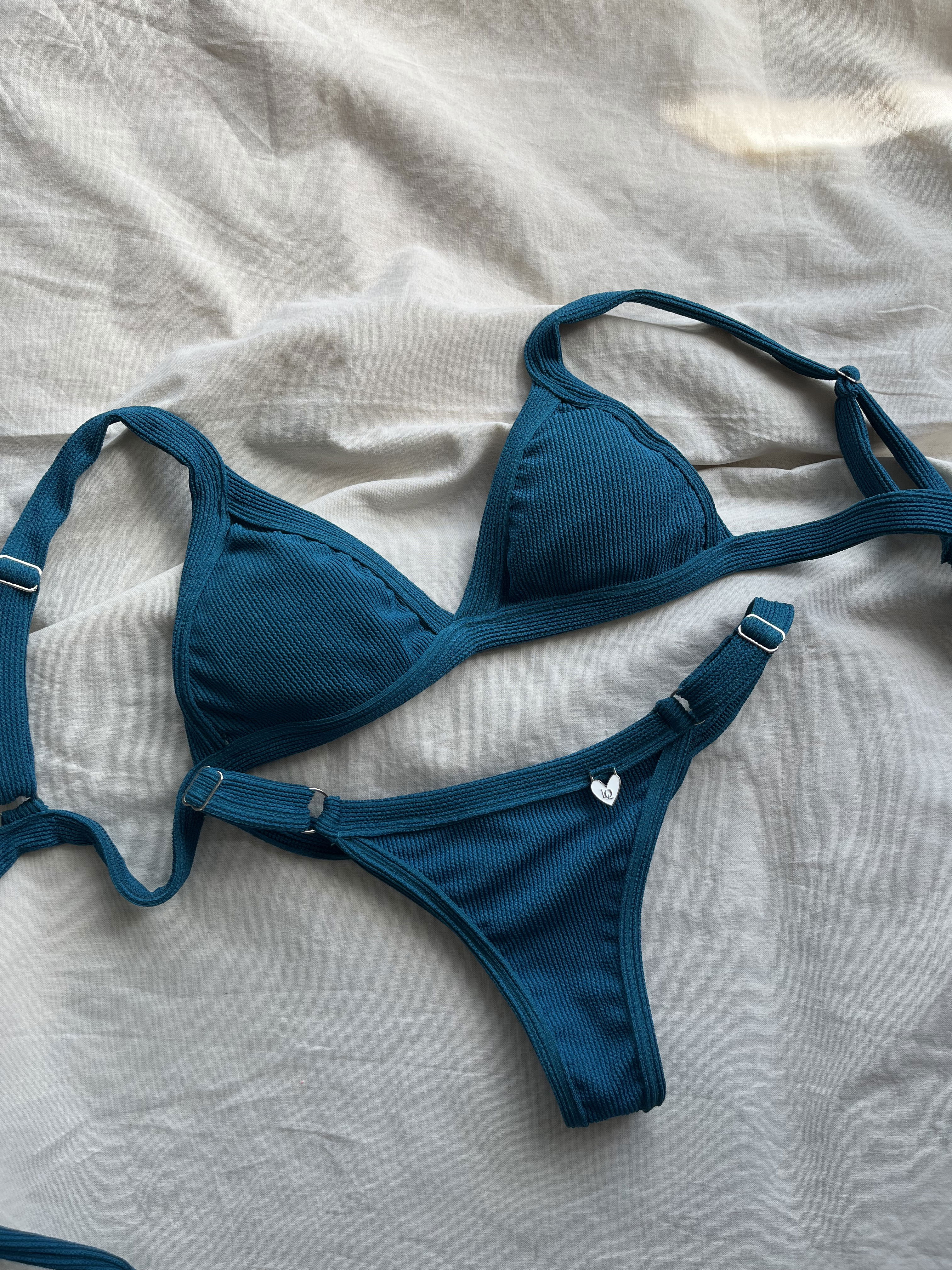 Triángulo texturado. Corpiño con breteles regulables y espalda para atar. Colaless regulable