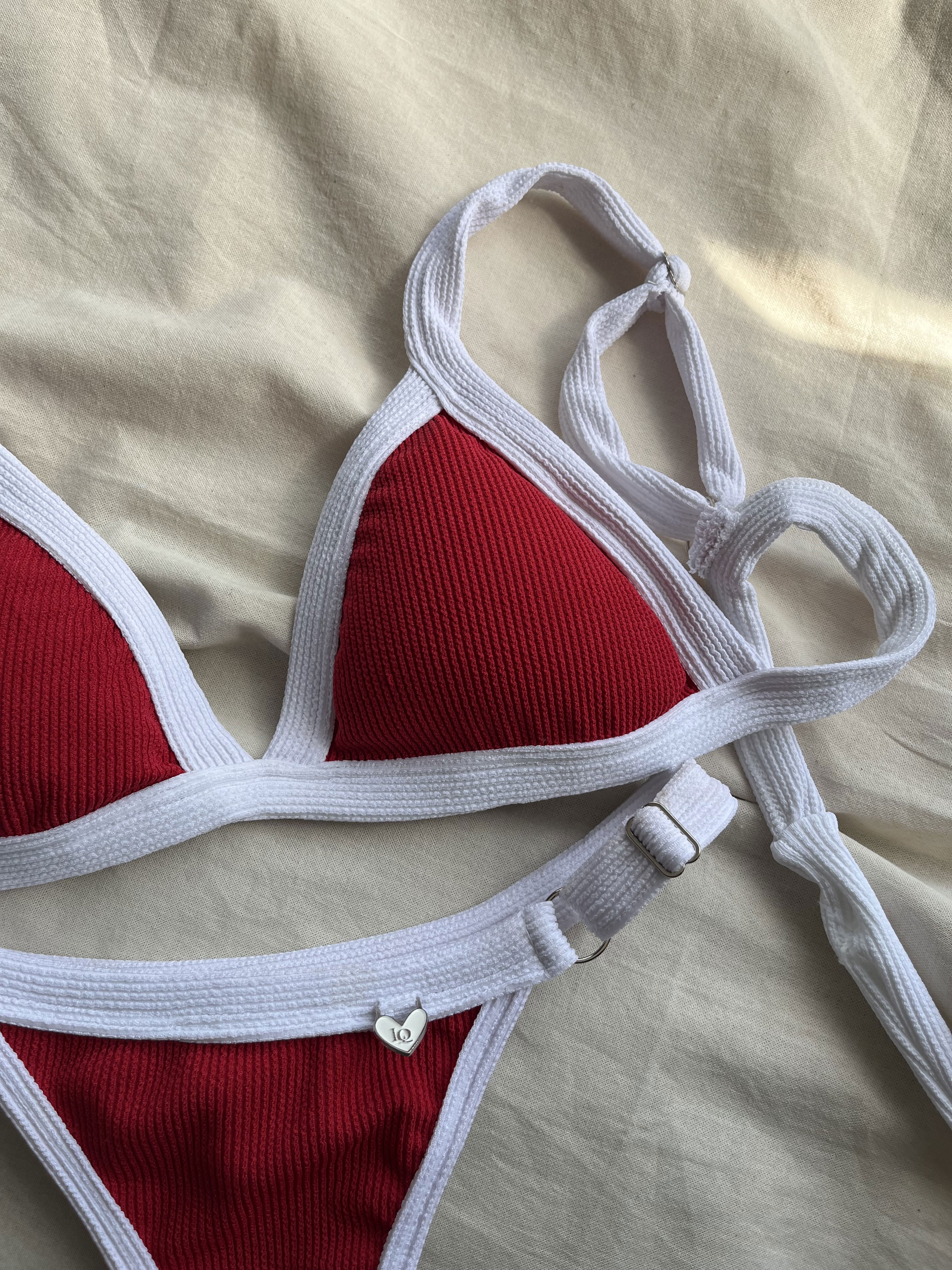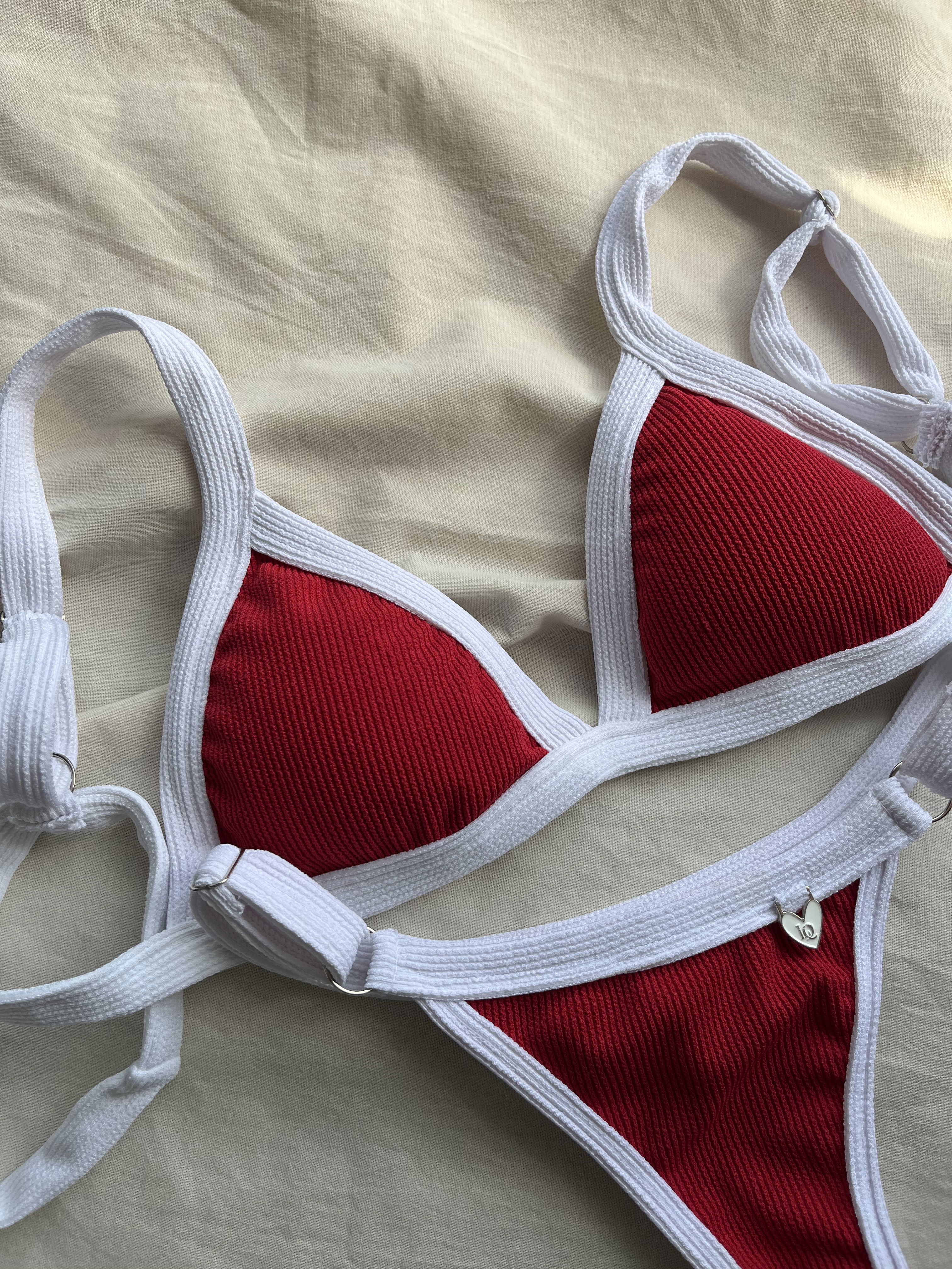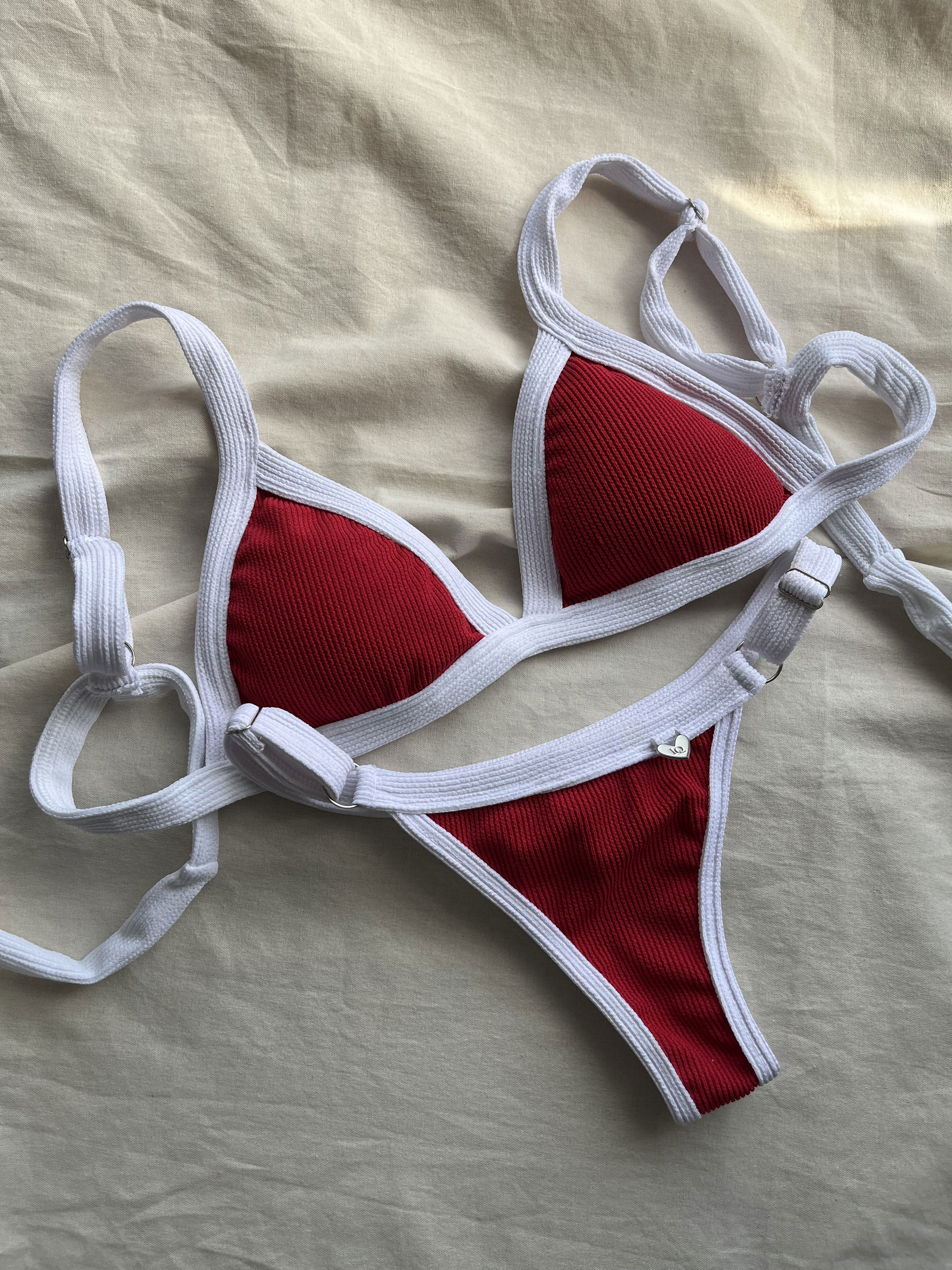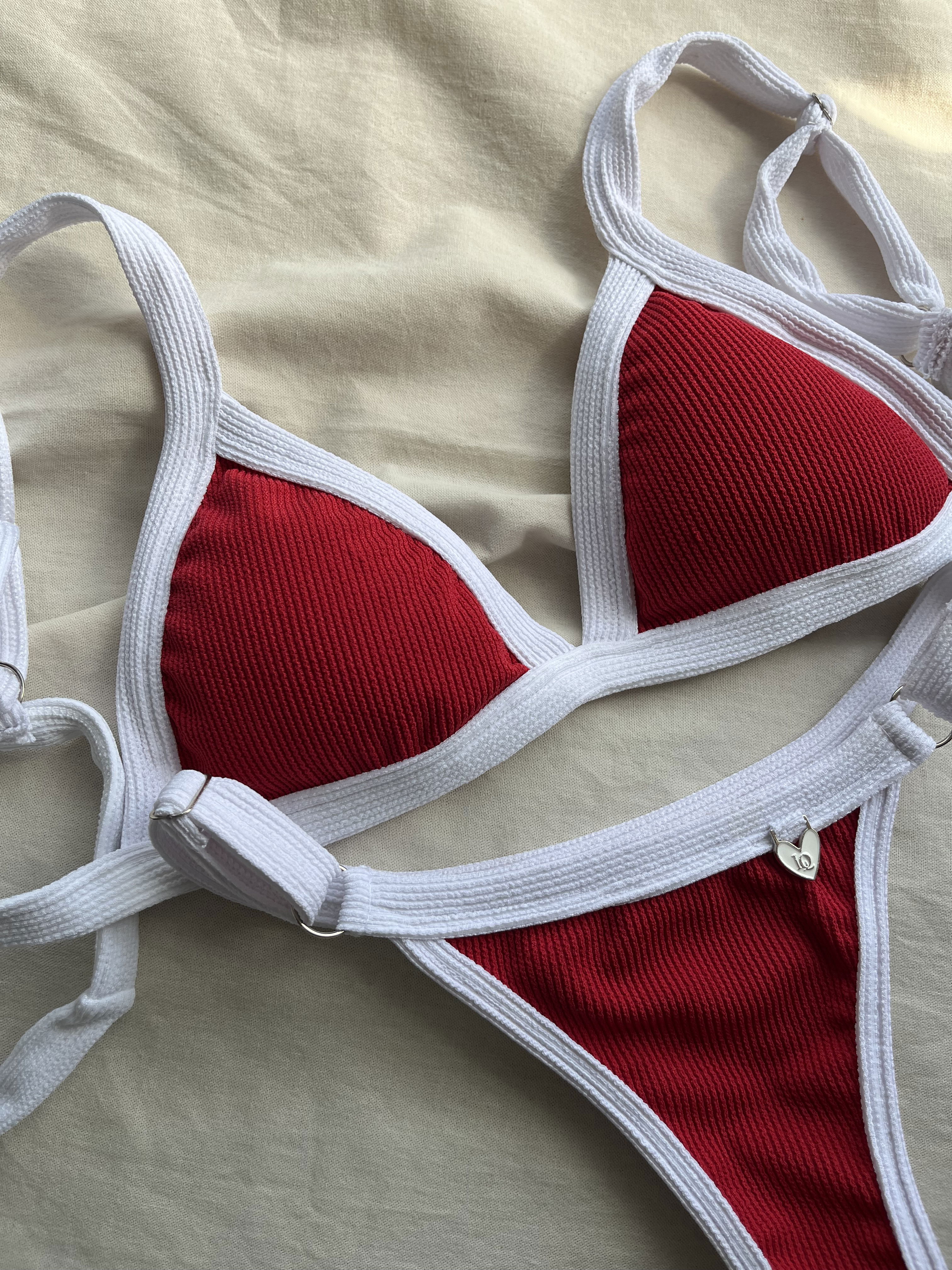 Triángulo texturado. Corpiño con breteles regulables y espalda para atar. Colaless regulable