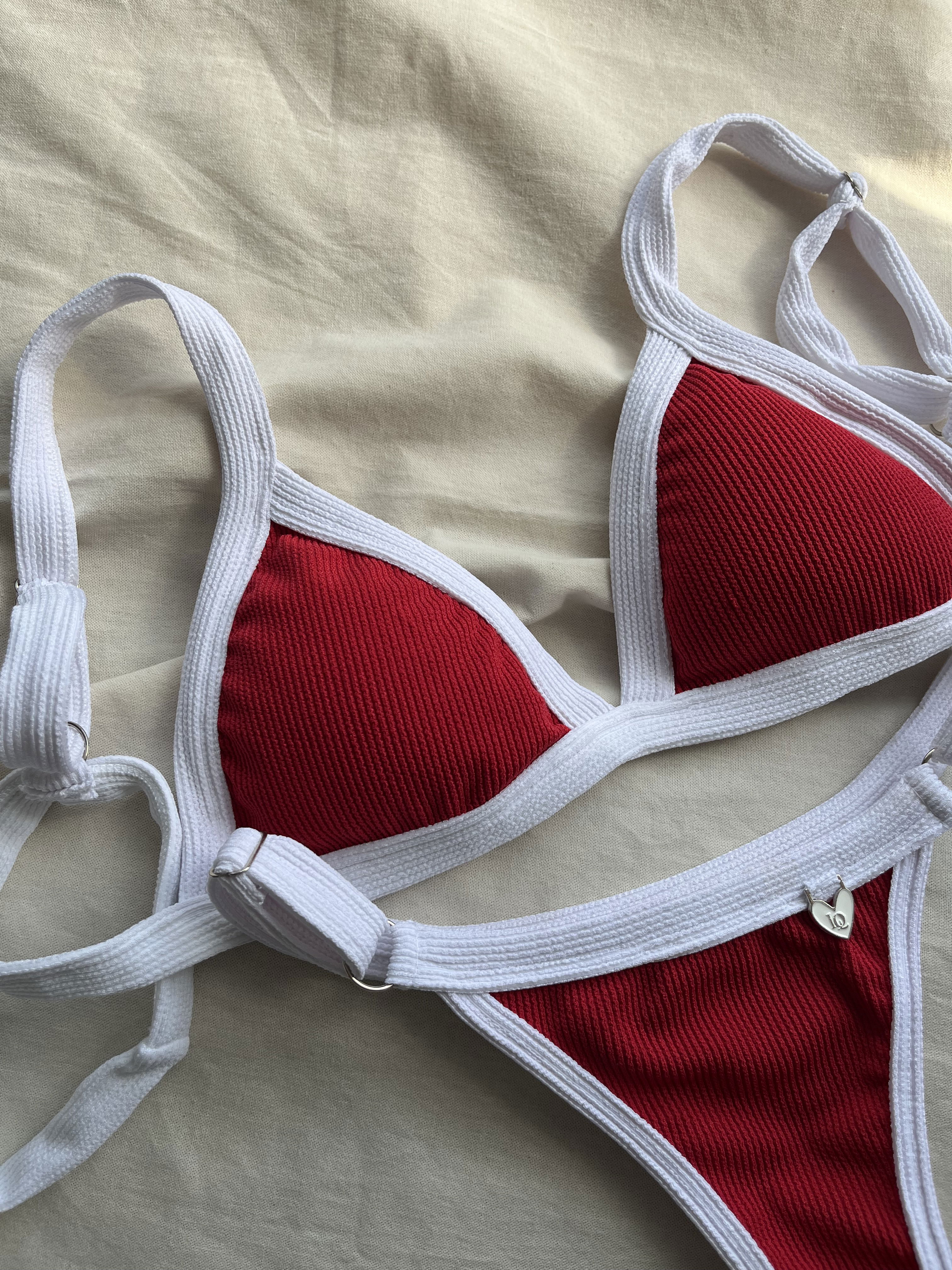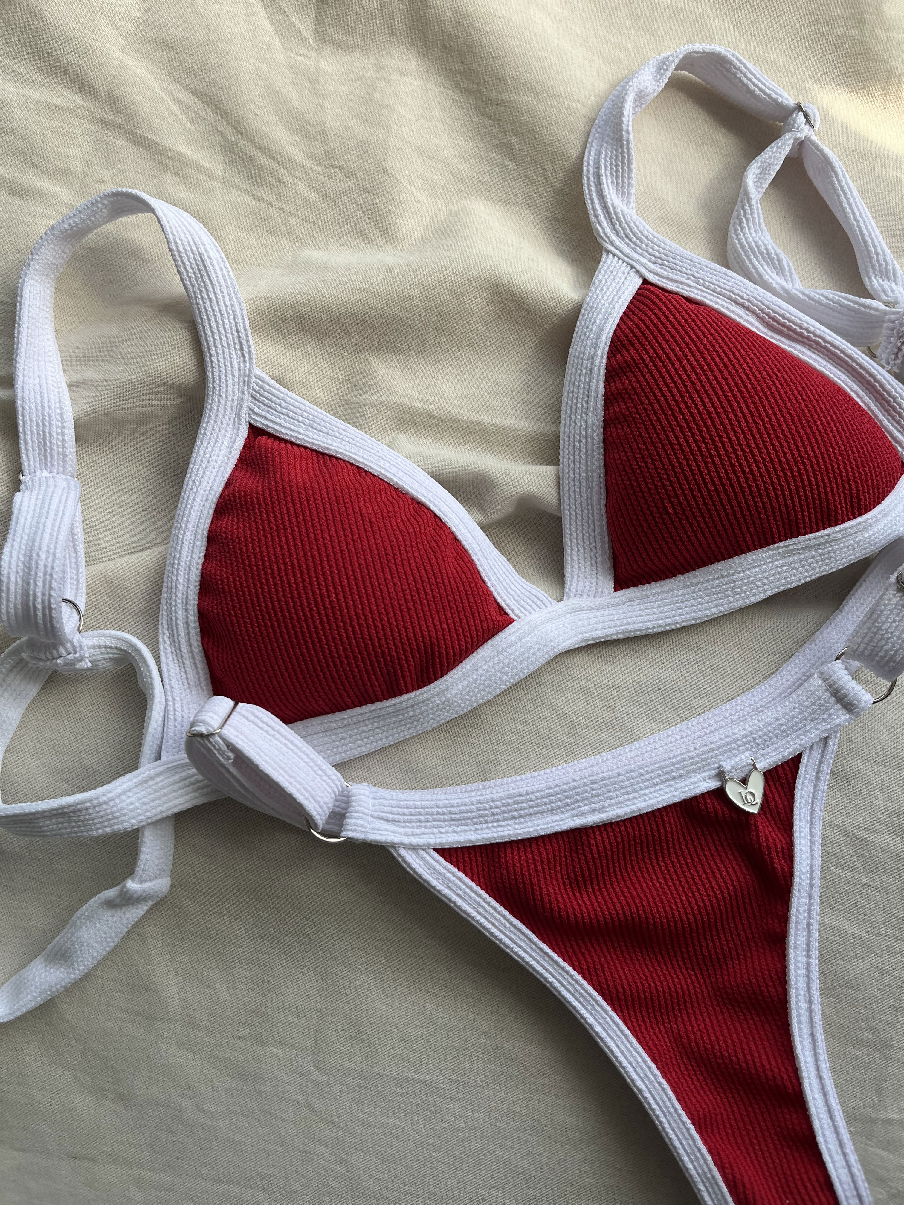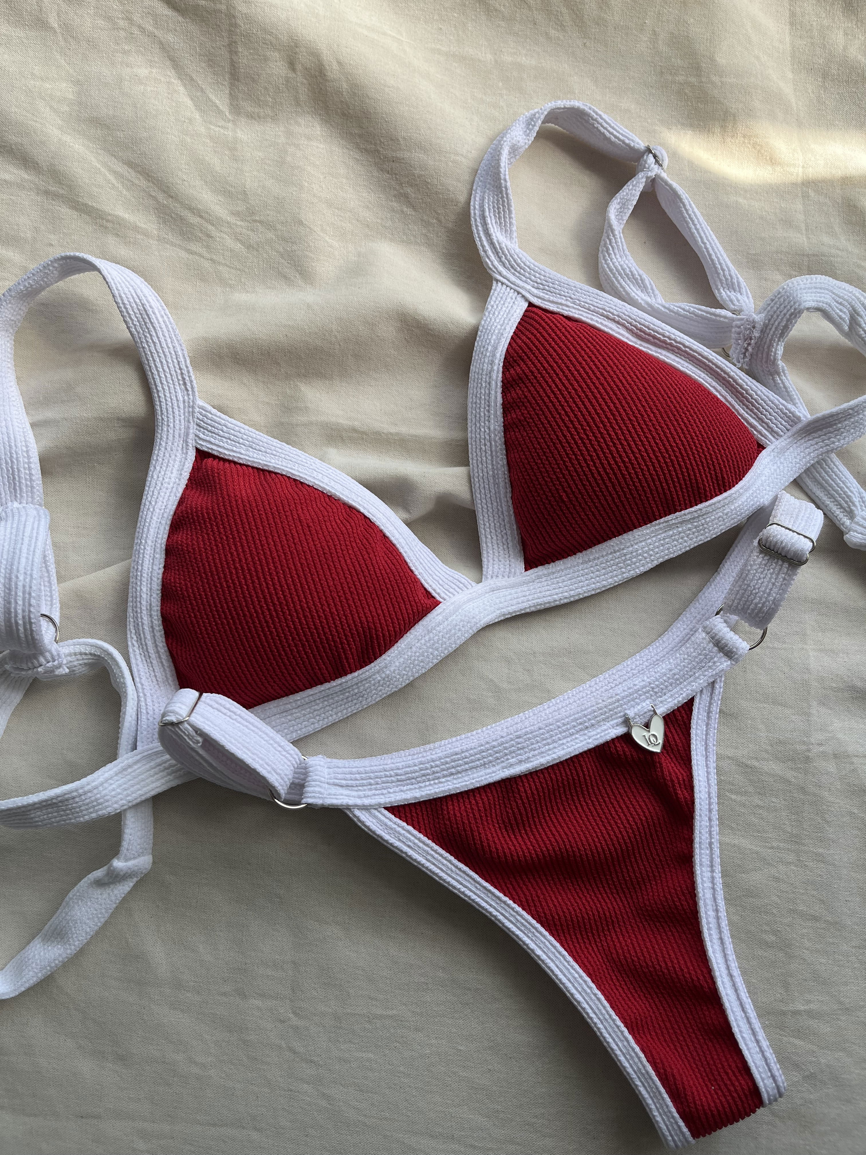 Triángulo texturado. Corpiño con breteles regulables y espalda para atar. Colaless regulable