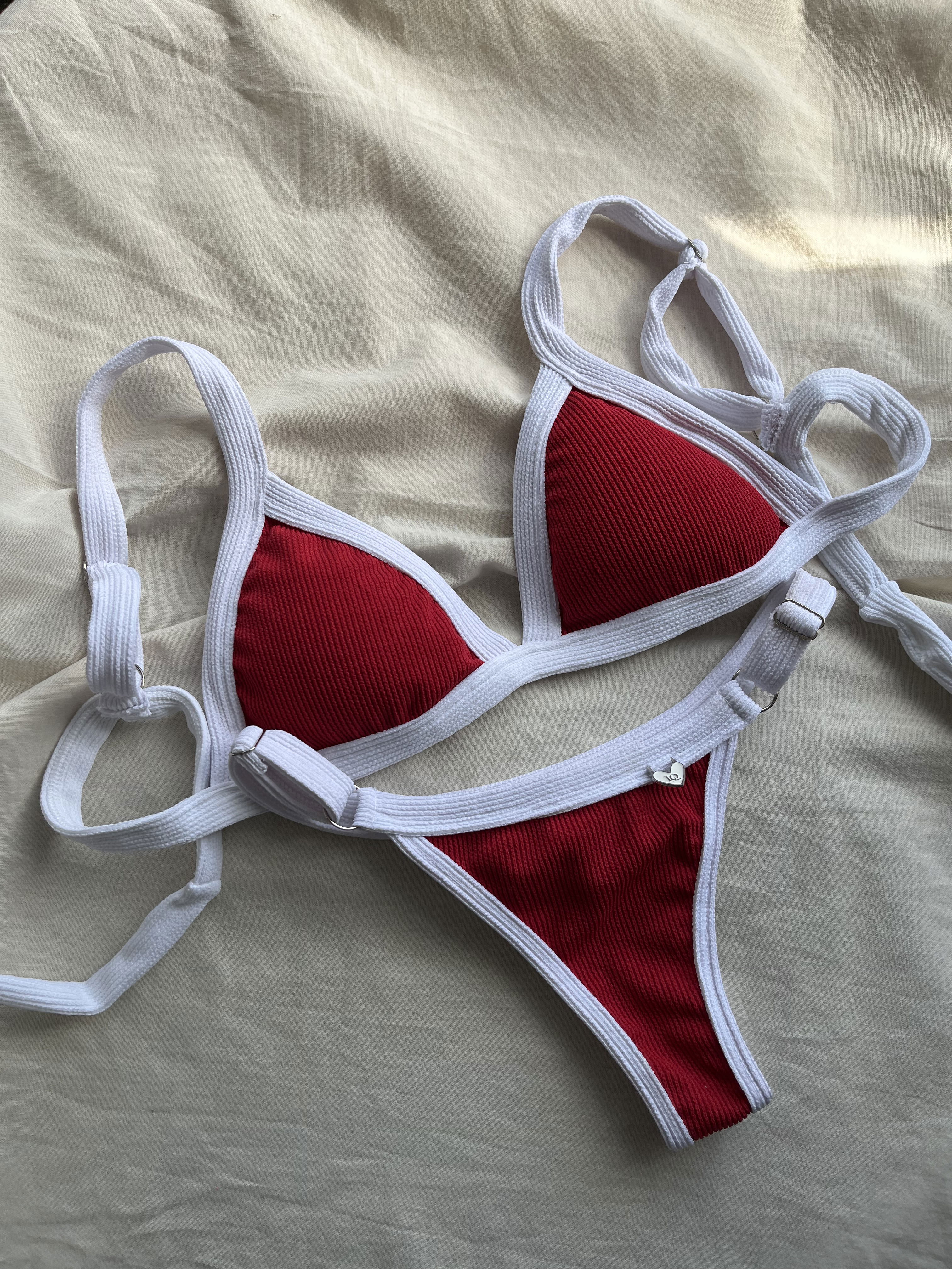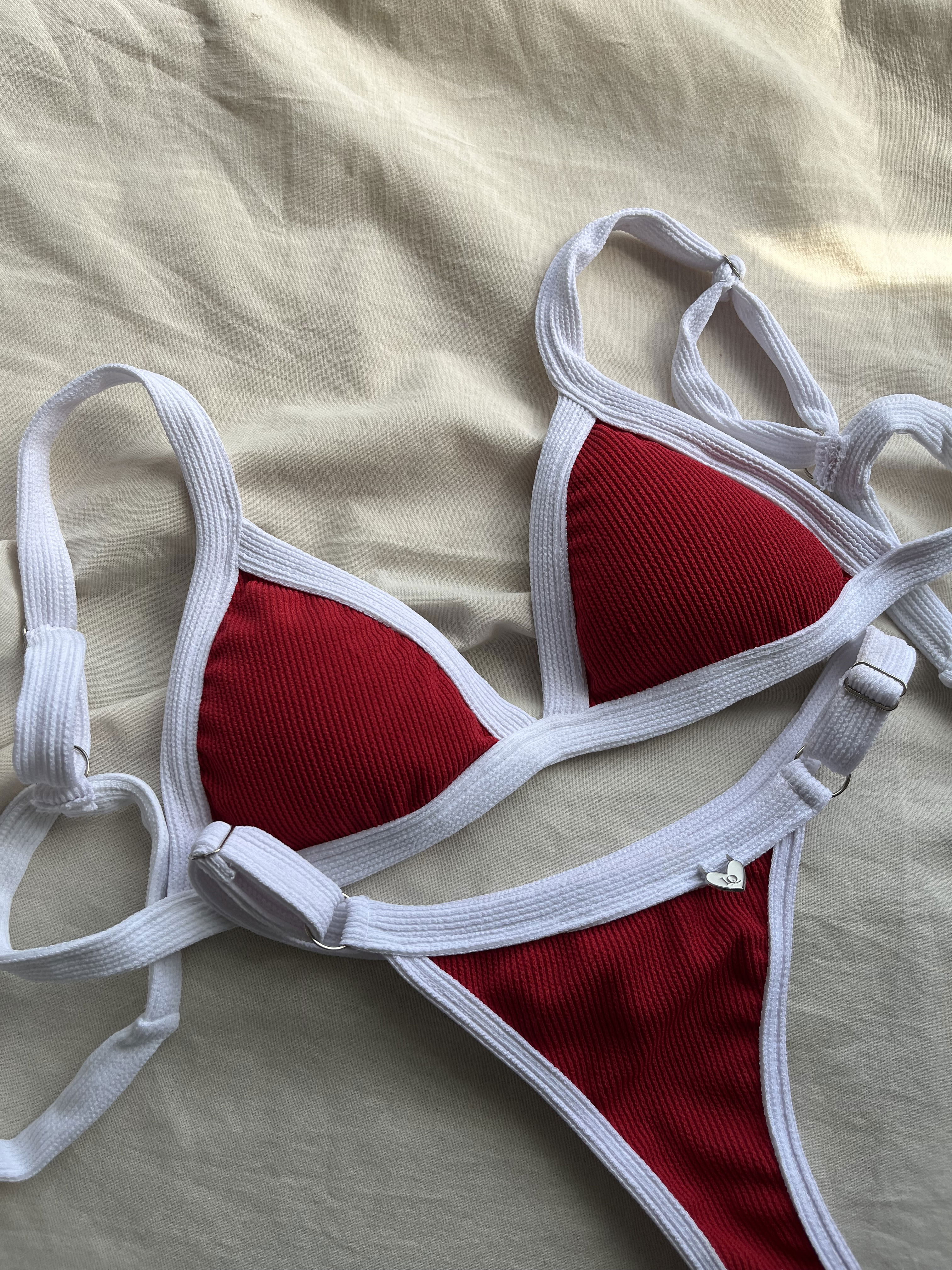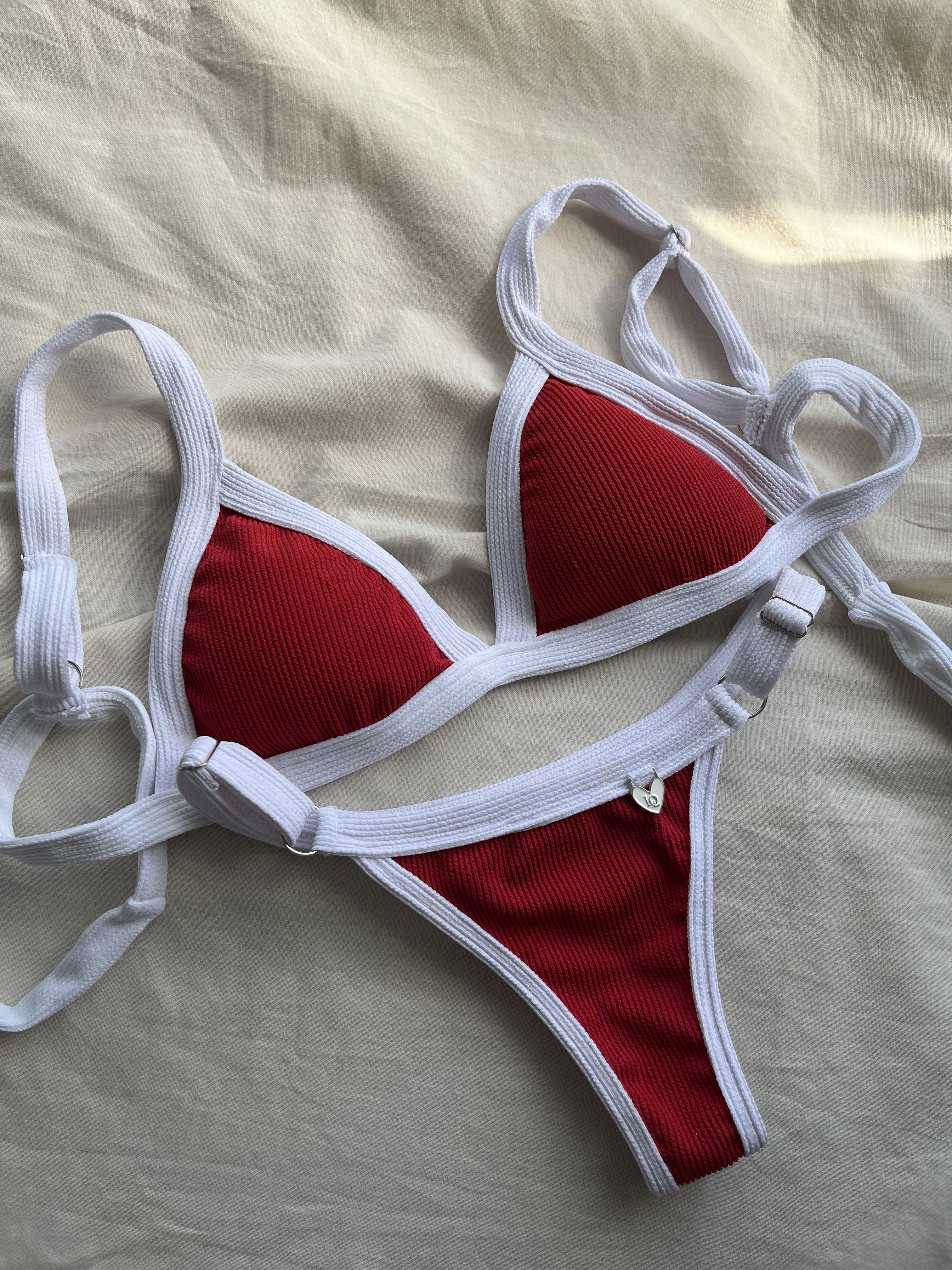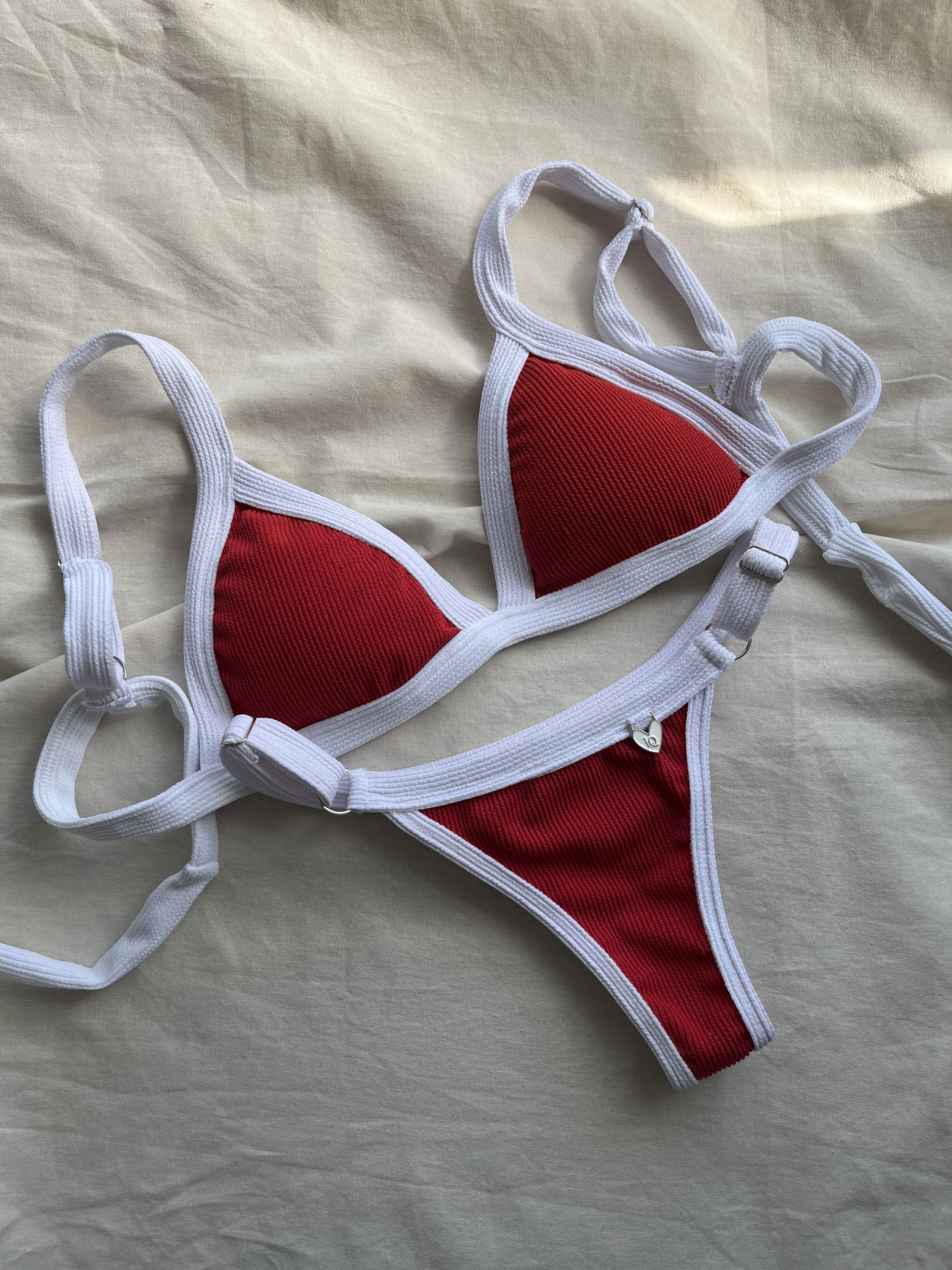 Triángulo texturado. Corpiño con breteles regulables y espalda para atar. Colaless regulable