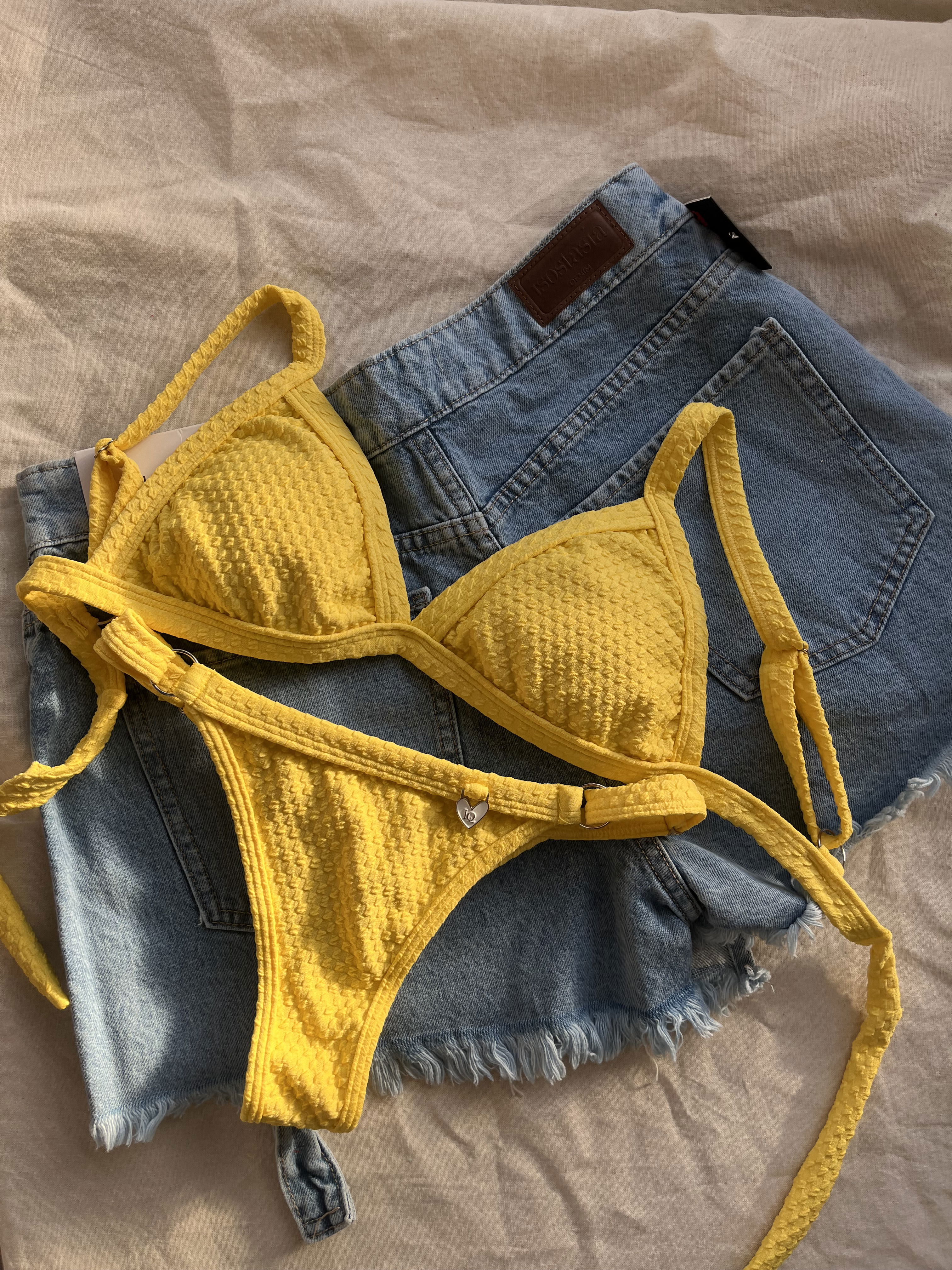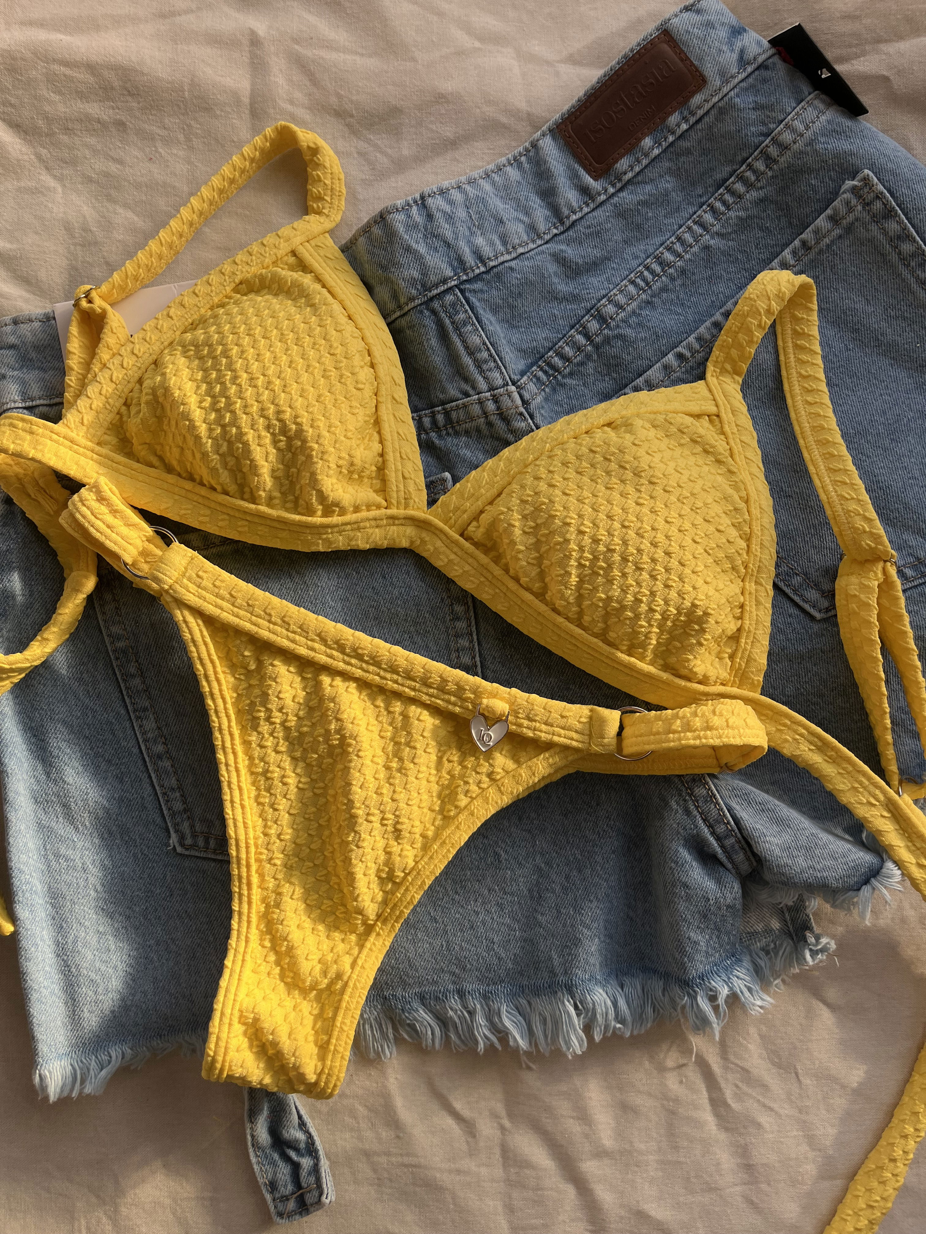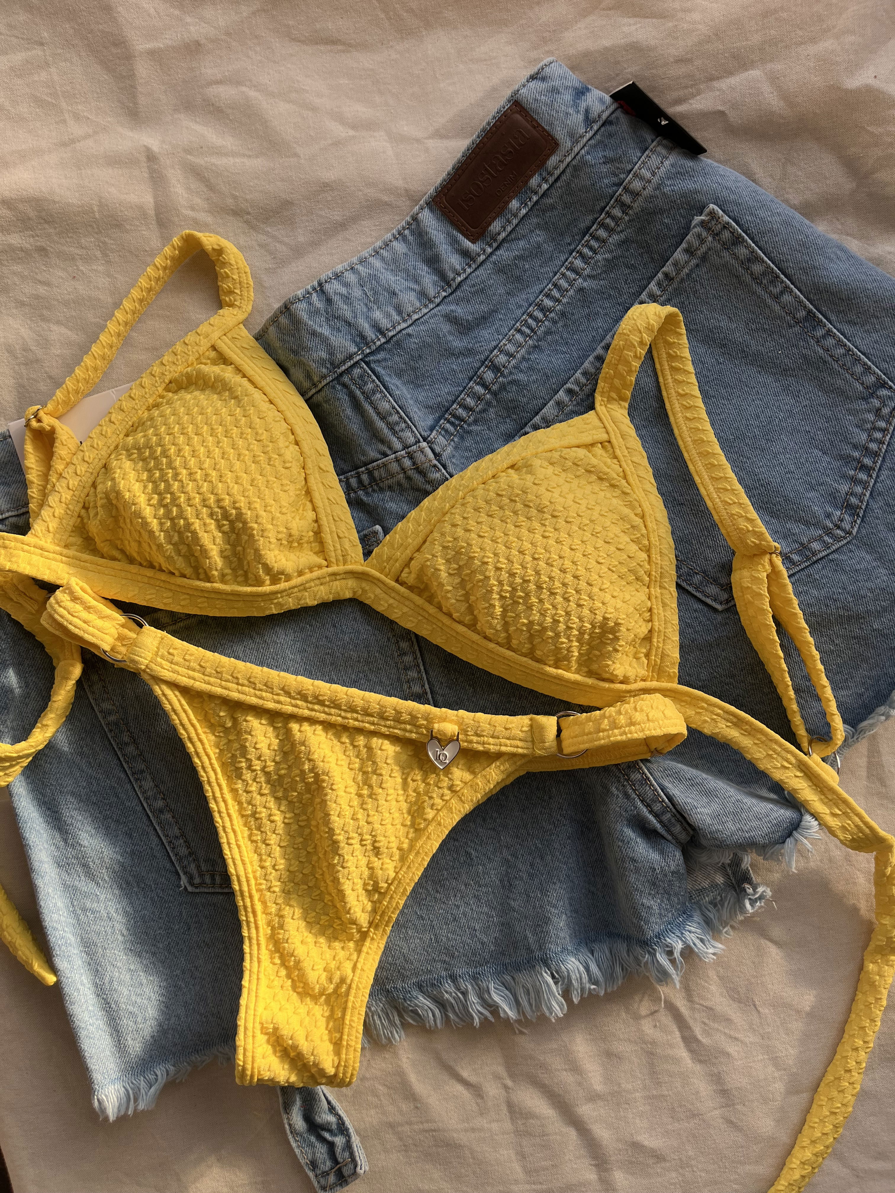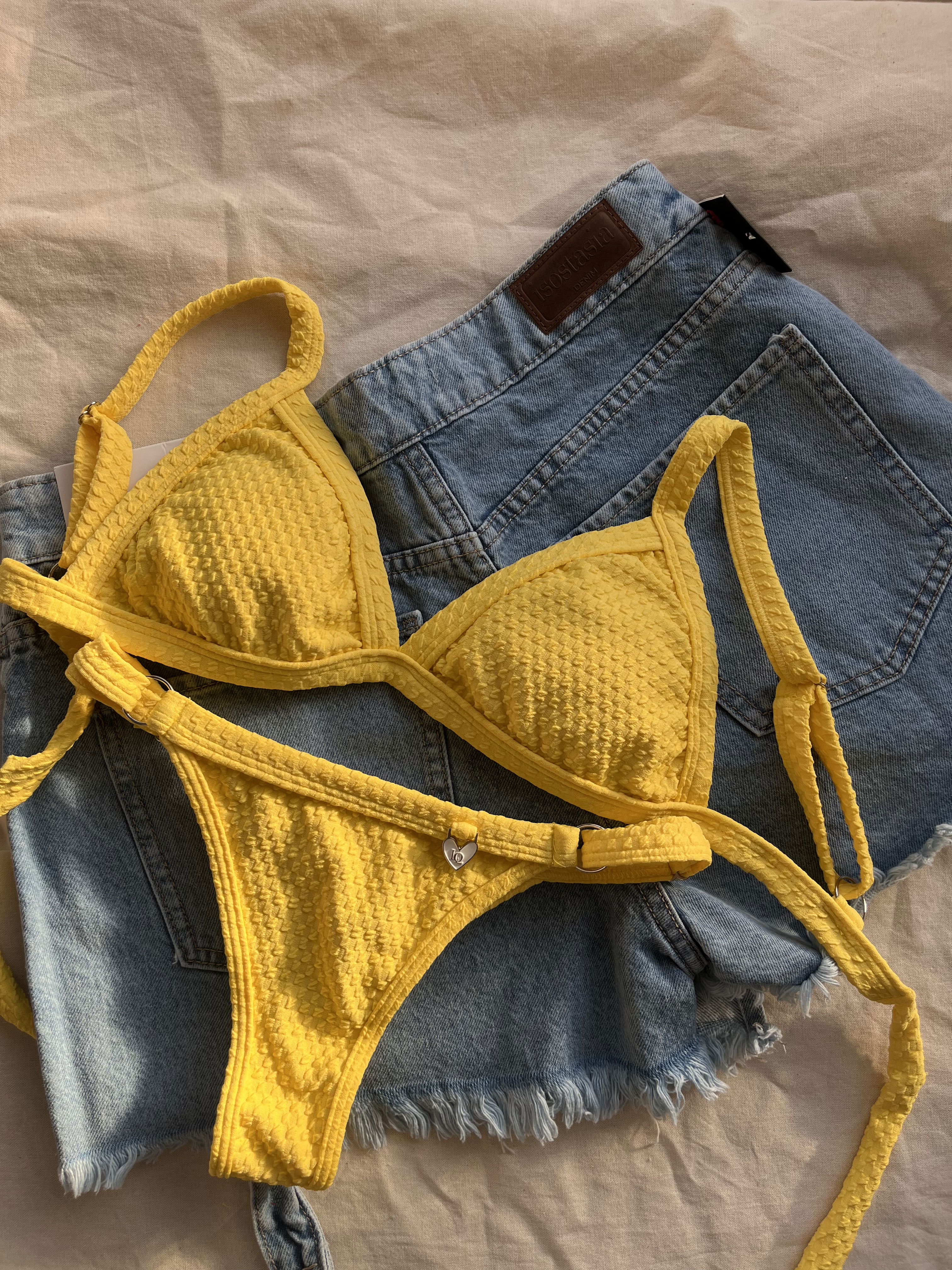 Triángulo texturado. Corpiño con breteles regulables y espalda para atar. Colaless regulable