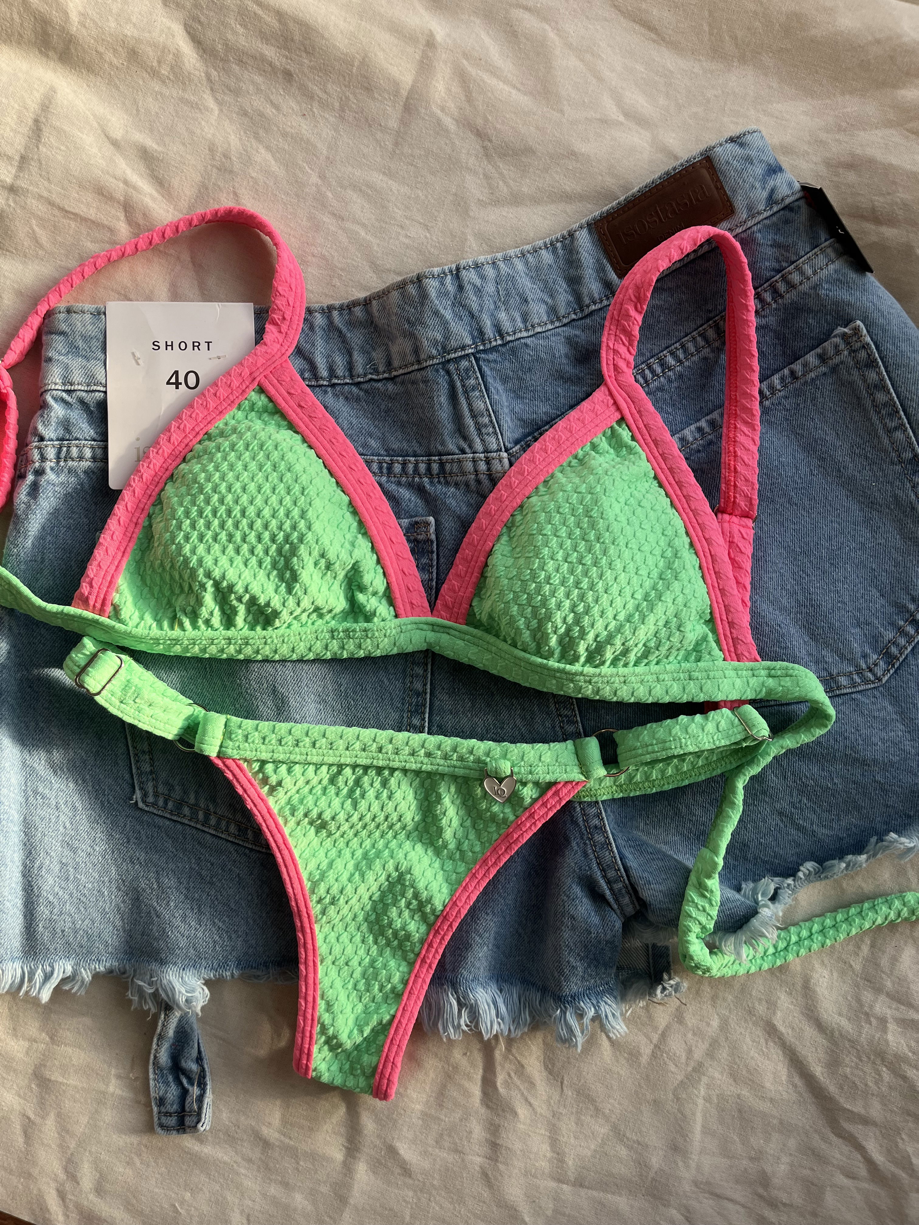 Triángulo texturado. Corpiño con breteles regulables y espalda para atar. Colaless regulable
