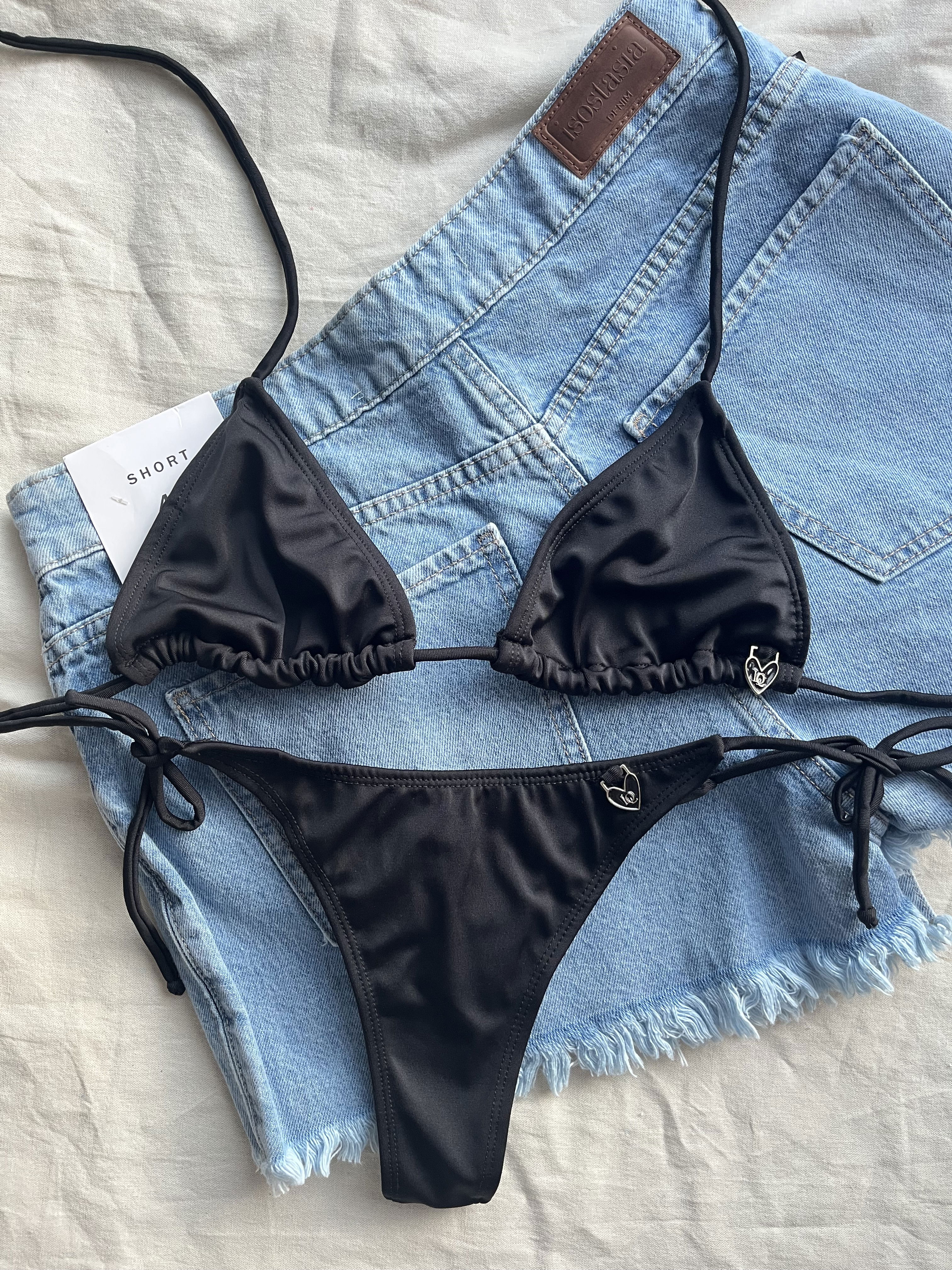 Triángulito en tricot y colaless con tiras para atar. Doble forreria y la abertura para agregarle rellenitos.