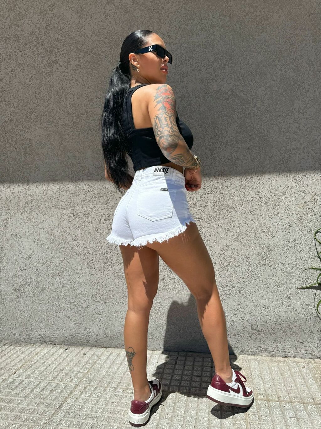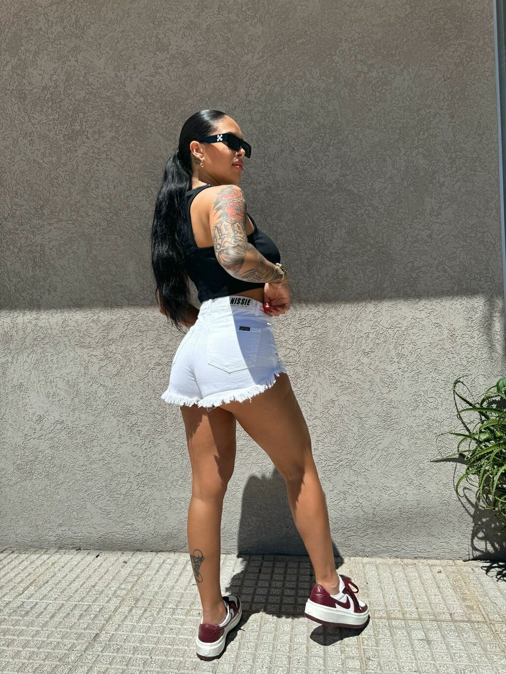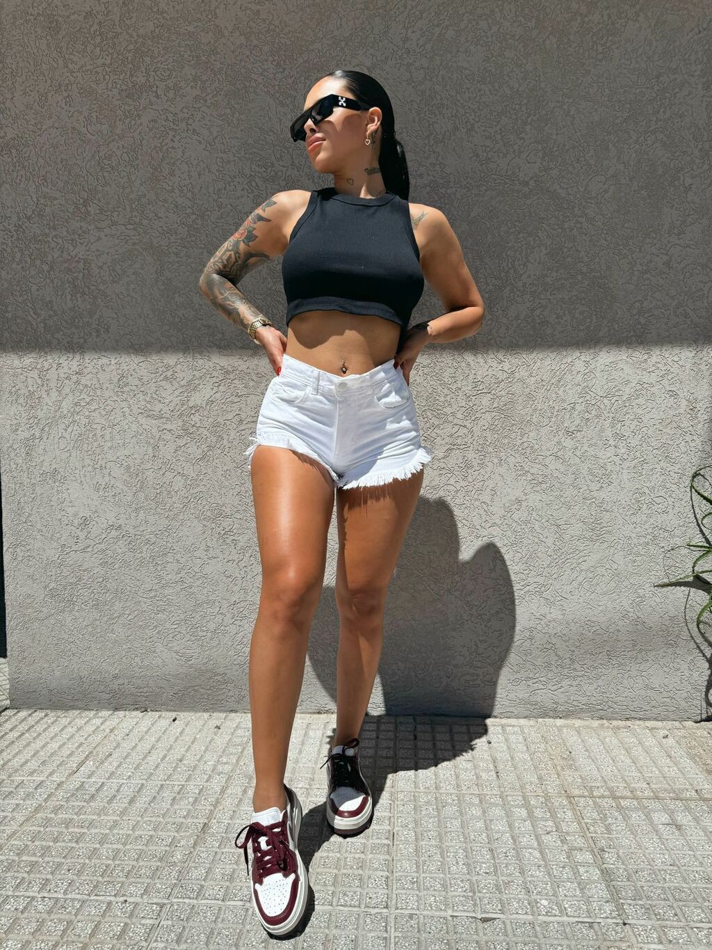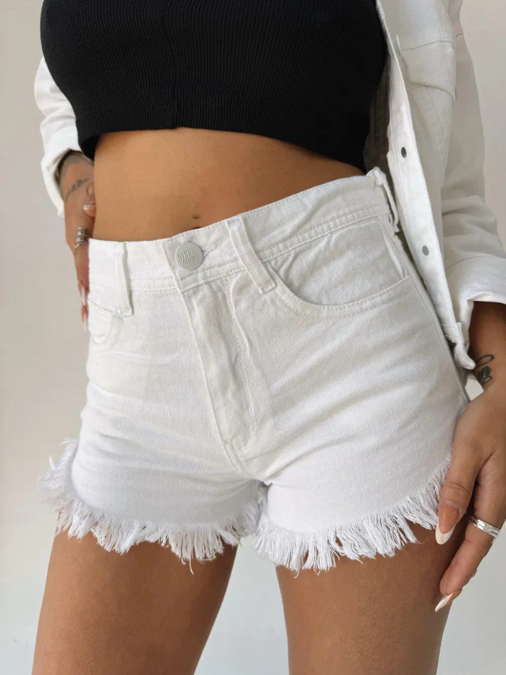 Rígido, bien de talle. Prenda crudo/blanco sin cambio.