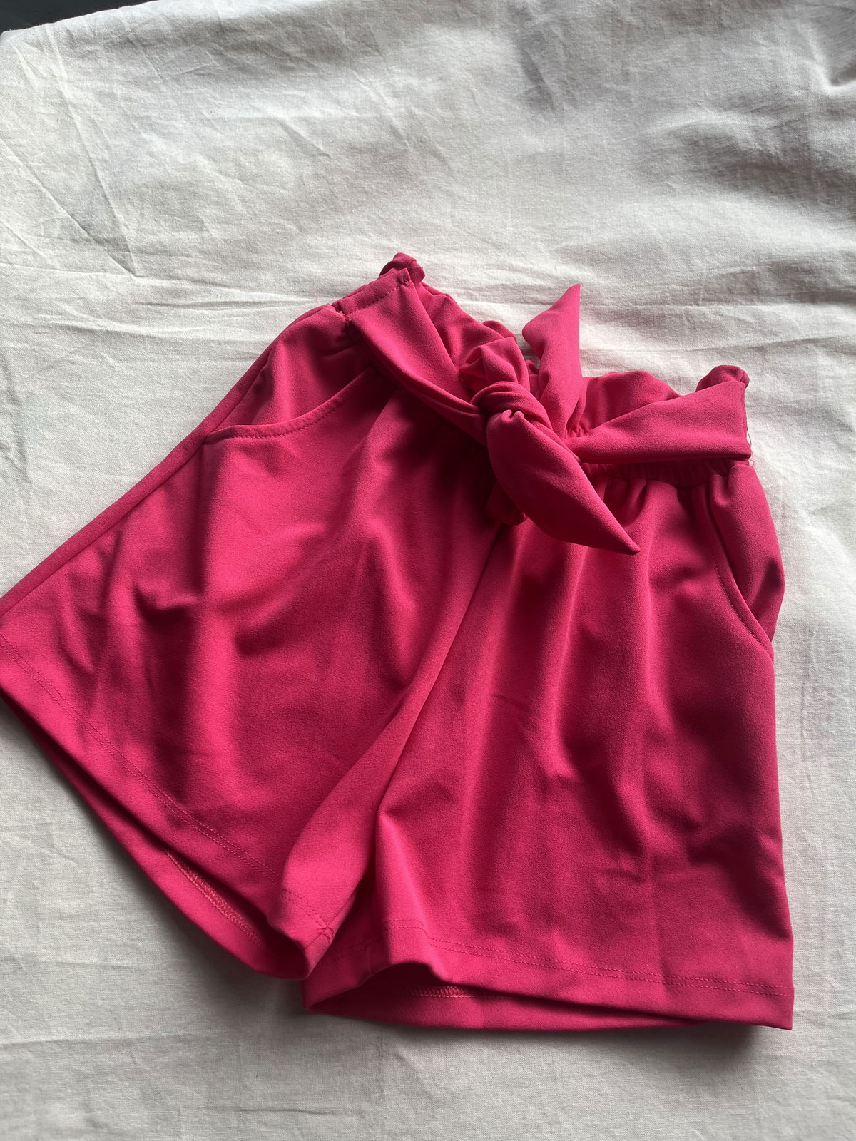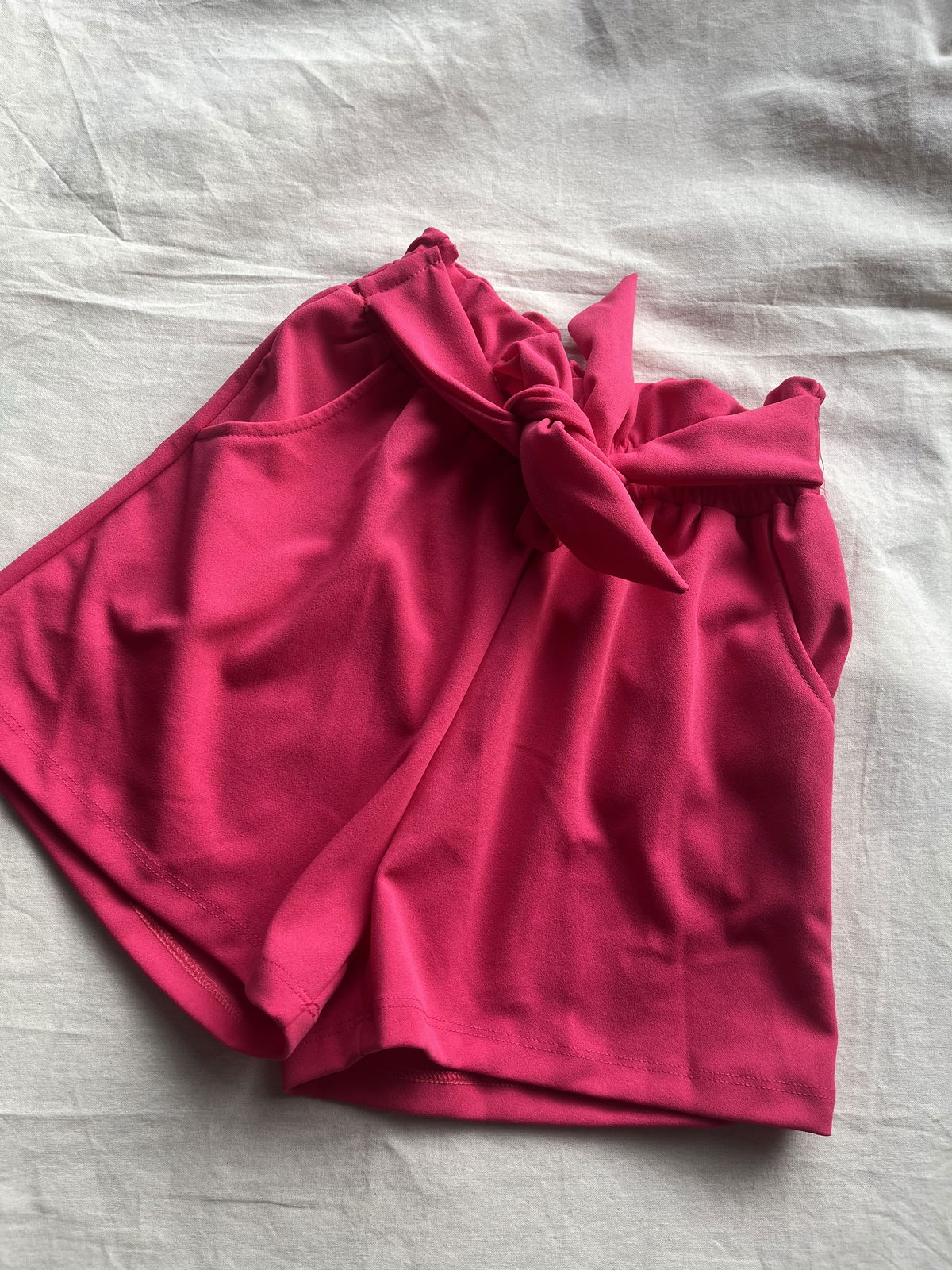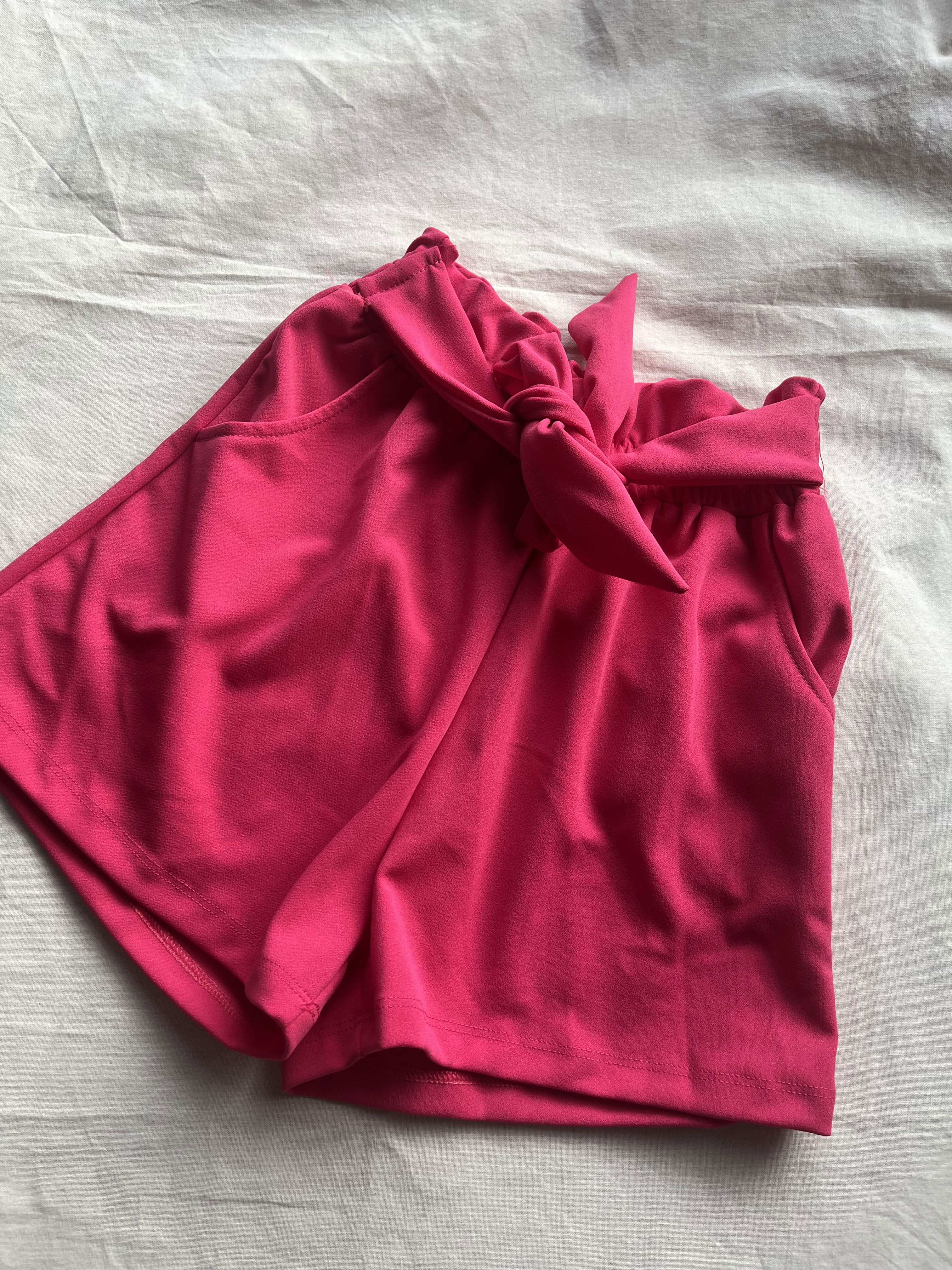 SHORT CREP CON LAZO FUCSIA