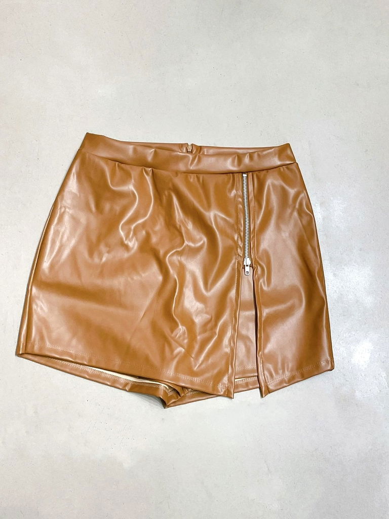 SHORT POLLERA ECO CUERO CAMEL