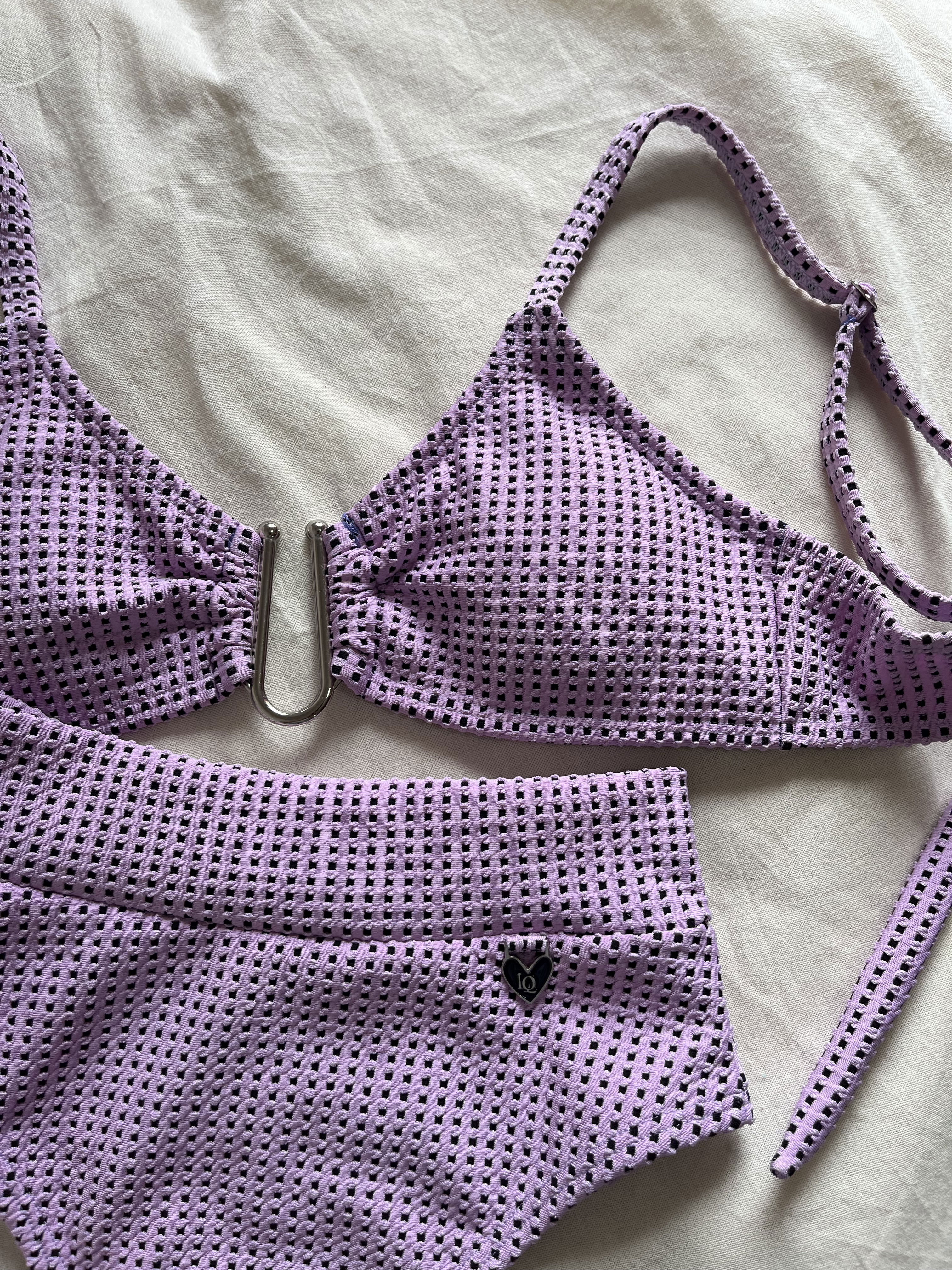 Top texturado con herraje, breteles regulables y espalda para atar.