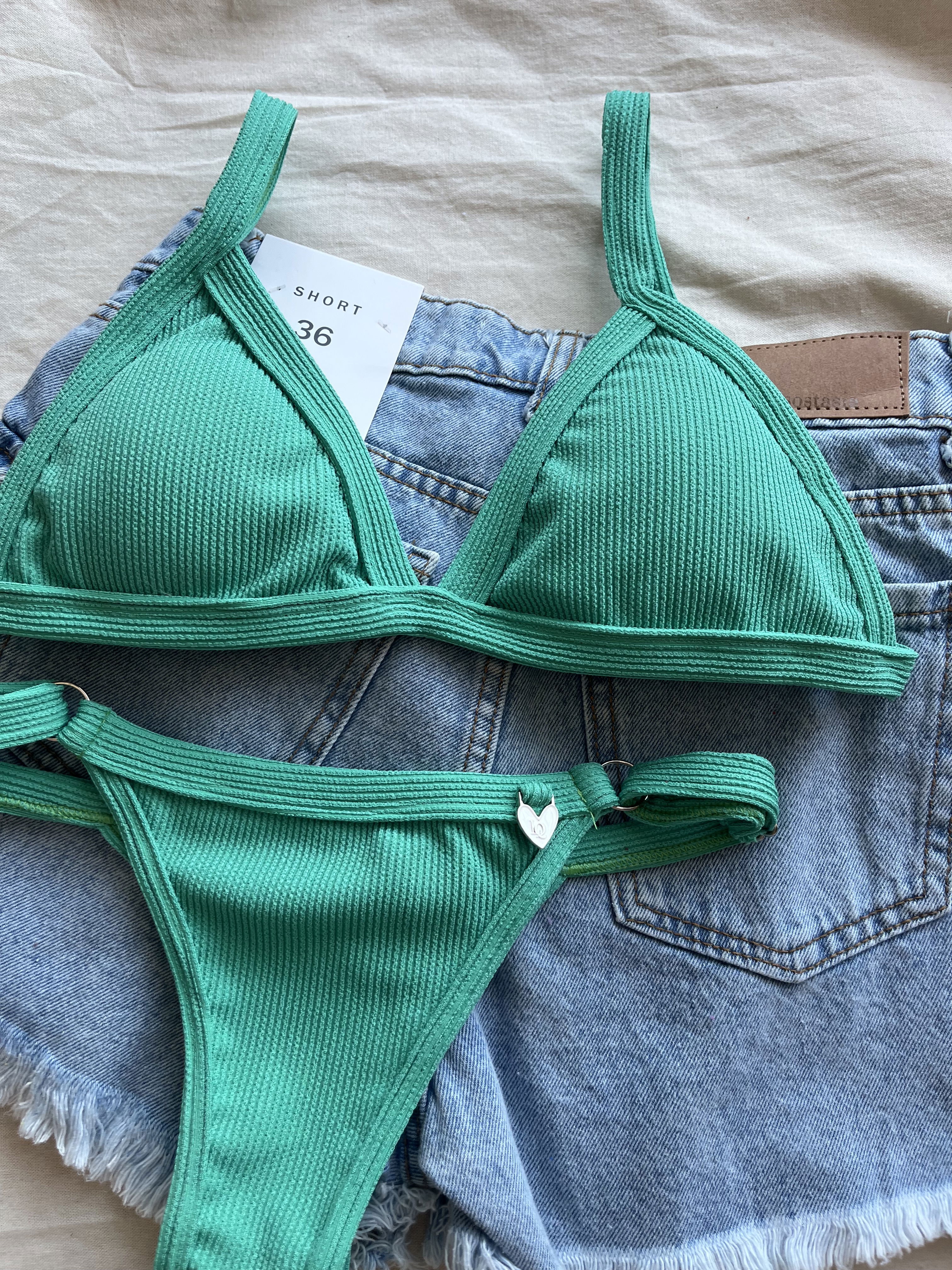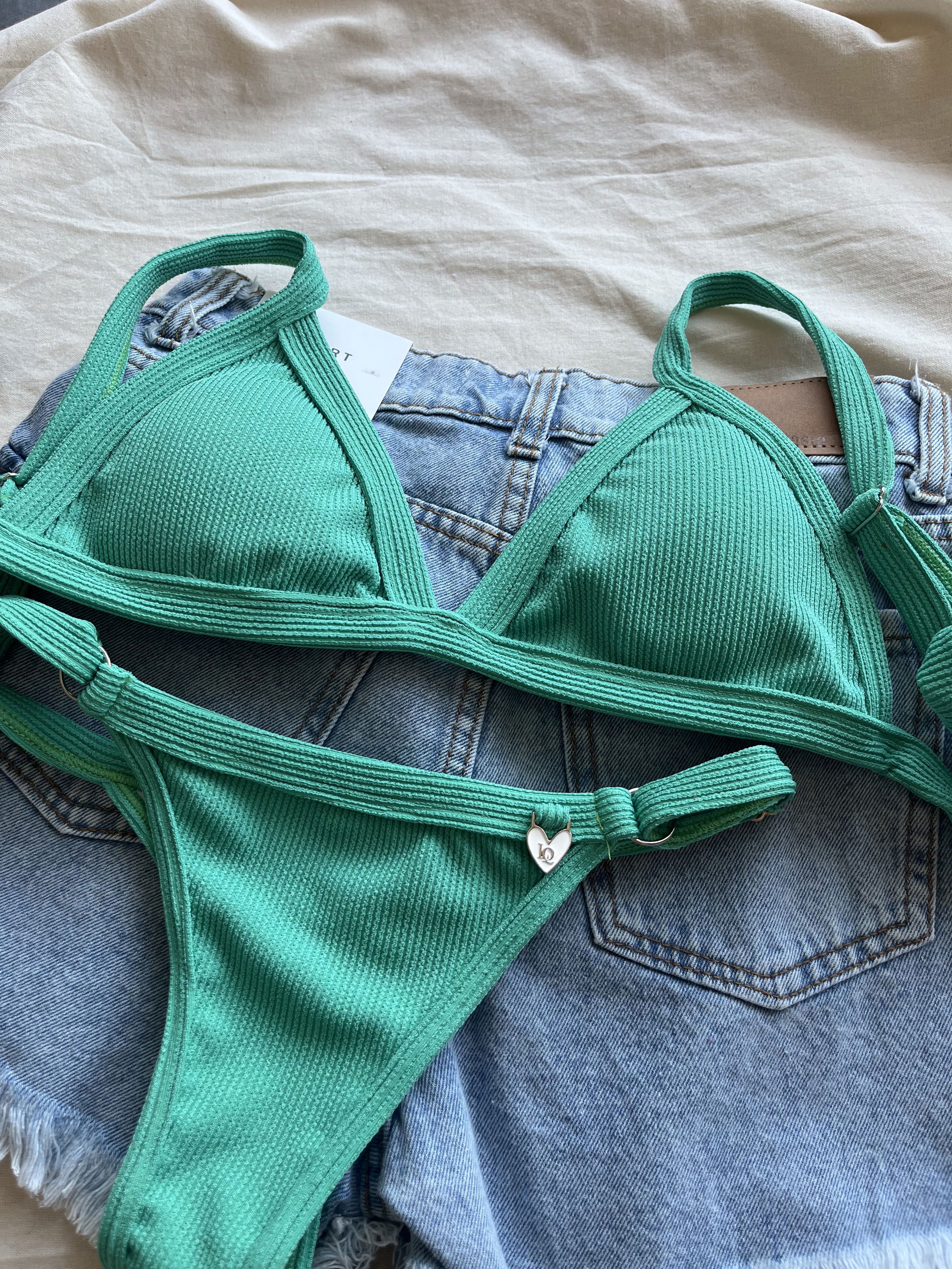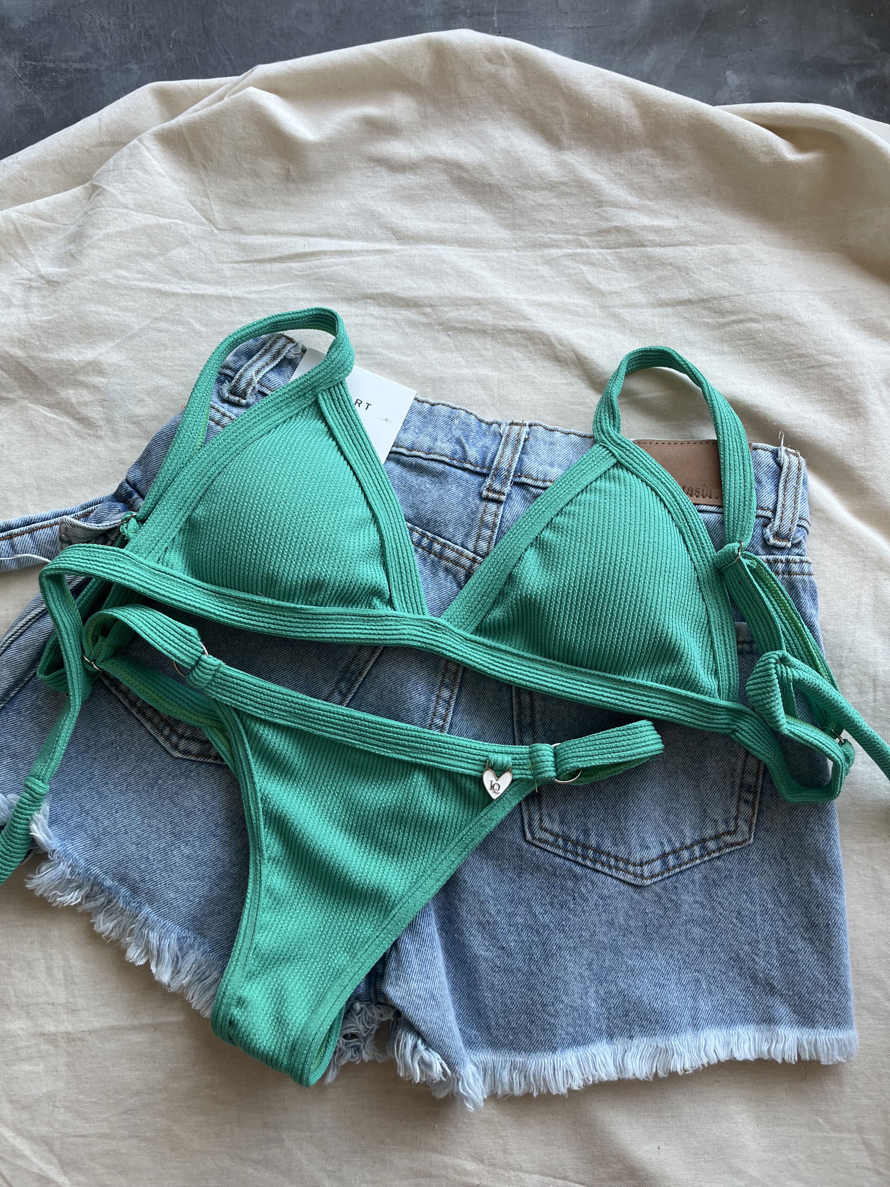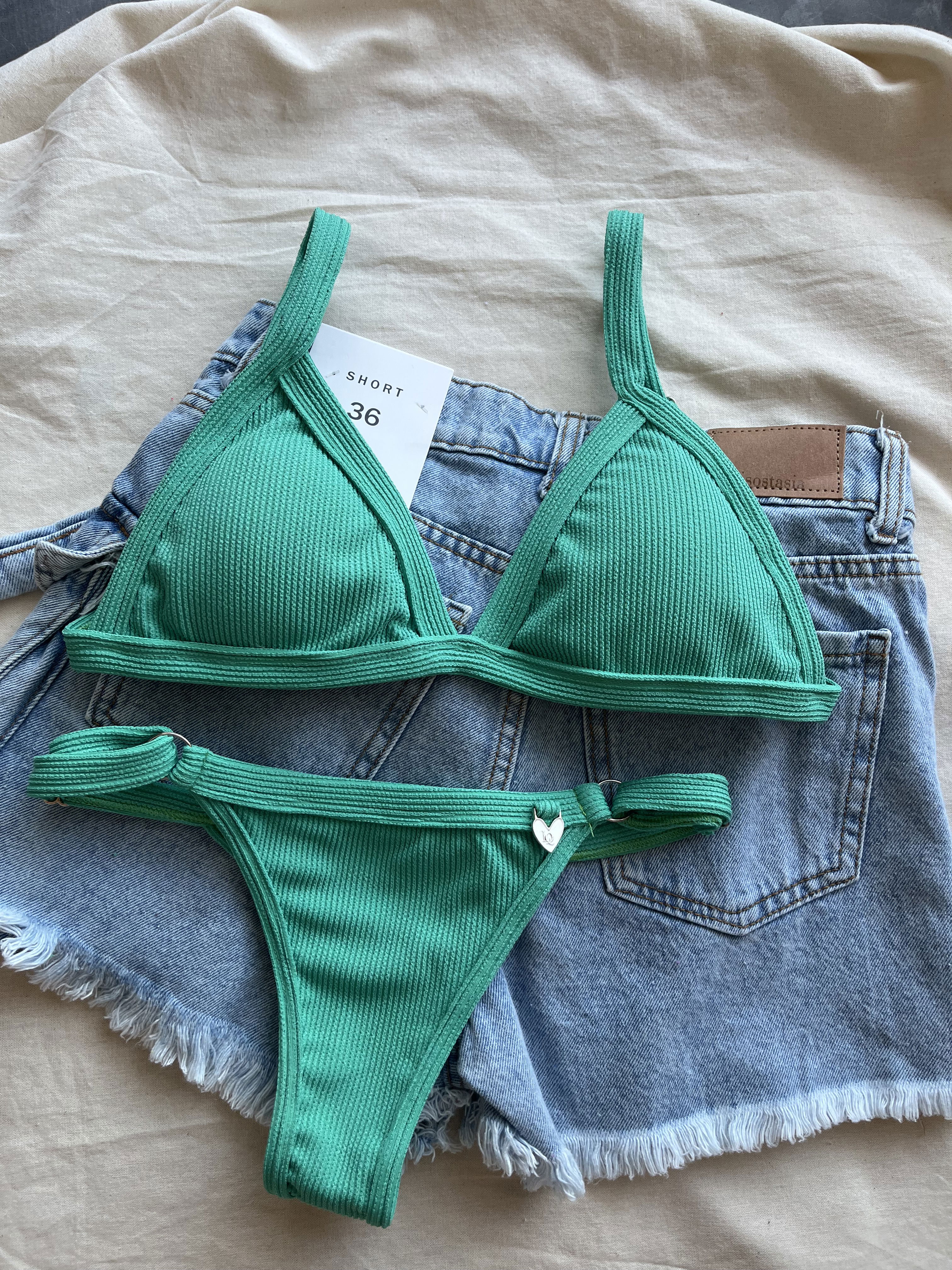 Triángulo texturado. Corpiño con breteles regulables y espalda para atar. Colaless regulable