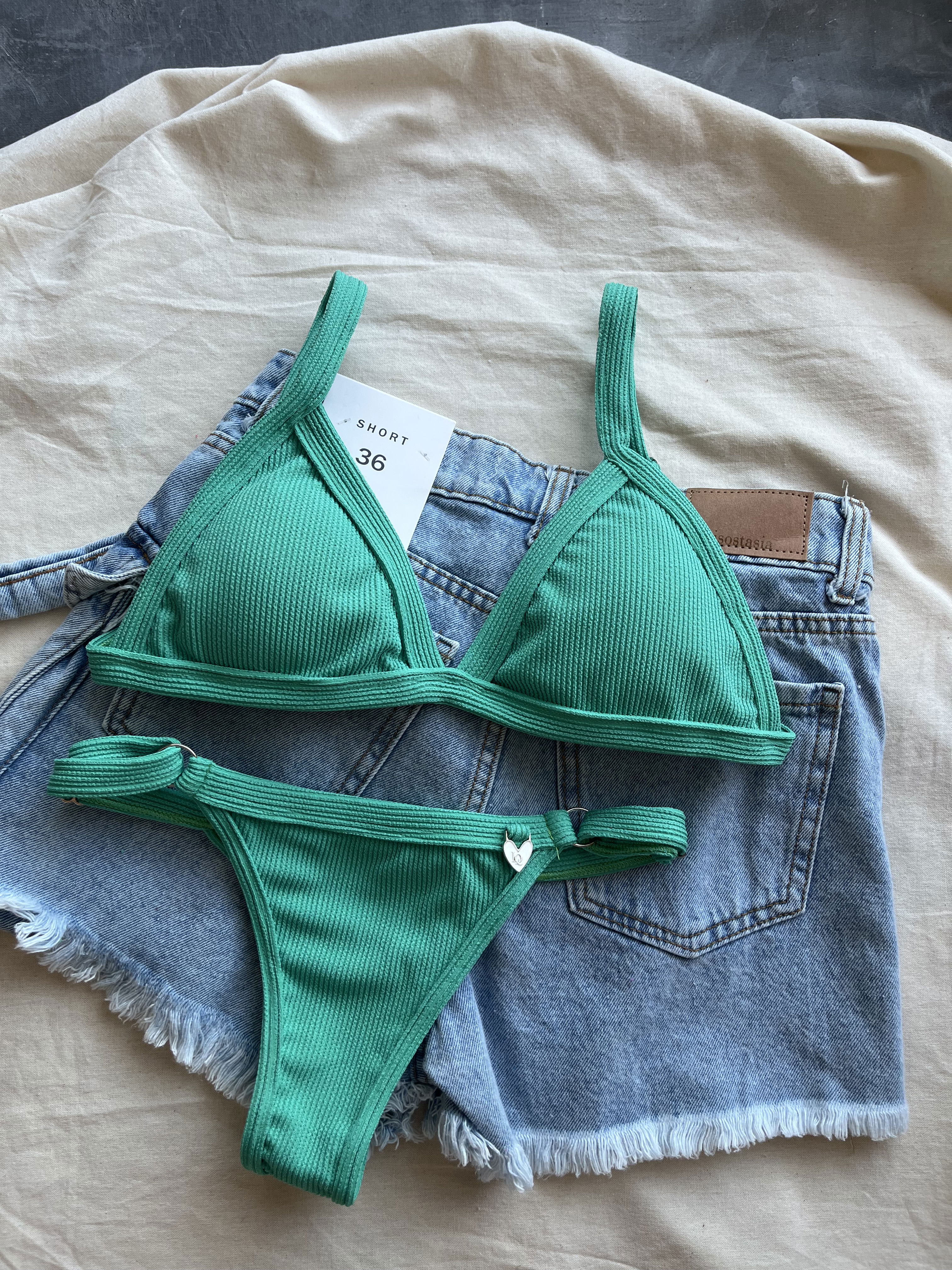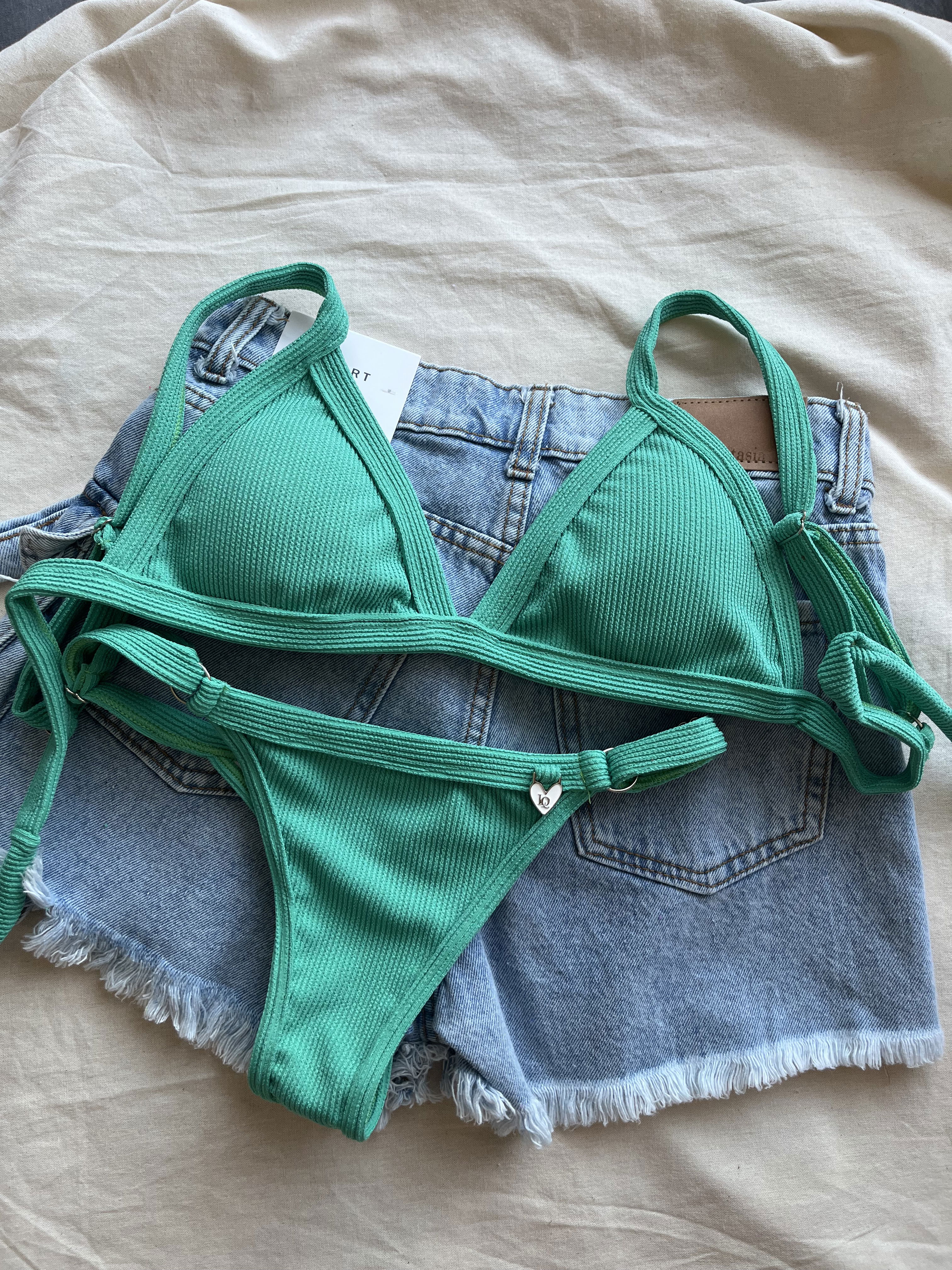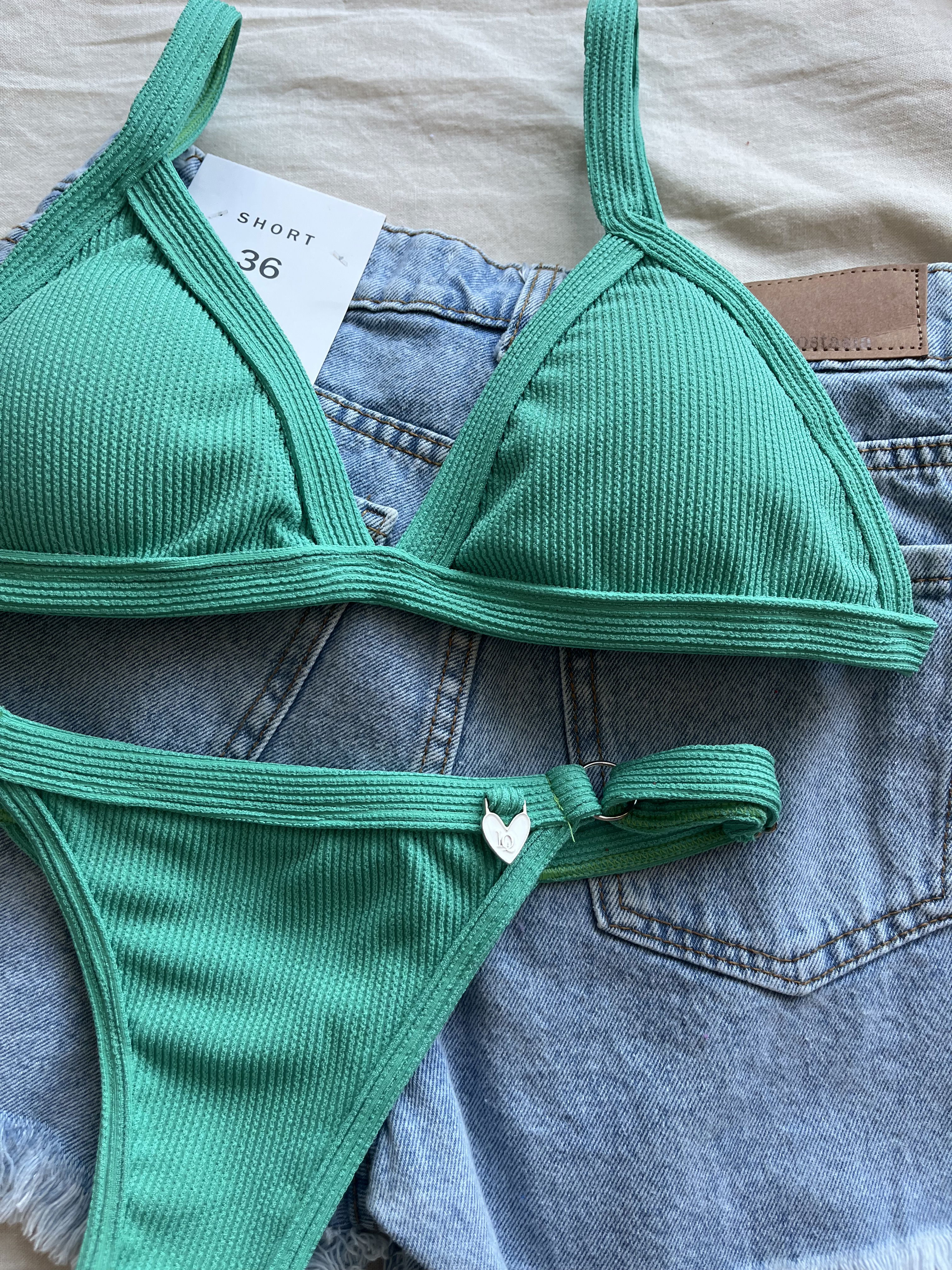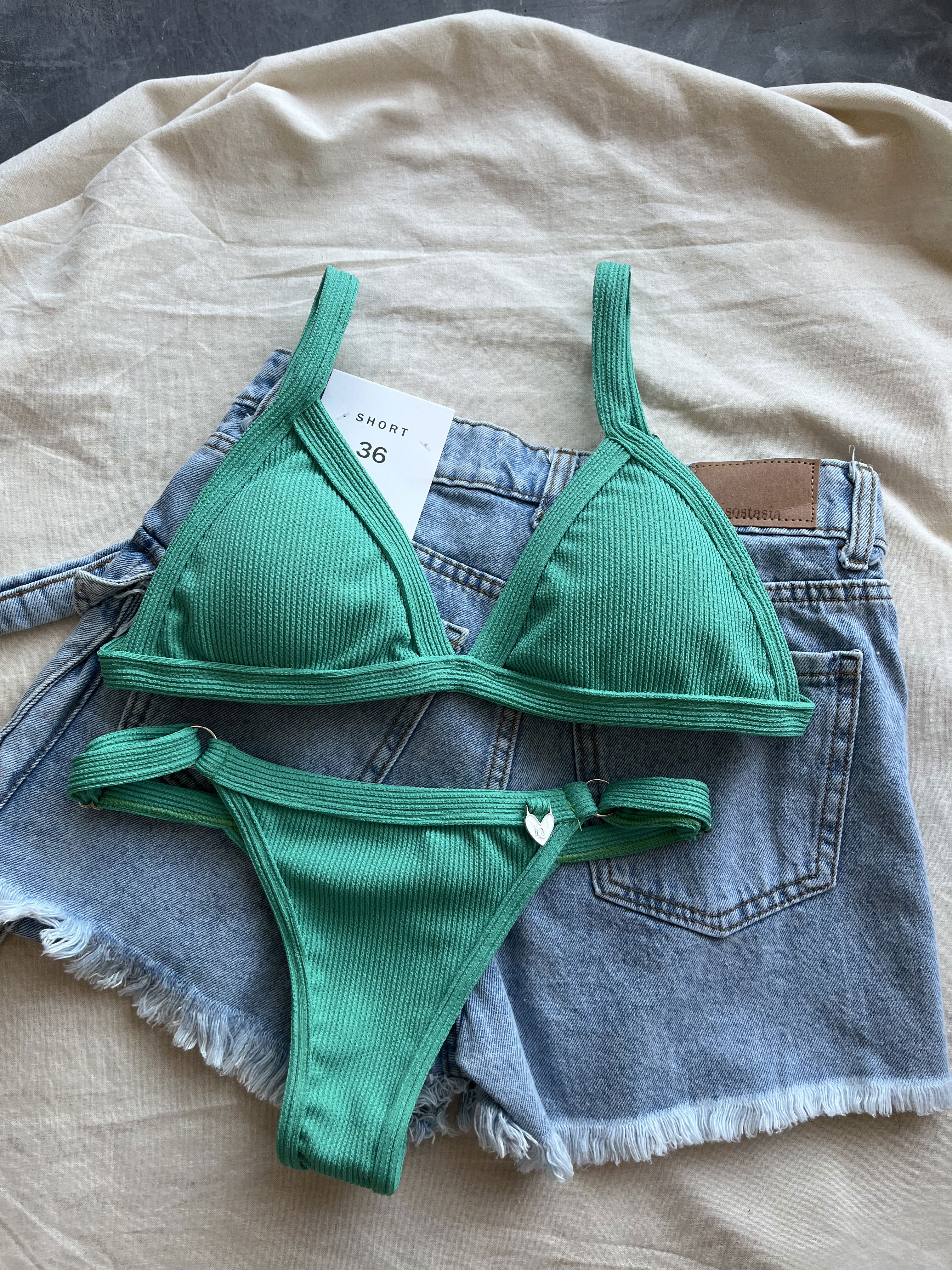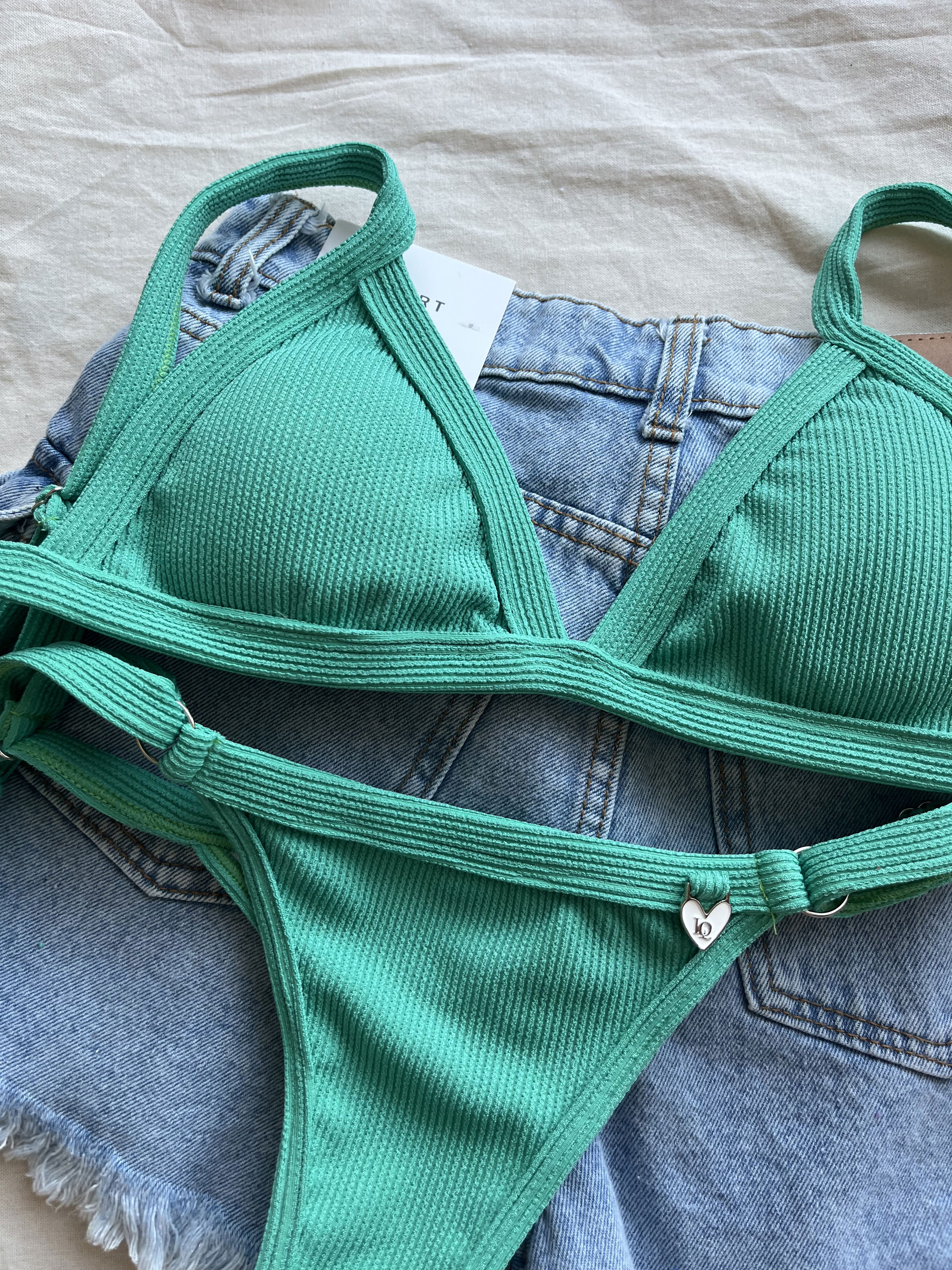 Triángulo texturado. Corpiño con breteles regulables y espalda para atar. Colaless regulable